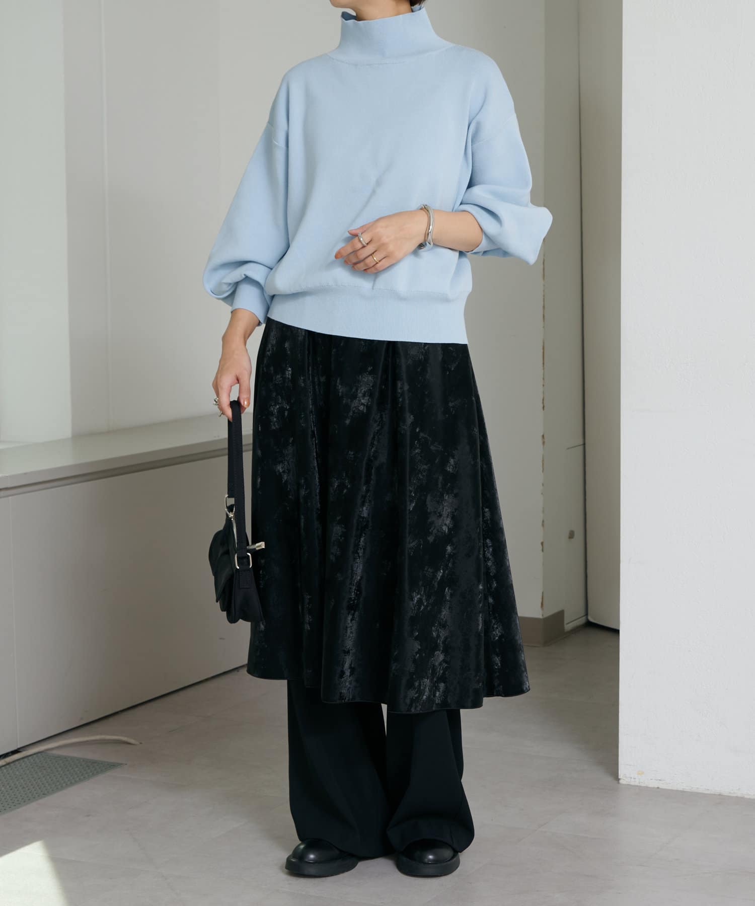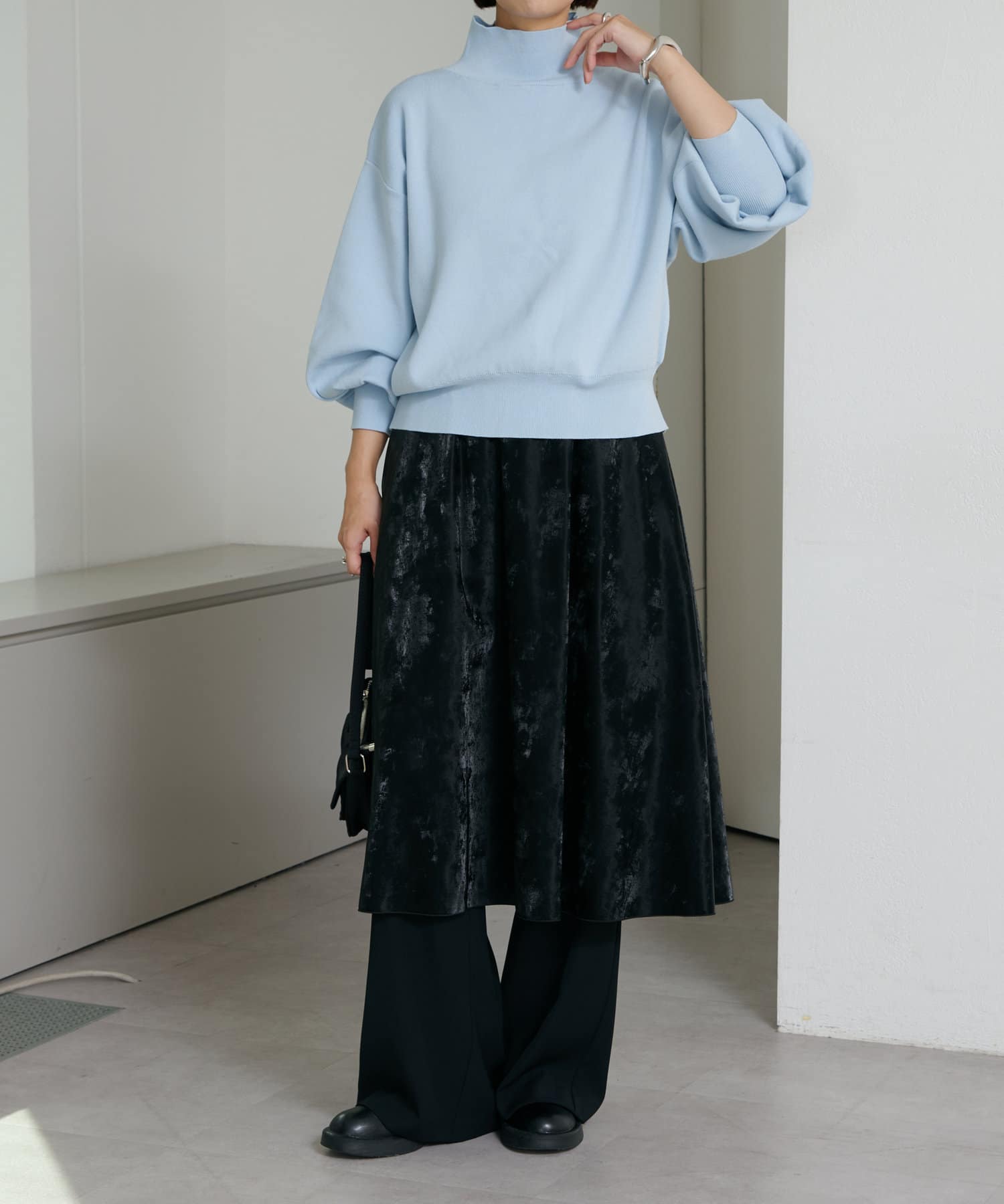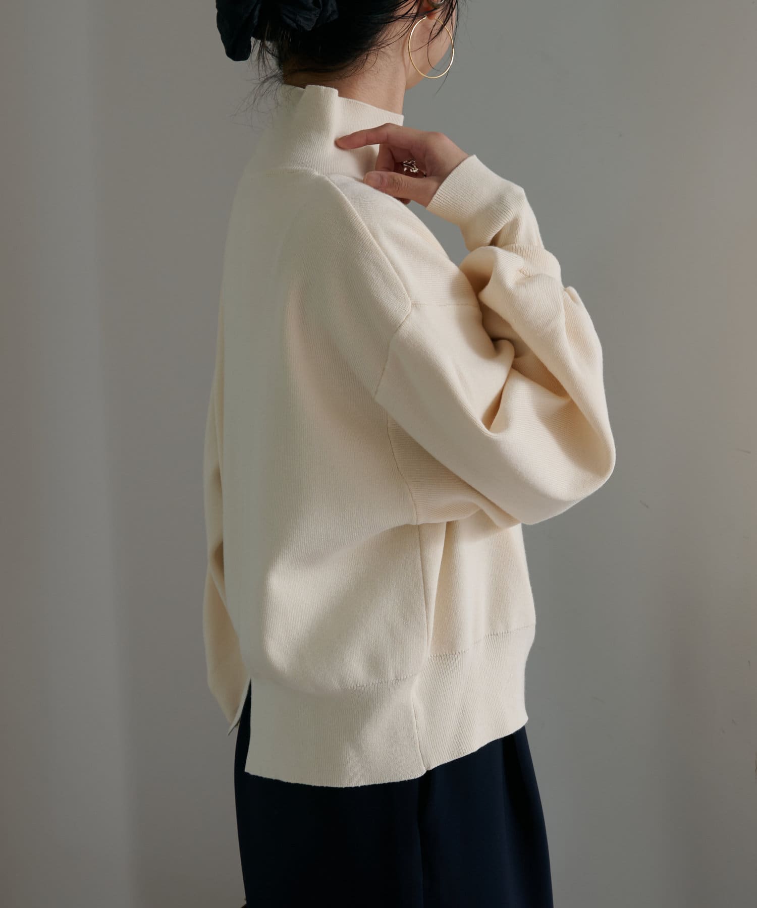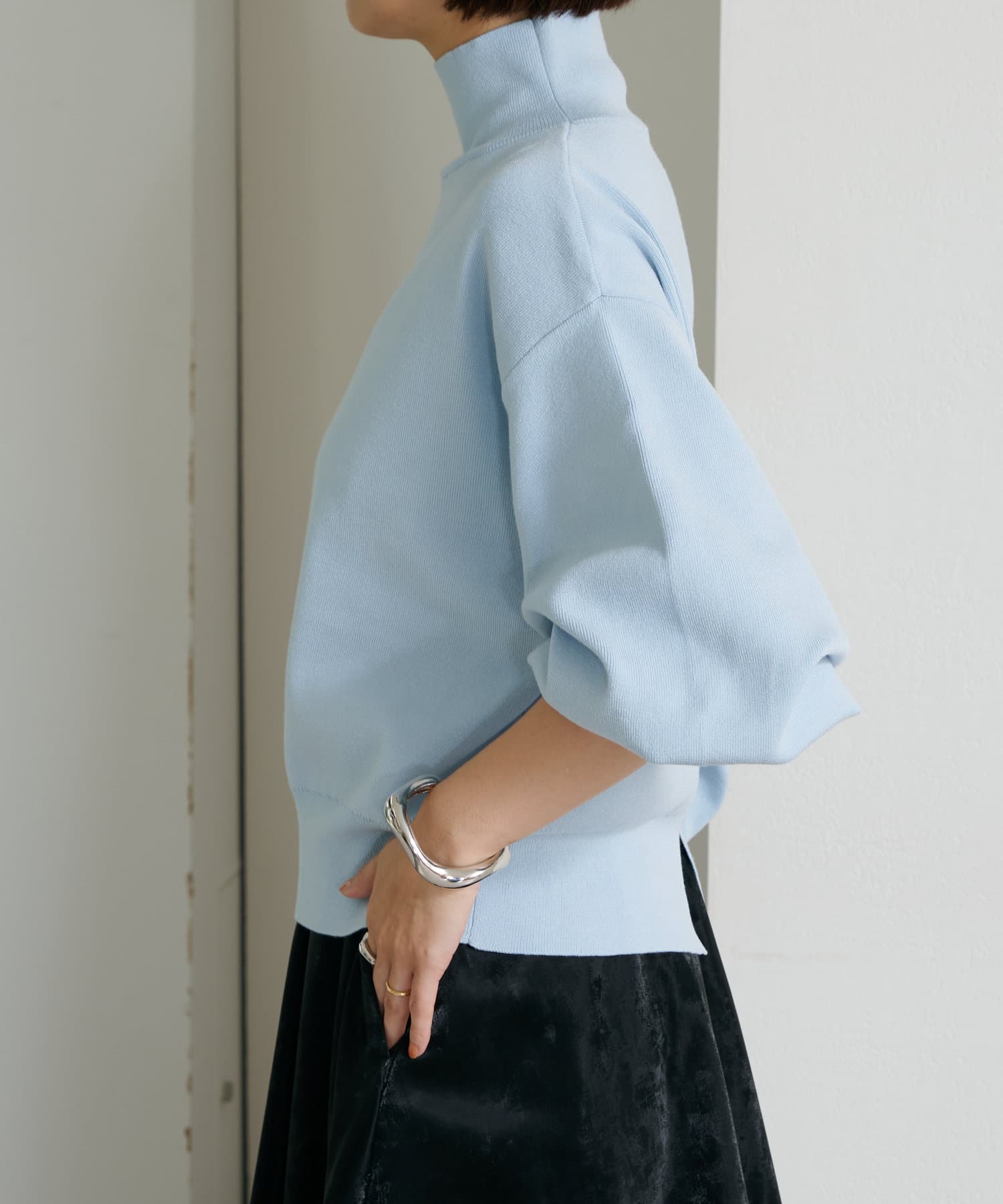 長めの袖口でボリュームスリーブが叶うタートルニットが登場!