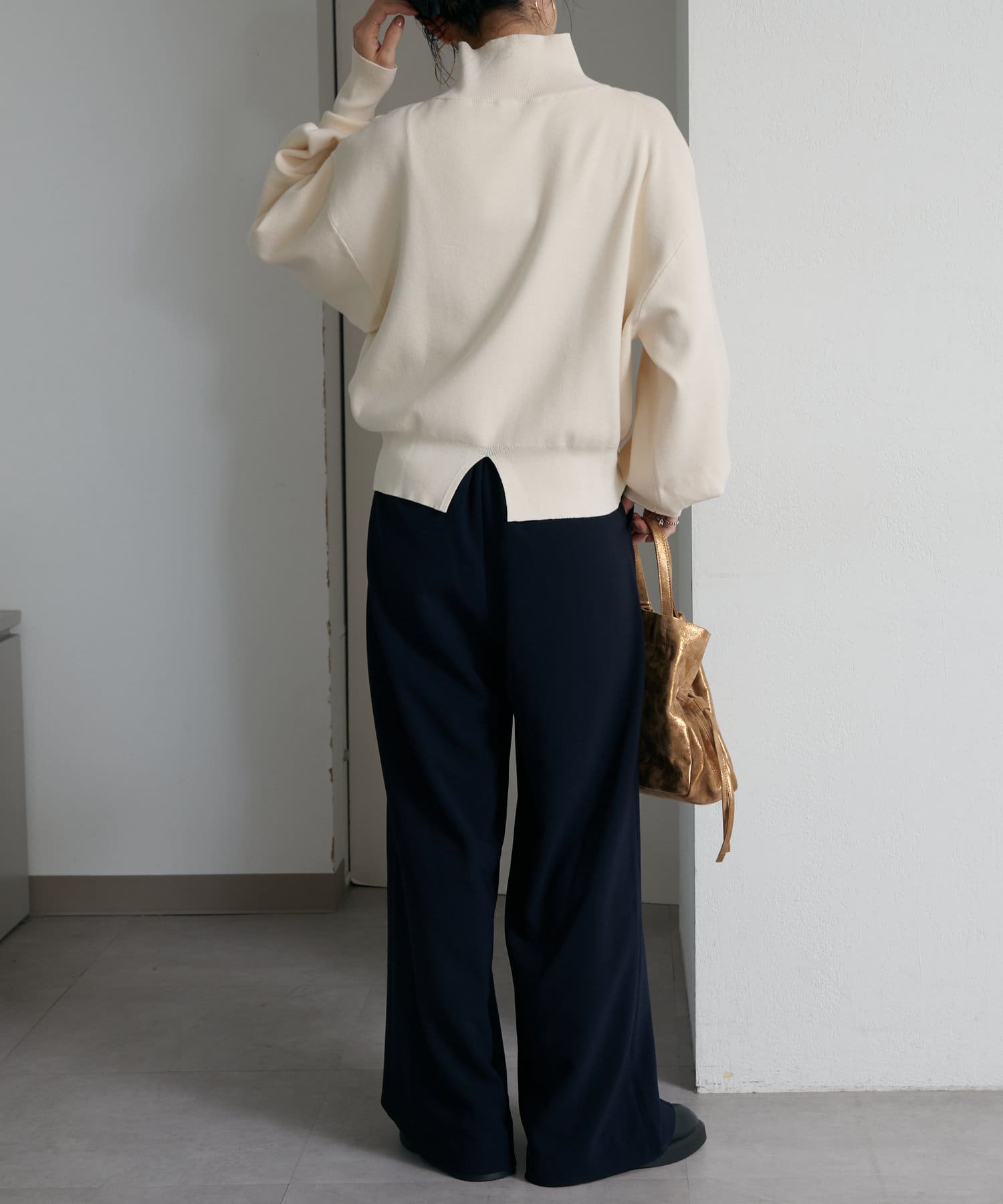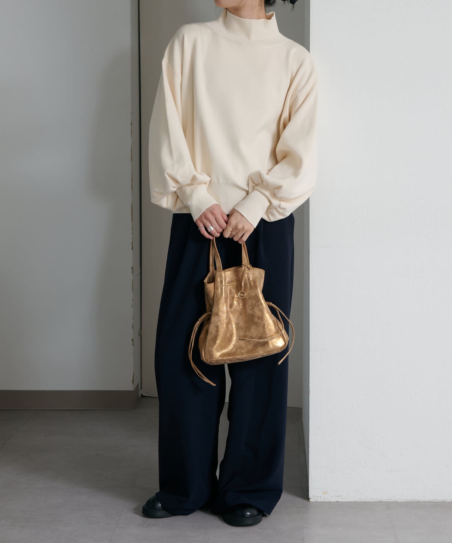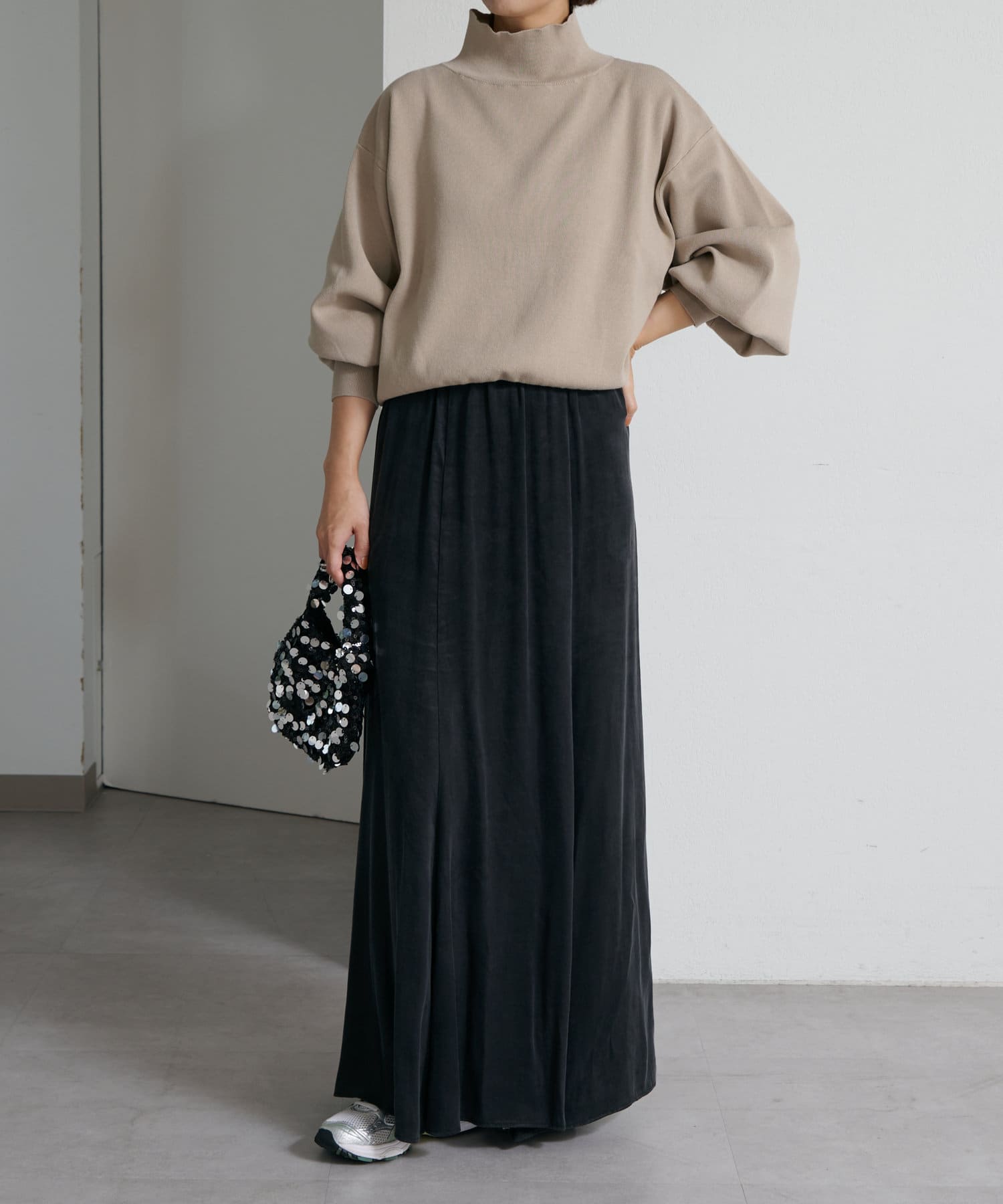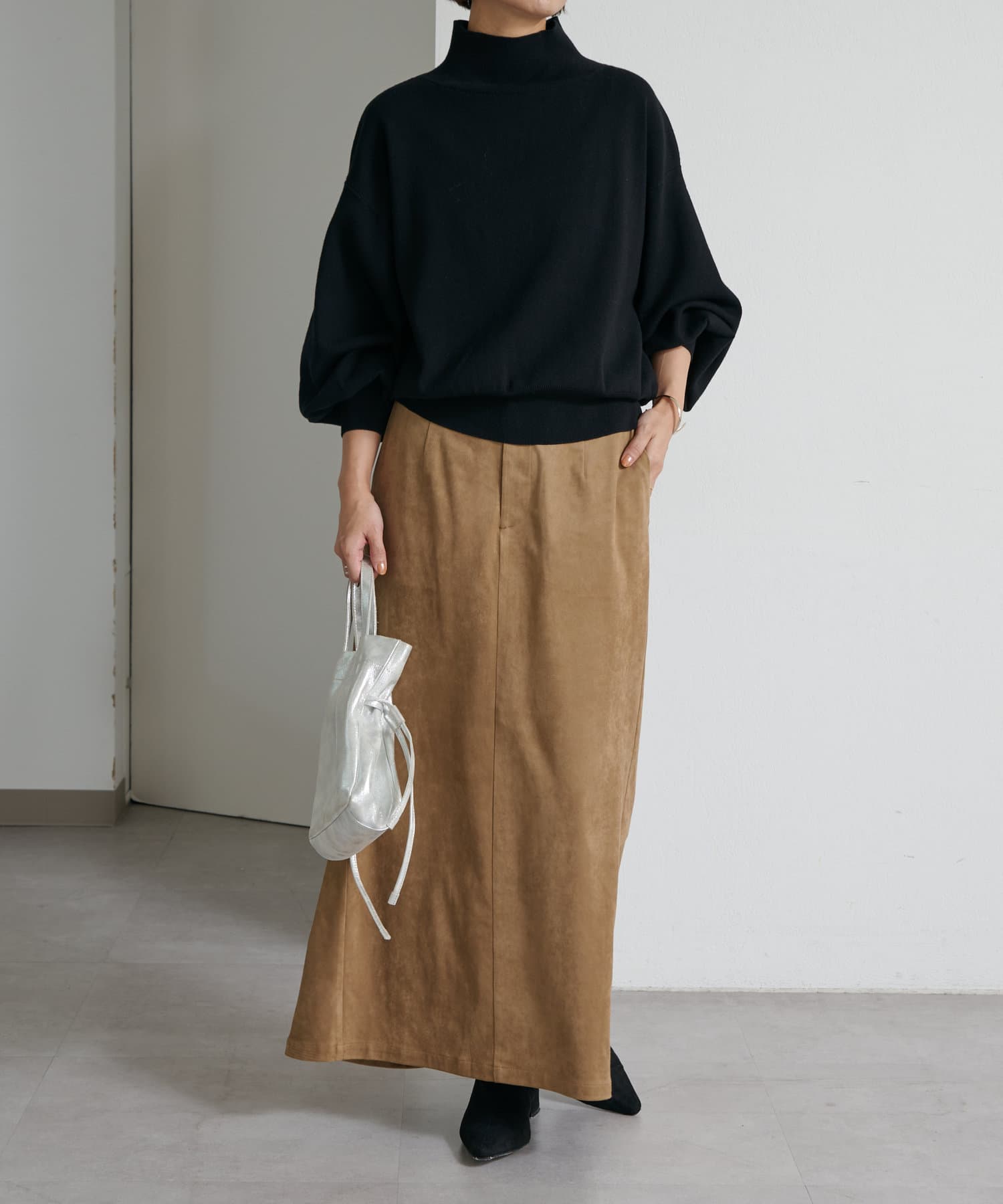 長めの袖口でボリュームスリーブが叶うタートルニットが登場!