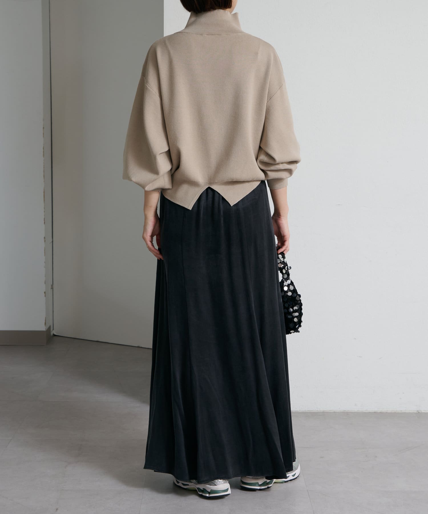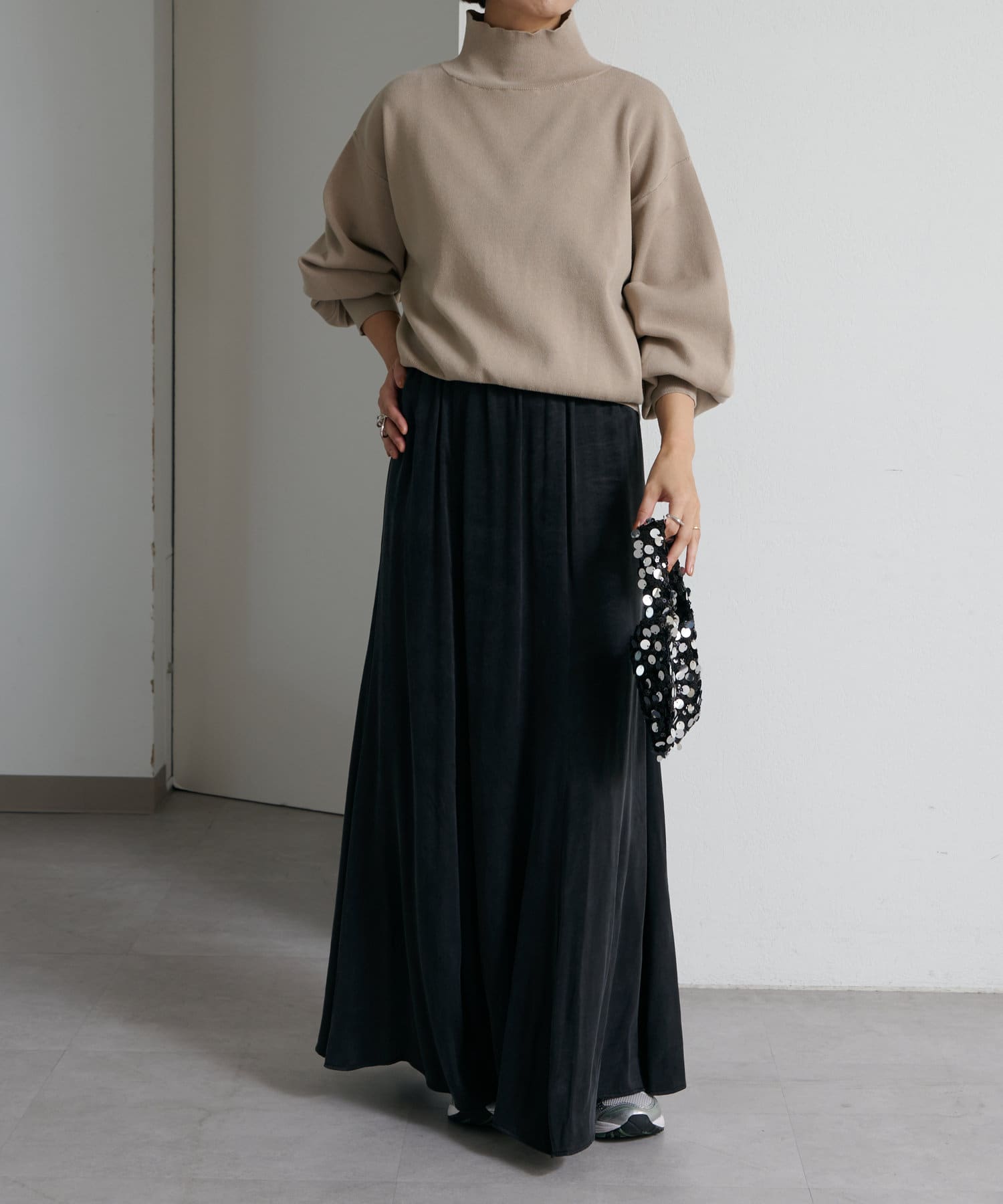 長めの袖口でボリュームスリーブが叶うタートルニットが登場!