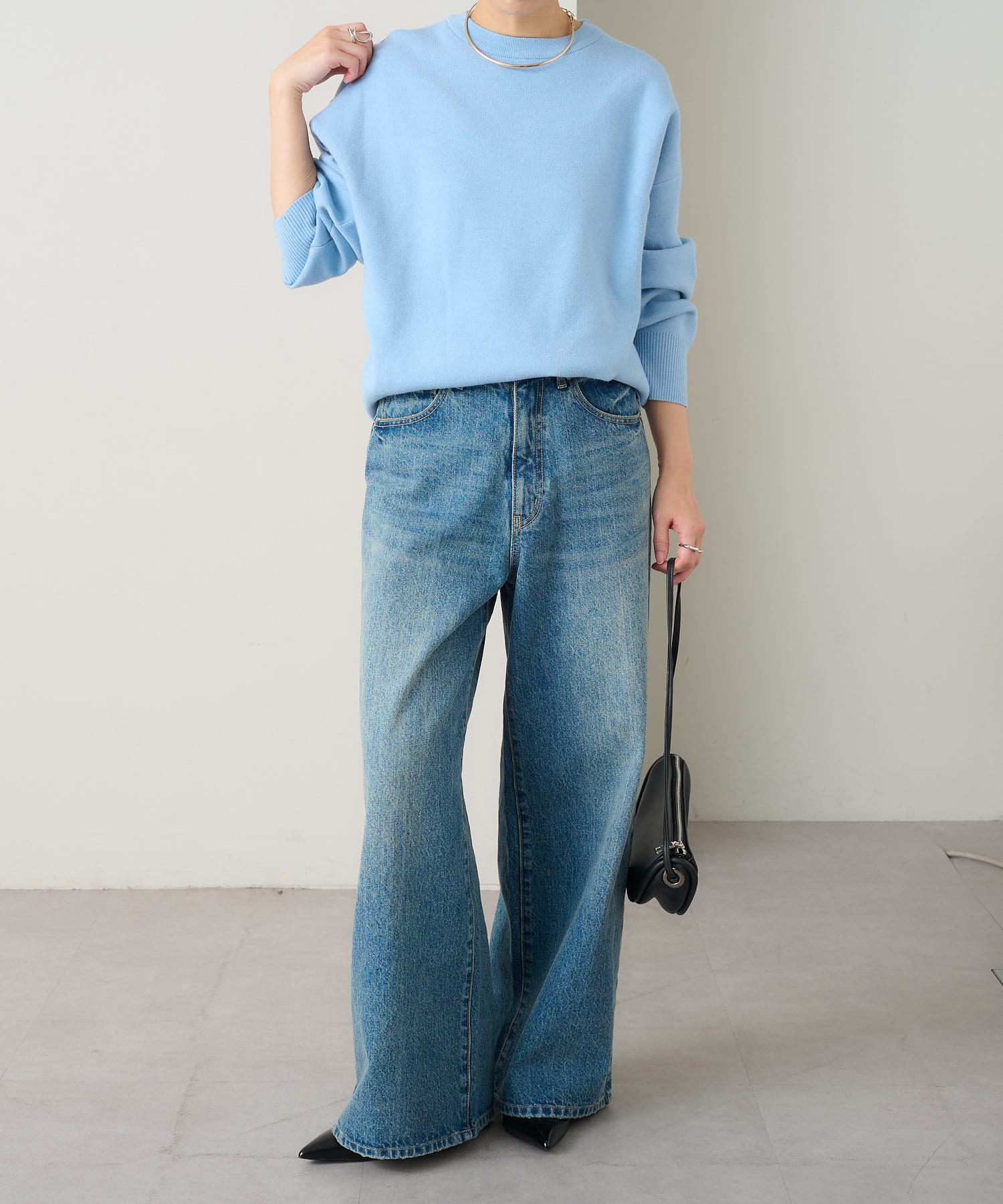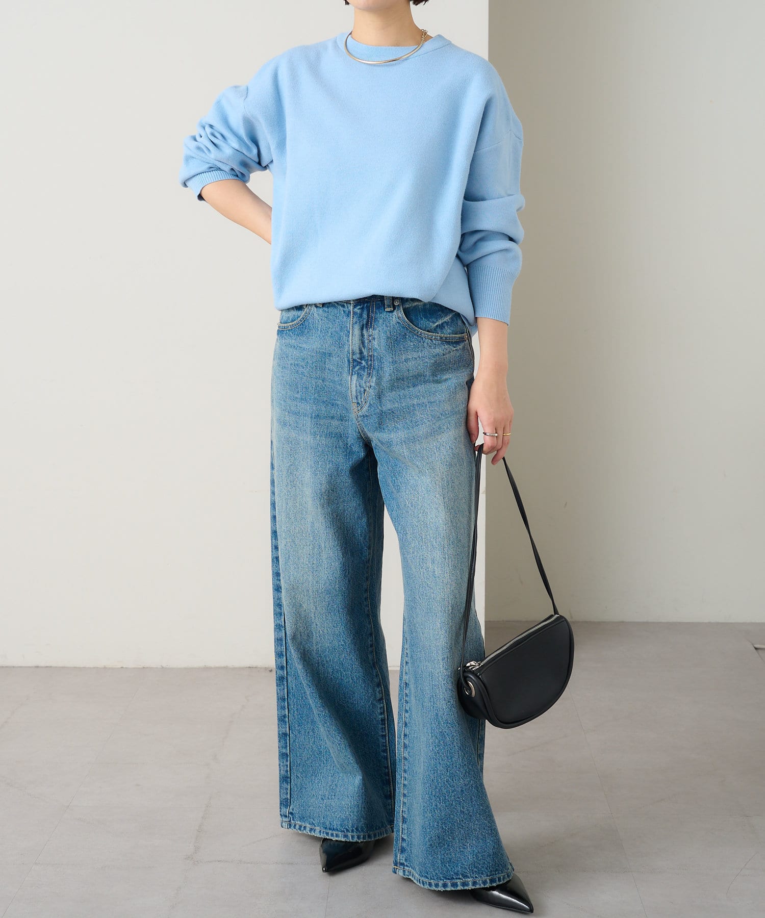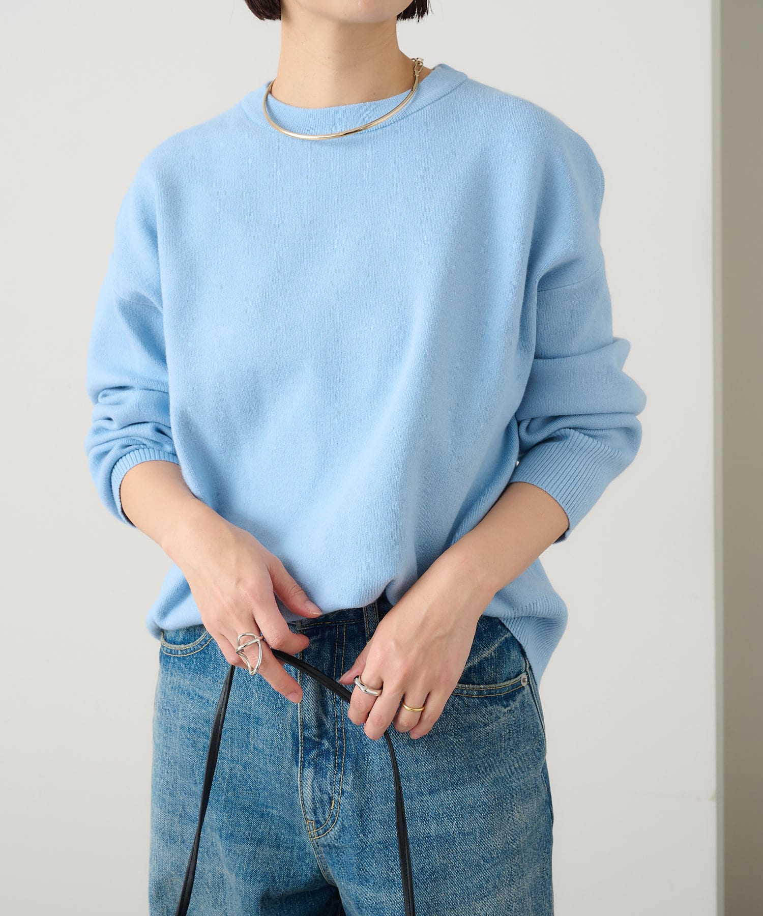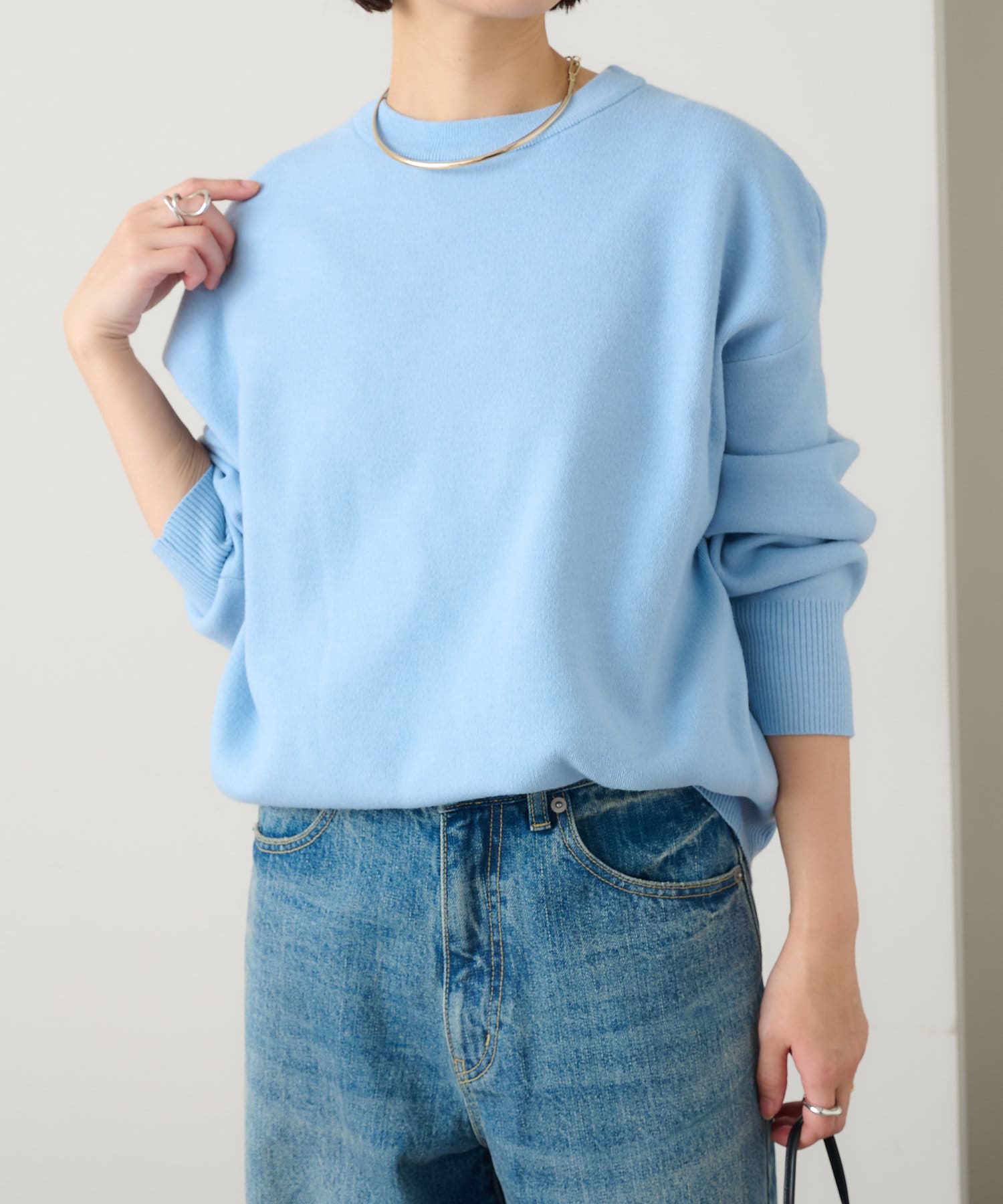 ・しっとりとした心地よい肌触りと程よい厚みで、合わせやすくつい手に取ってしまうニットです。