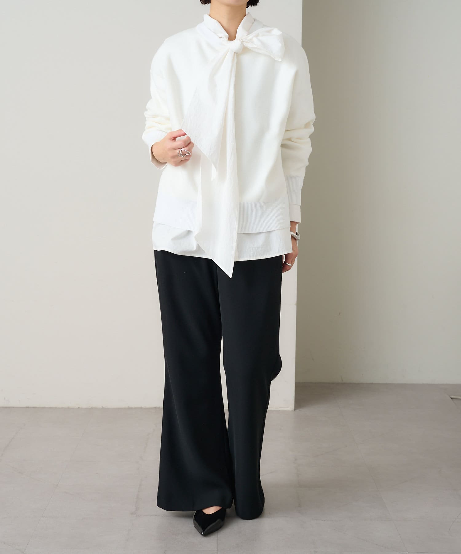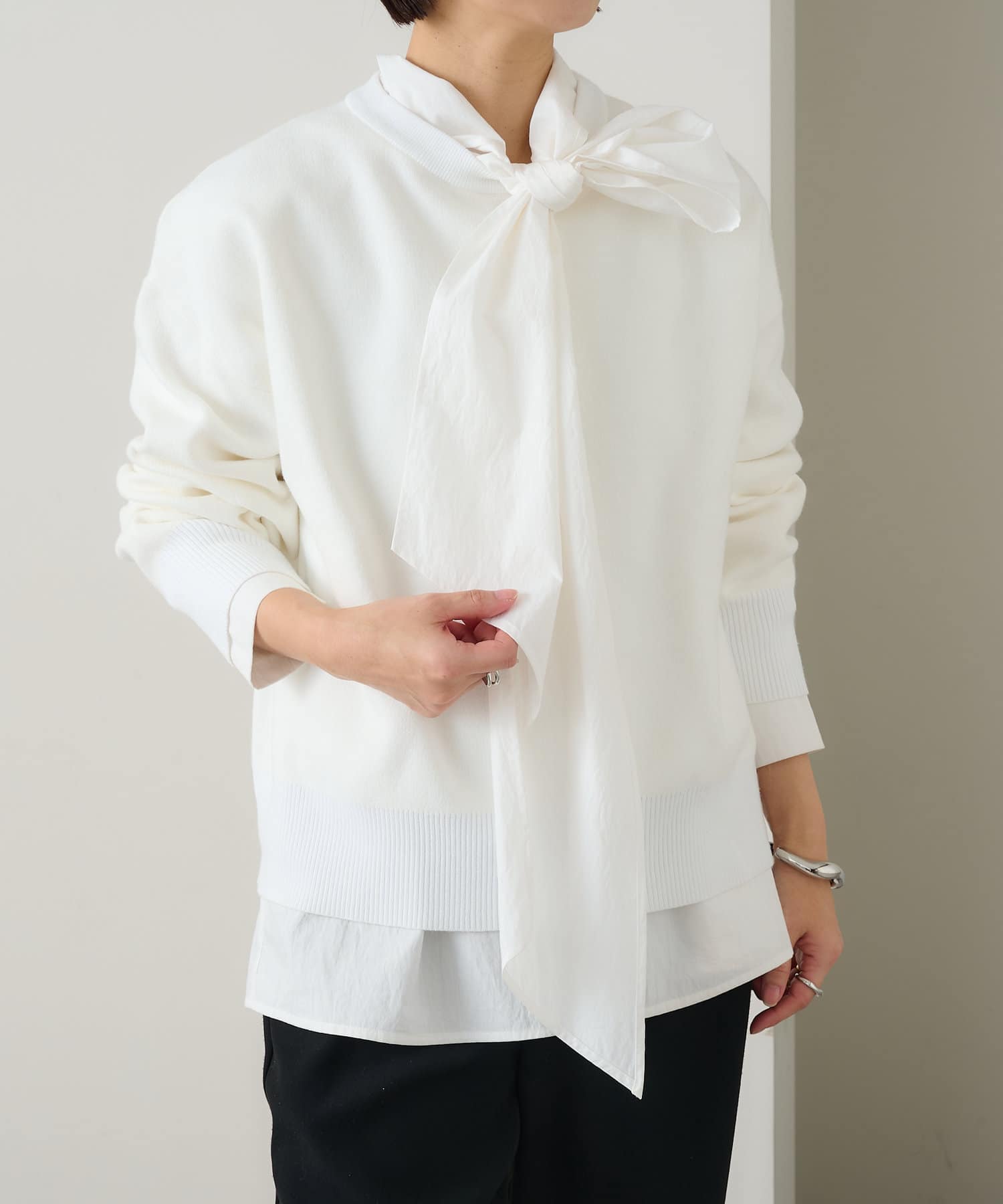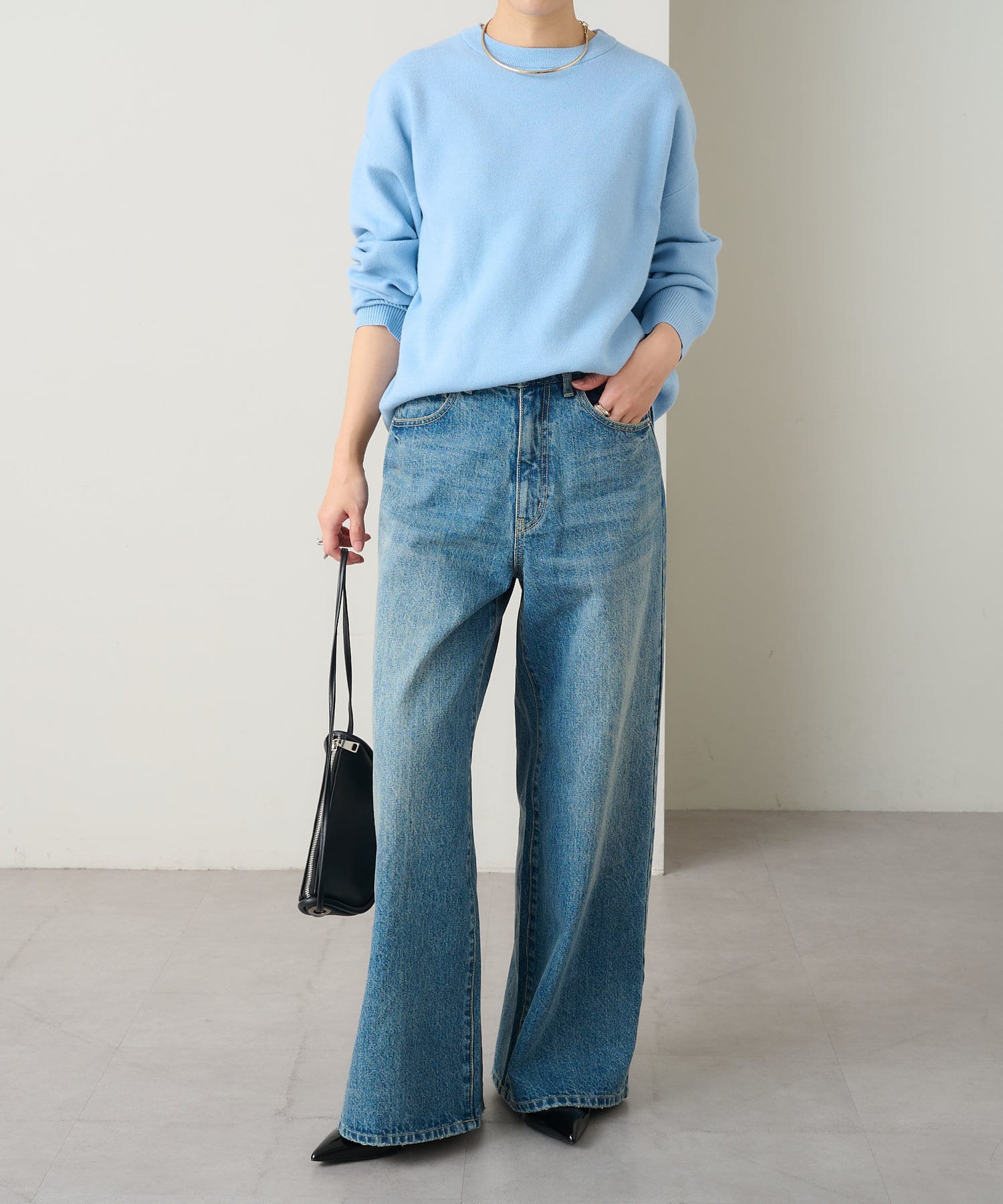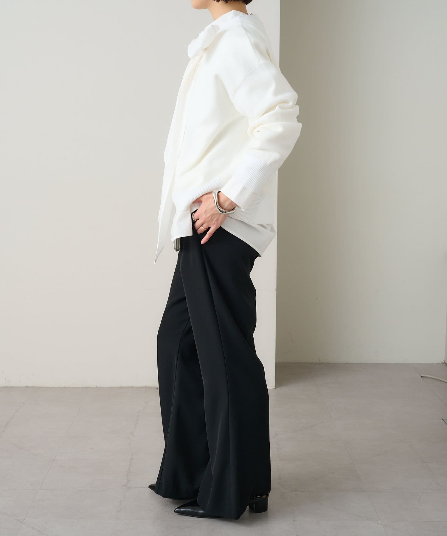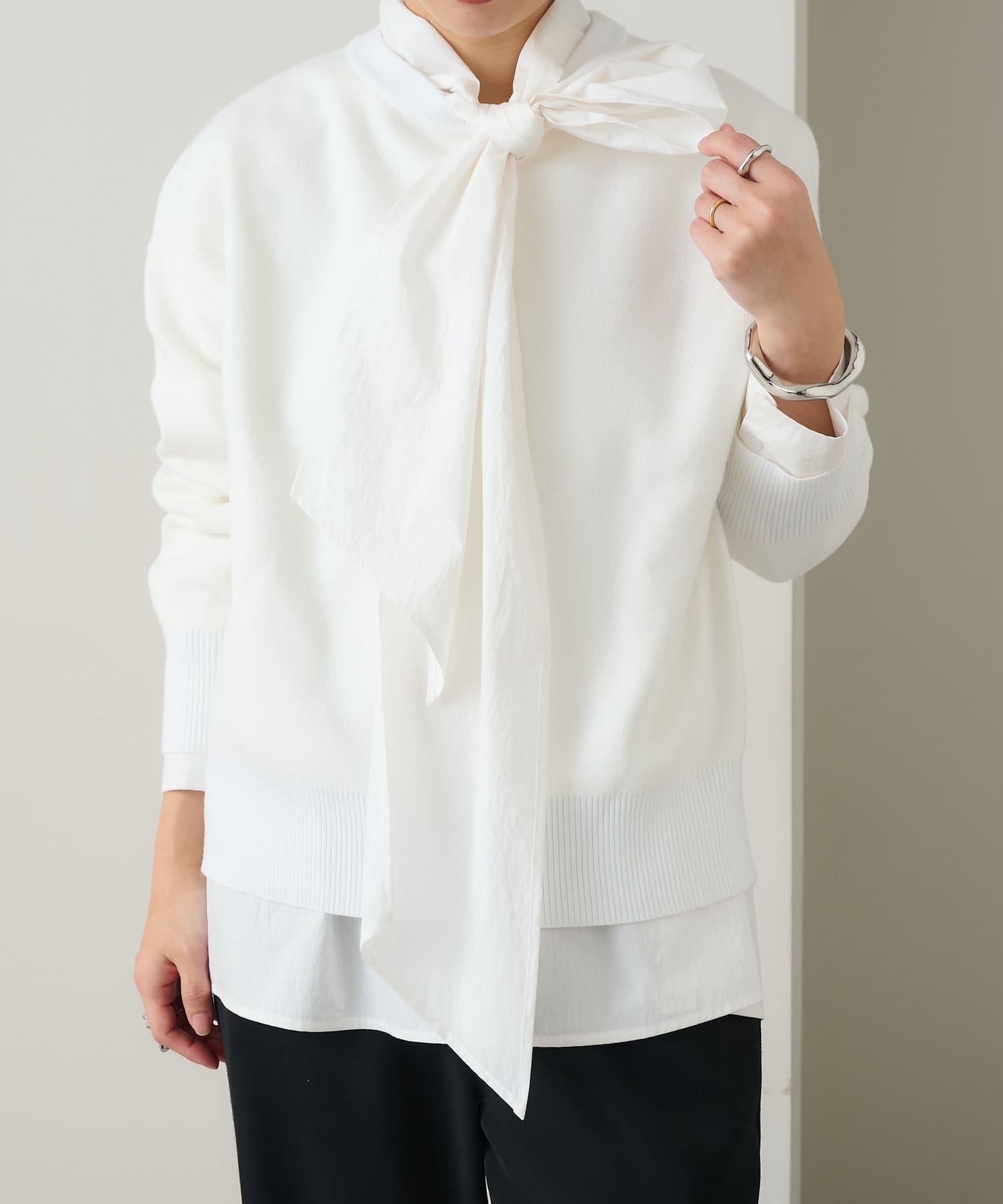 ・しっとりとした心地よい肌触りと程よい厚みで、合わせやすくつい手に取ってしまうニットです。