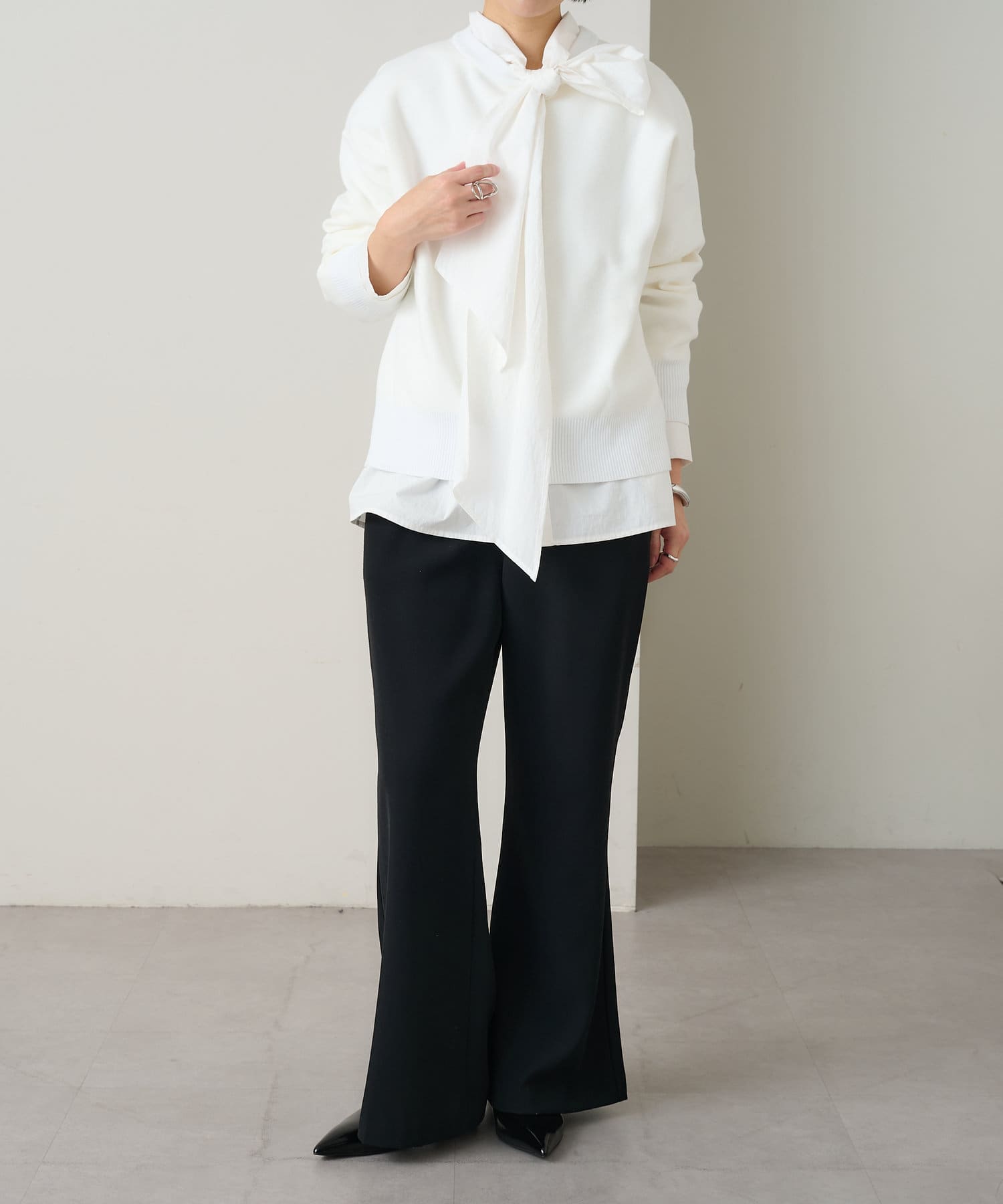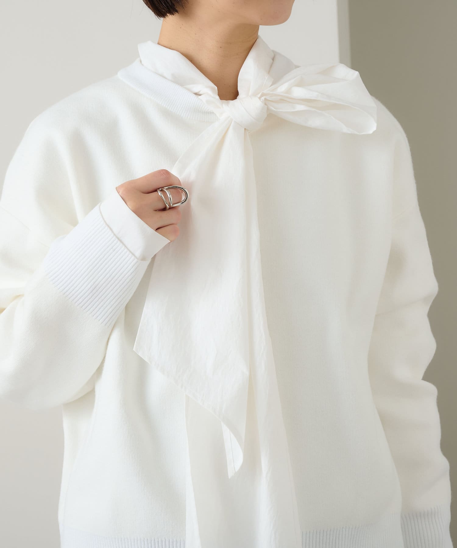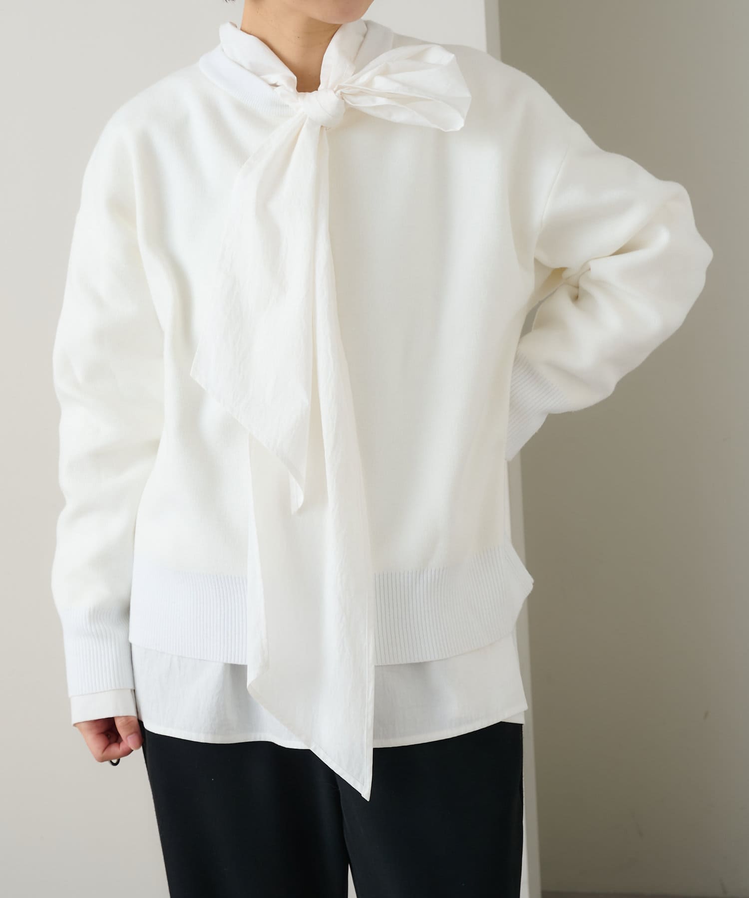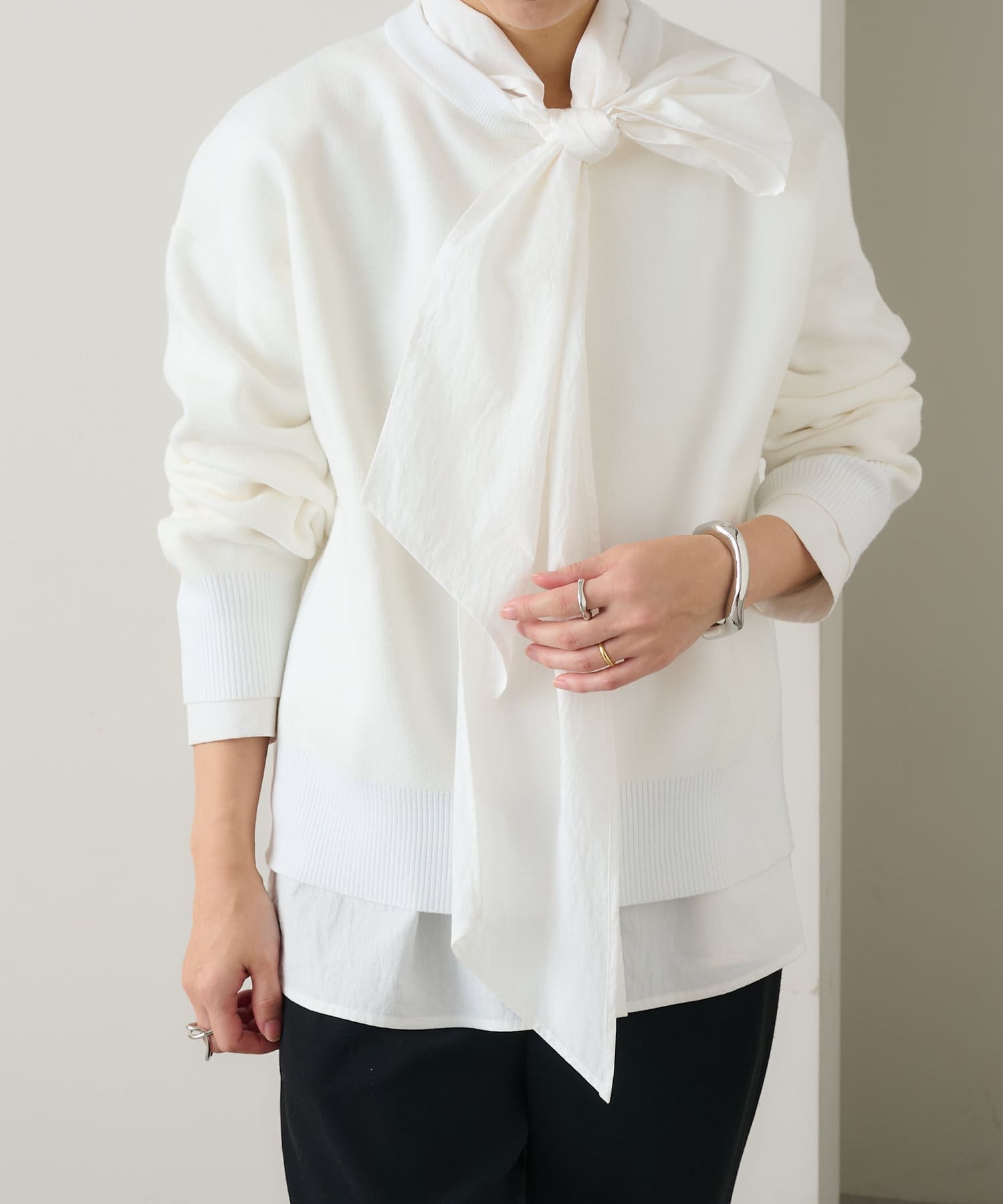 ・しっとりとした心地よい肌触りと程よい厚みで、合わせやすくつい手に取ってしまうニットです。