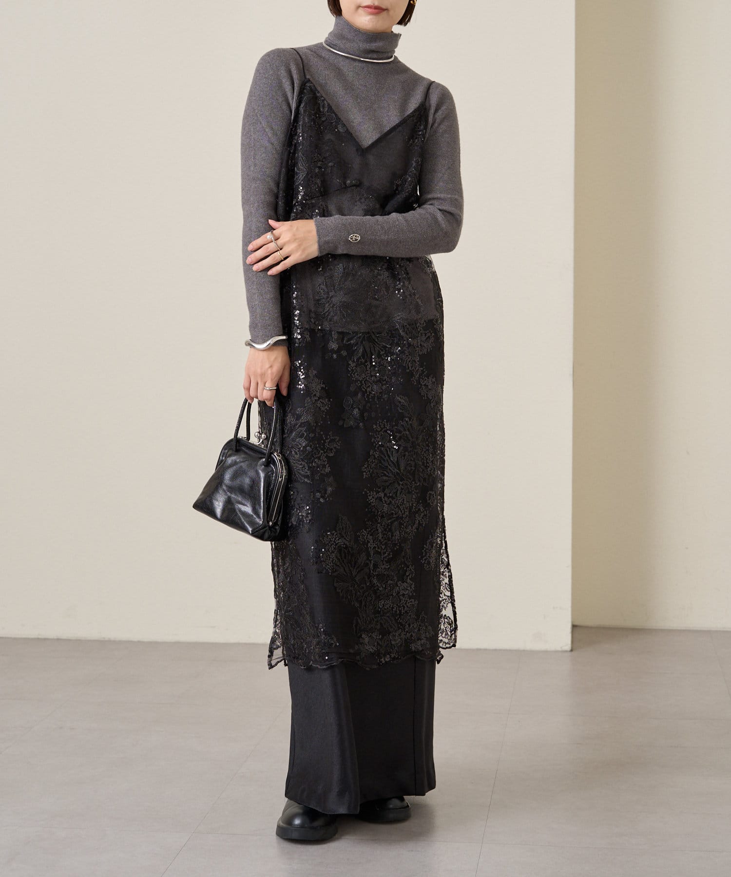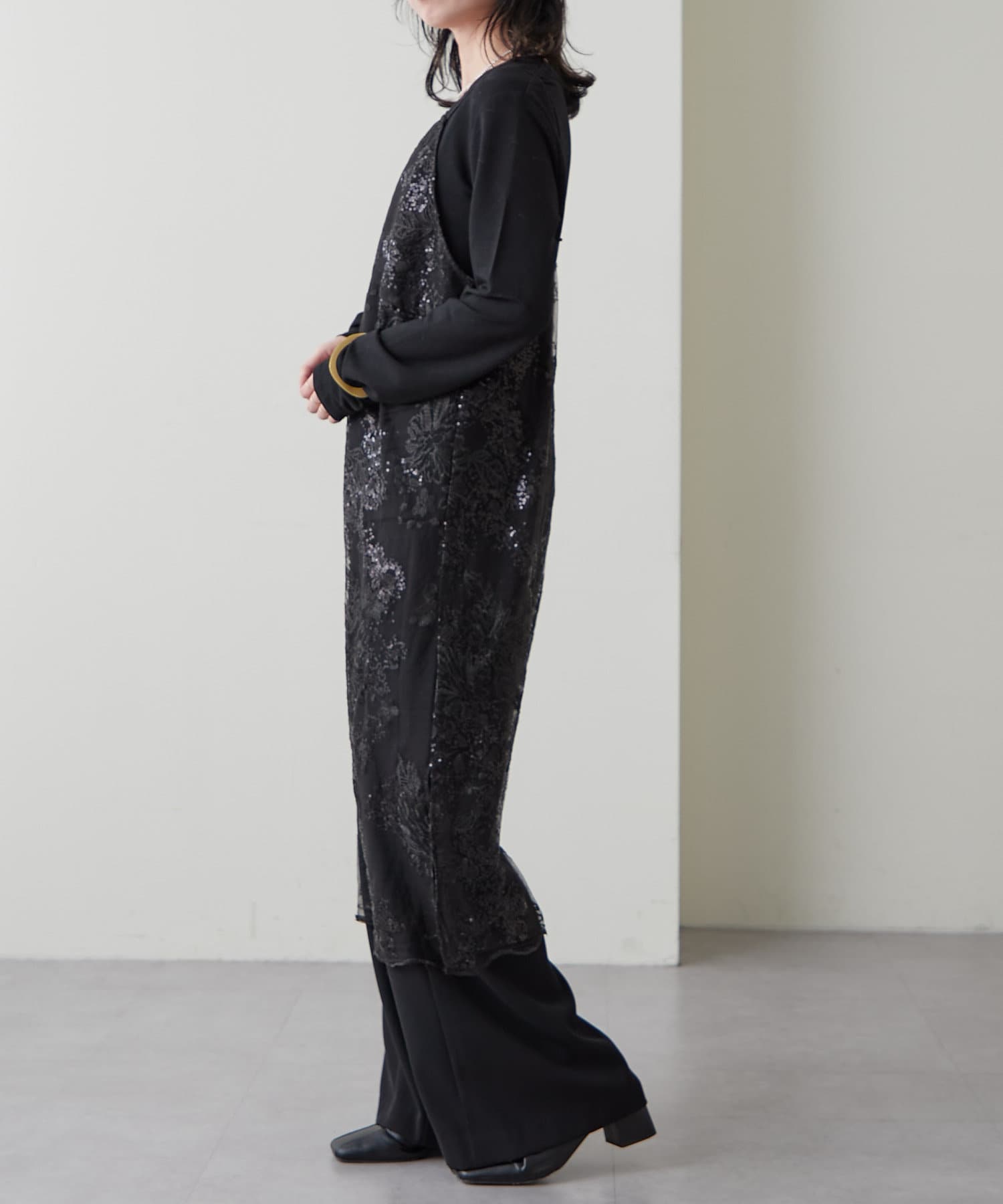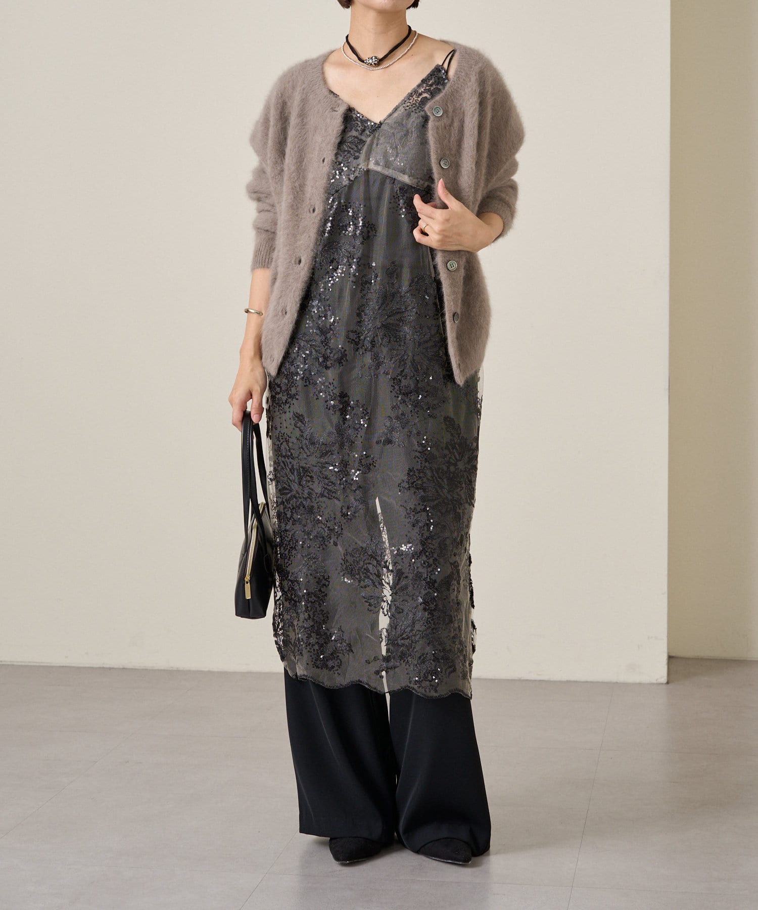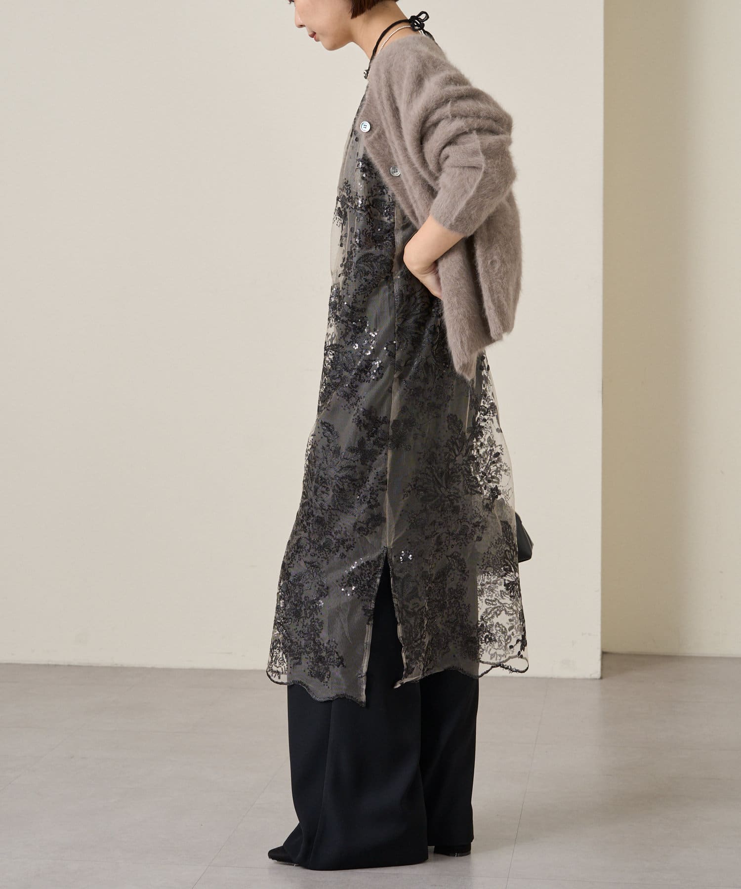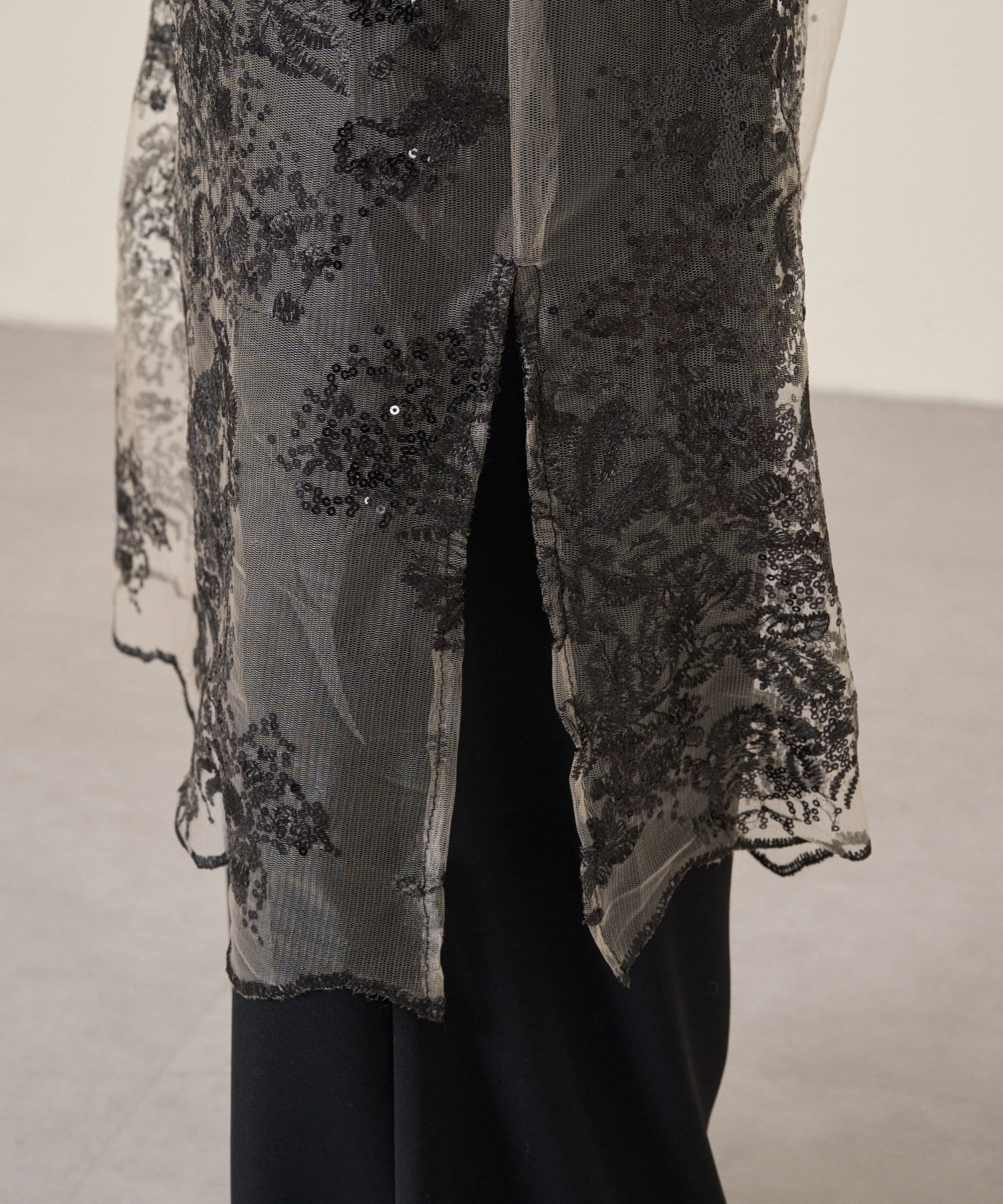 ・全体に細かな刺繍が施され、スパンコールがさり気なくも華やかな雰囲気。