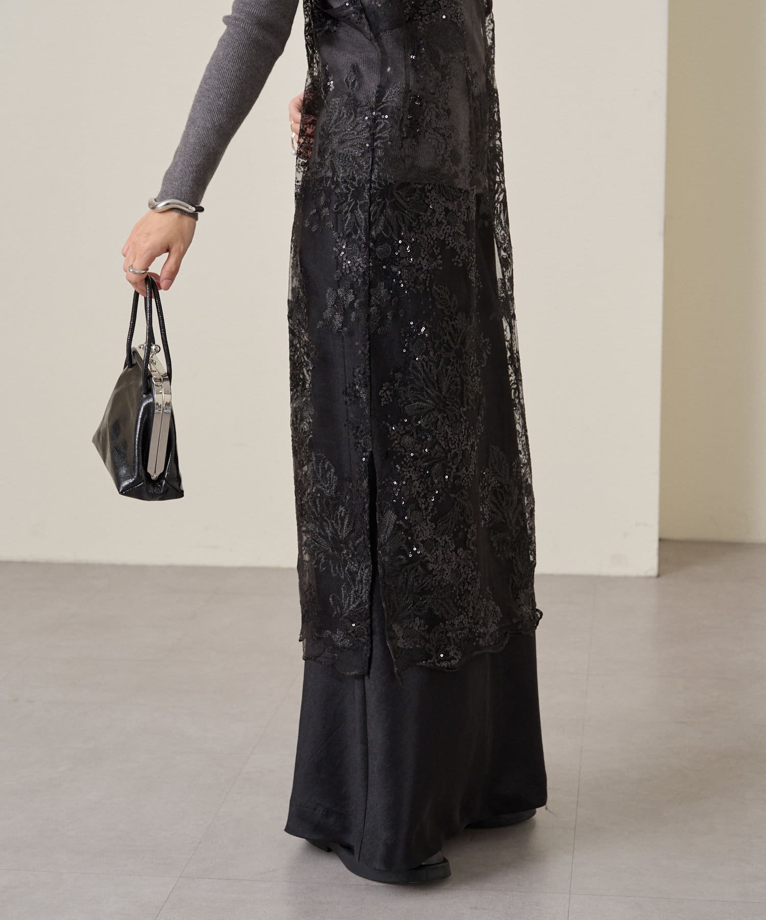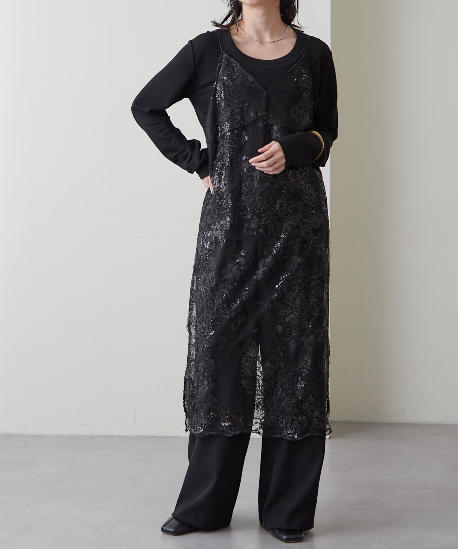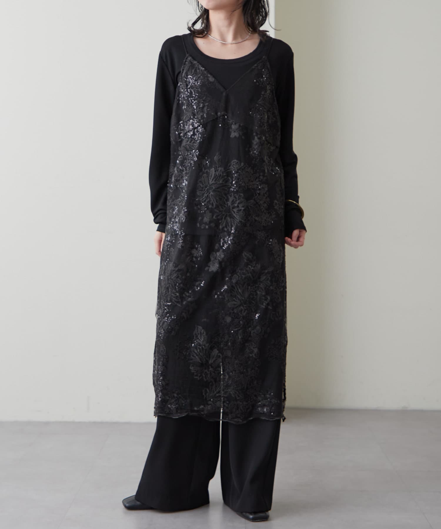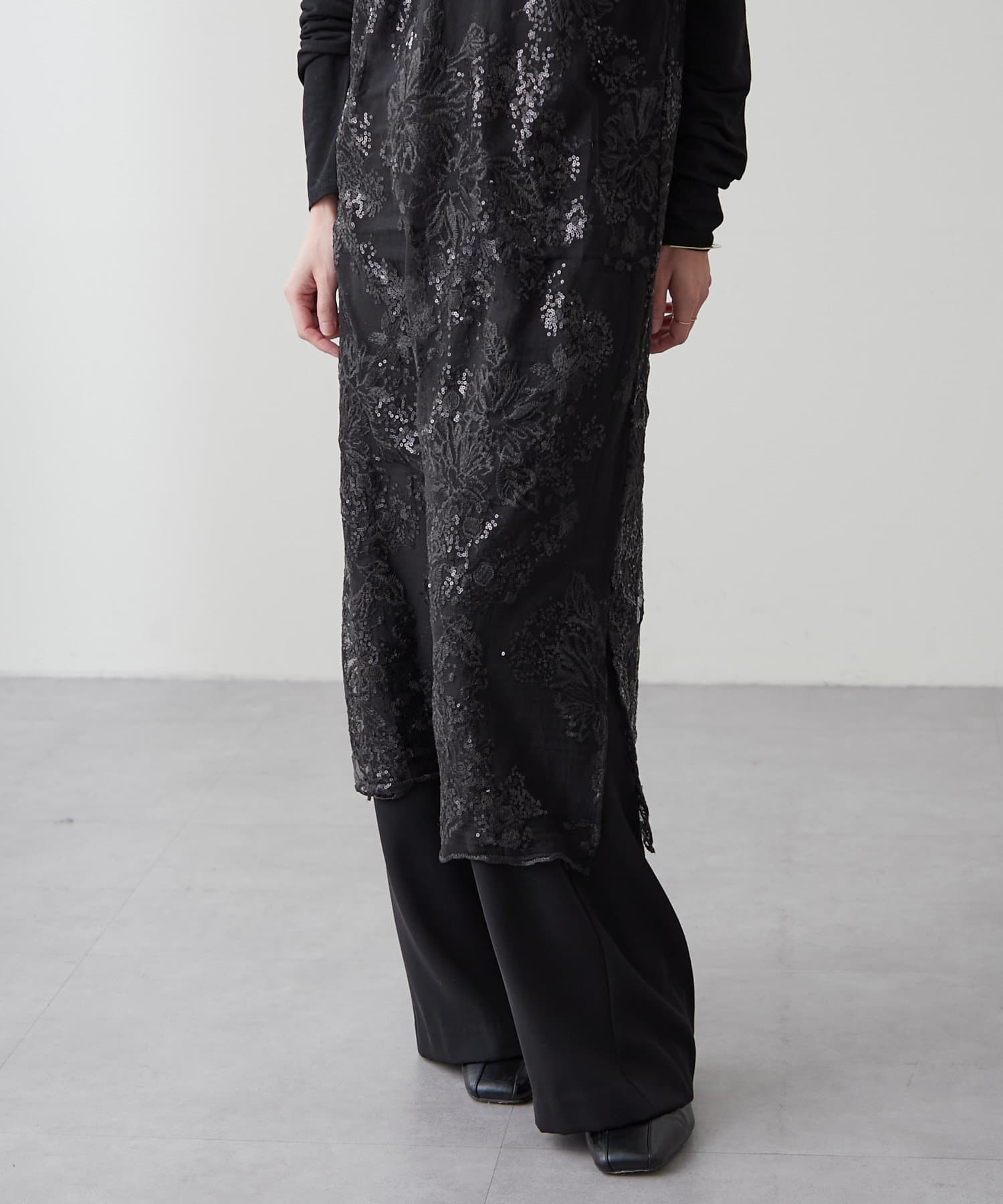 ・全体に細かな刺繍が施され、スパンコールがさり気なくも華やかな雰囲気。