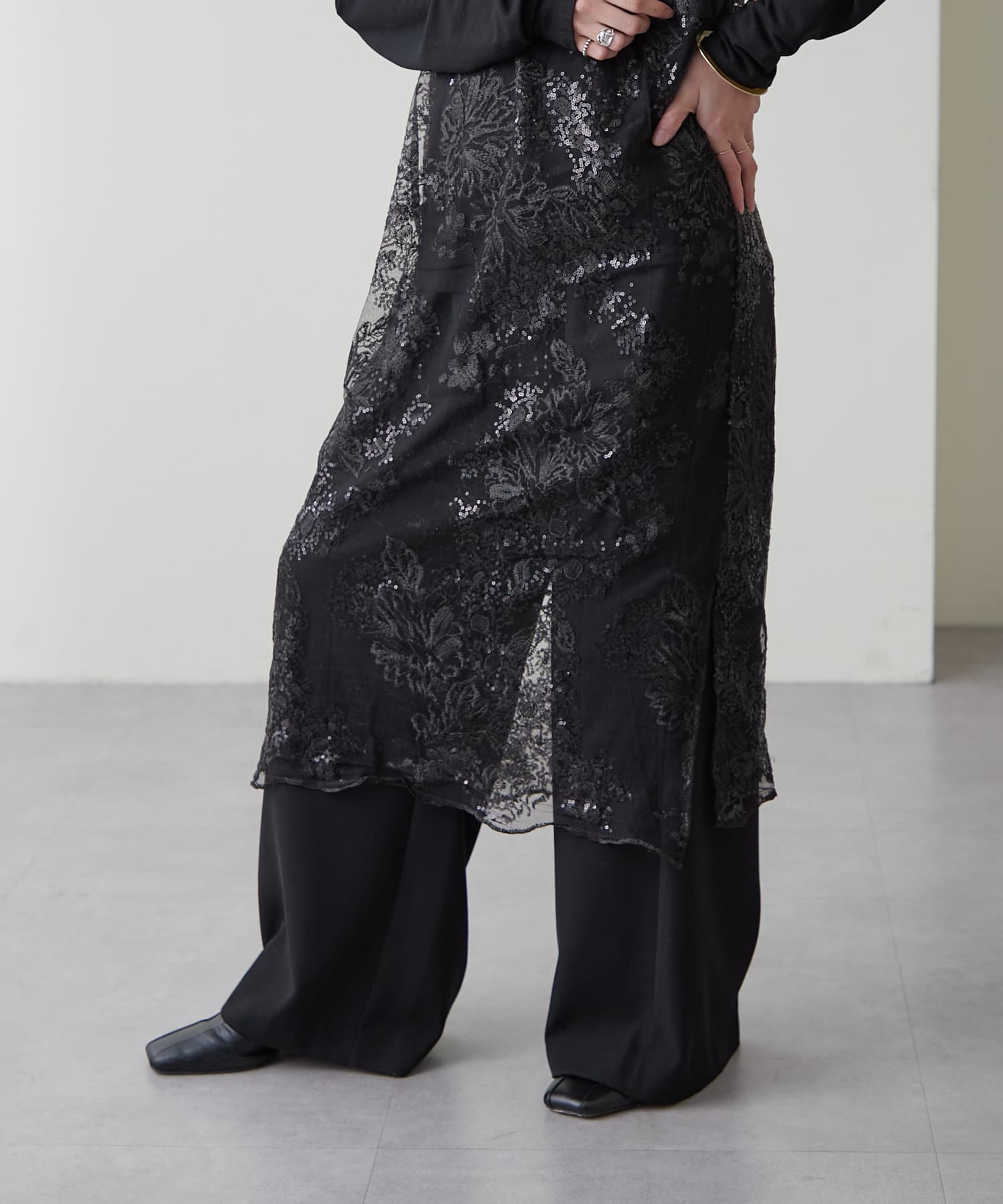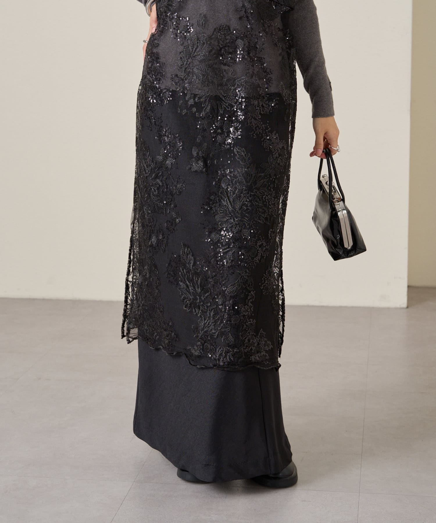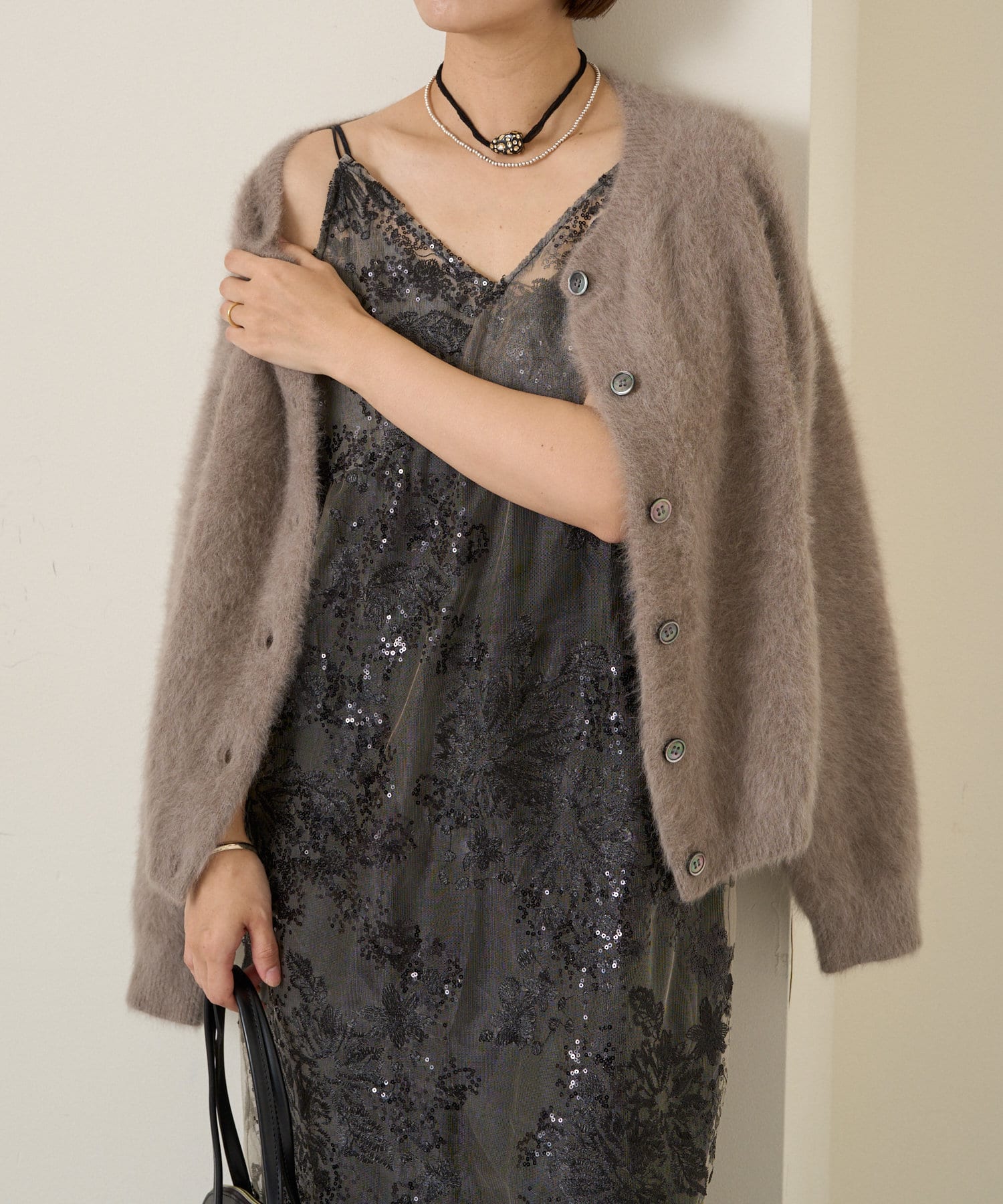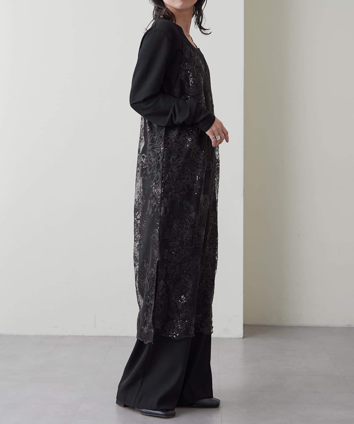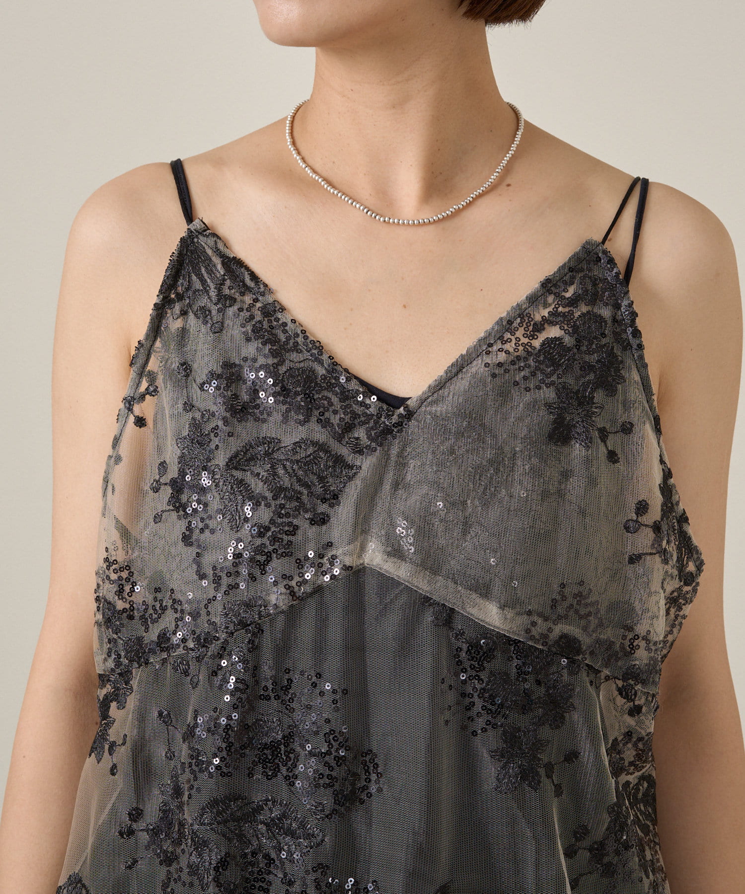 ・全体に細かな刺繍が施され、スパンコールがさり気なくも華やかな雰囲気。