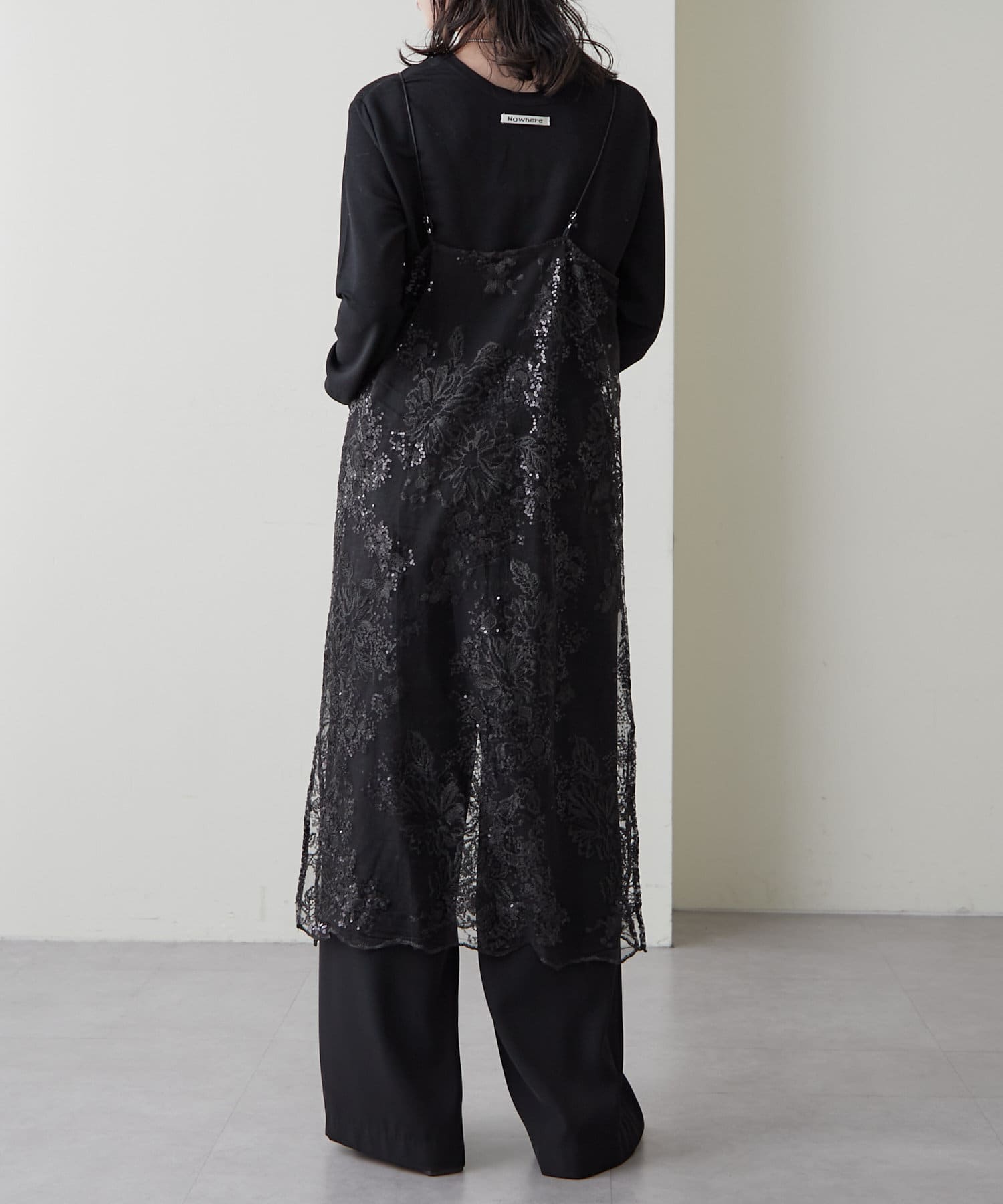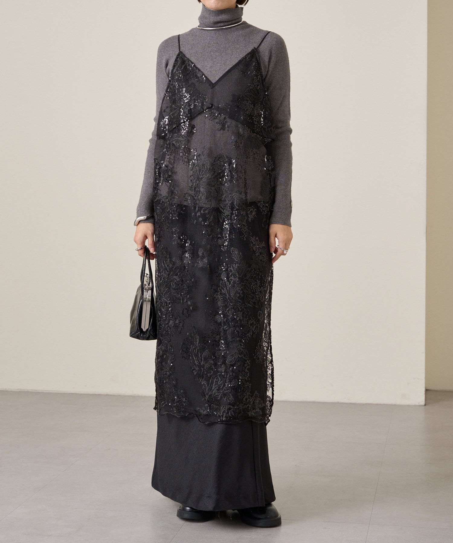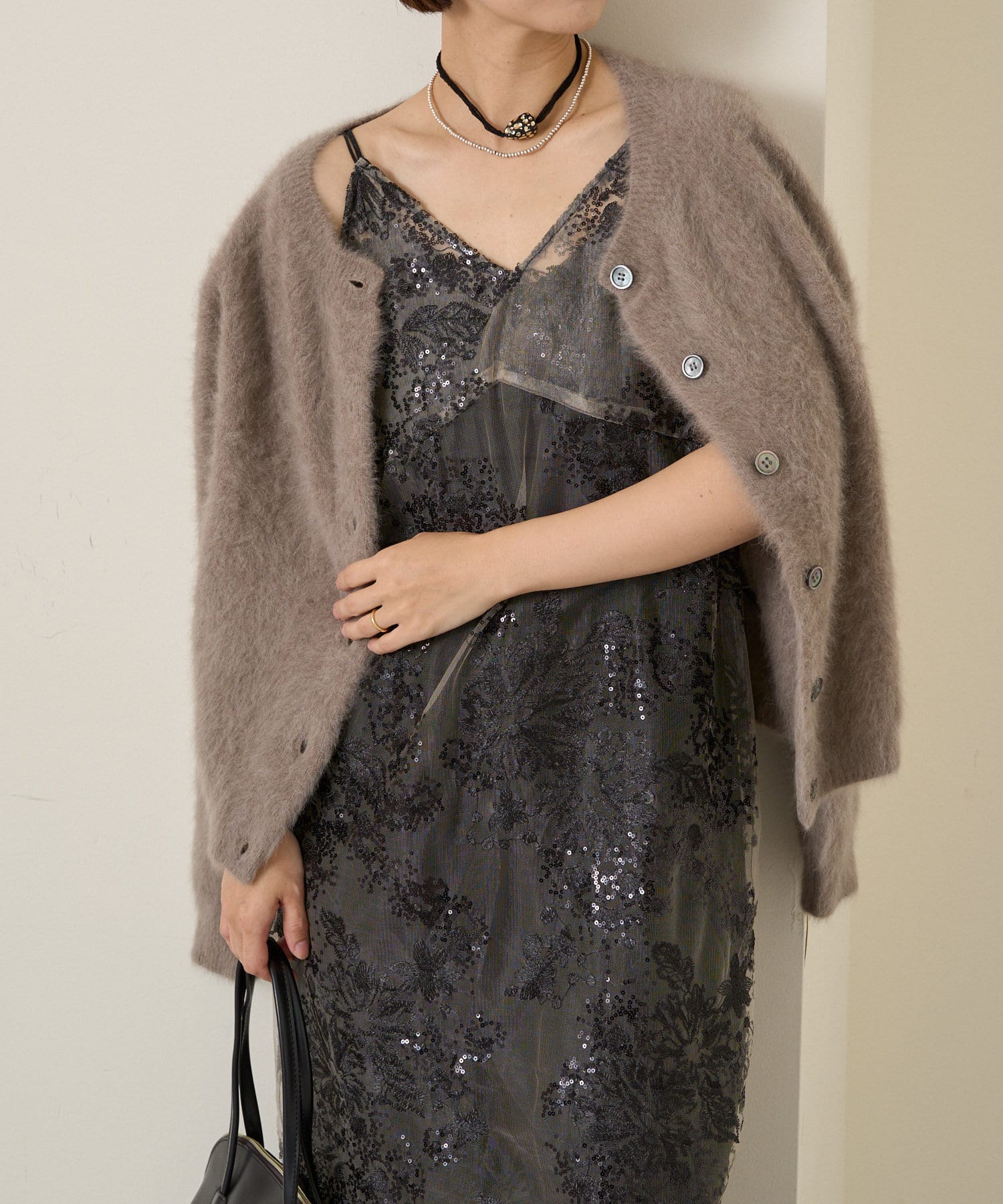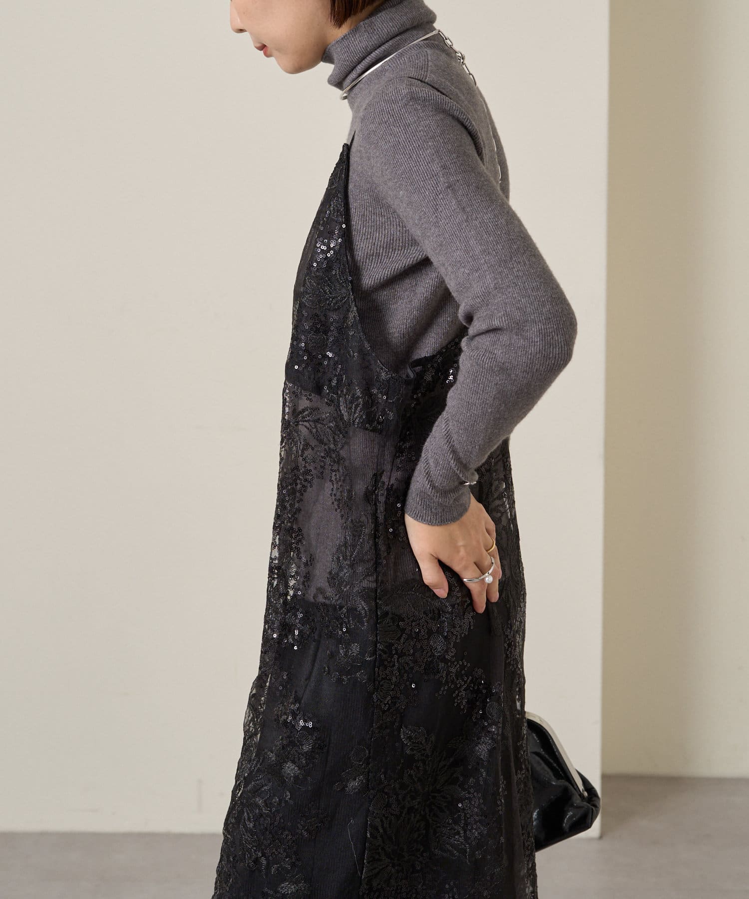 ・華奢な肩紐にシアー感が女性らしく上品なワンピース。