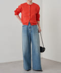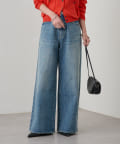 ・ハイウエストデザインや、体系を拾いにくいワイドなシルエットがスタイルアップ効果を演出。