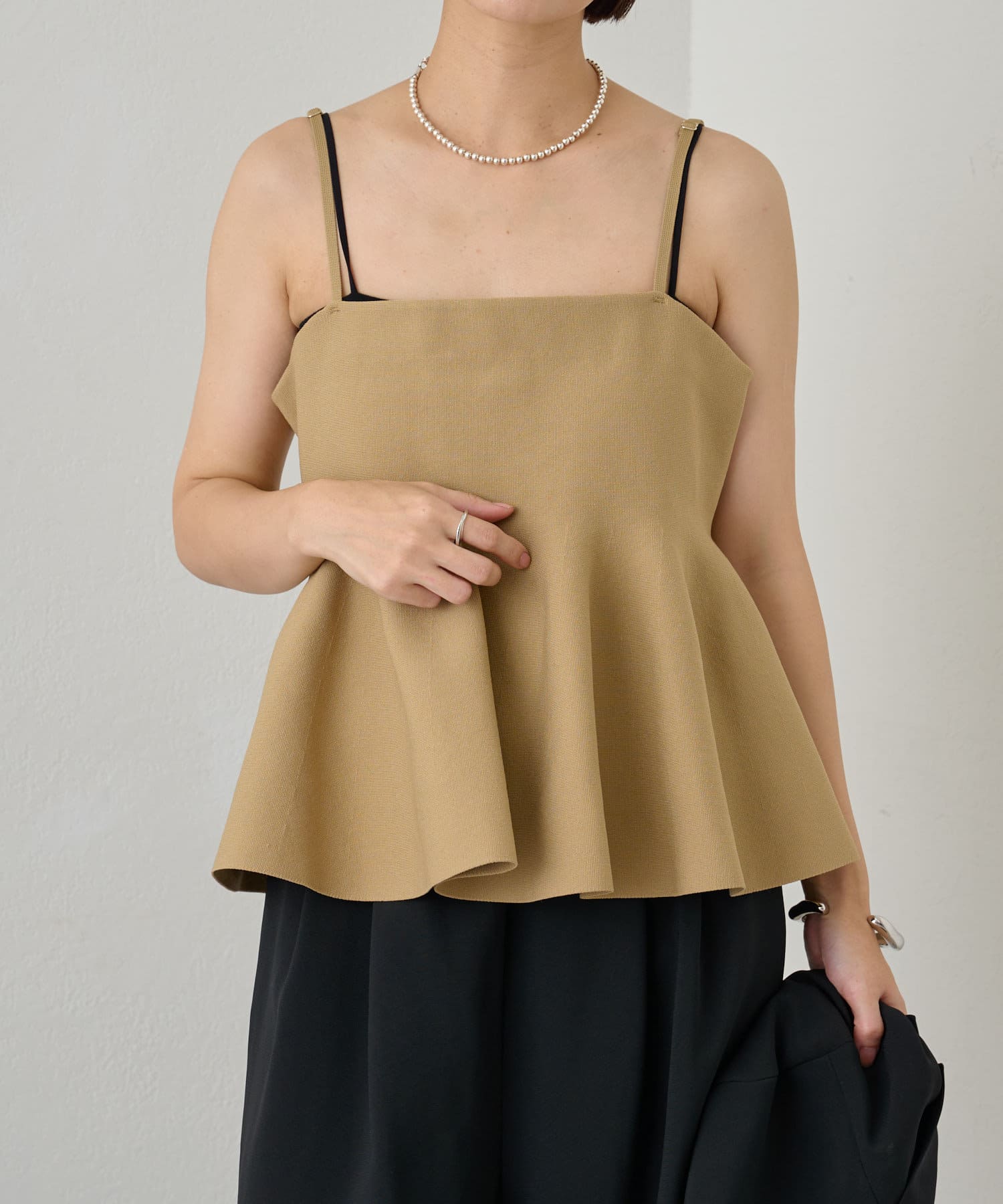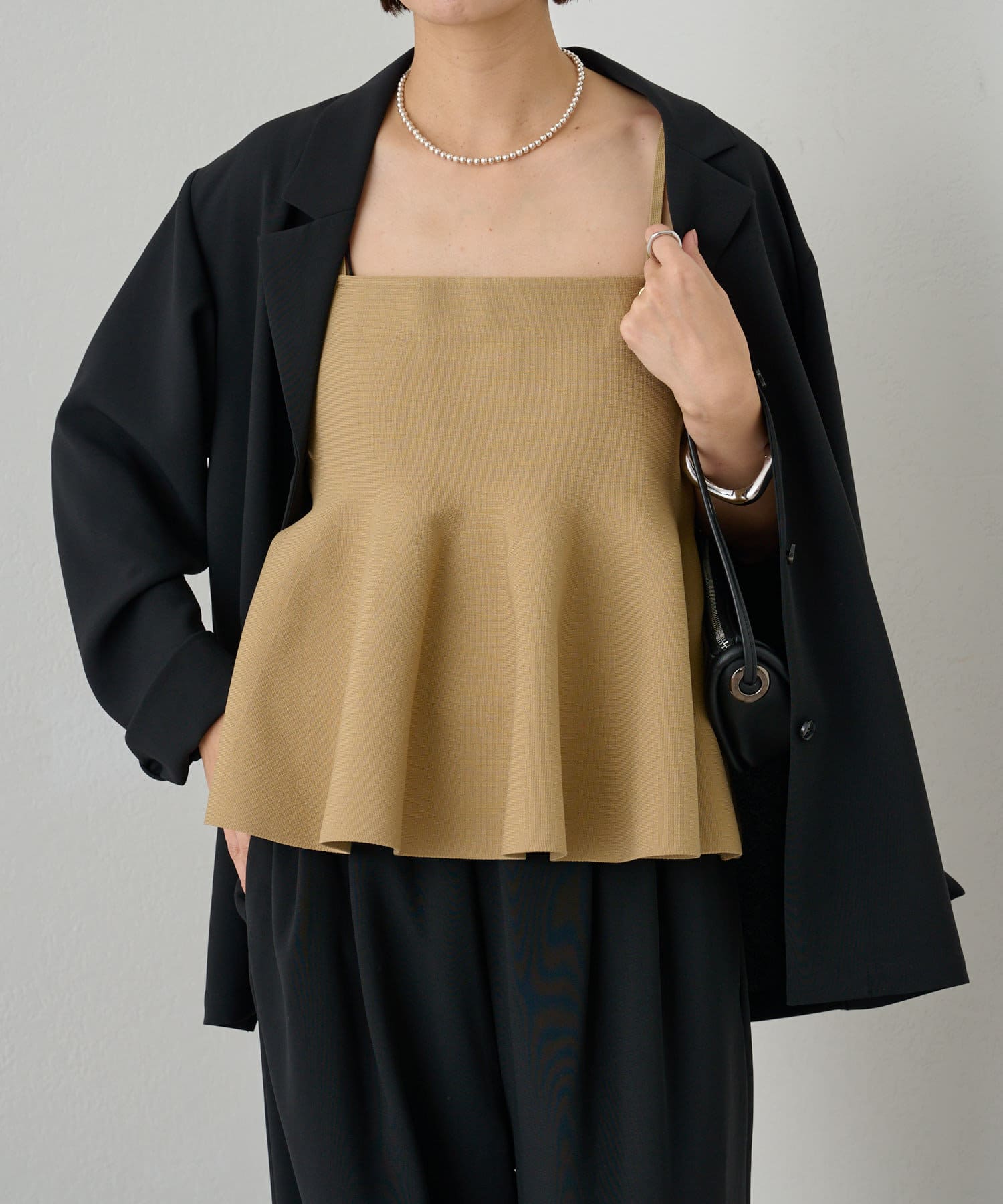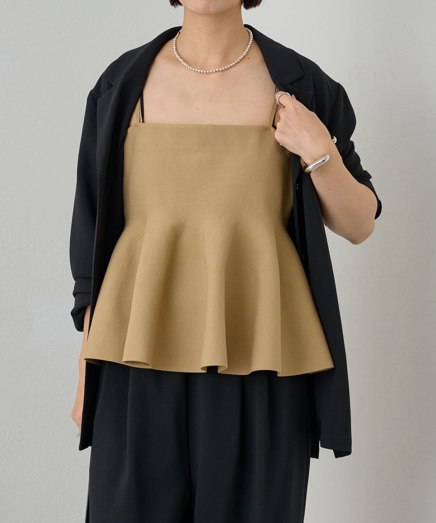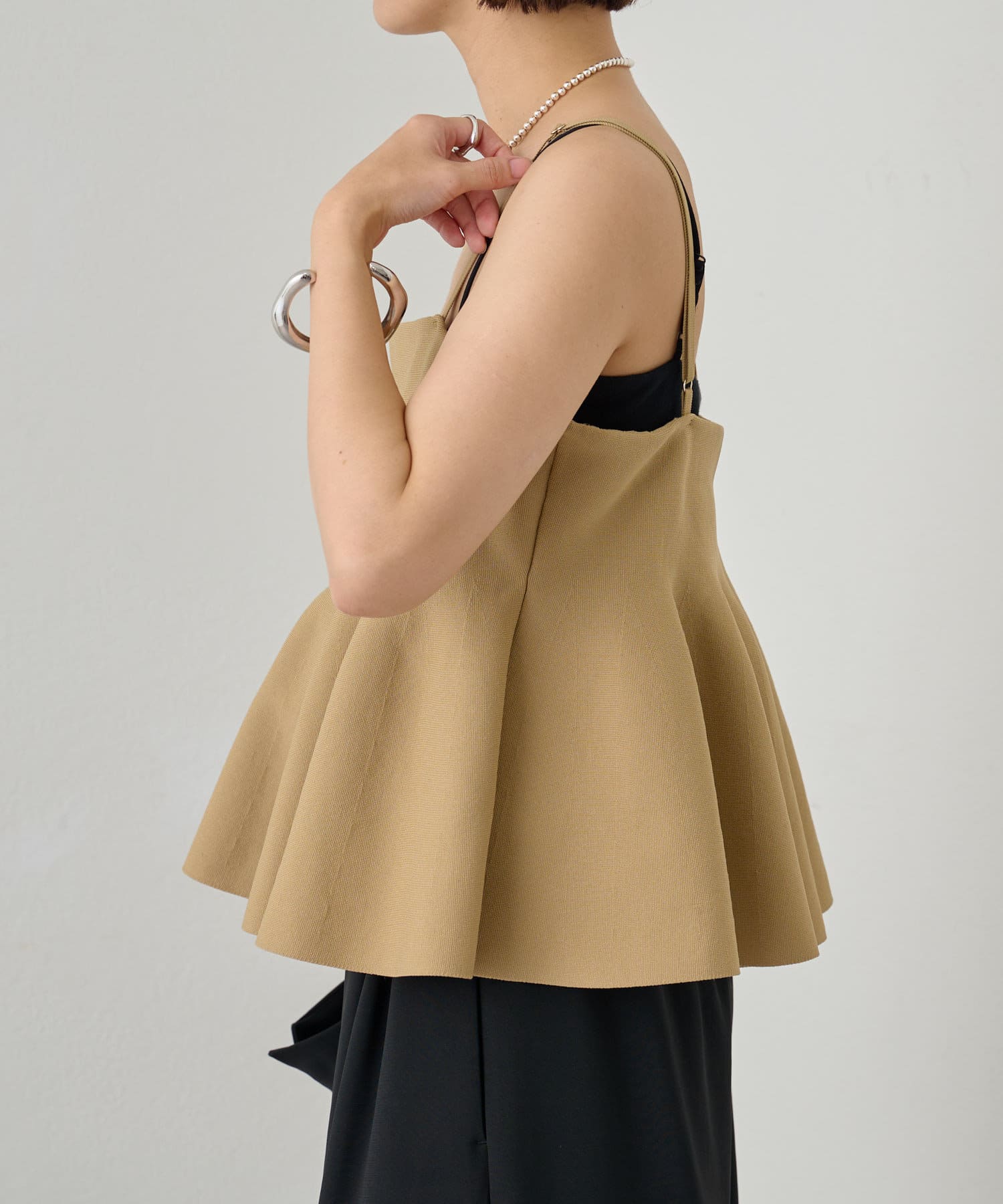スタイリングに大人フェミニンなアクセントを加えるペプラムニットビスチェ