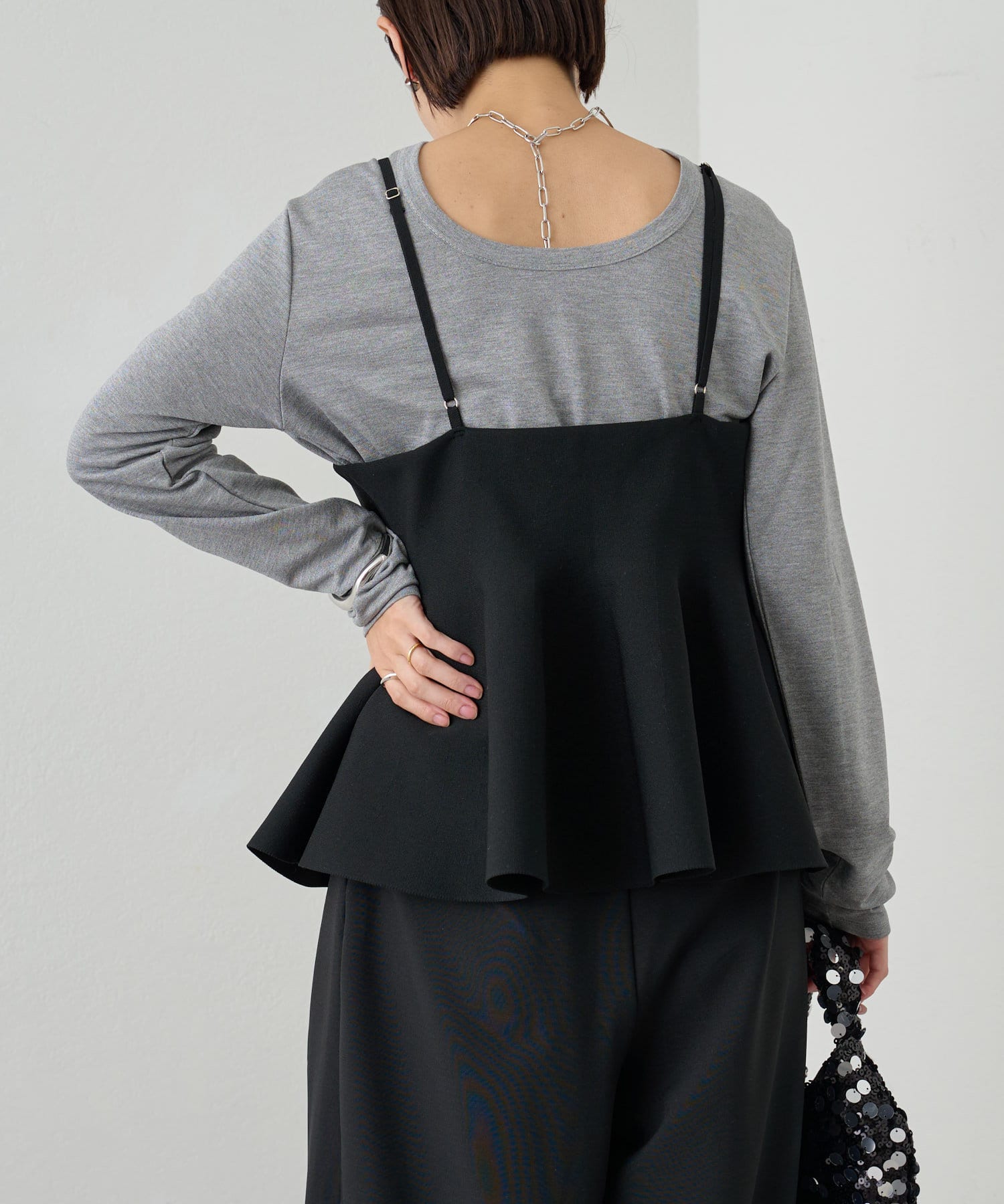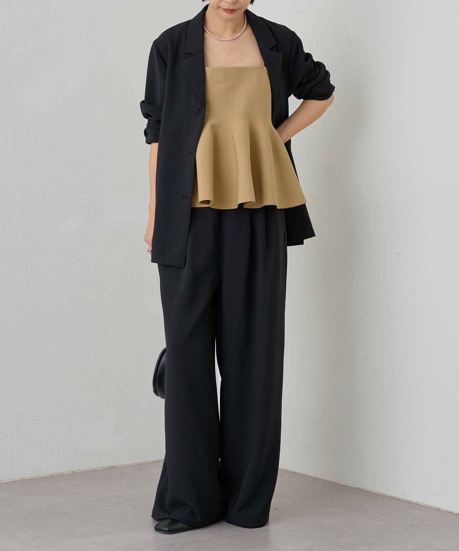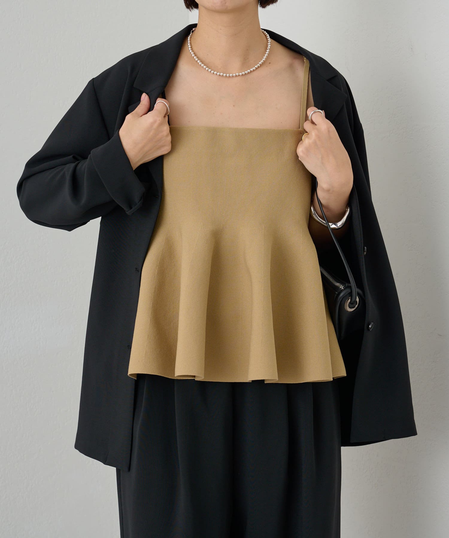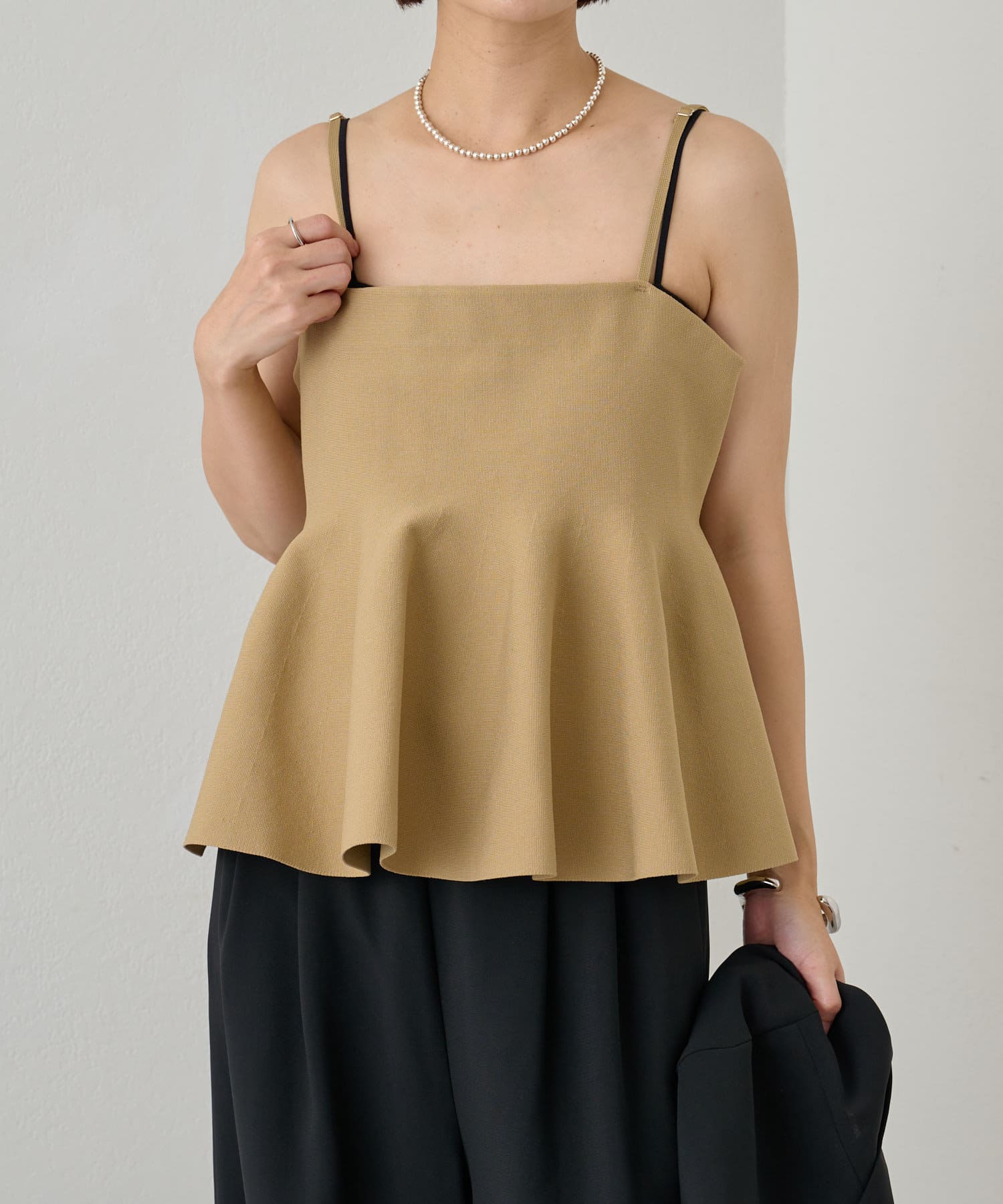 スタイリングに大人フェミニンなアクセントを加えるペプラムニットビスチェ