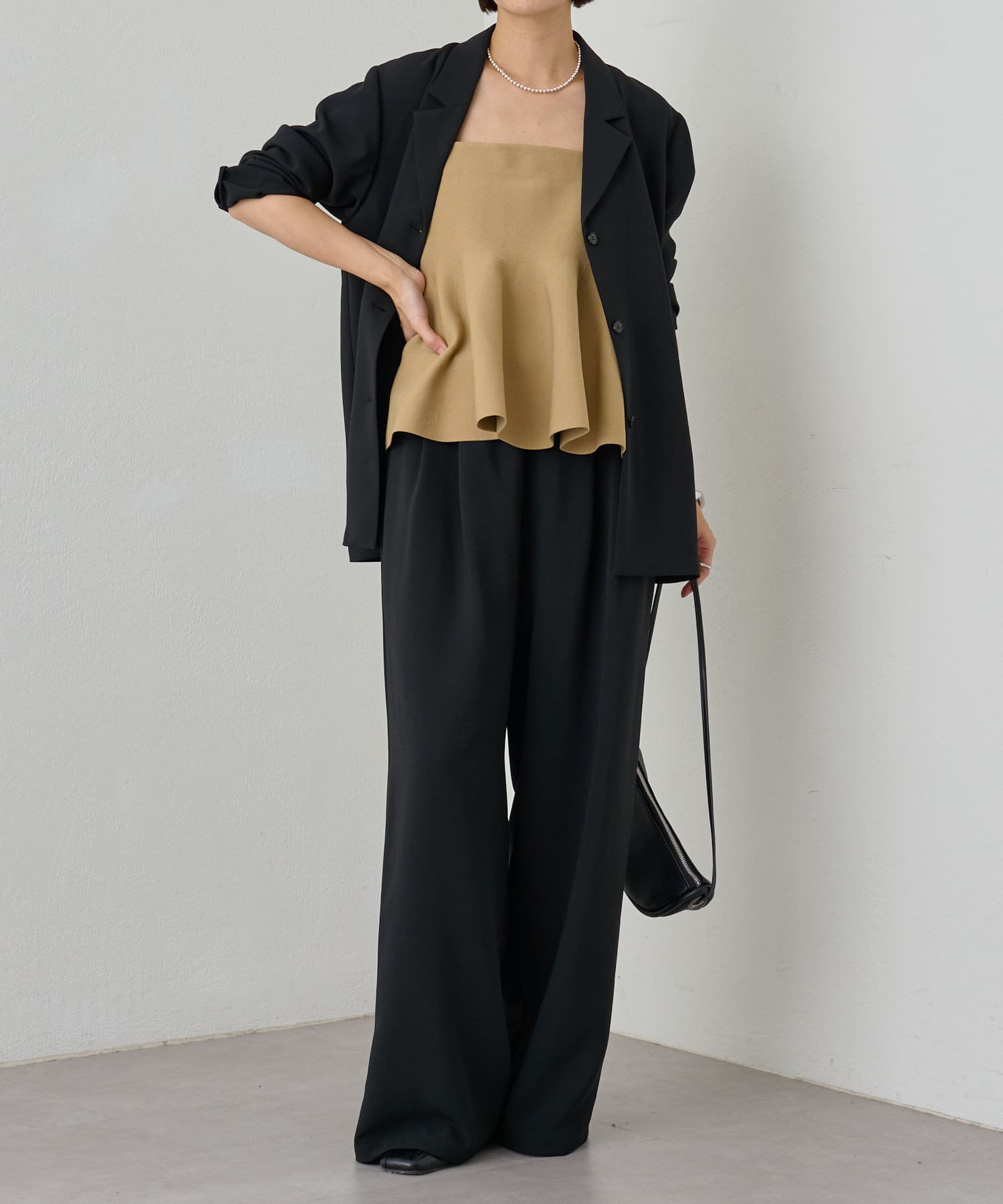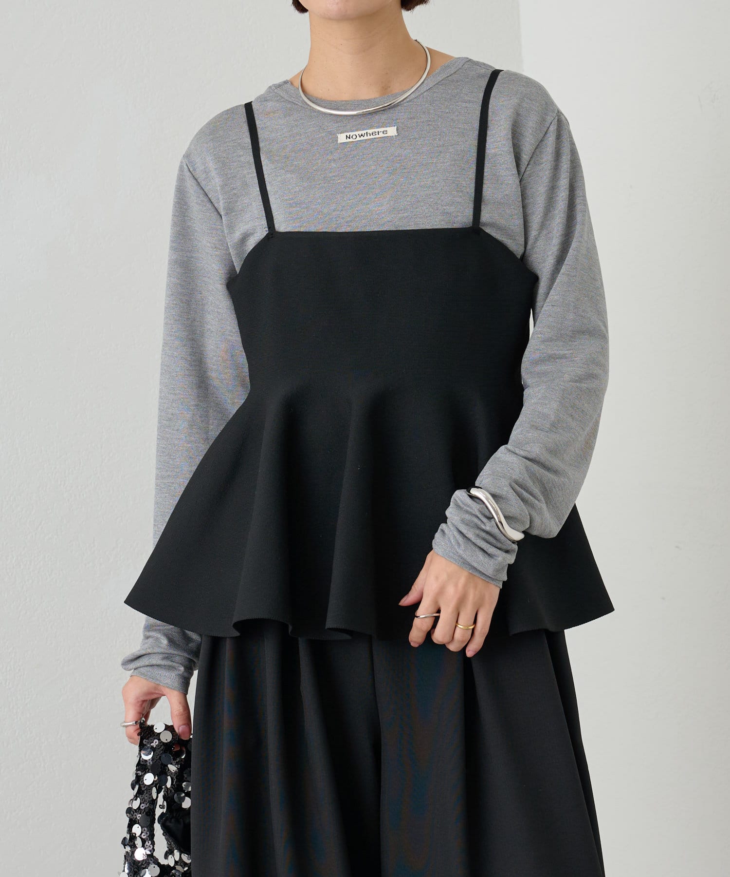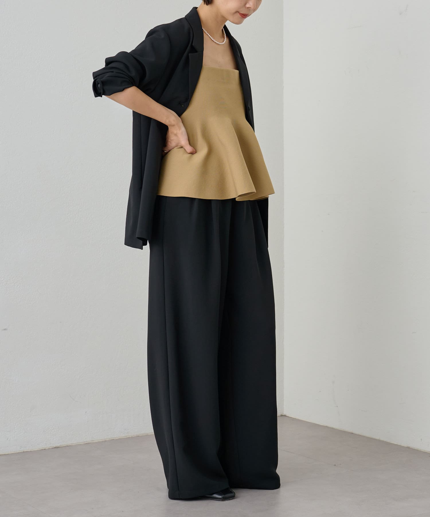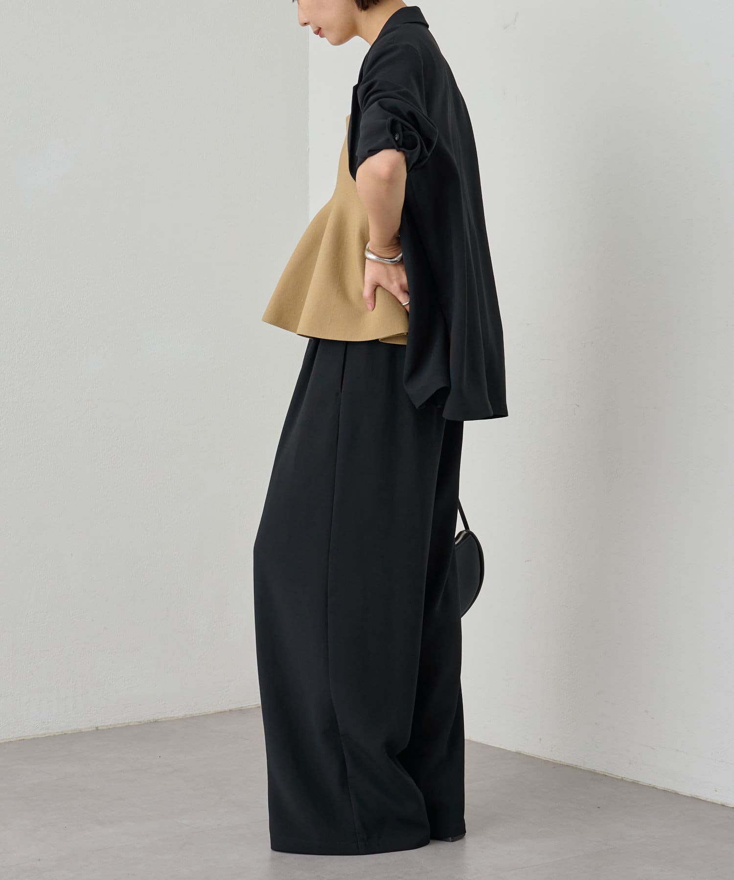 スタイリングに大人フェミニンなアクセントを加えるペプラムニットビスチェ