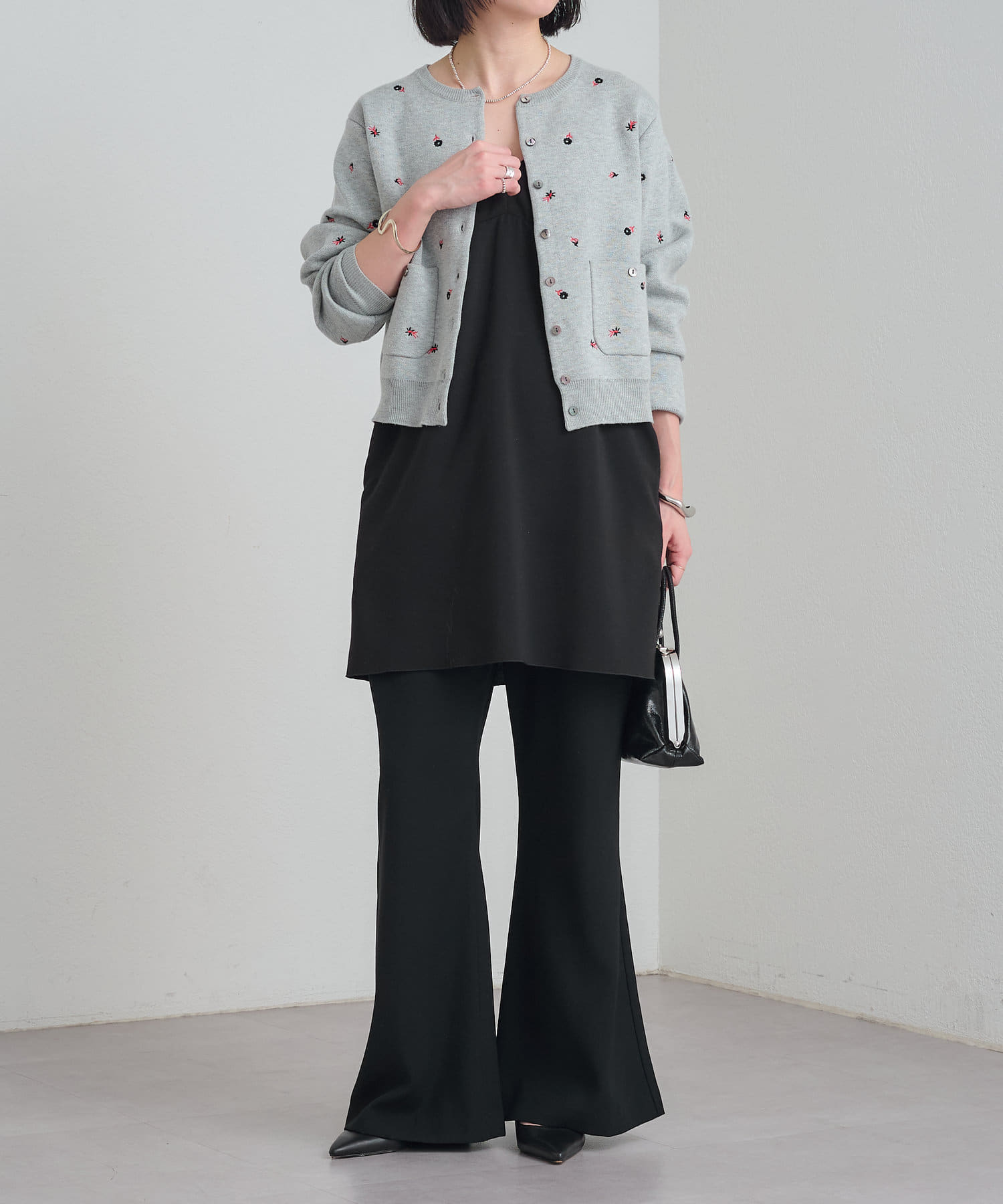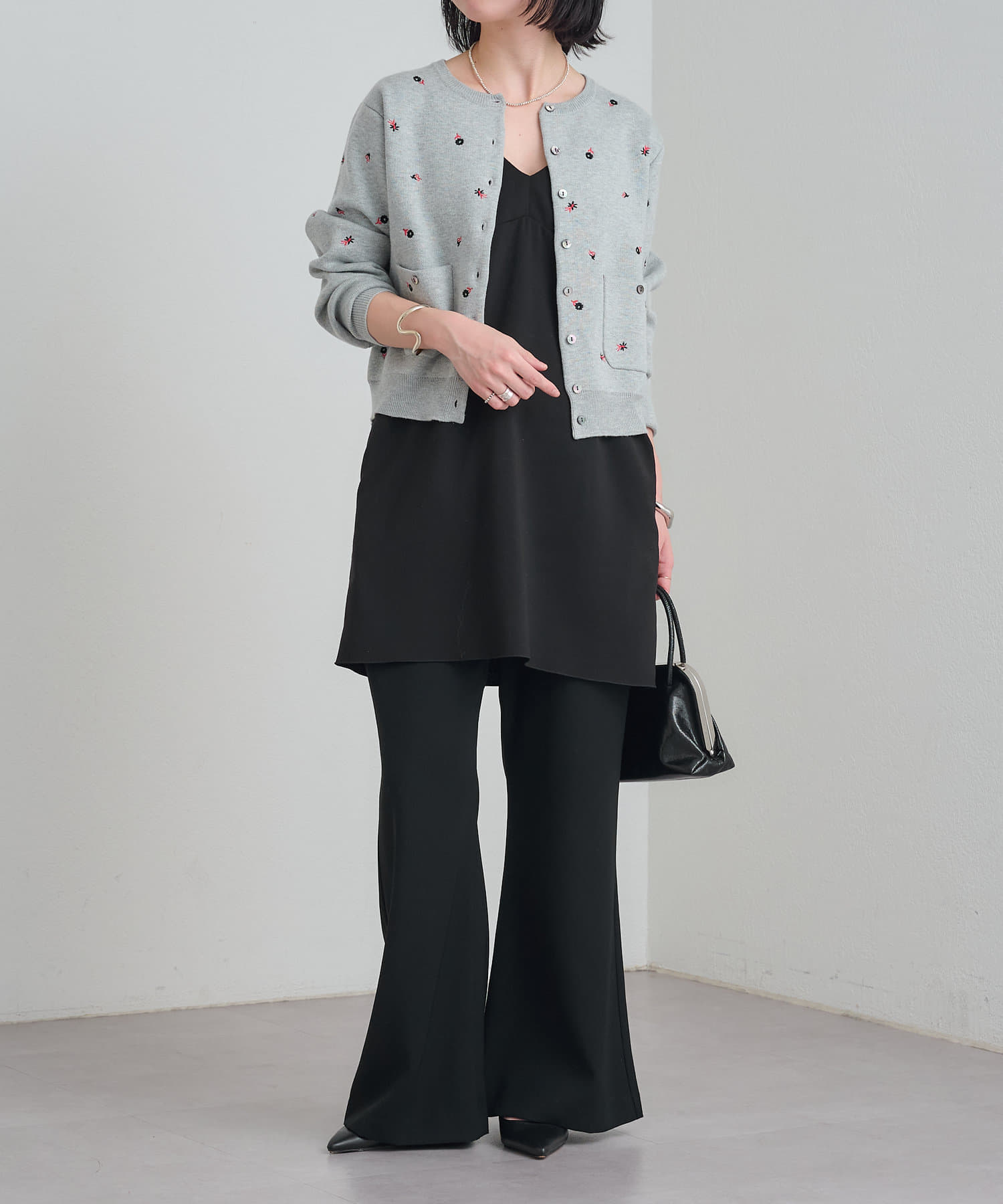 ・スタイリングの邪魔をしない、さり気なくも女性らしい刺繍柄。