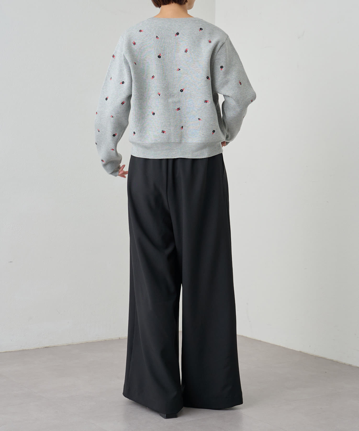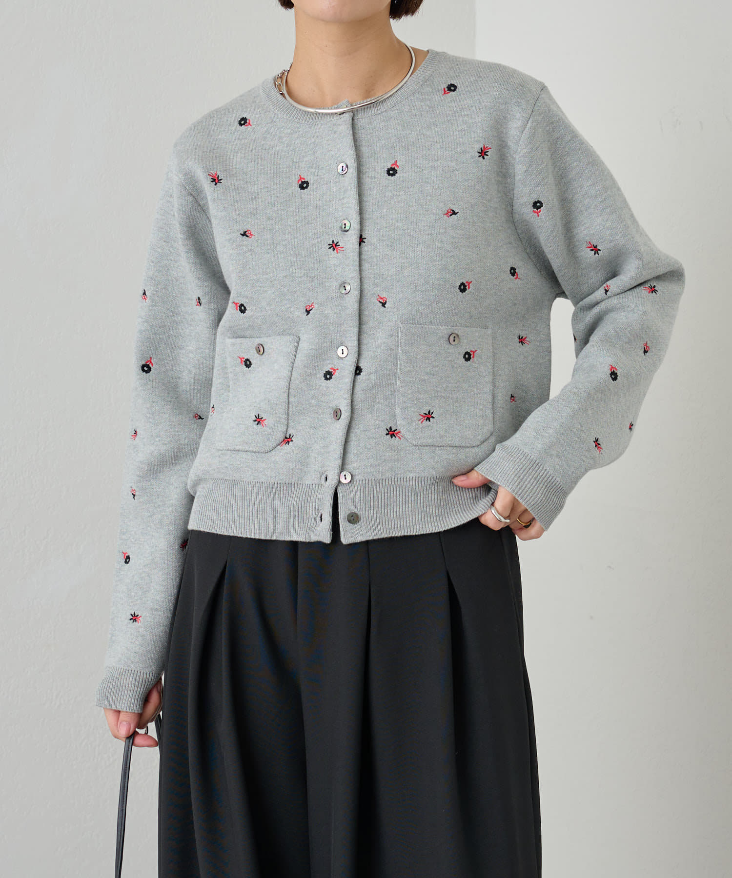 【Omekashi】刺繍スウェットライクポケットカーディガン