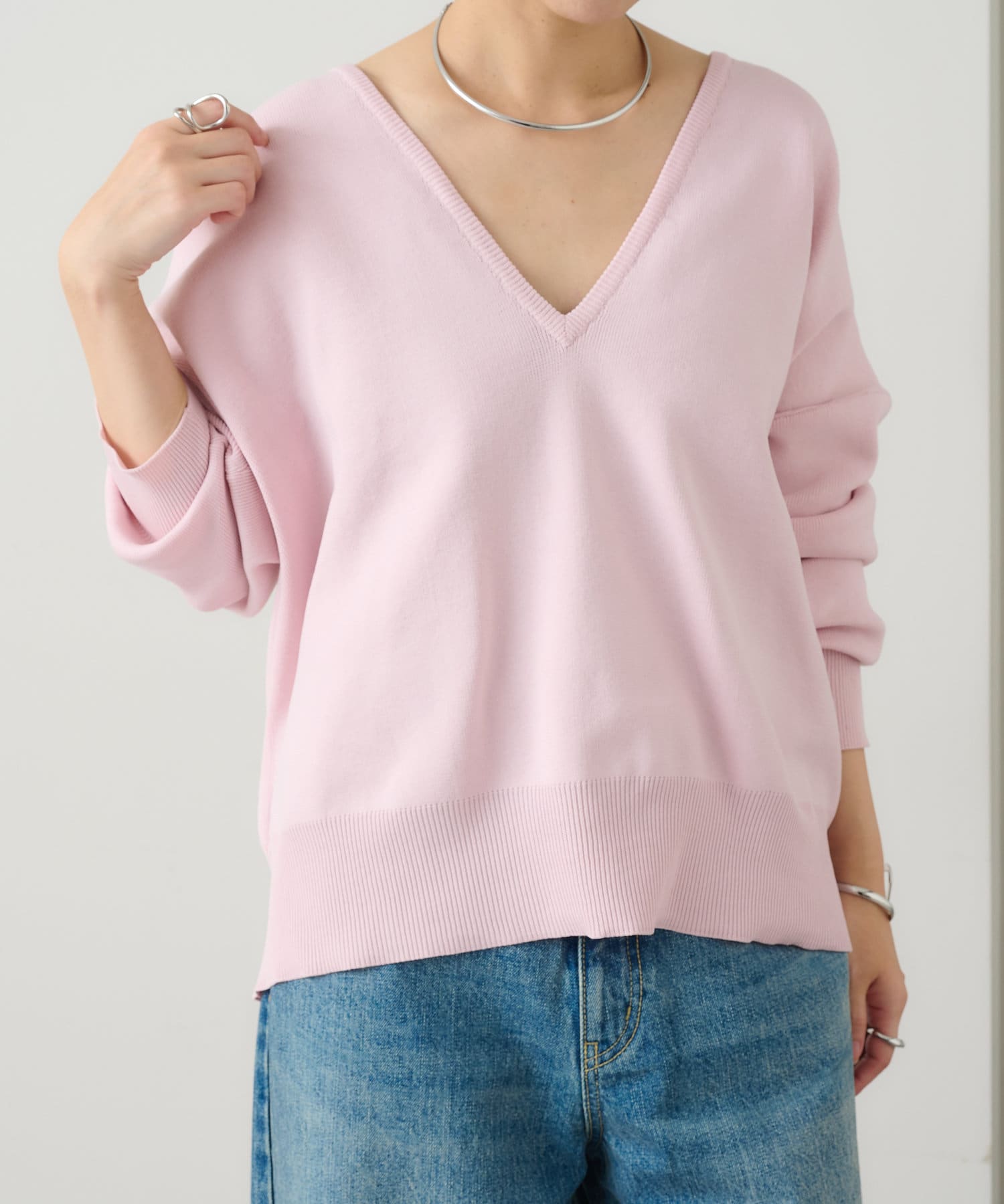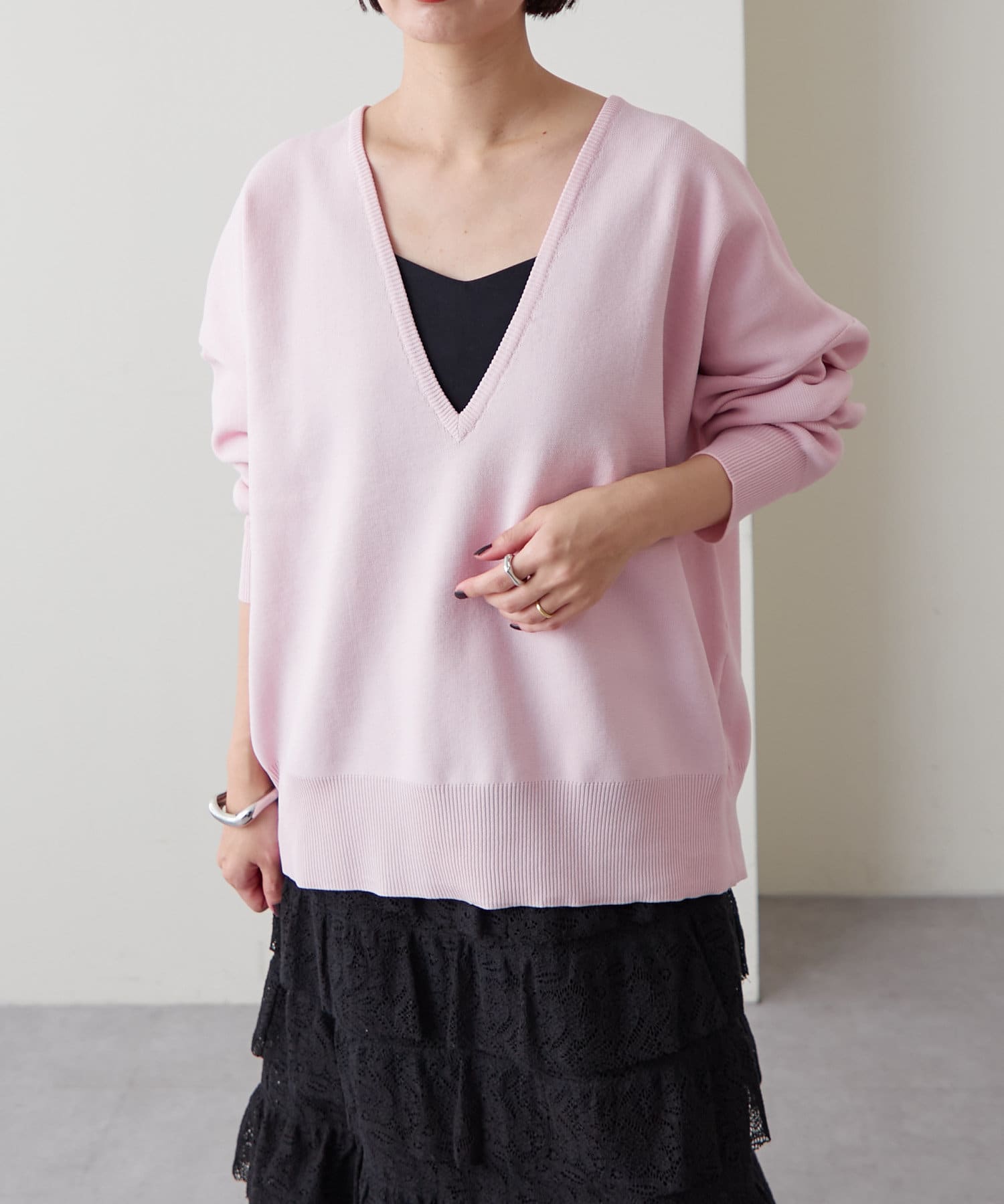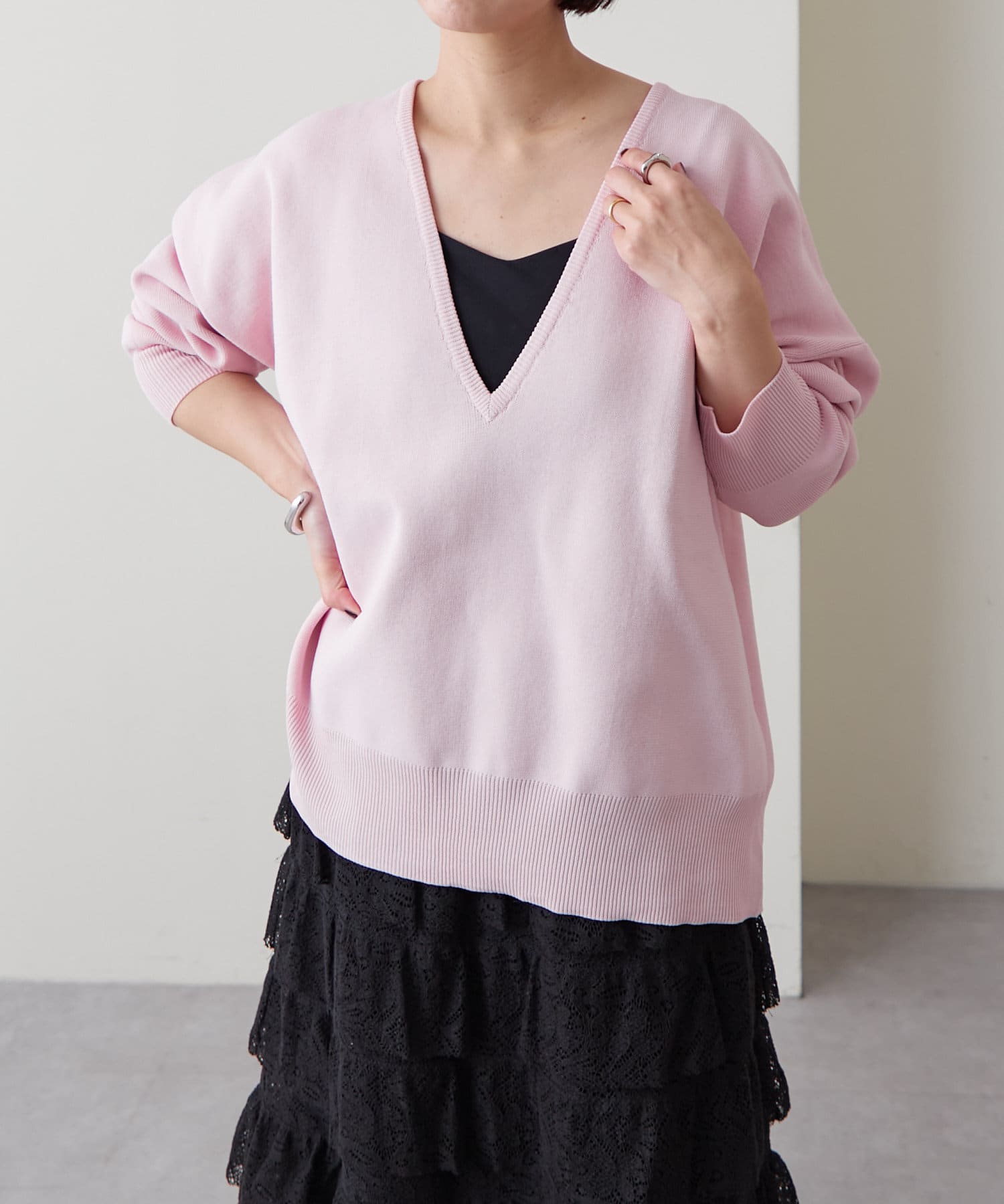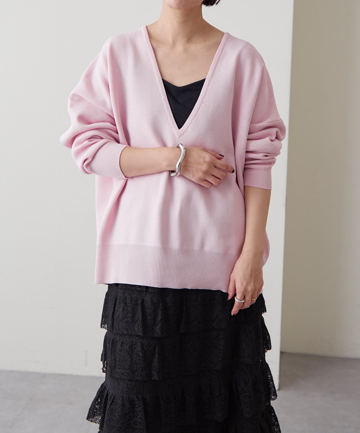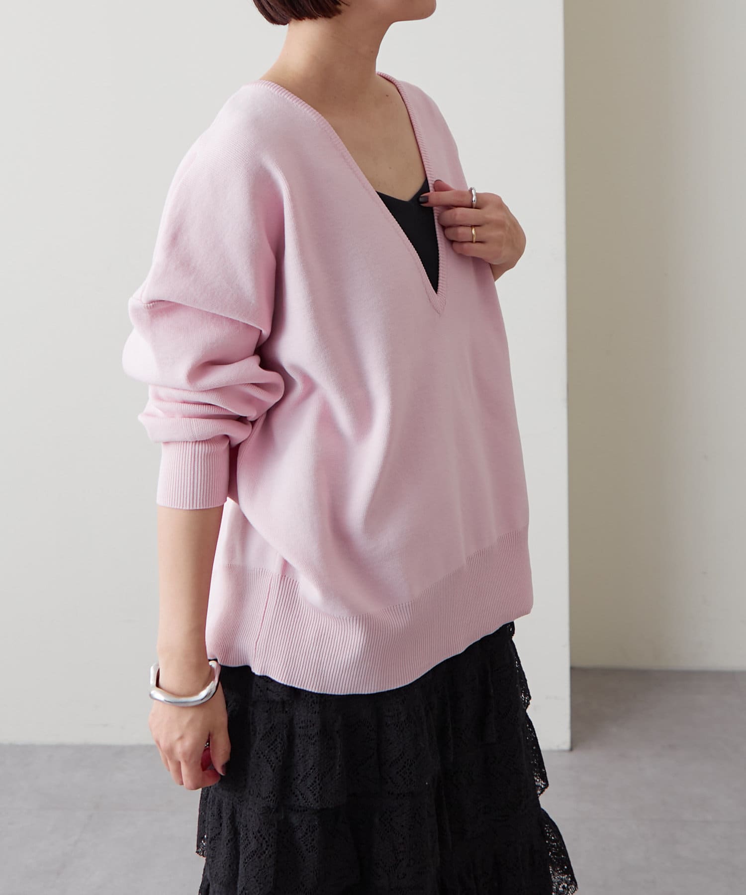 大人の肌見せスタイルが叶うVネックシルエットのニット