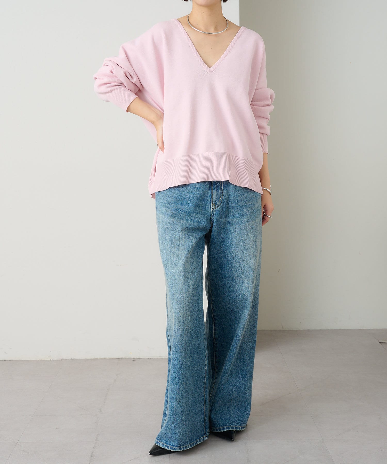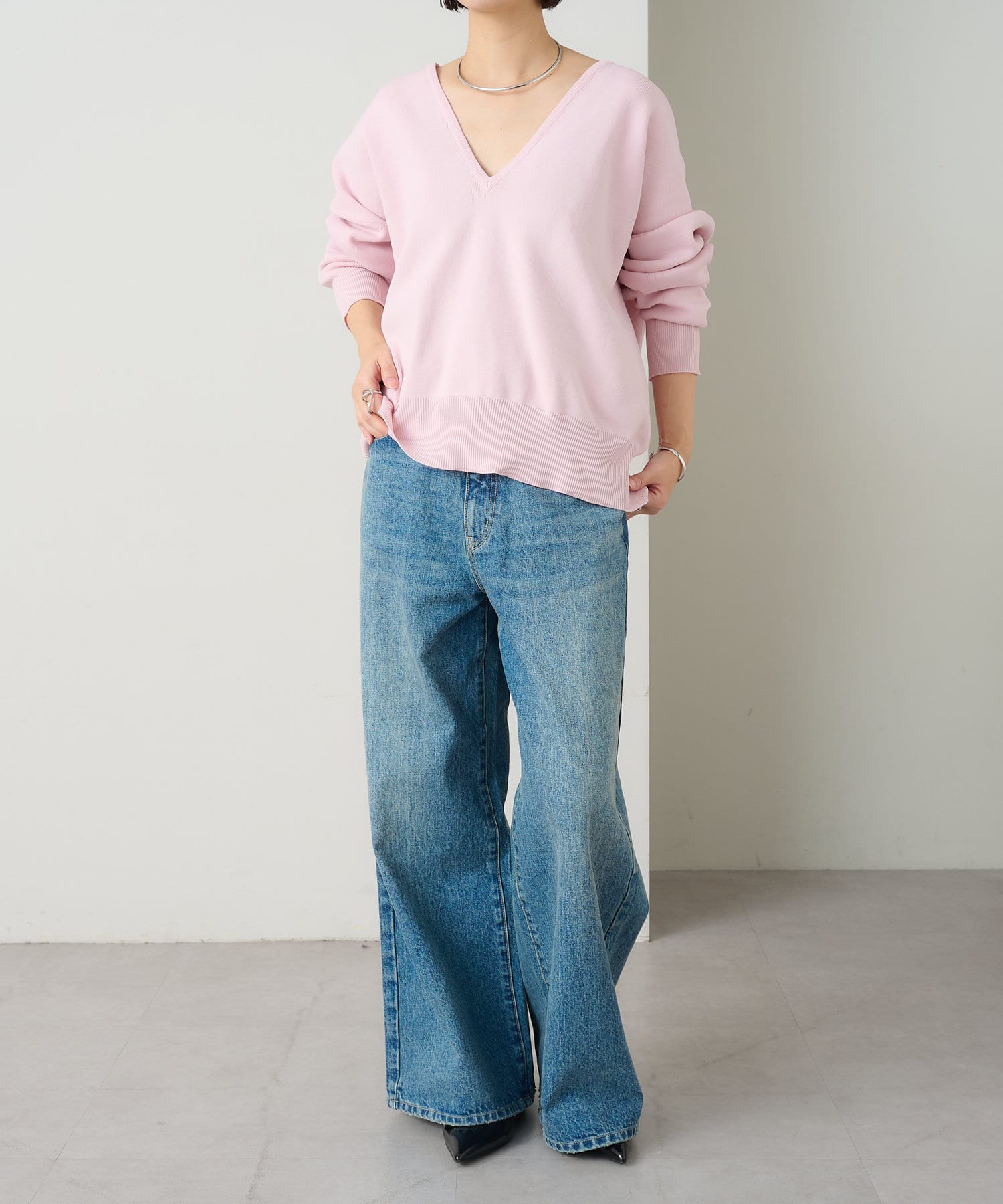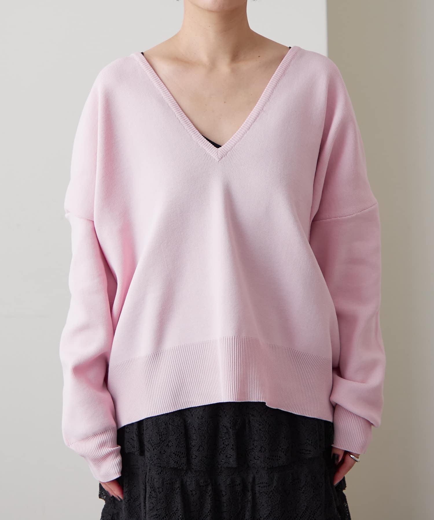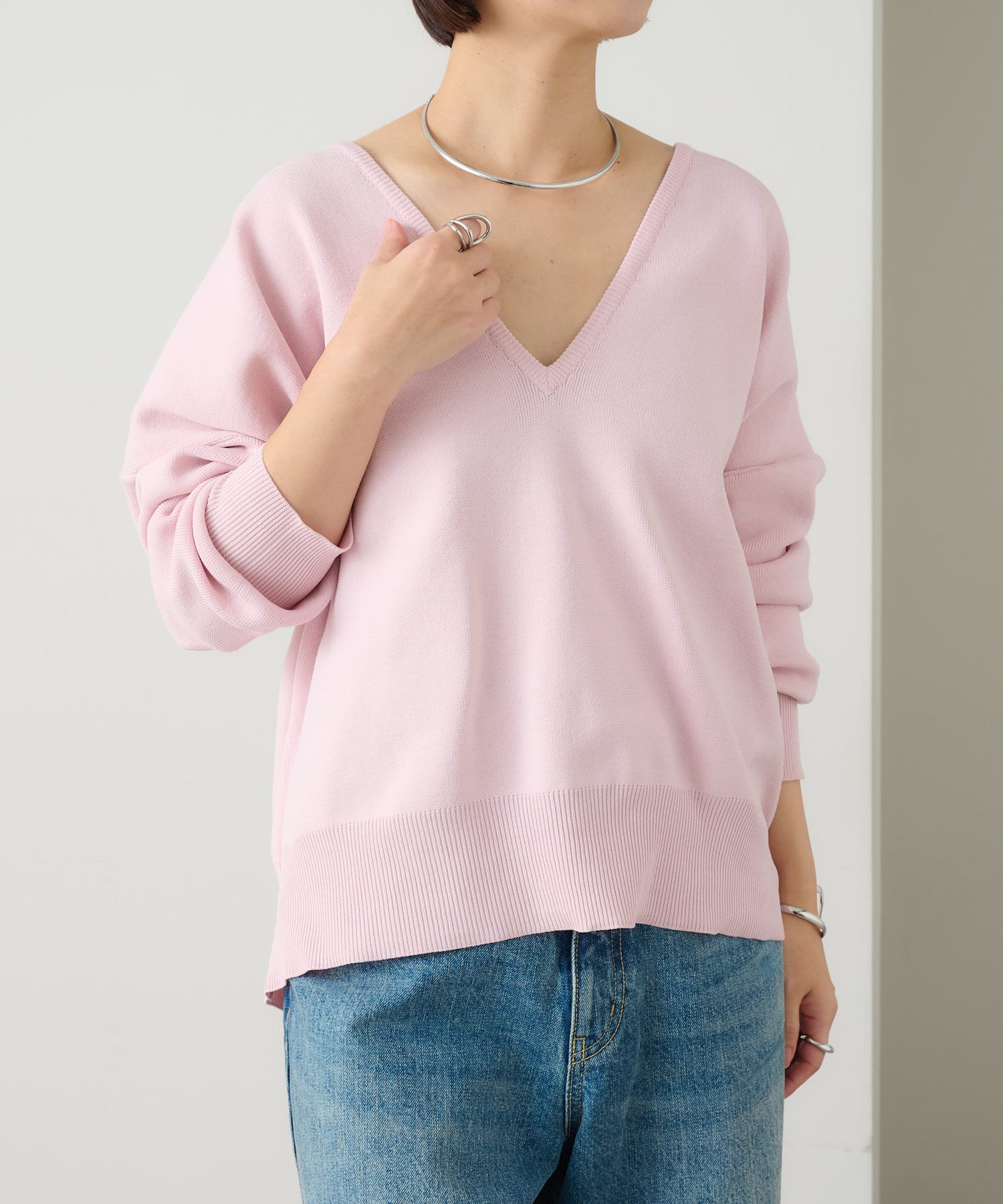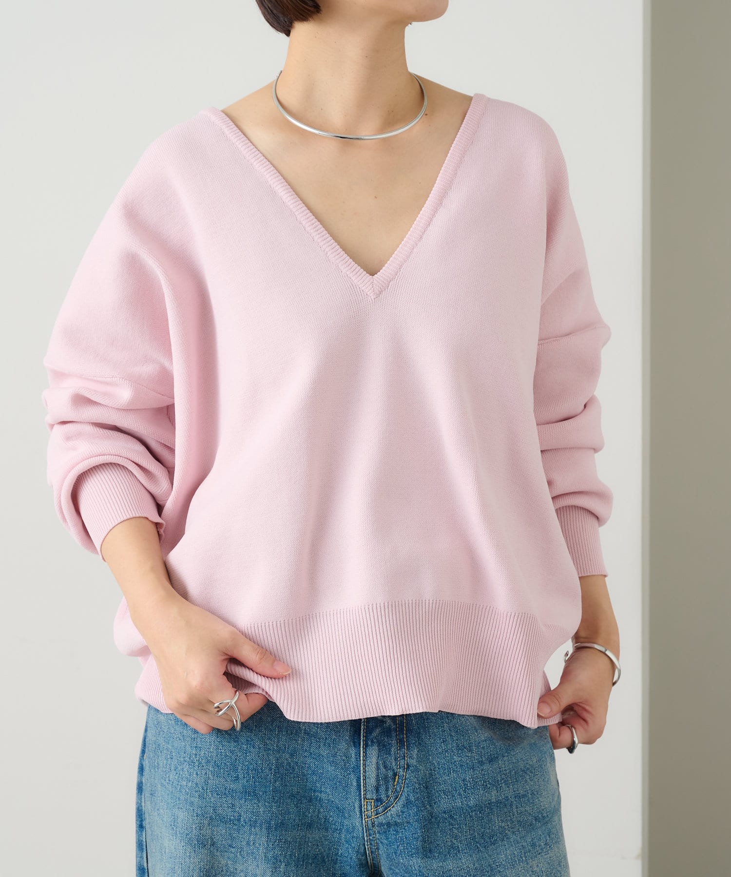 大人の肌見せスタイルが叶うVネックシルエットのニット