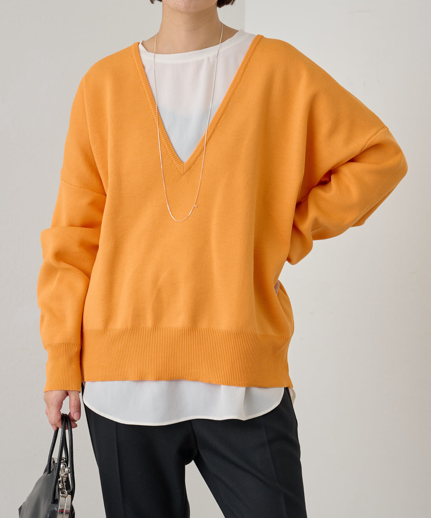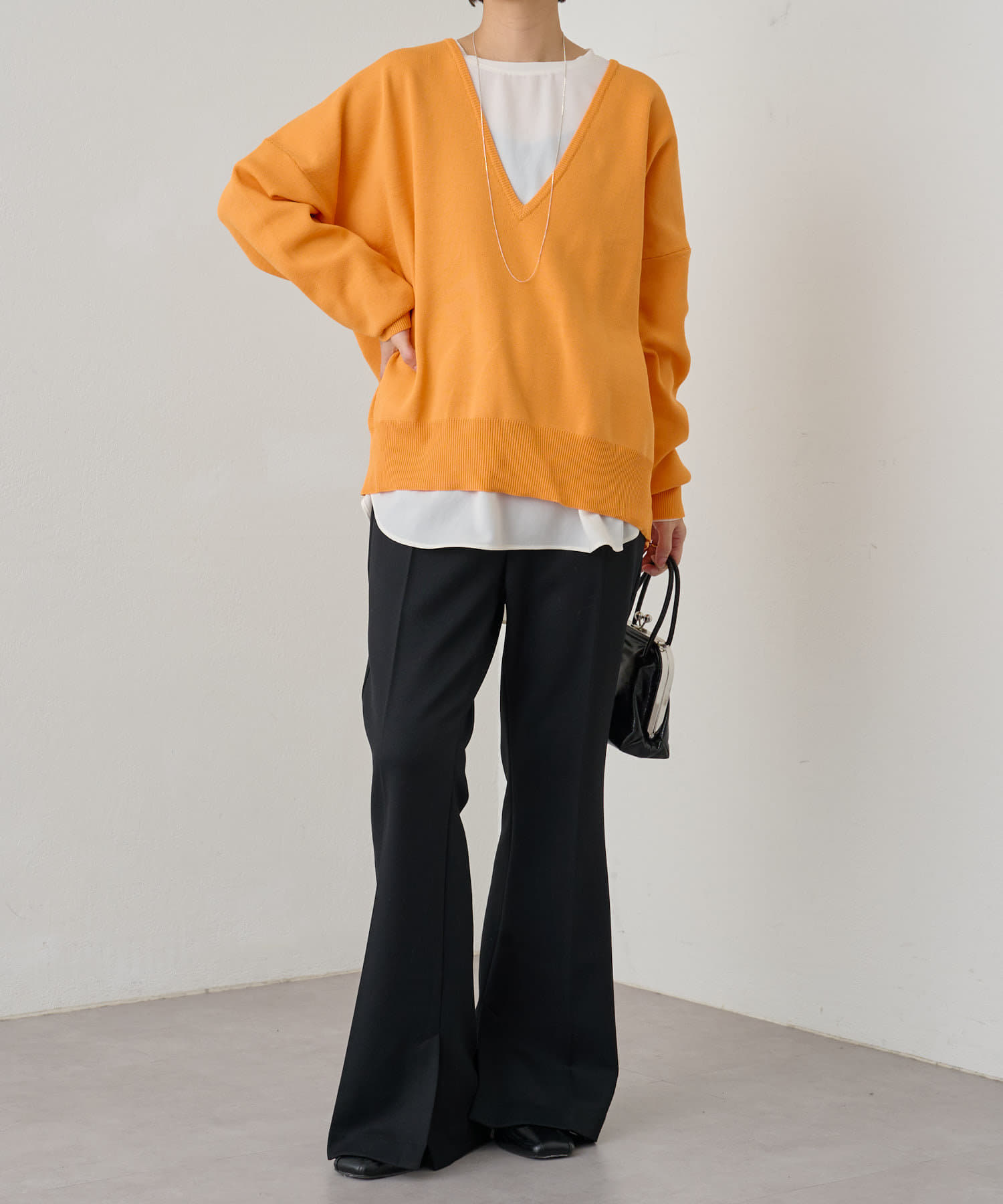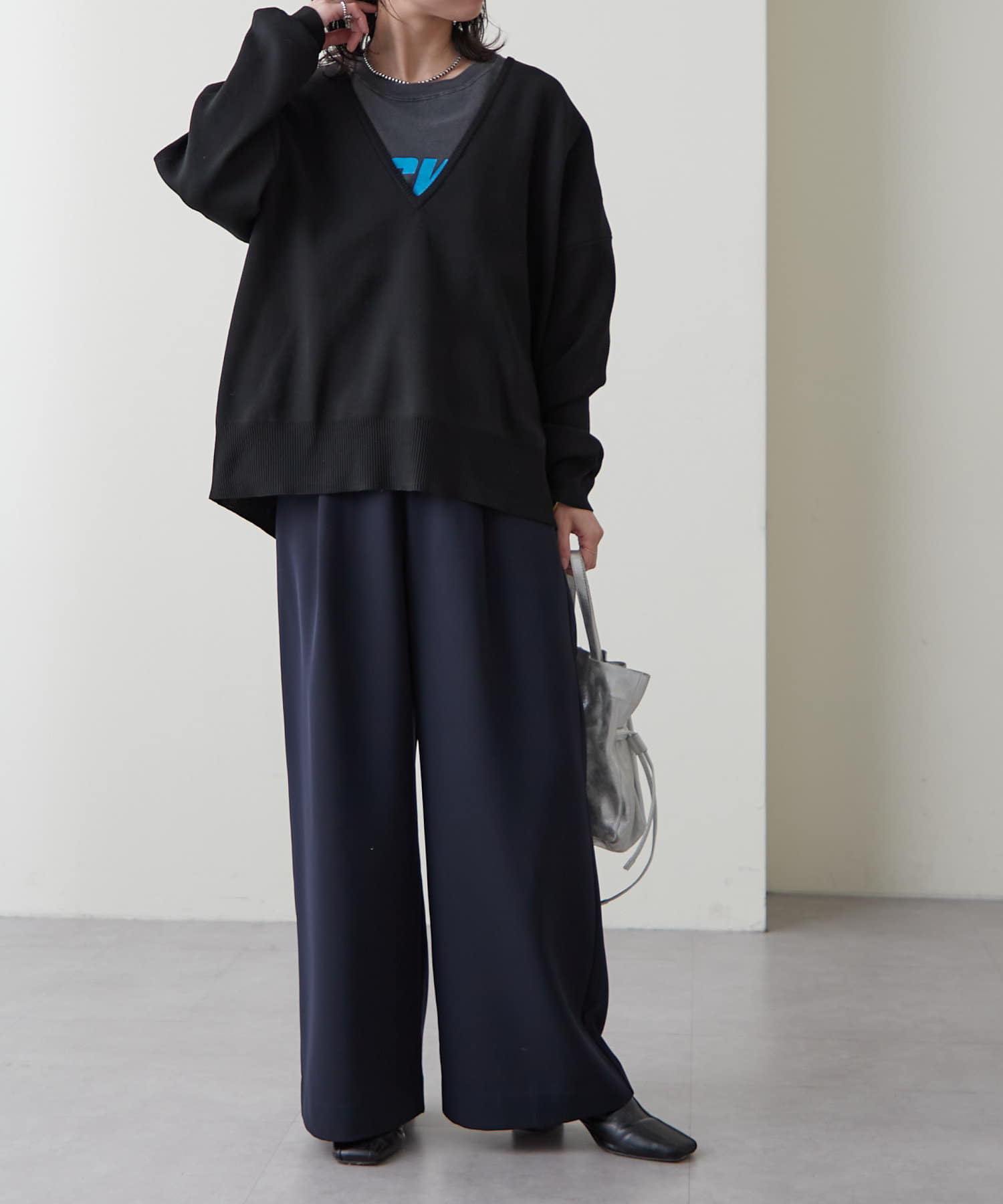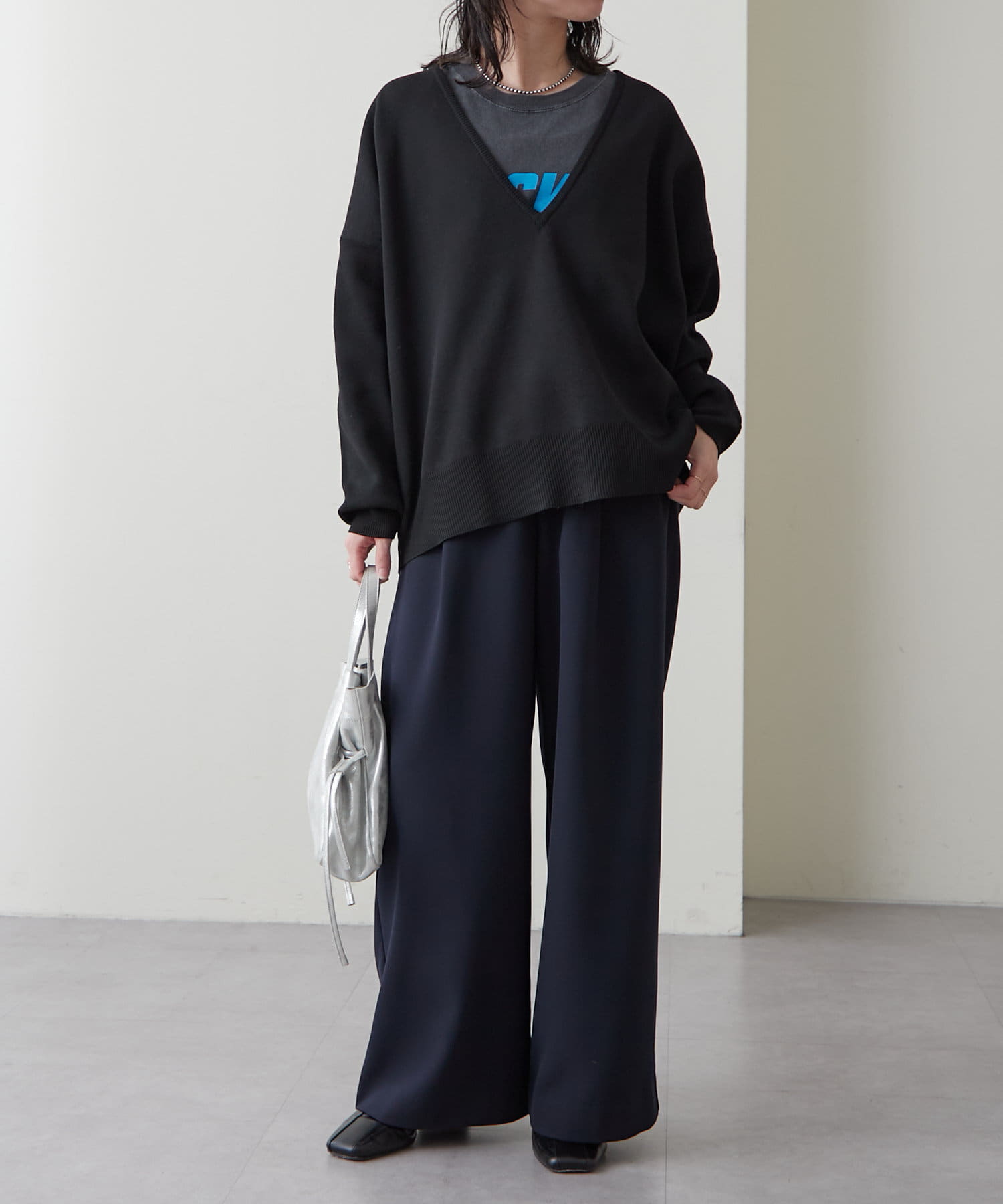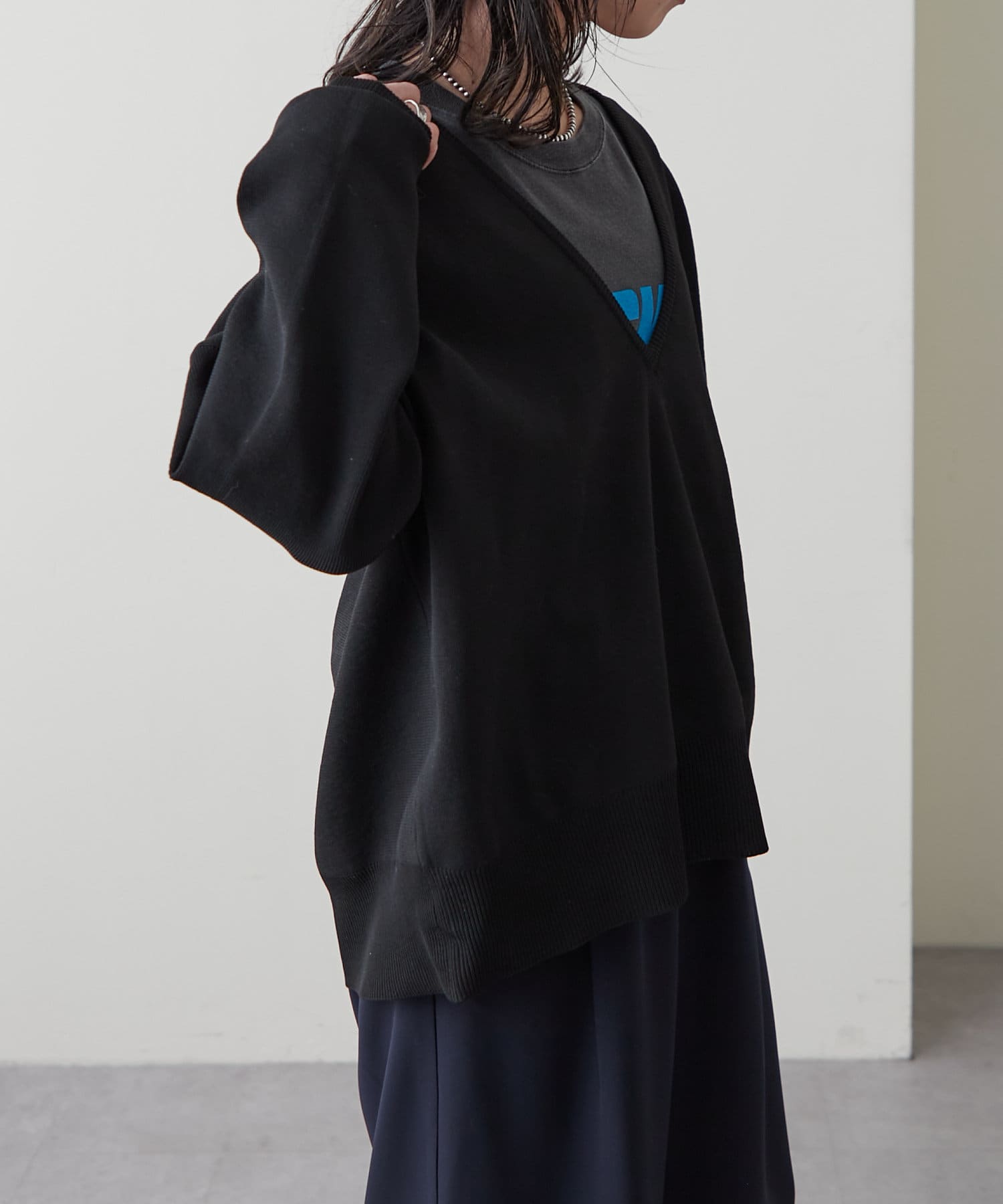 大人の肌見せスタイルが叶うVネックシルエットのニット
