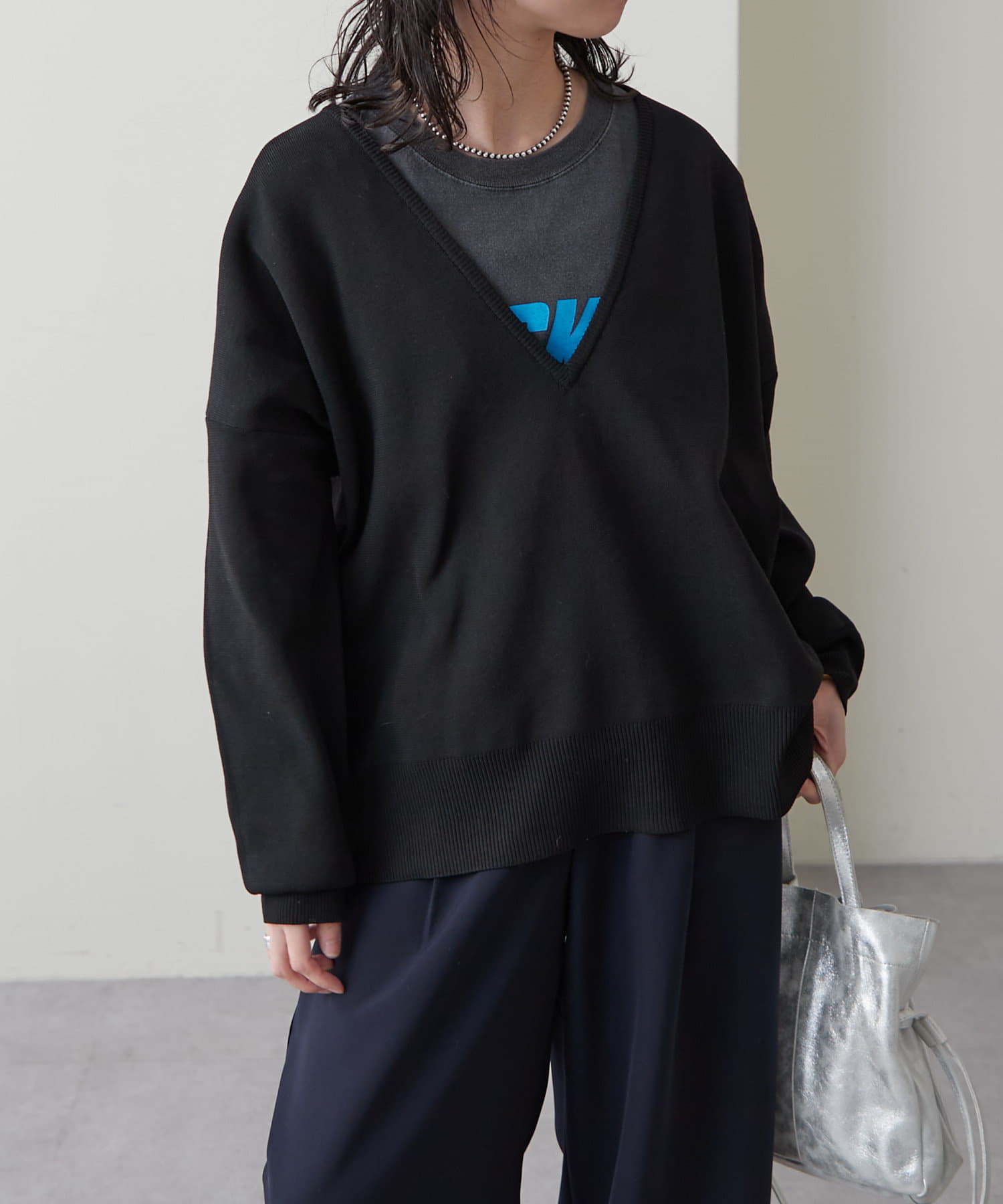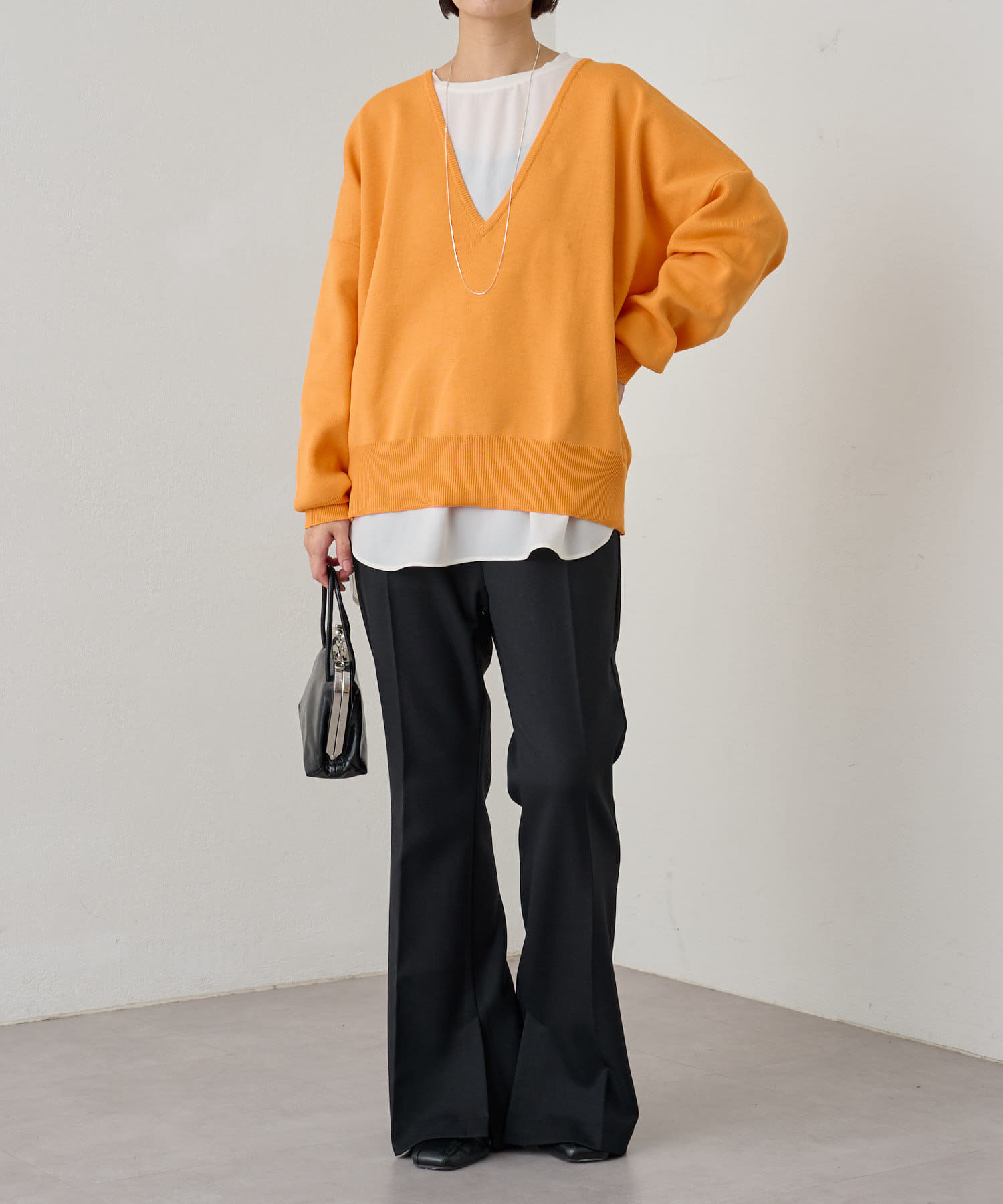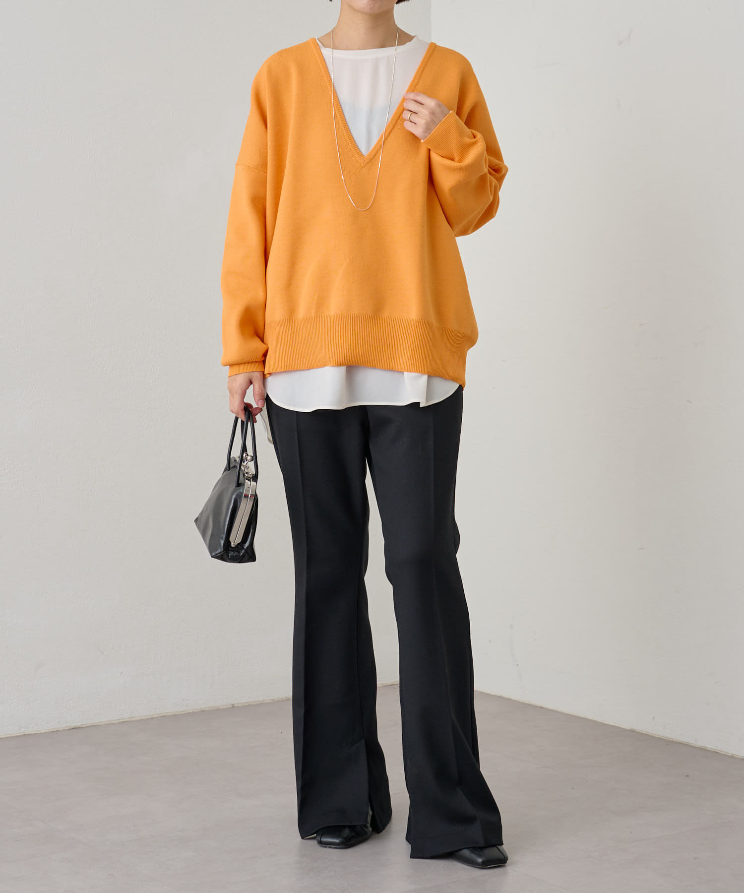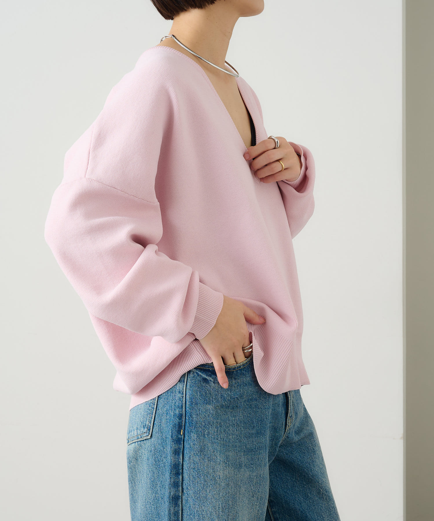 大人の肌見せスタイルが叶うVネックシルエットのニット