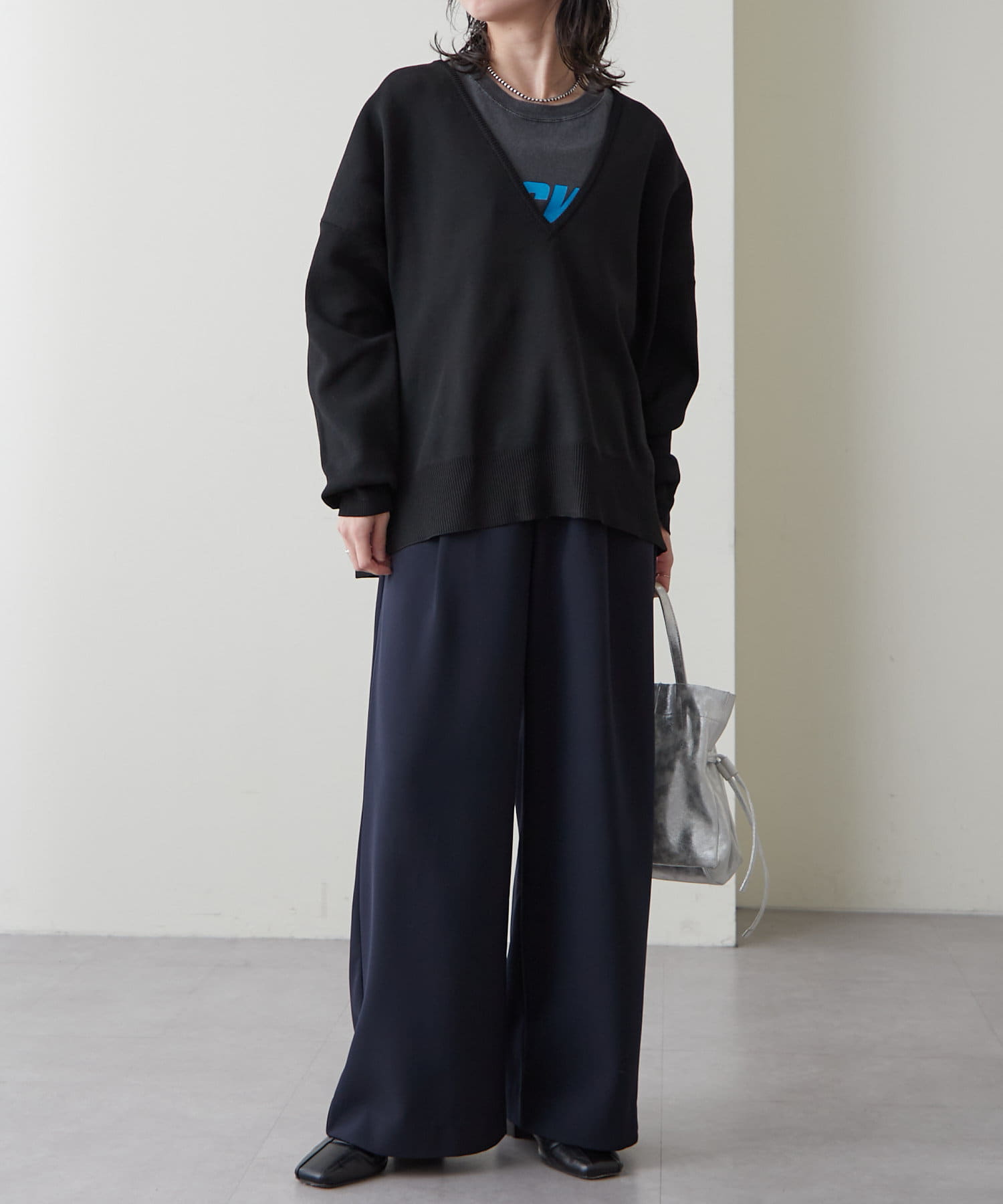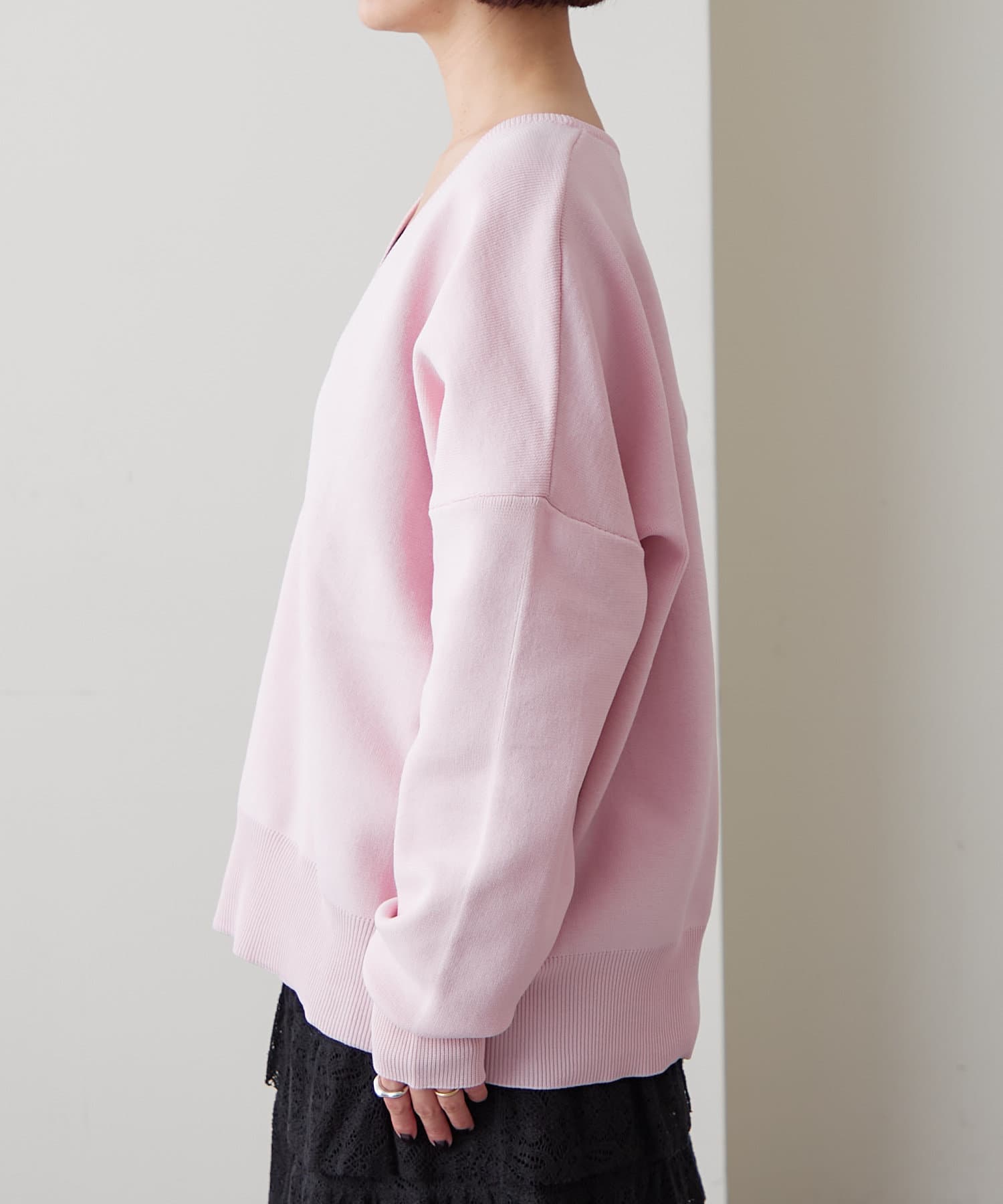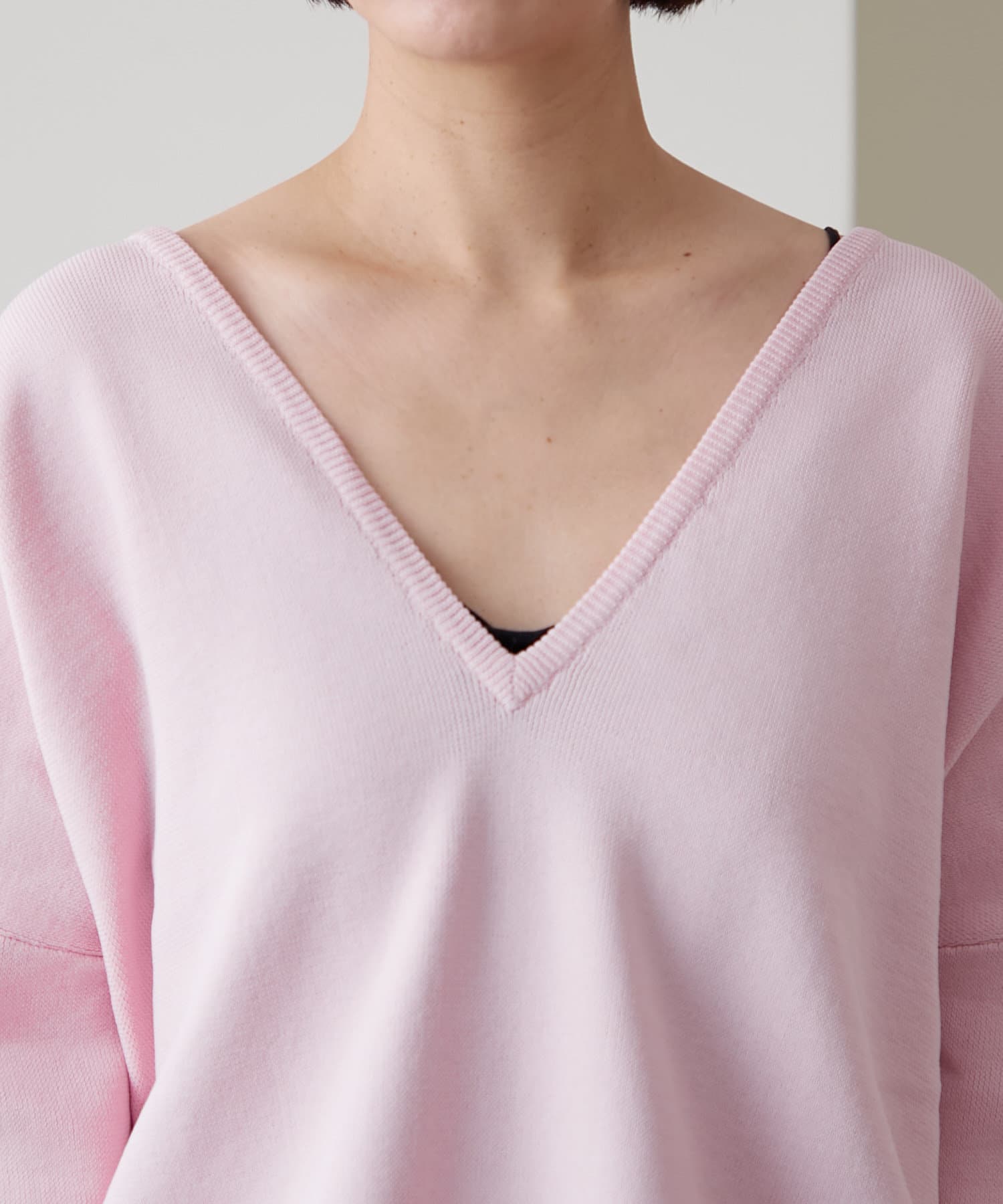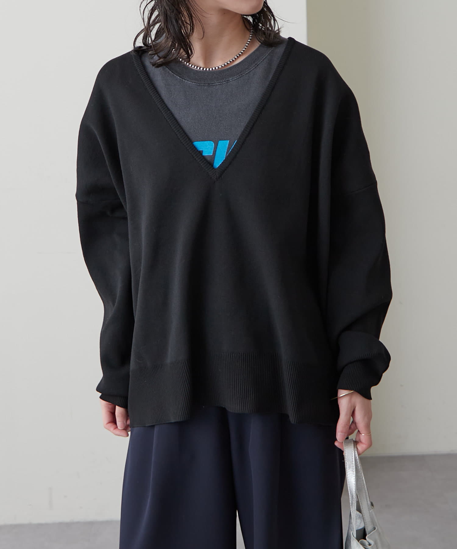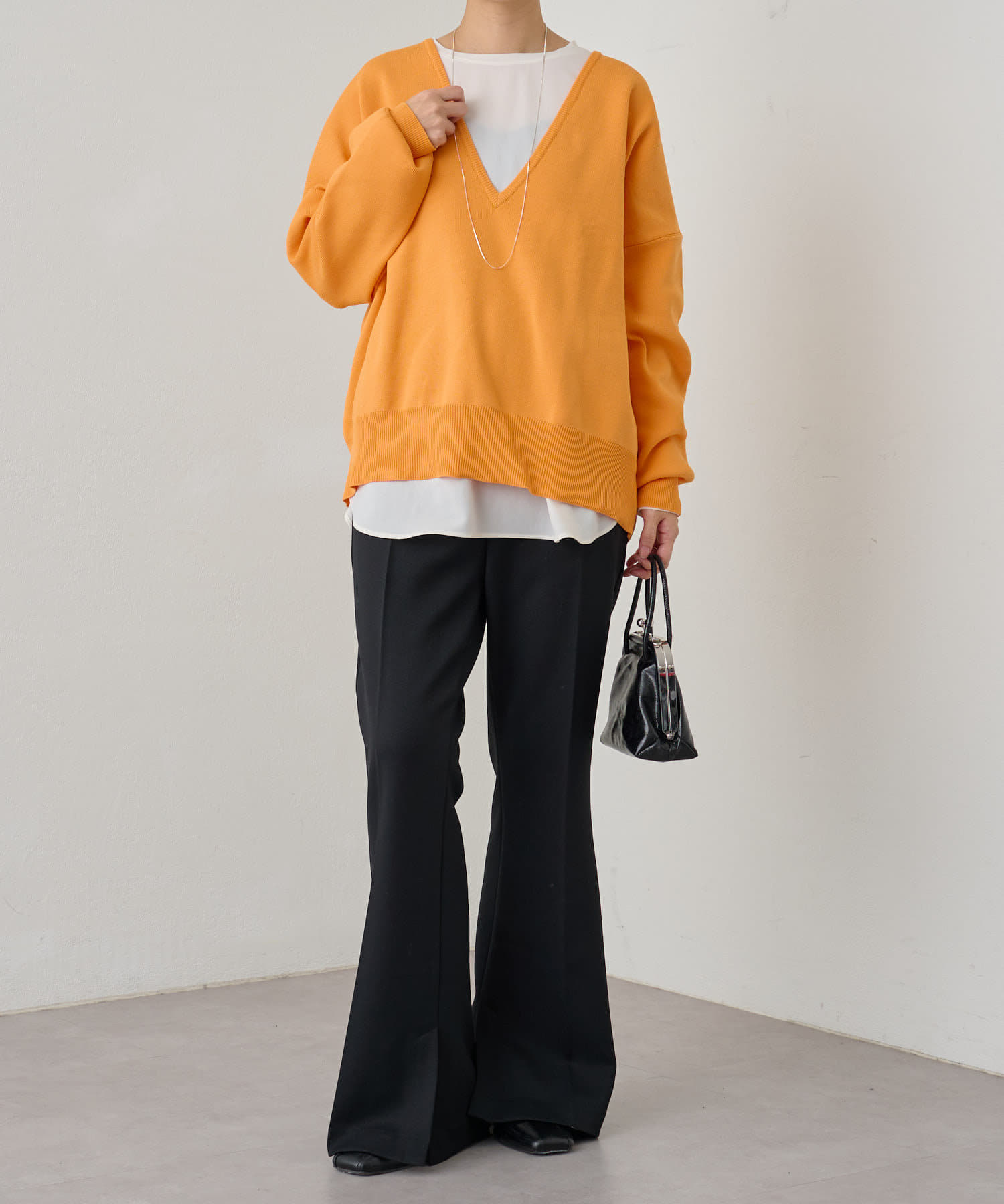 大人の肌見せスタイルが叶うVネックシルエットのニット