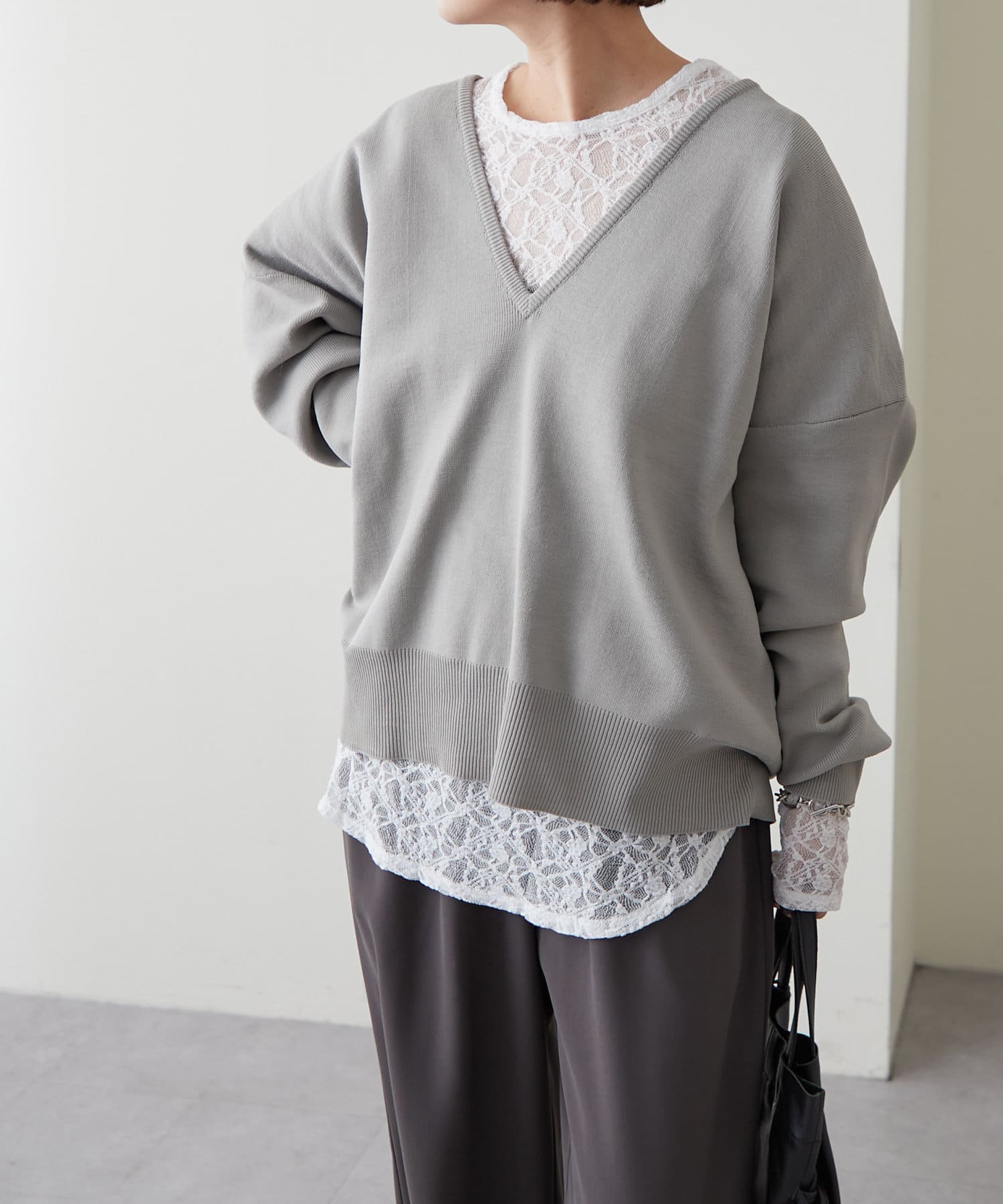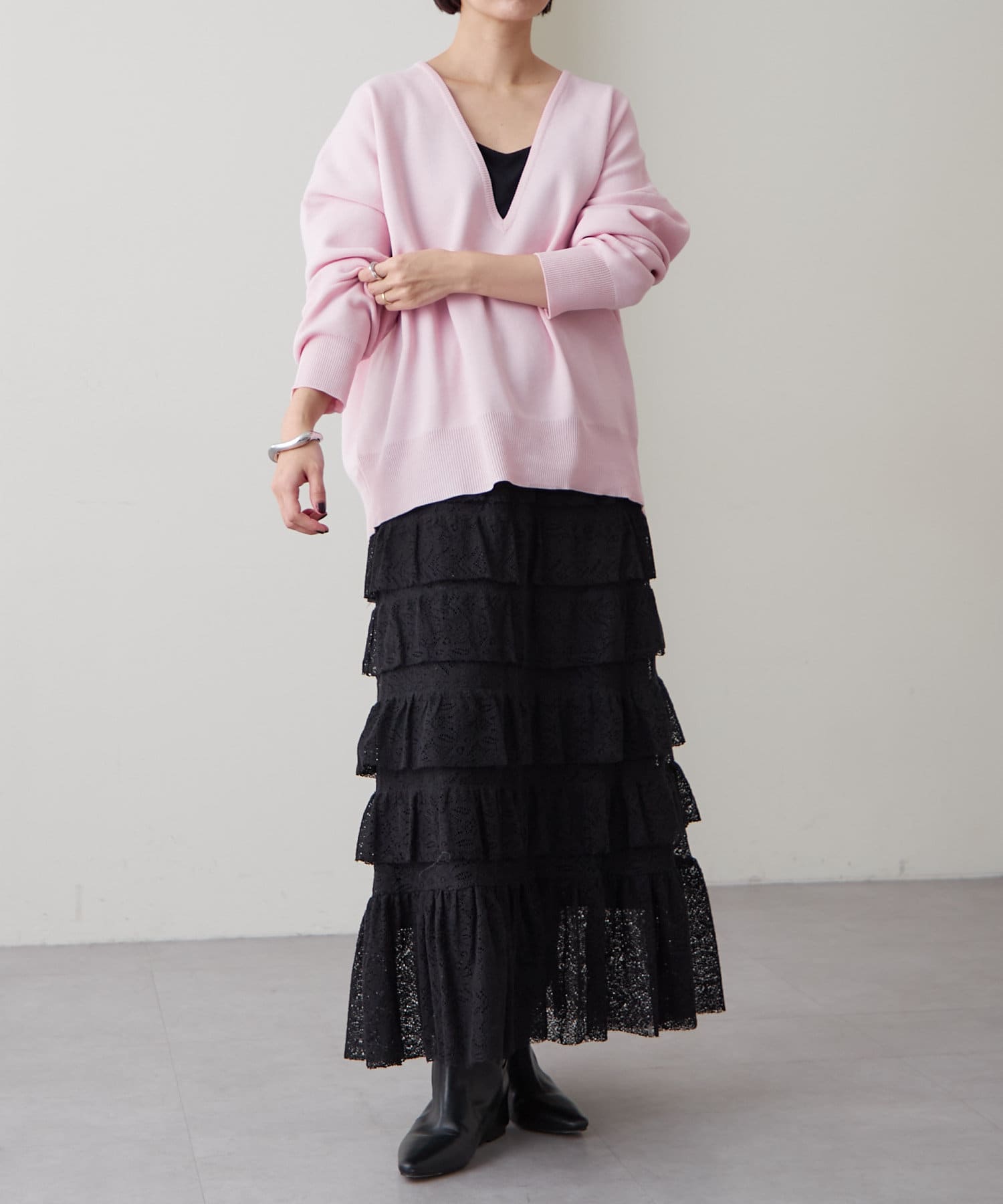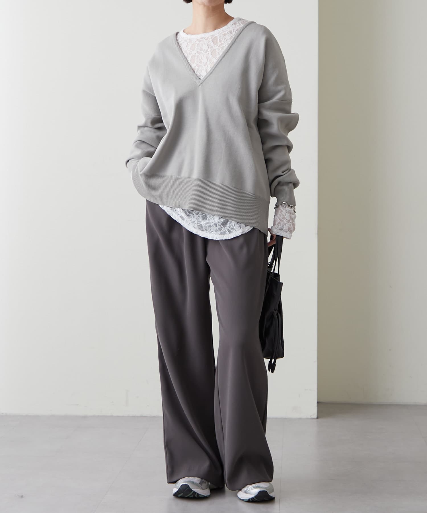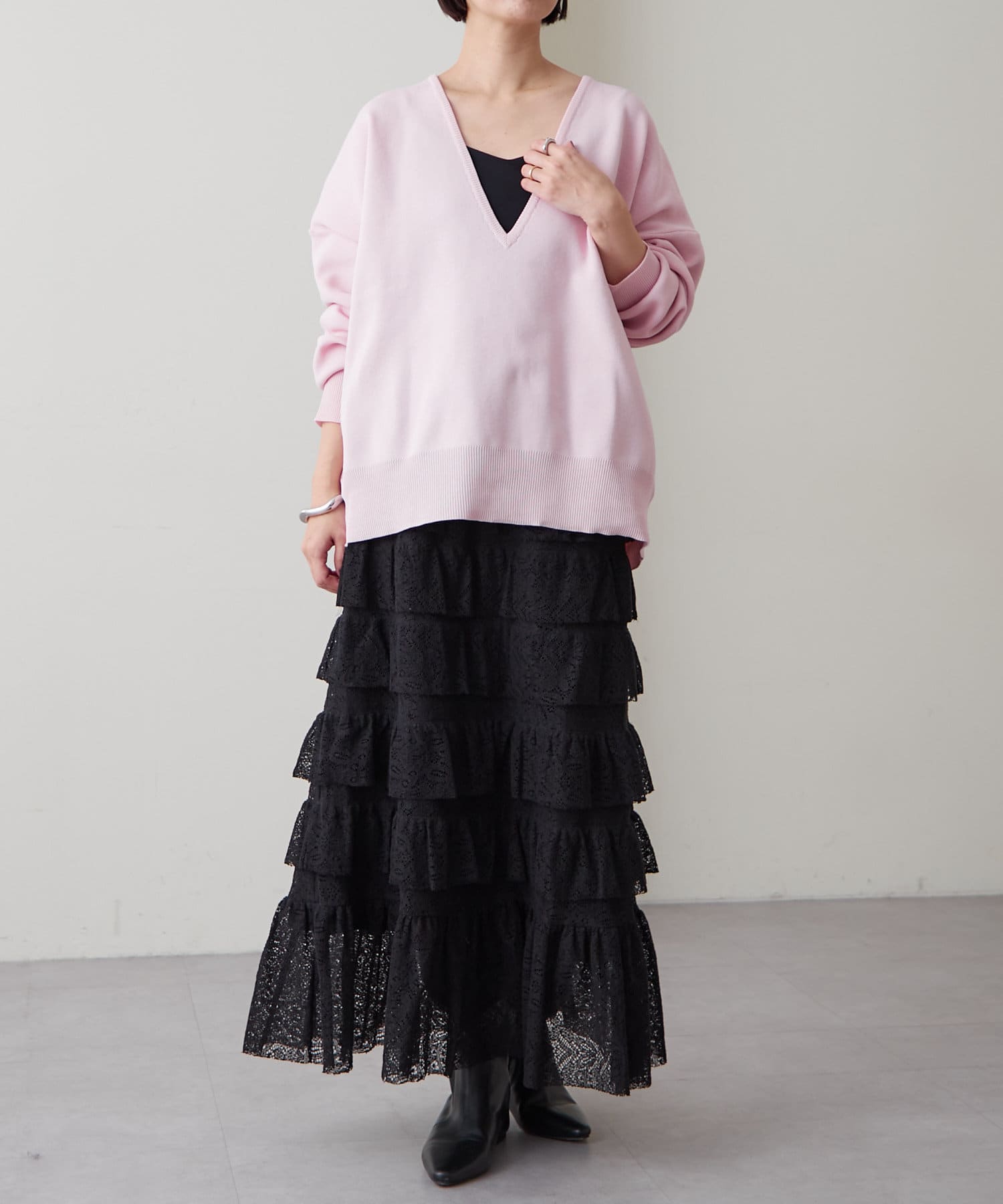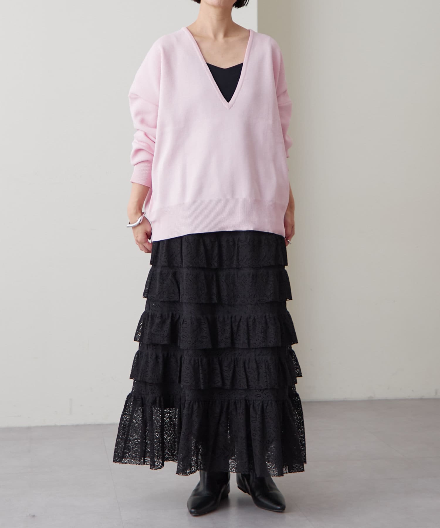 大人の肌見せスタイルが叶うVネックシルエットのニット