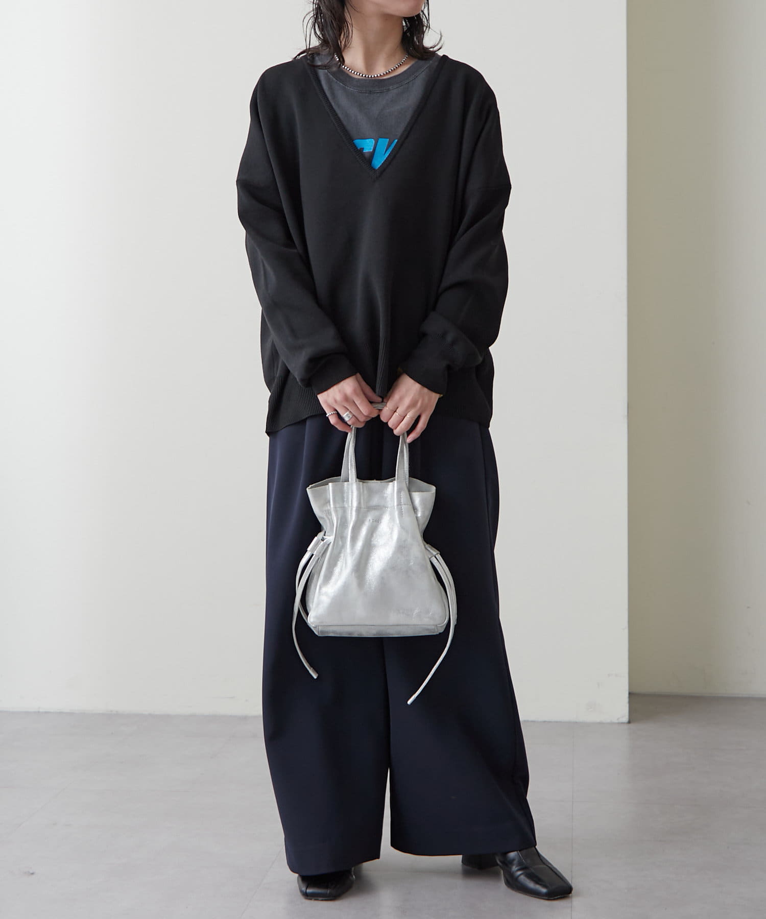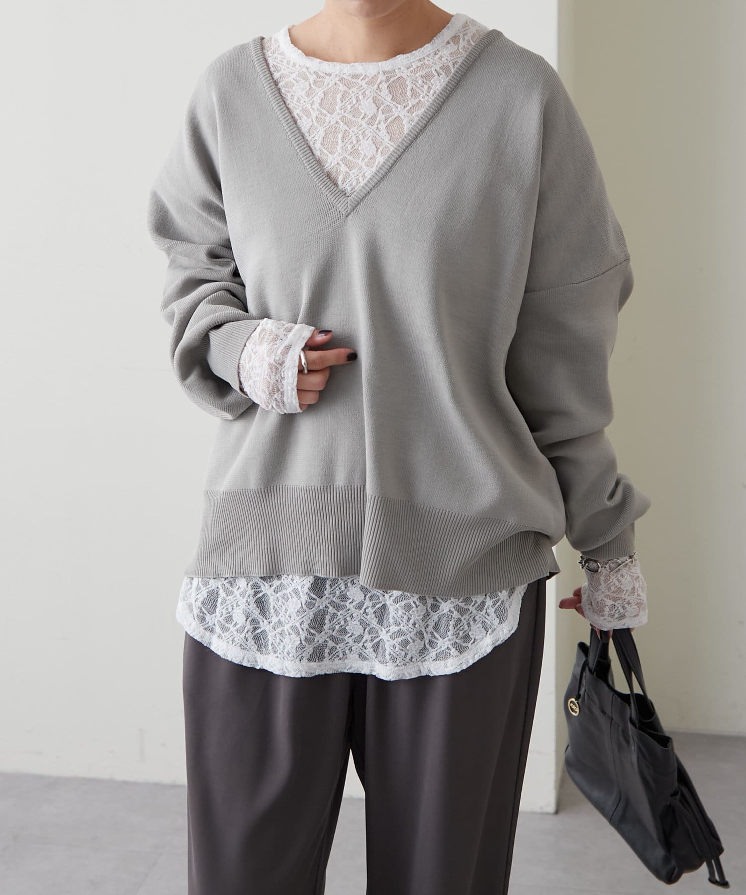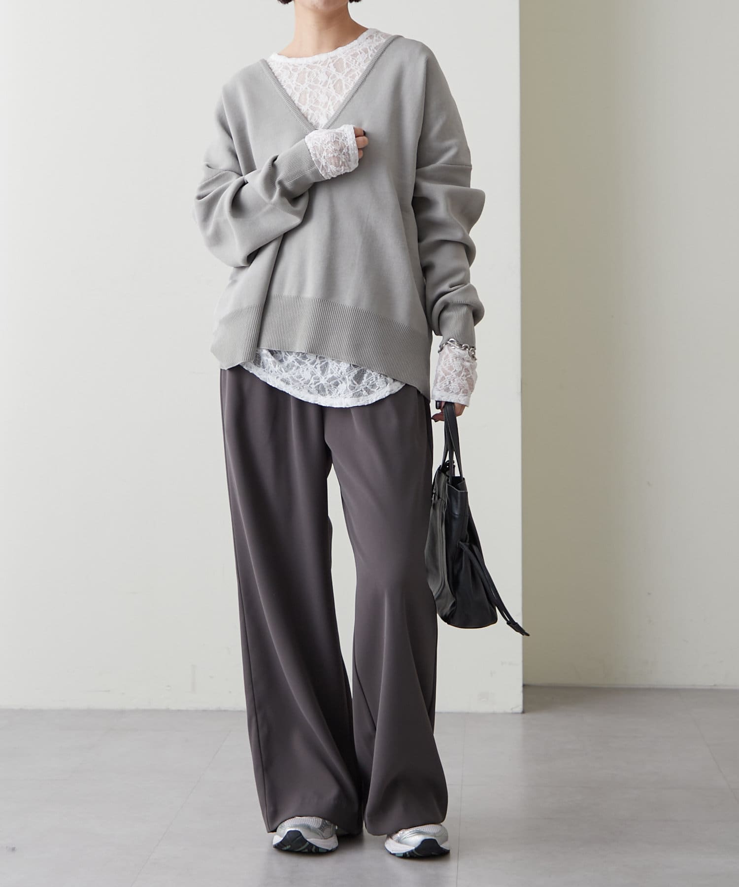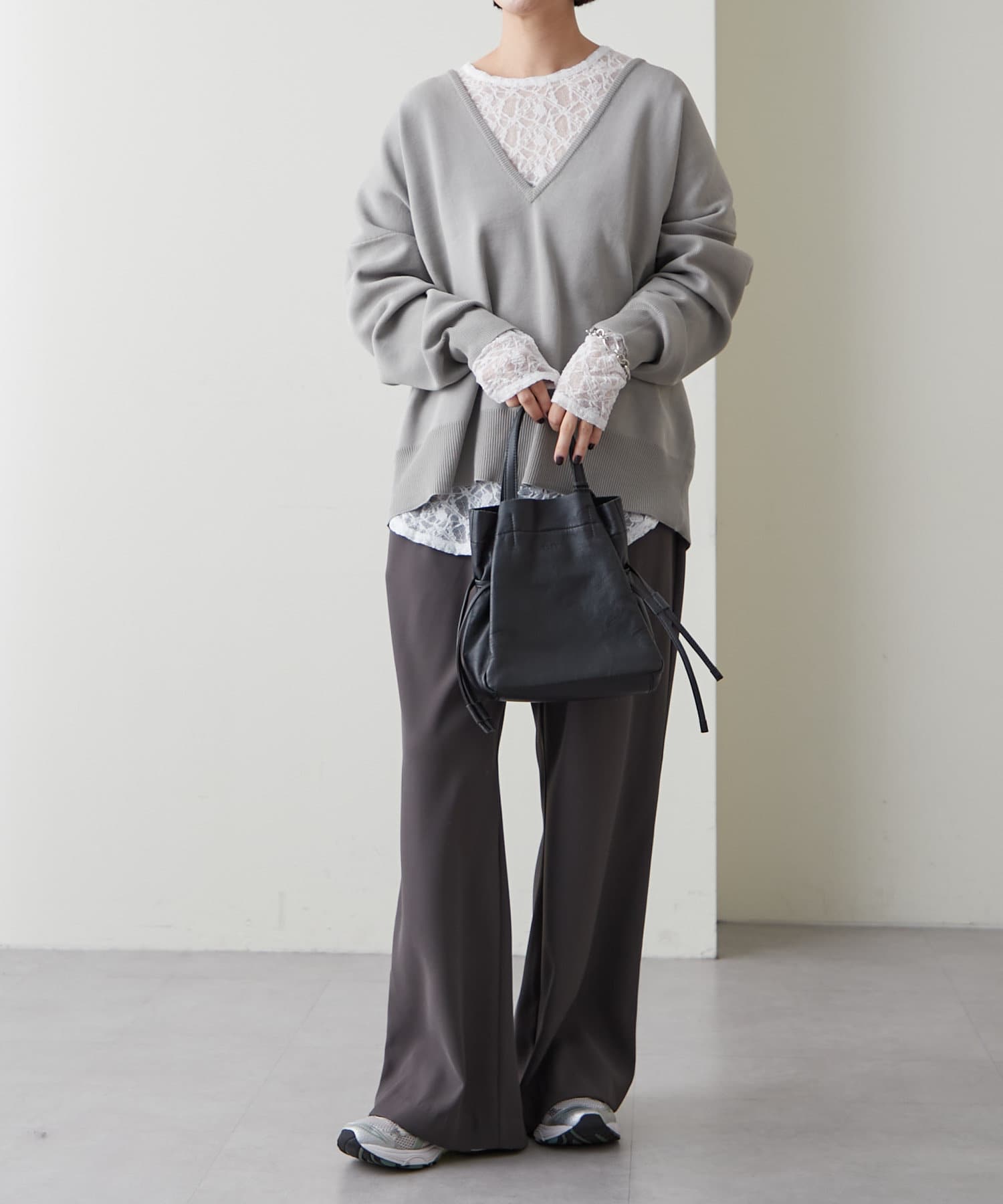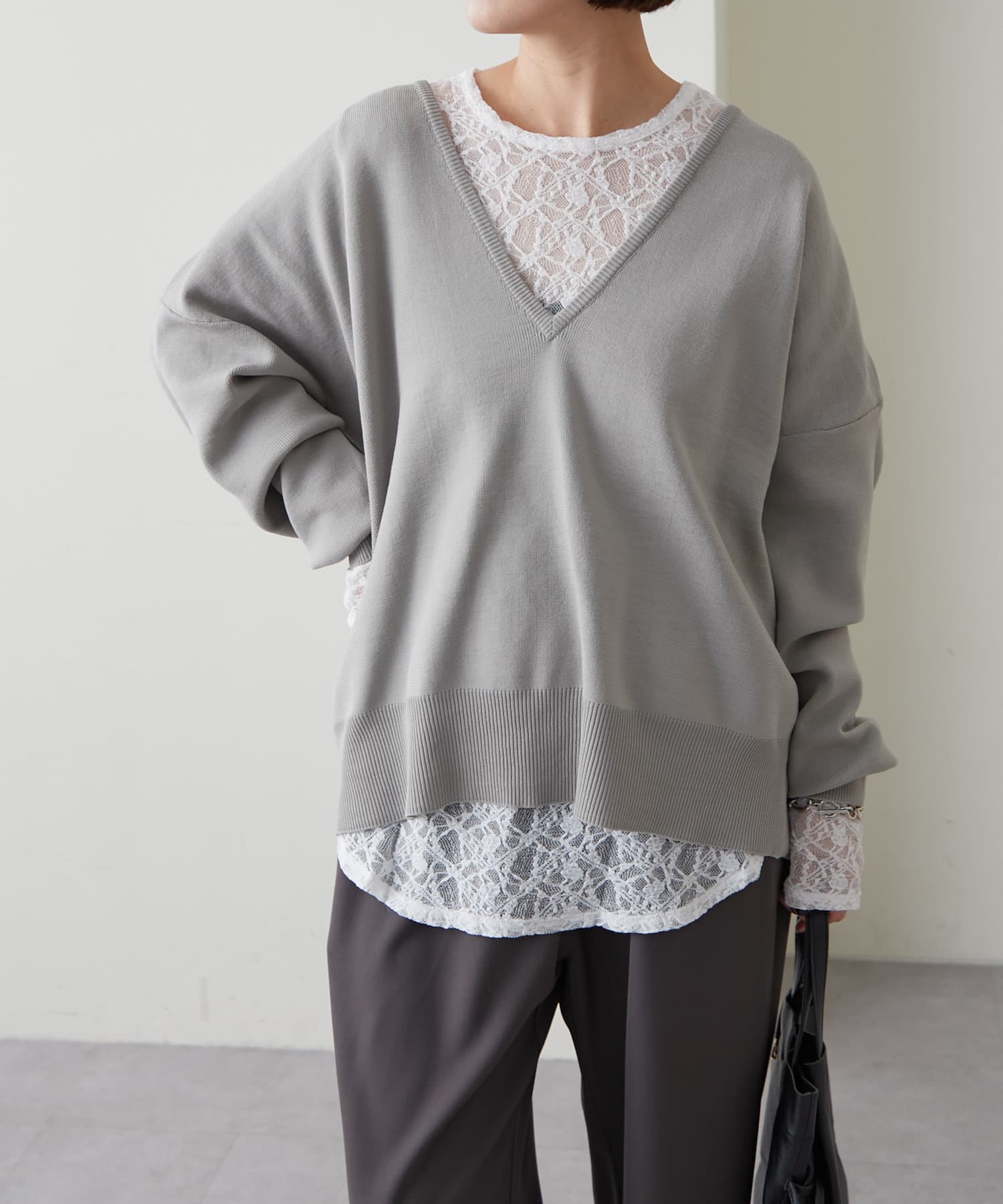 大人の肌見せスタイルが叶うVネックシルエットのニット