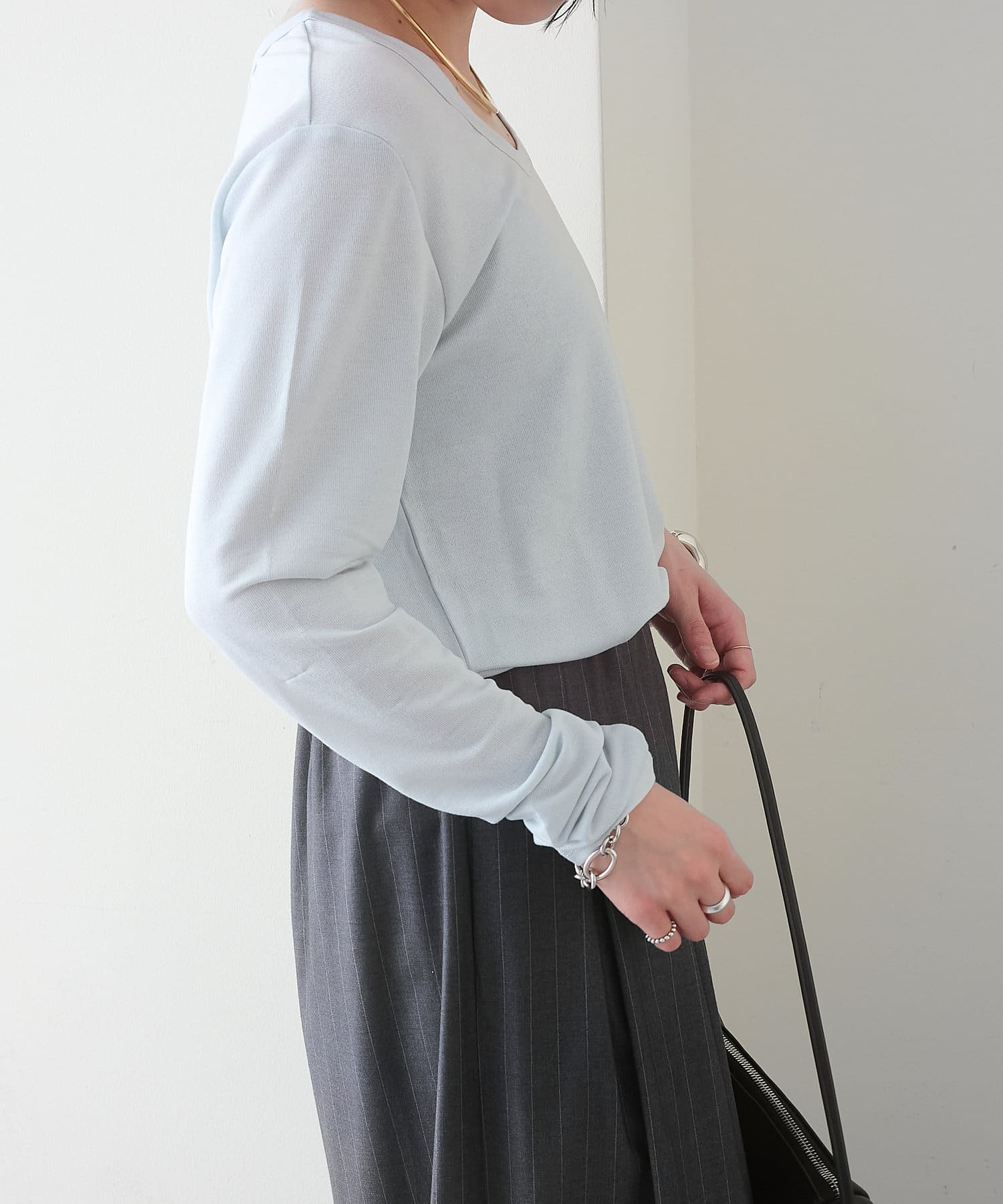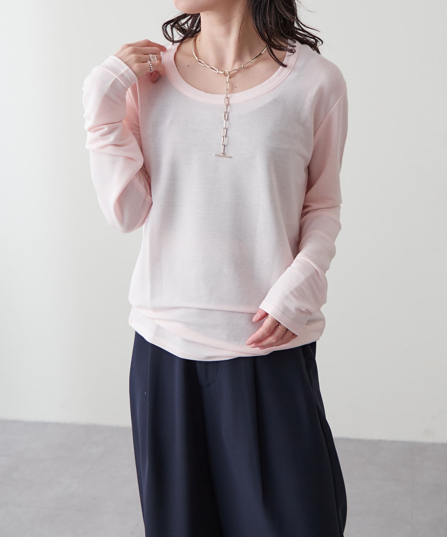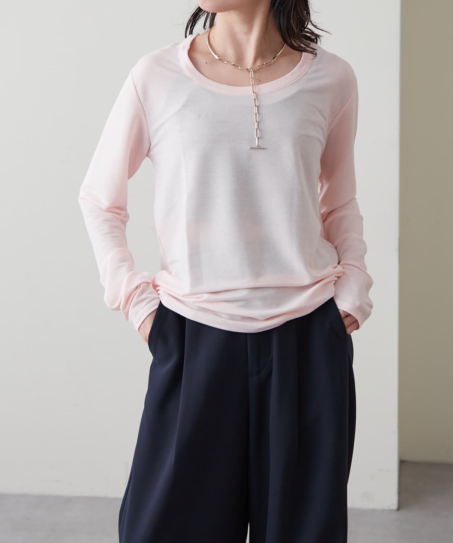 ・ニットやジャケットのインナーとしてはもちろん、春先は1枚で透け感を楽しむのも◎