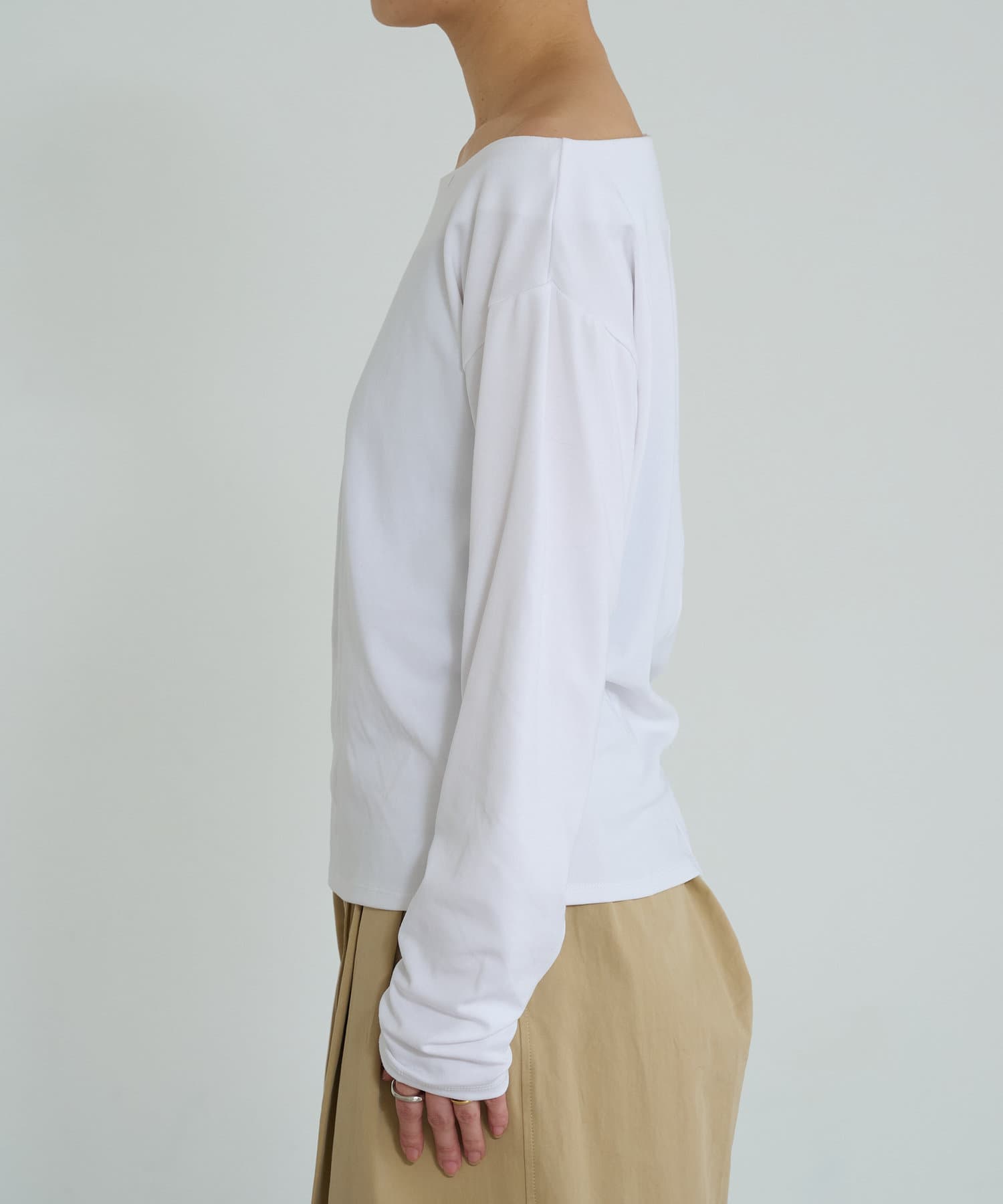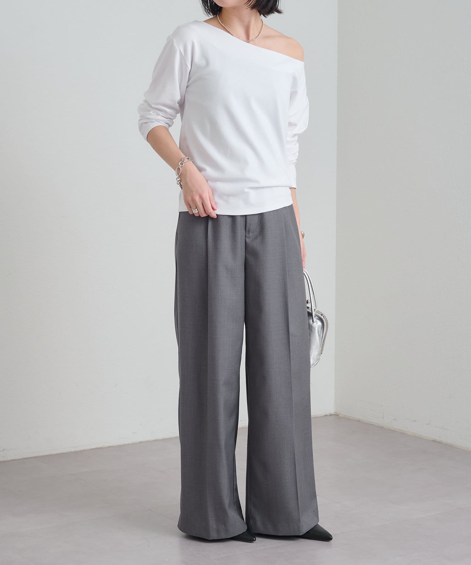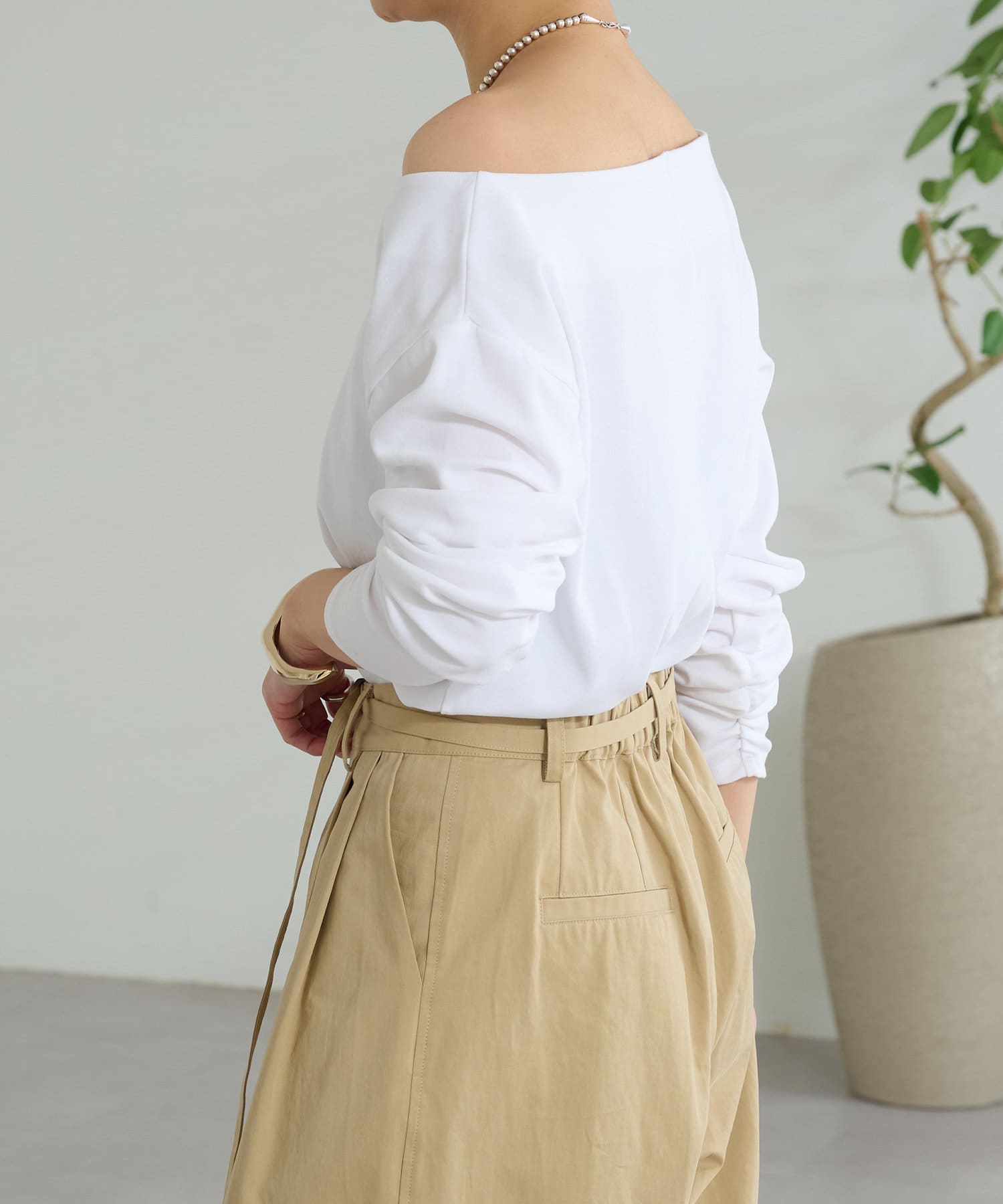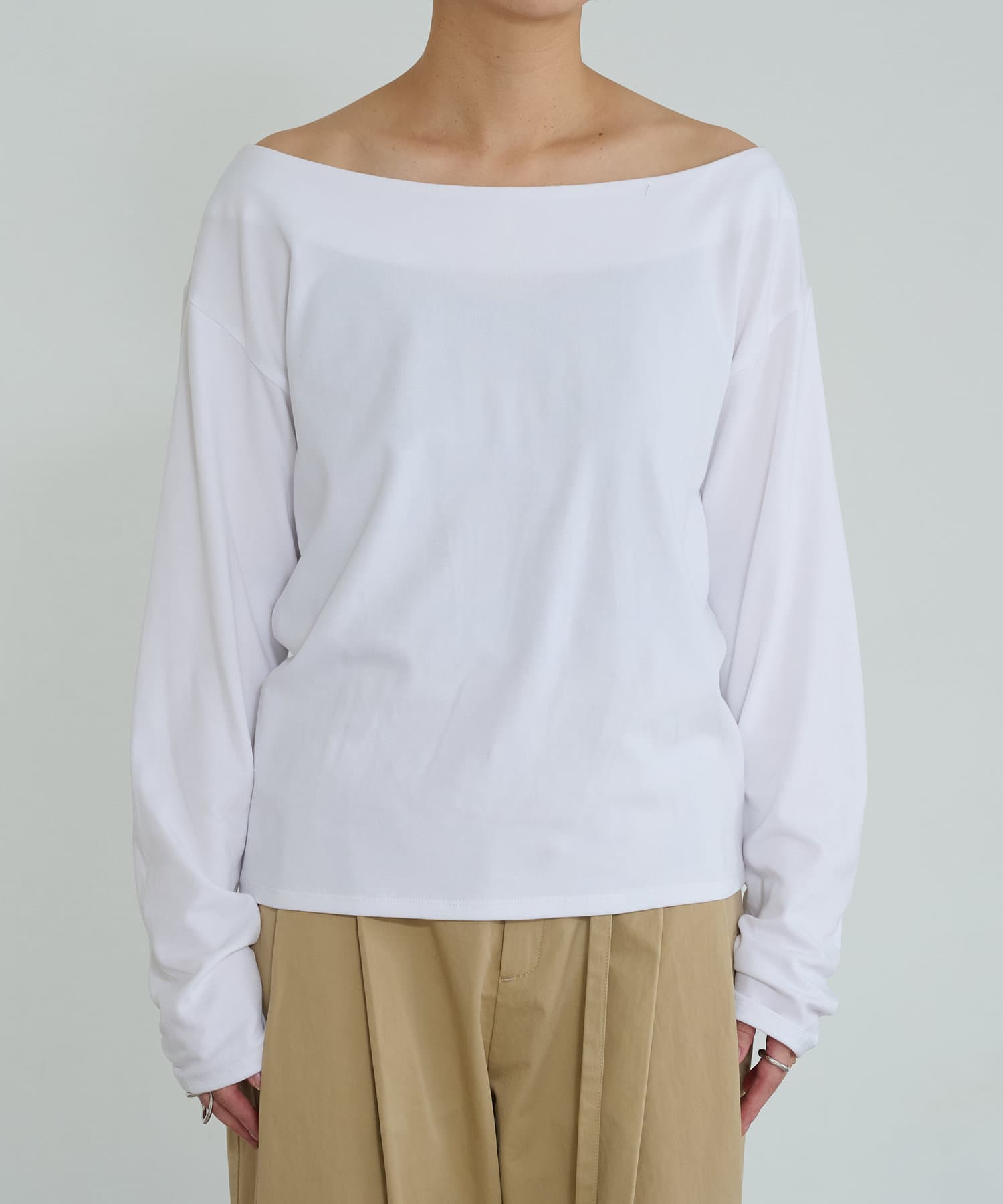 ・ネックの開きを調整することが出来るので、オフショルやボートネックなどその日の気分に合わせて着こなせます。