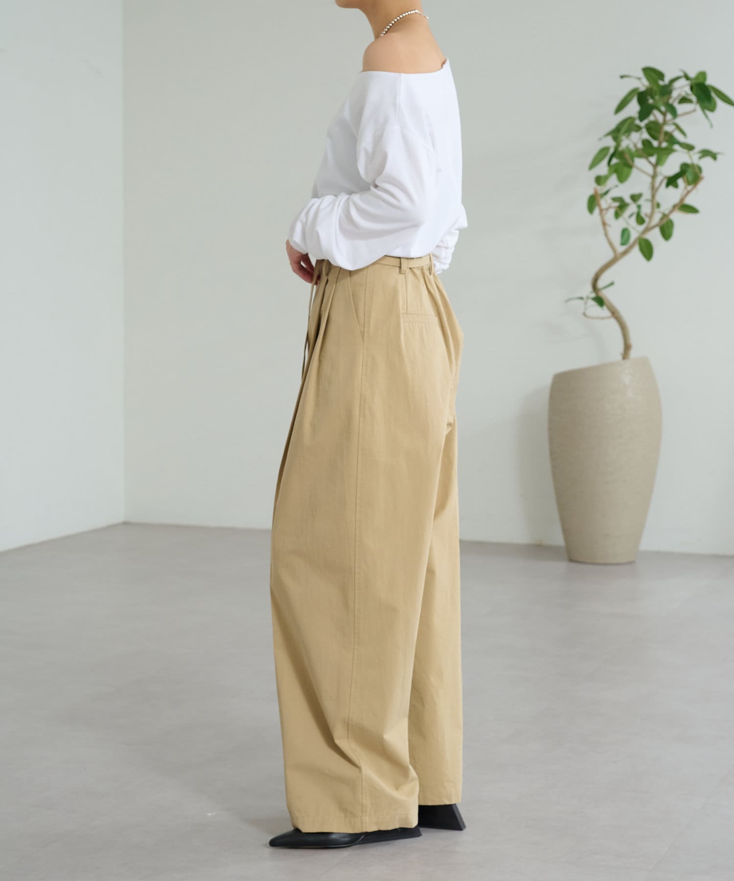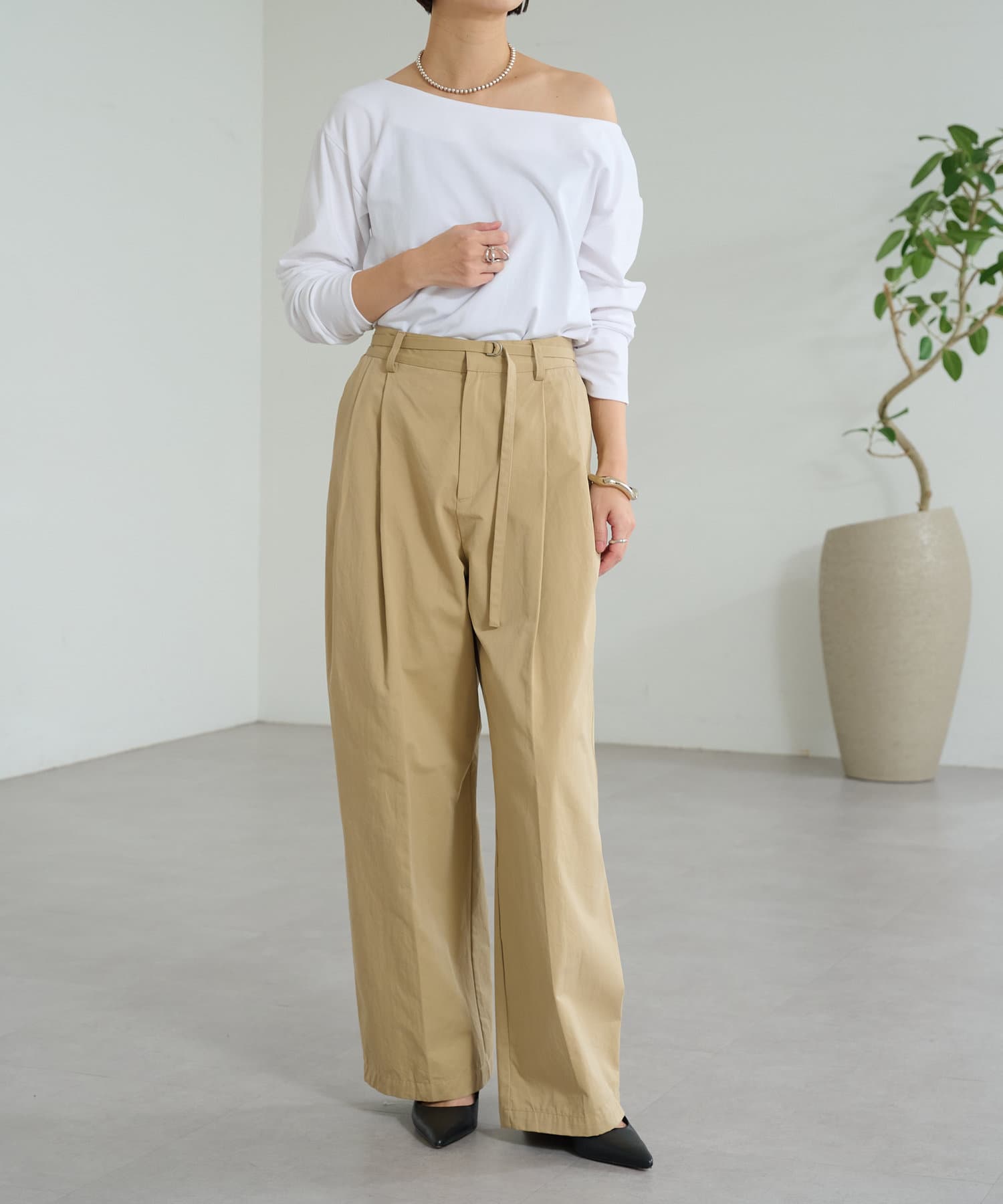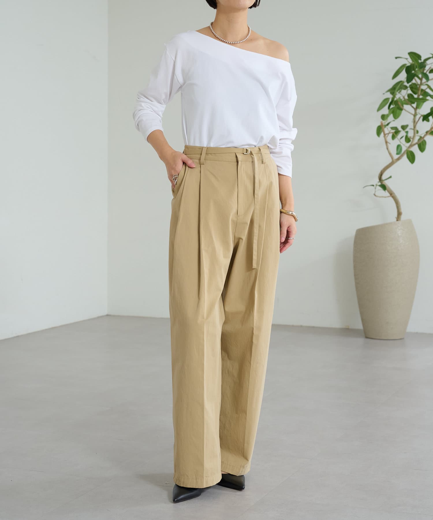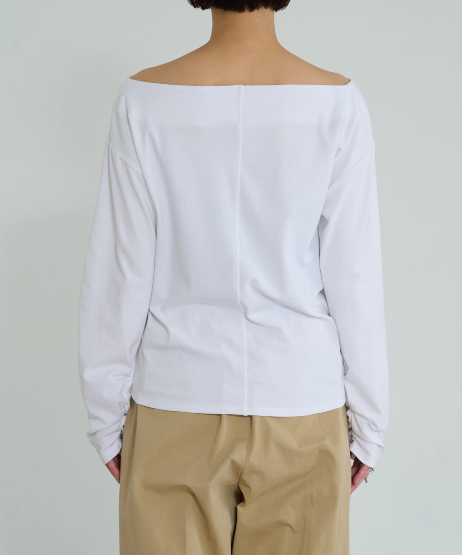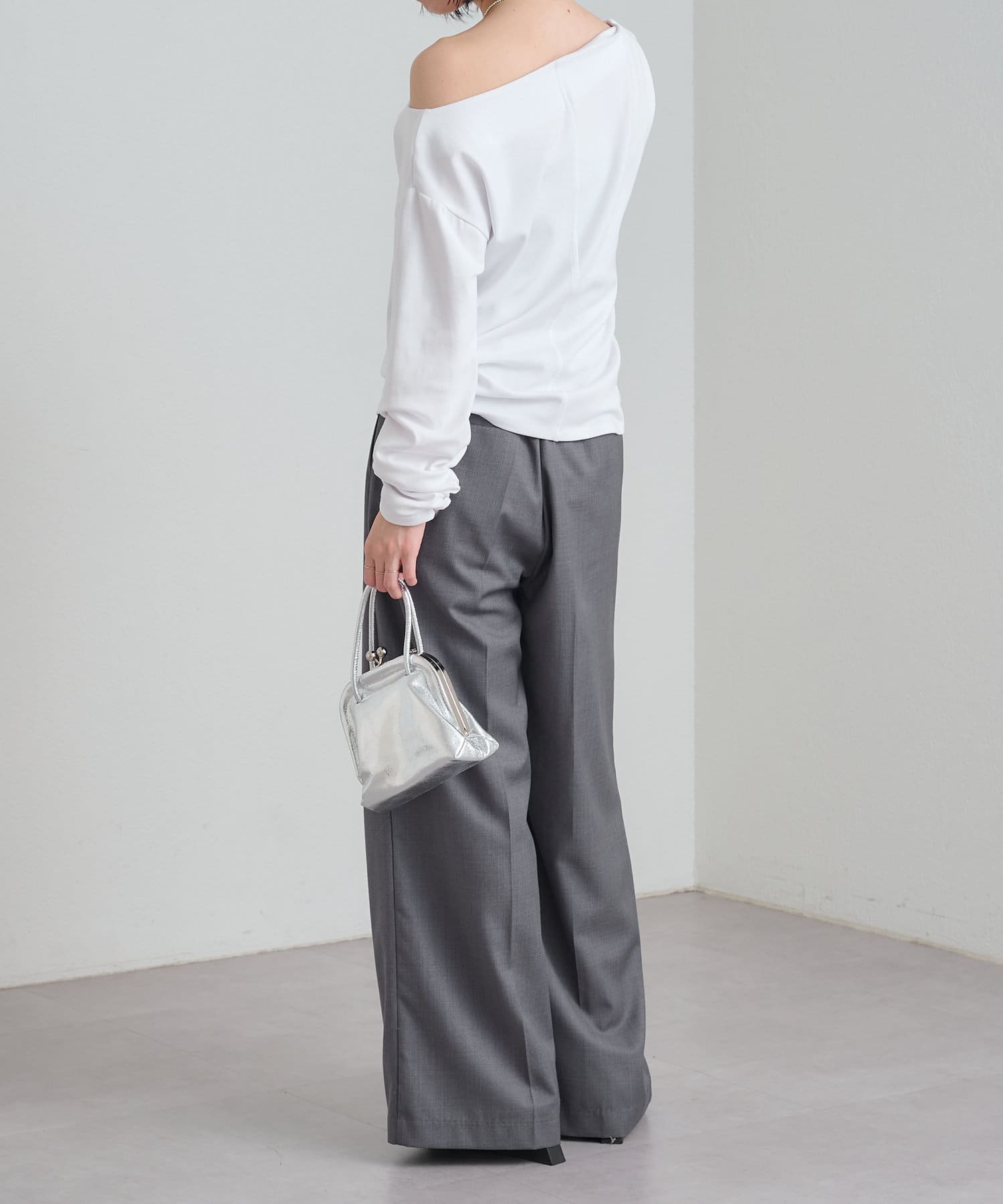 ・ネックの開きを調整することが出来るので、オフショルやボートネックなどその日の気分に合わせて着こなせます。
