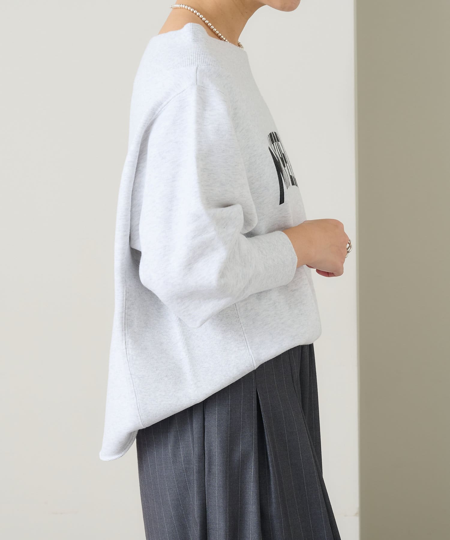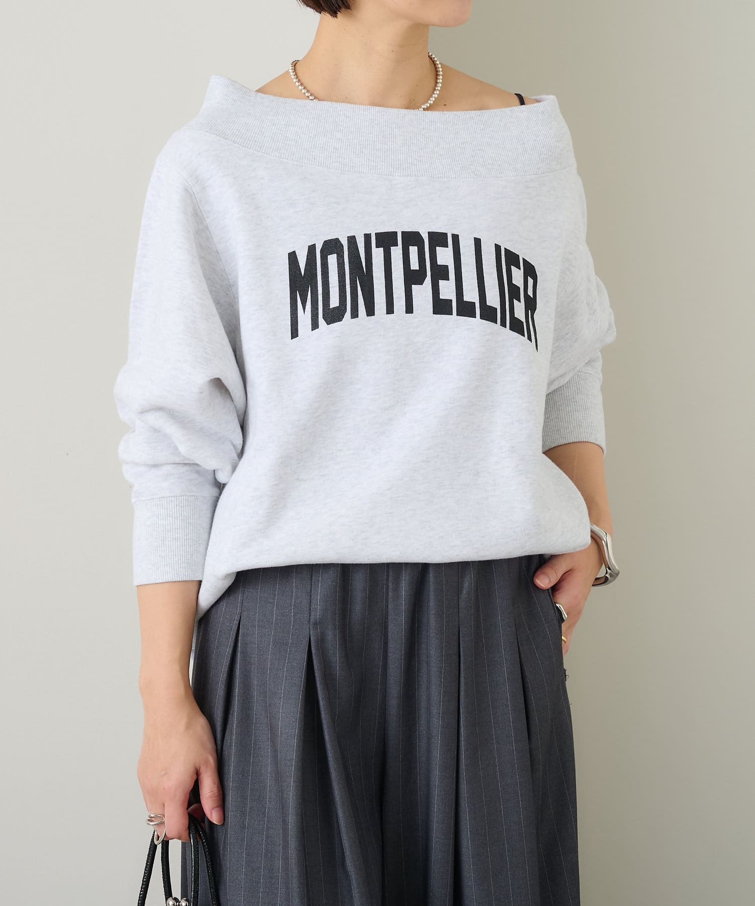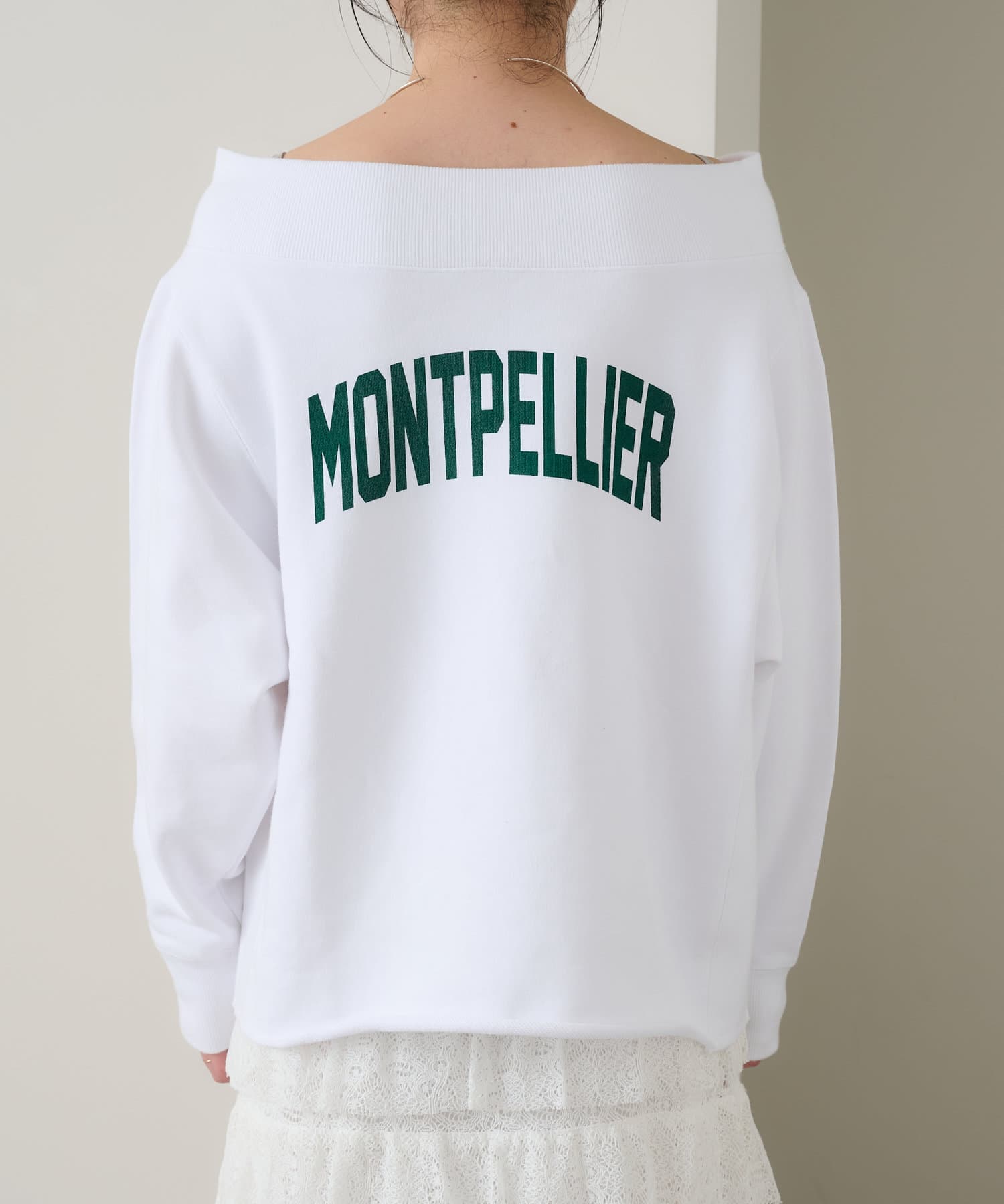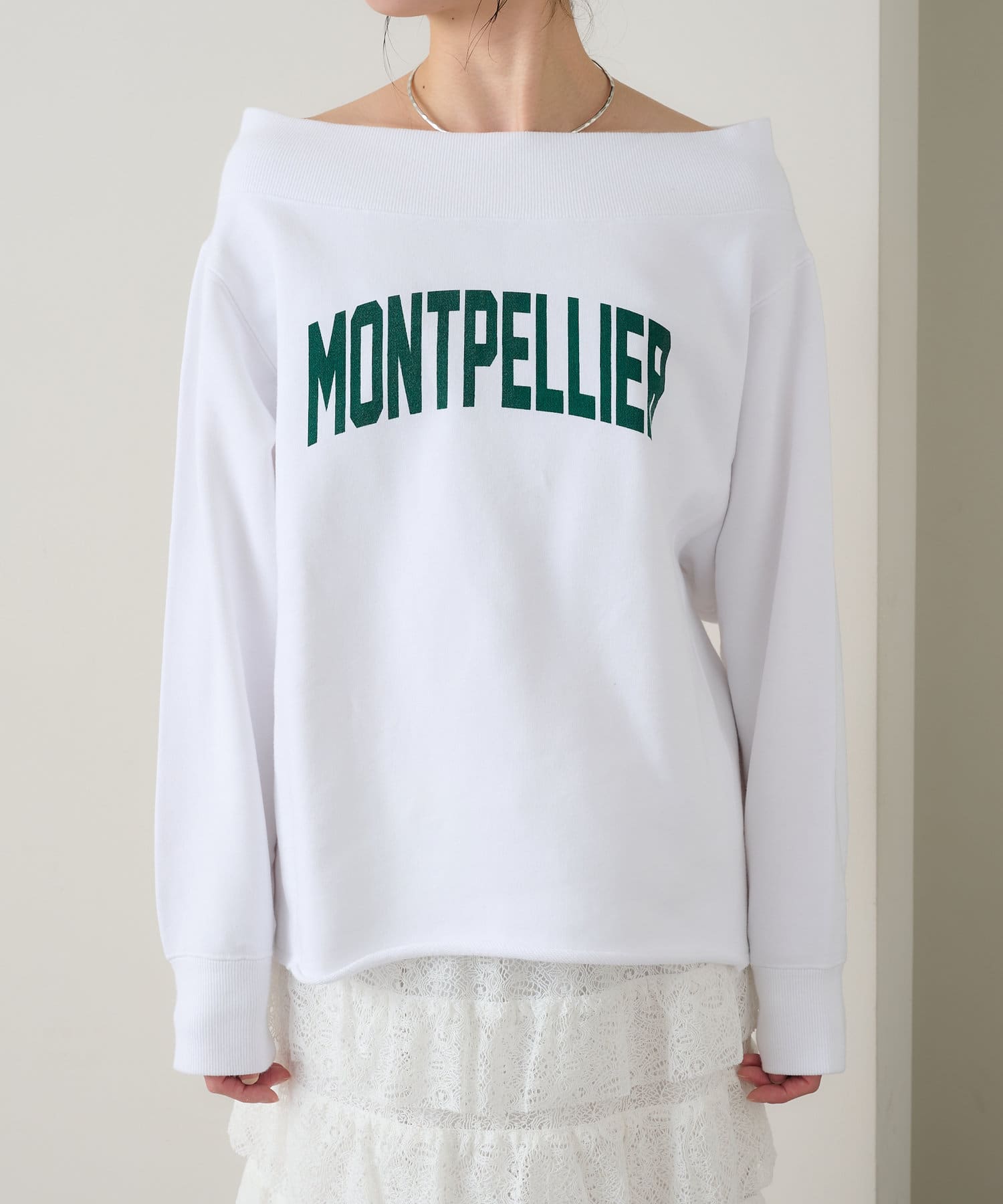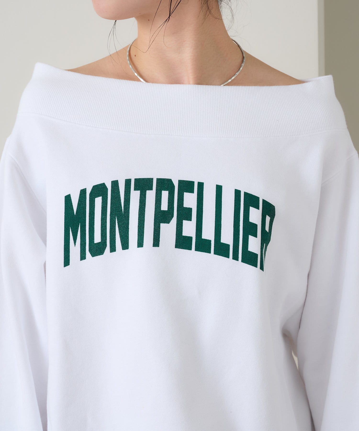 カジュアルと女性らしさを兼ね備えたロゴオフショルスウェット