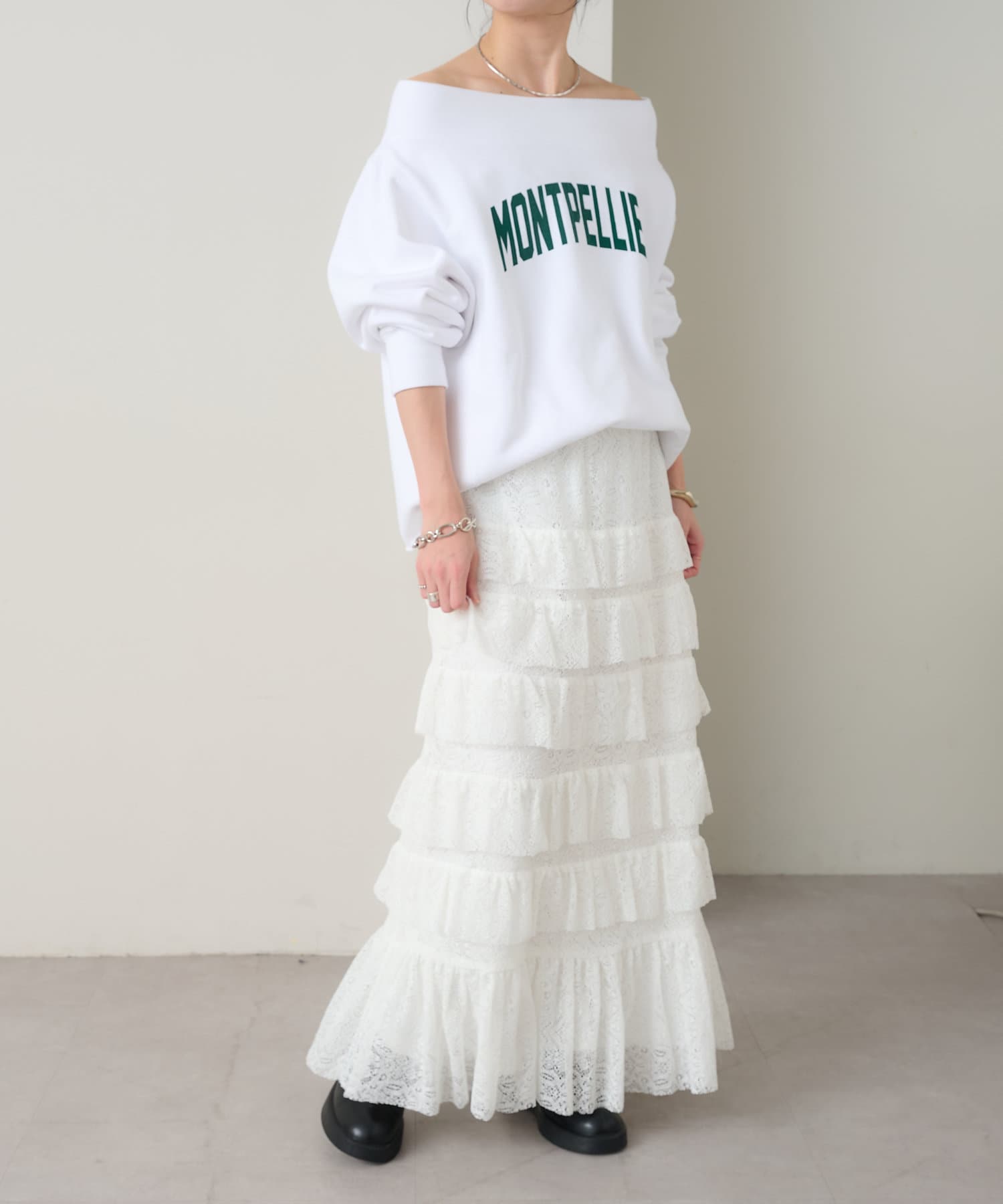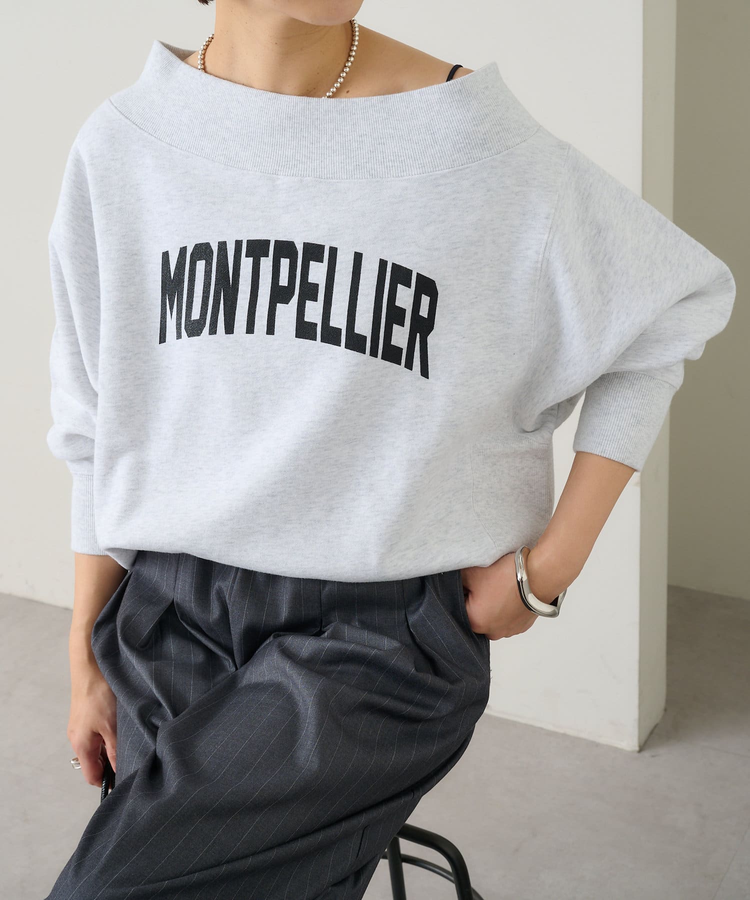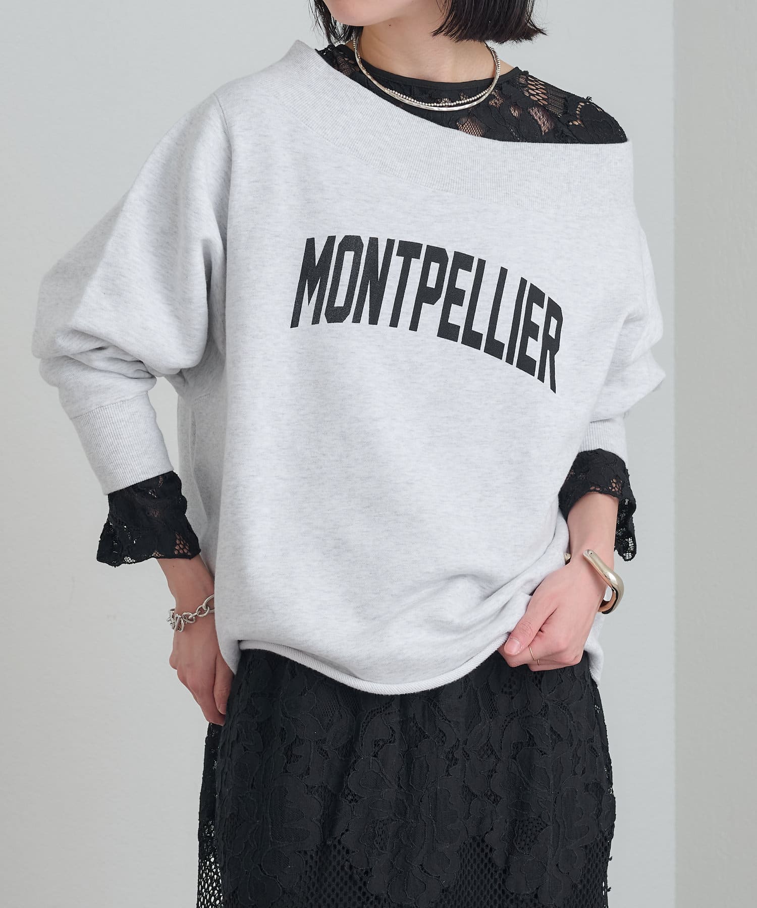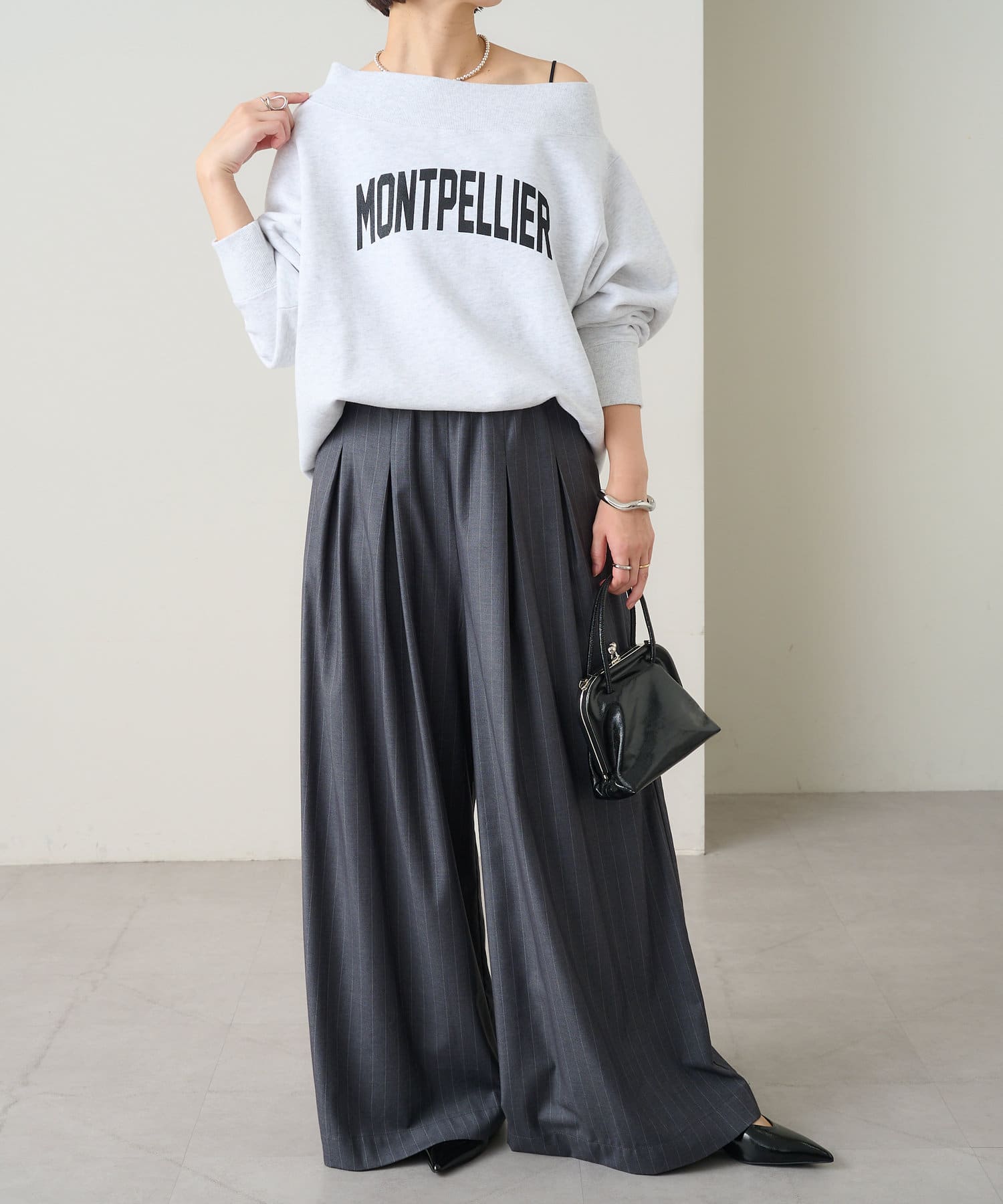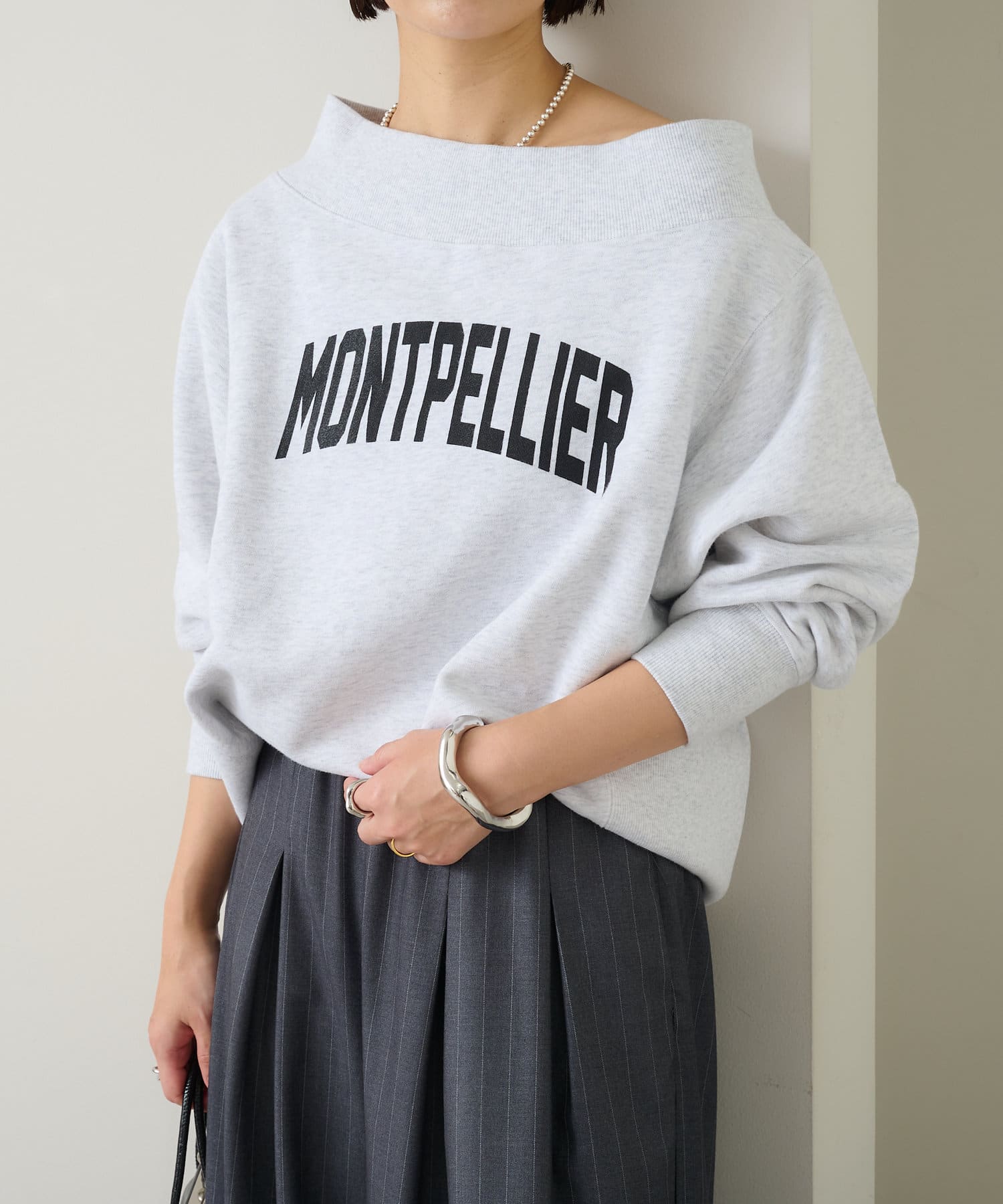 カジュアルと女性らしさを兼ね備えたロゴオフショルスウェット