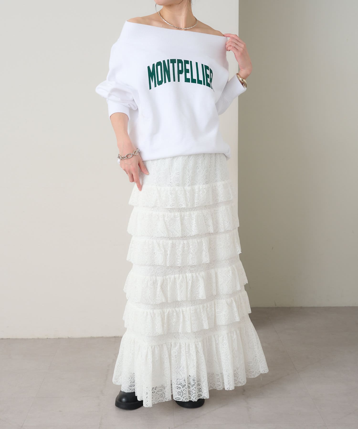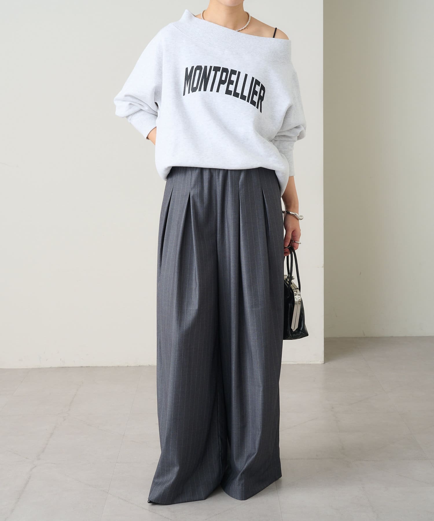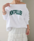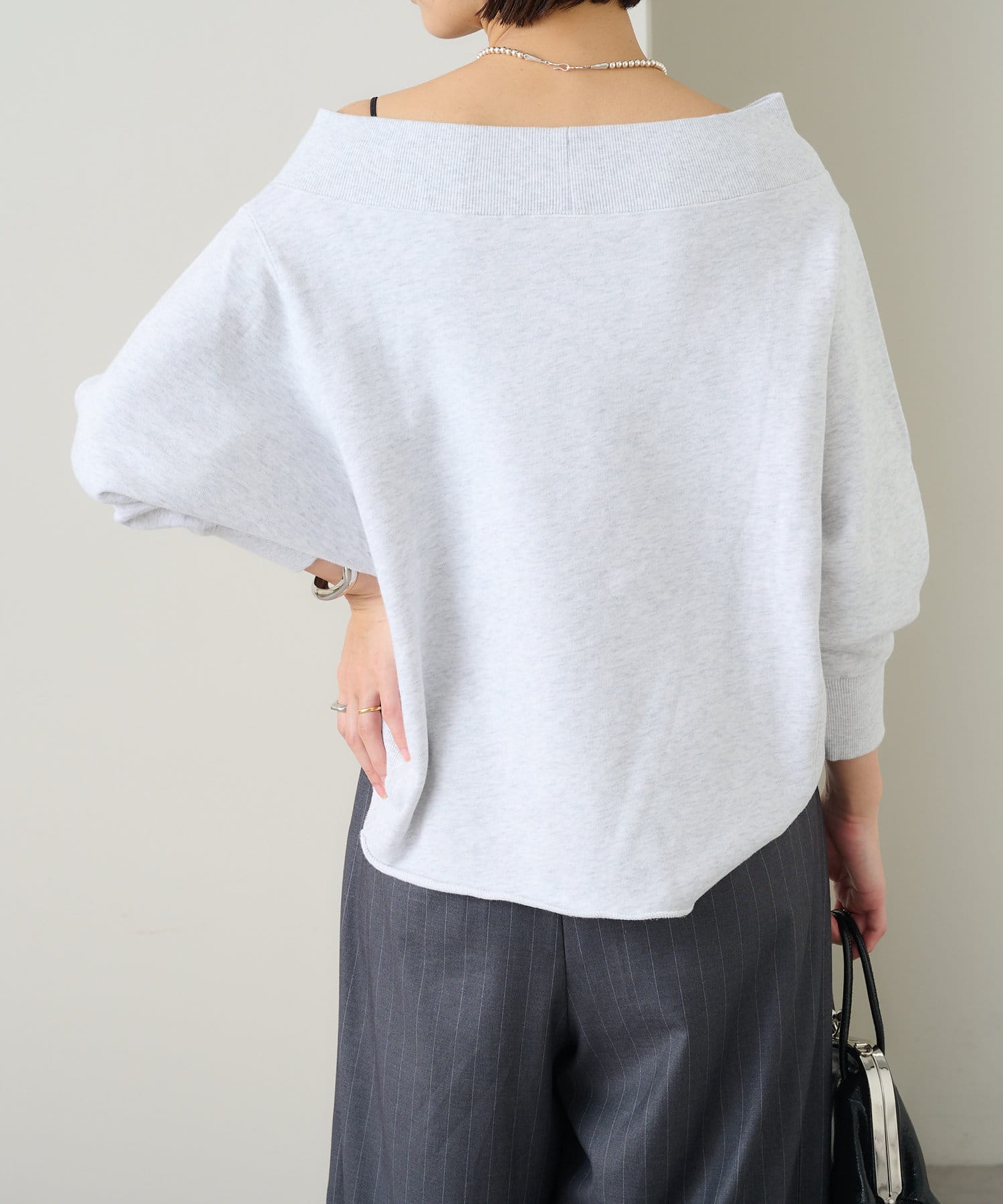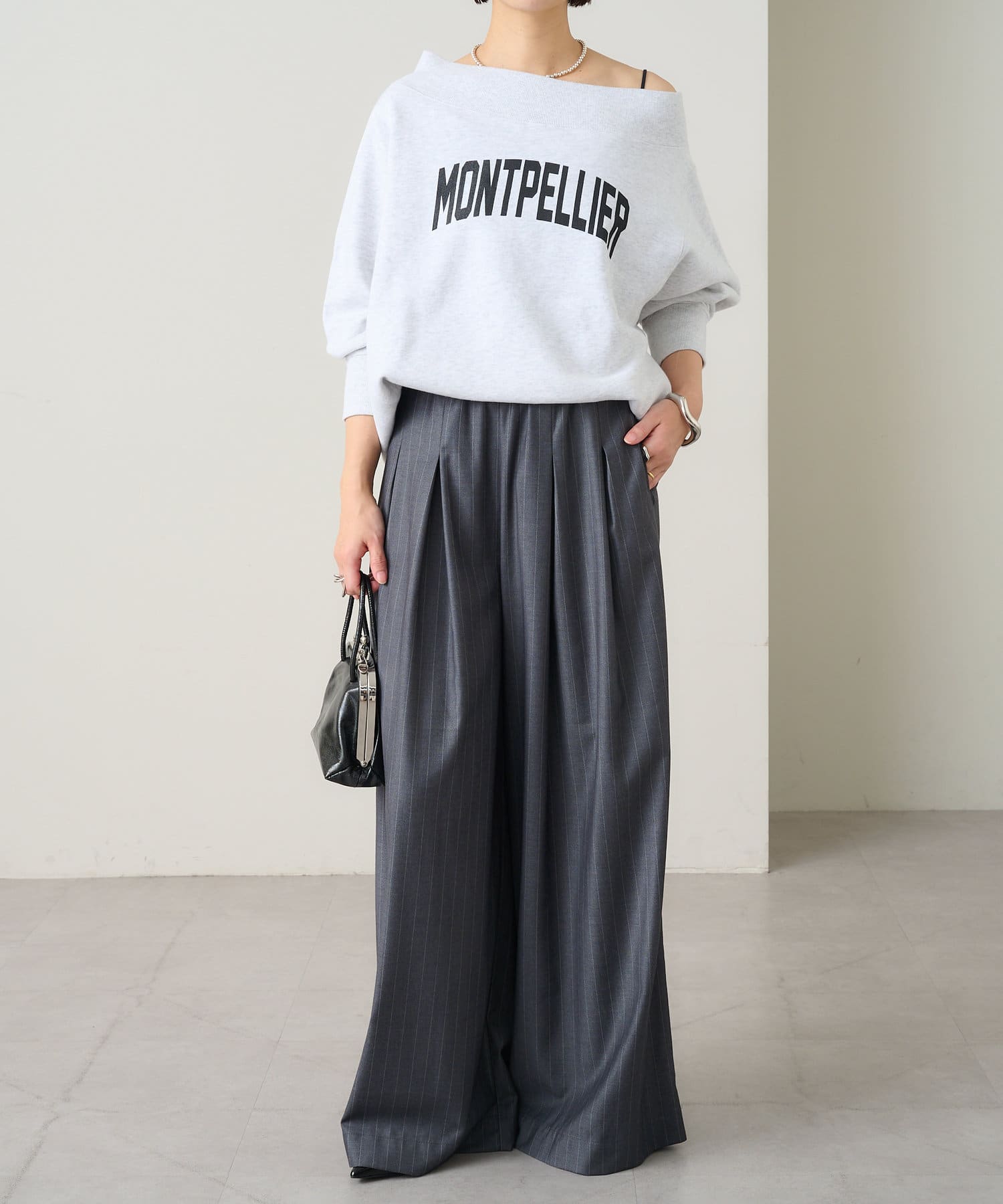 カジュアルと女性らしさを兼ね備えたロゴオフショルスウェット