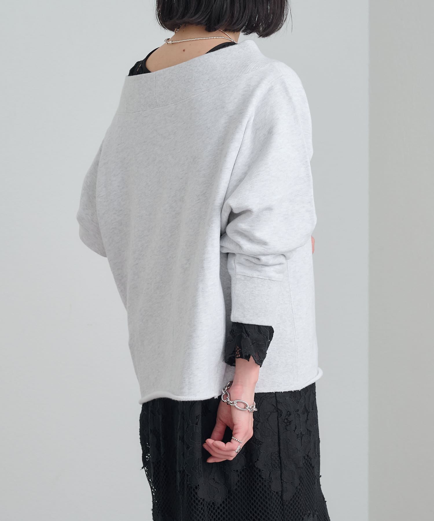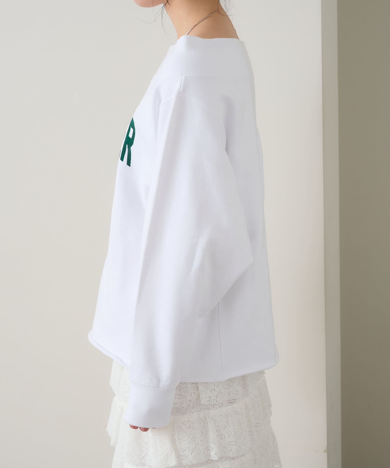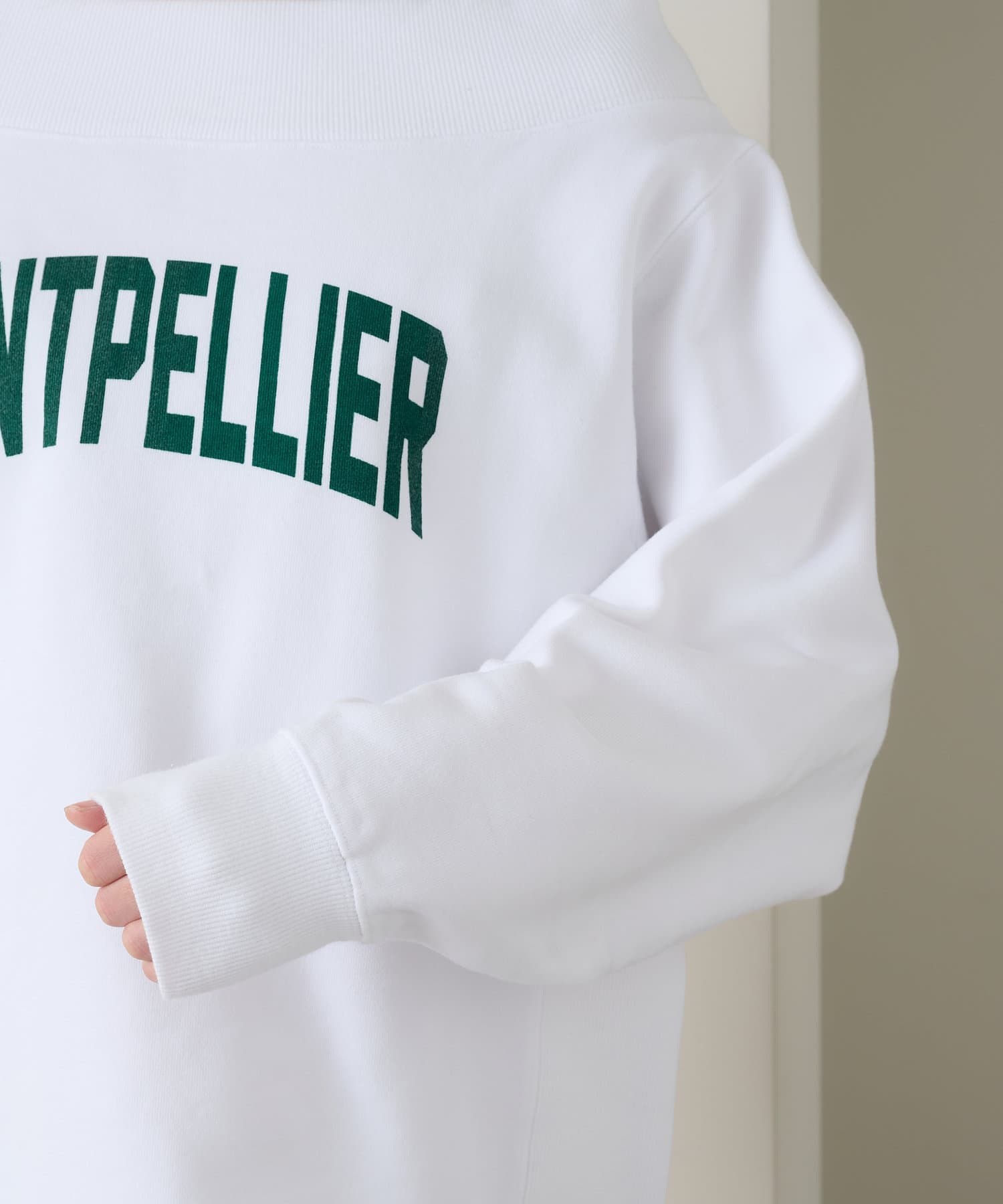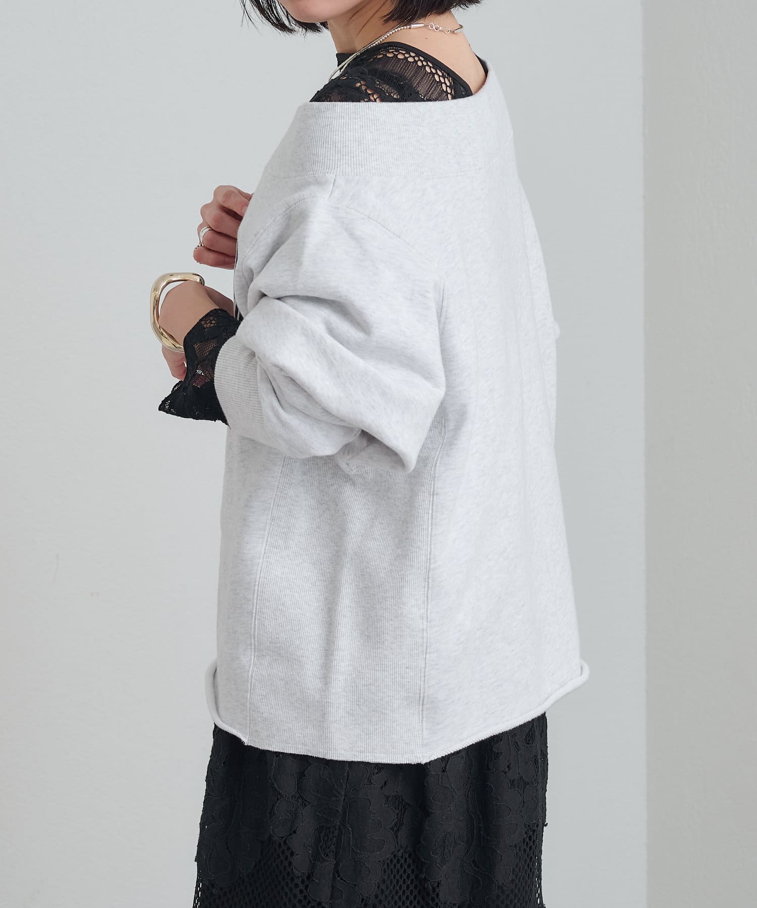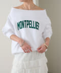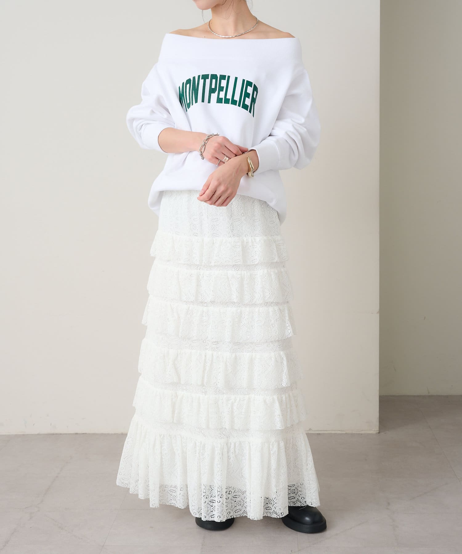カジュアルと女性らしさを兼ね備えたロゴオフショルスウェット