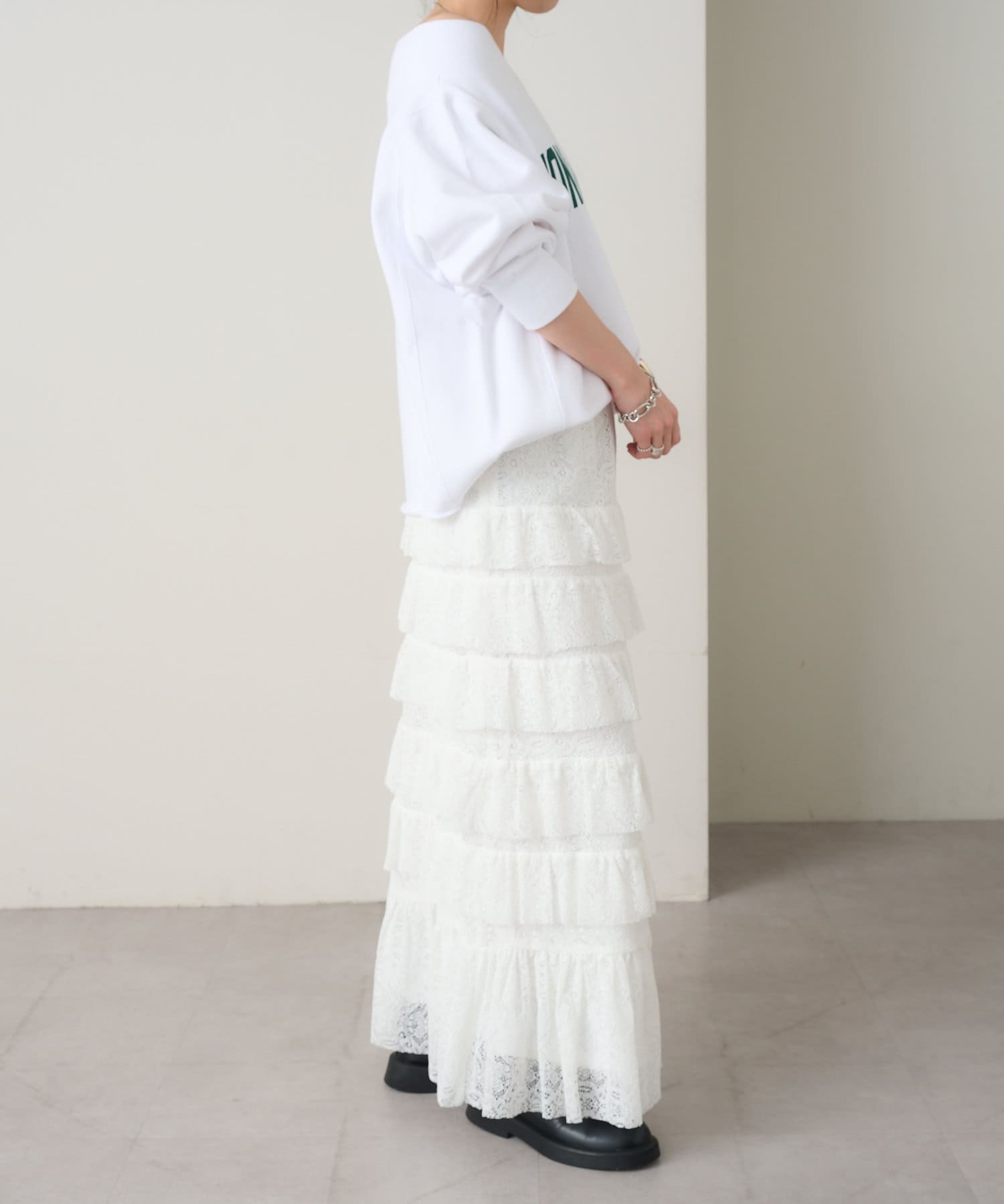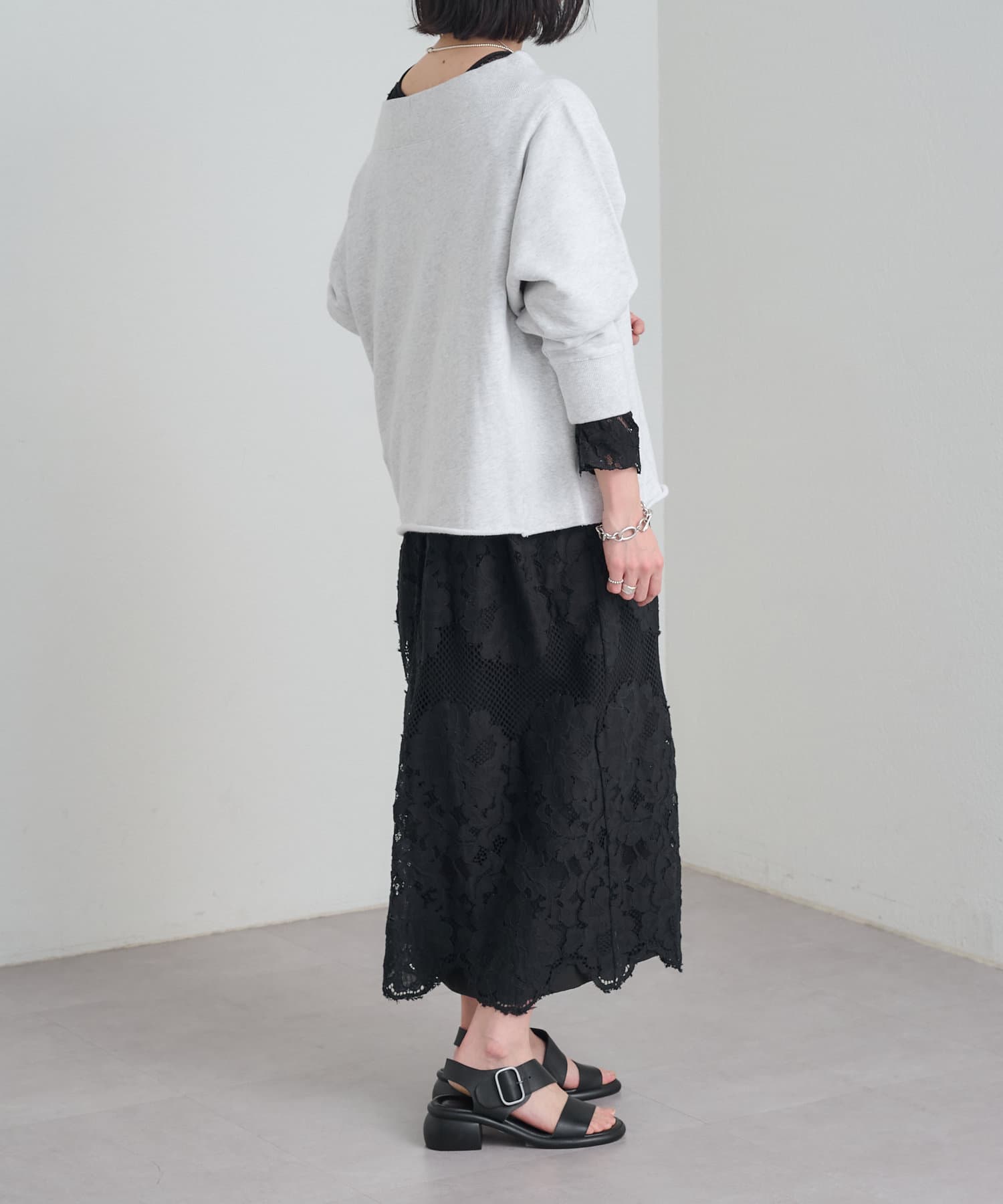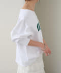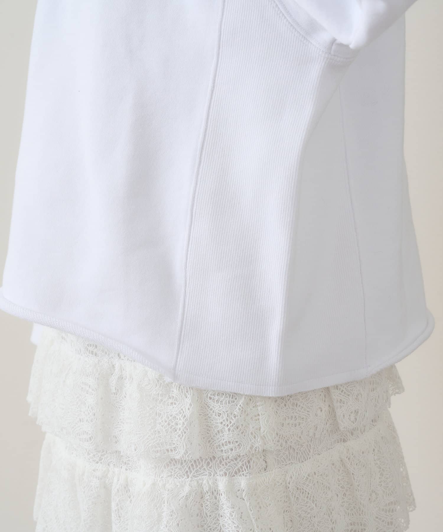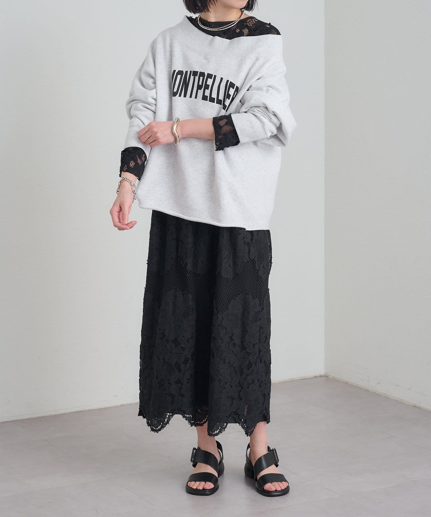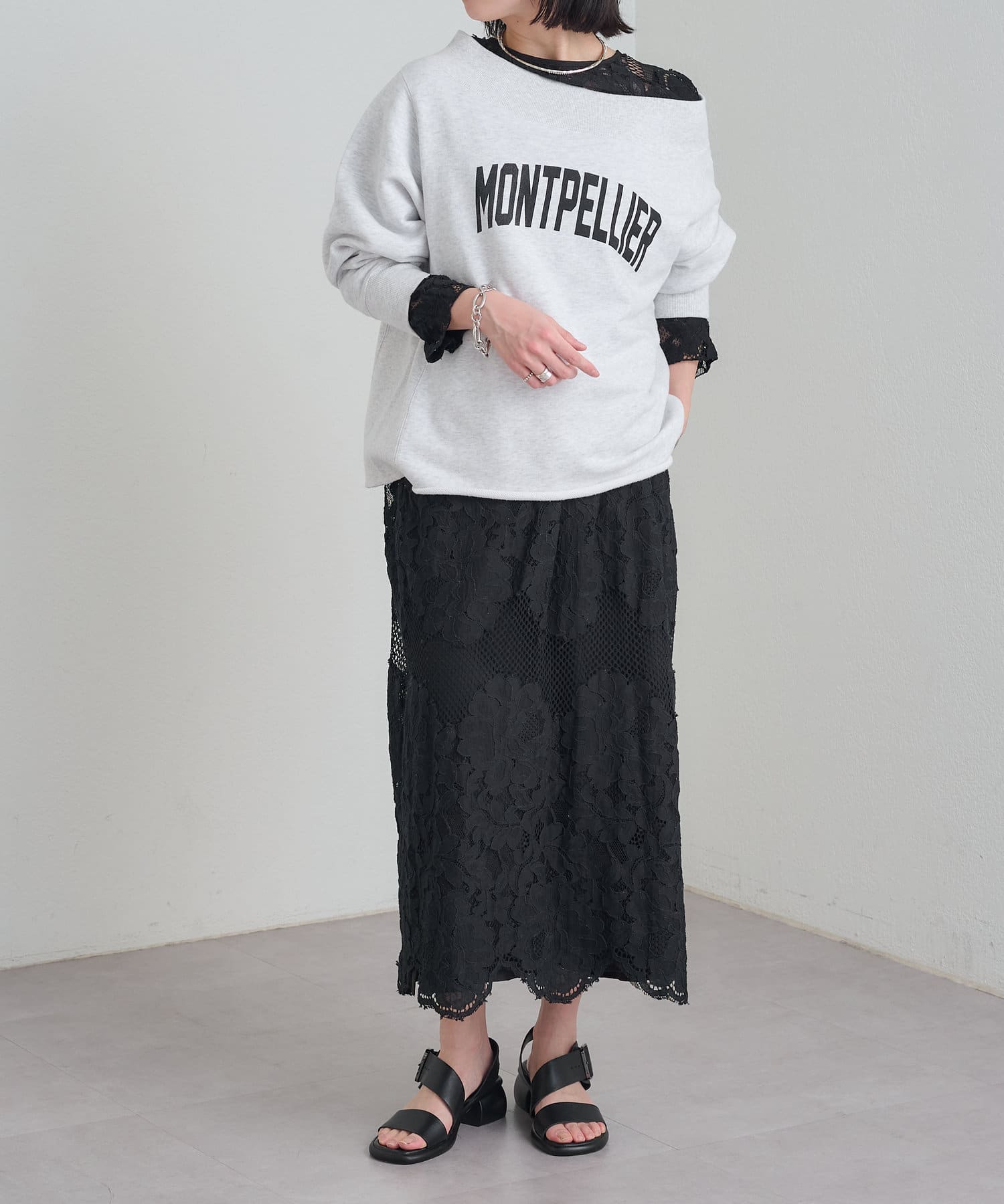 カジュアルと女性らしさを兼ね備えたロゴオフショルスウェット