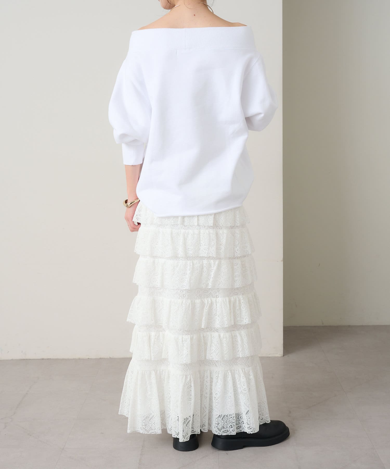 ・程よく肌見せできるオフショルデザインが着映える1枚。