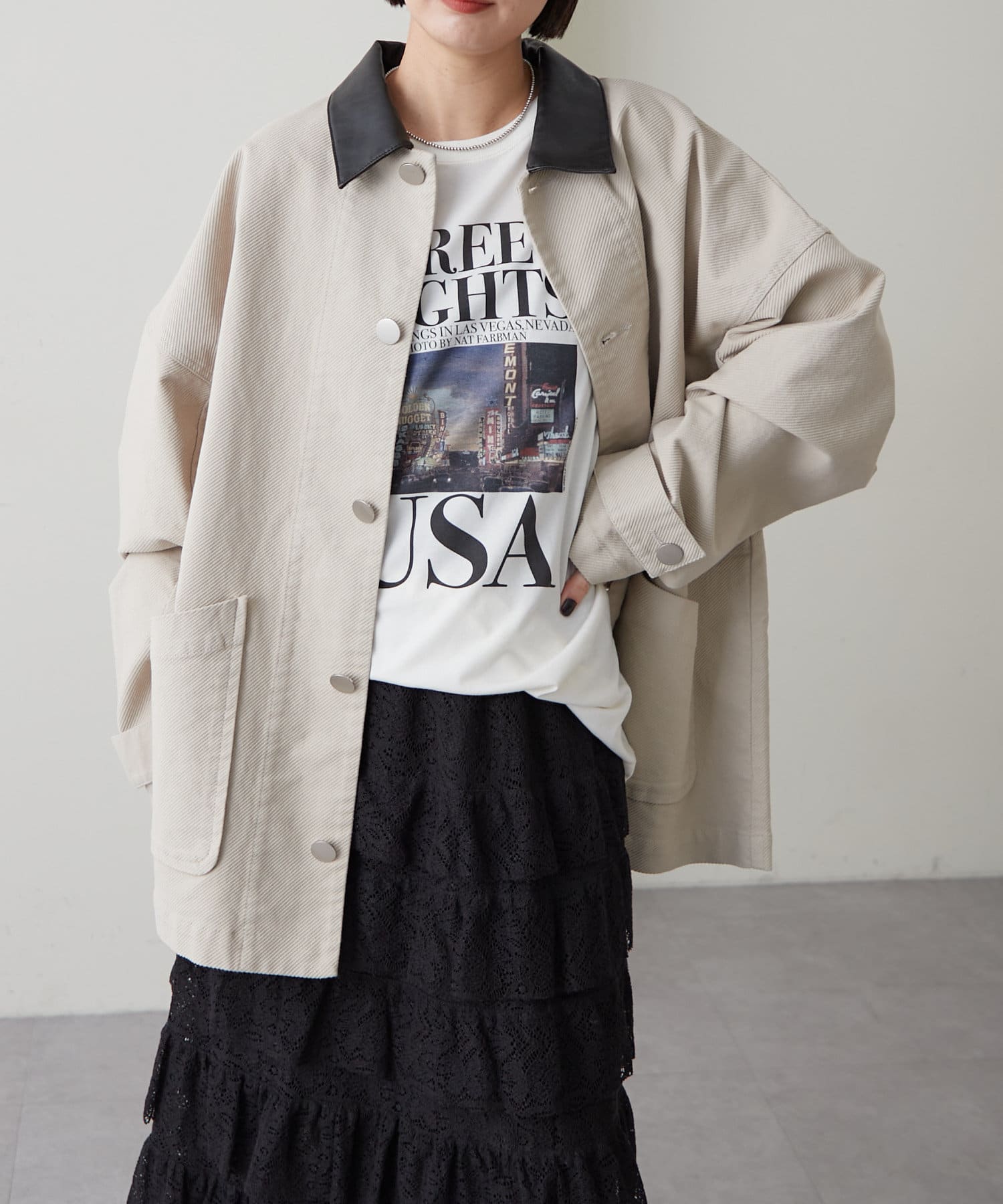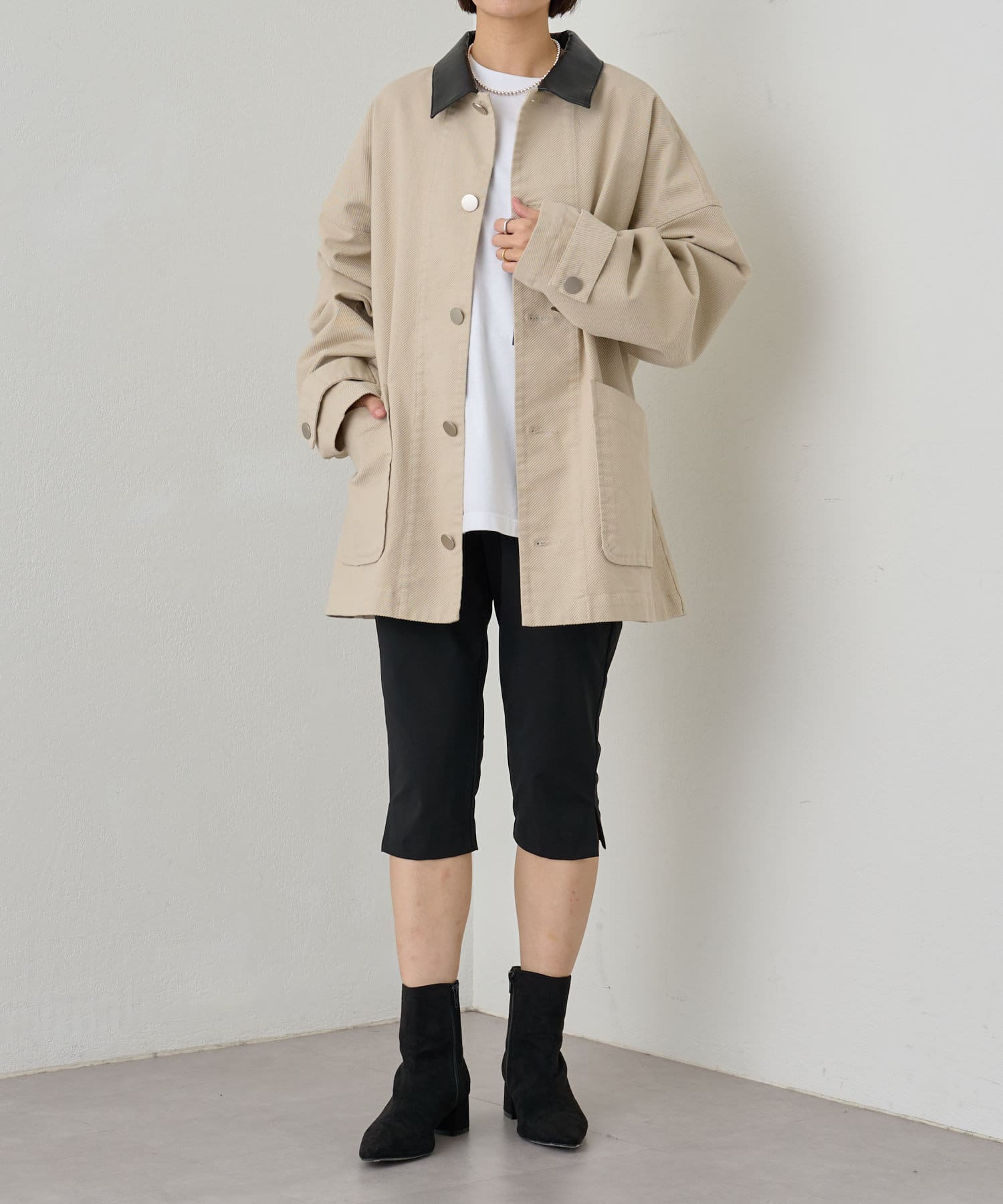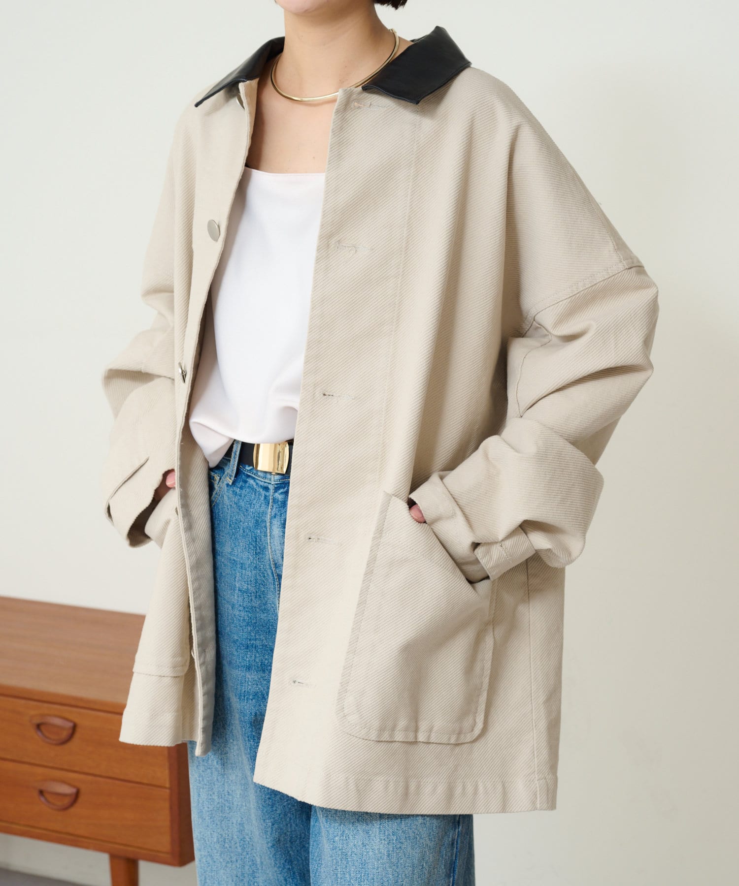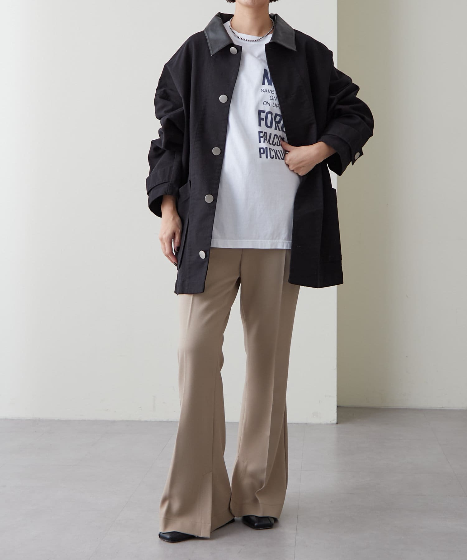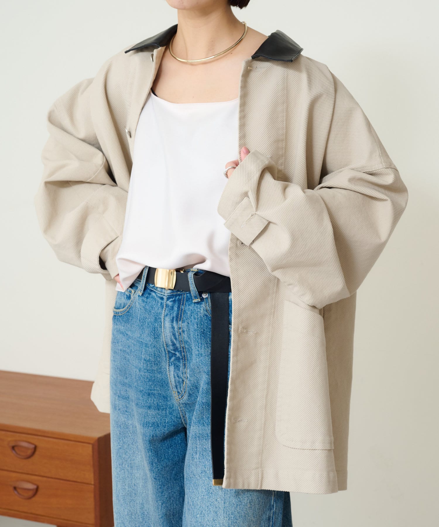 ・やや張りのある素材感とビッグシルエットが大人カジュアルな1枚。