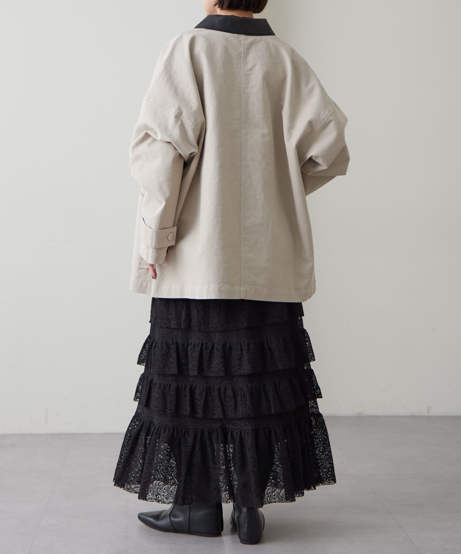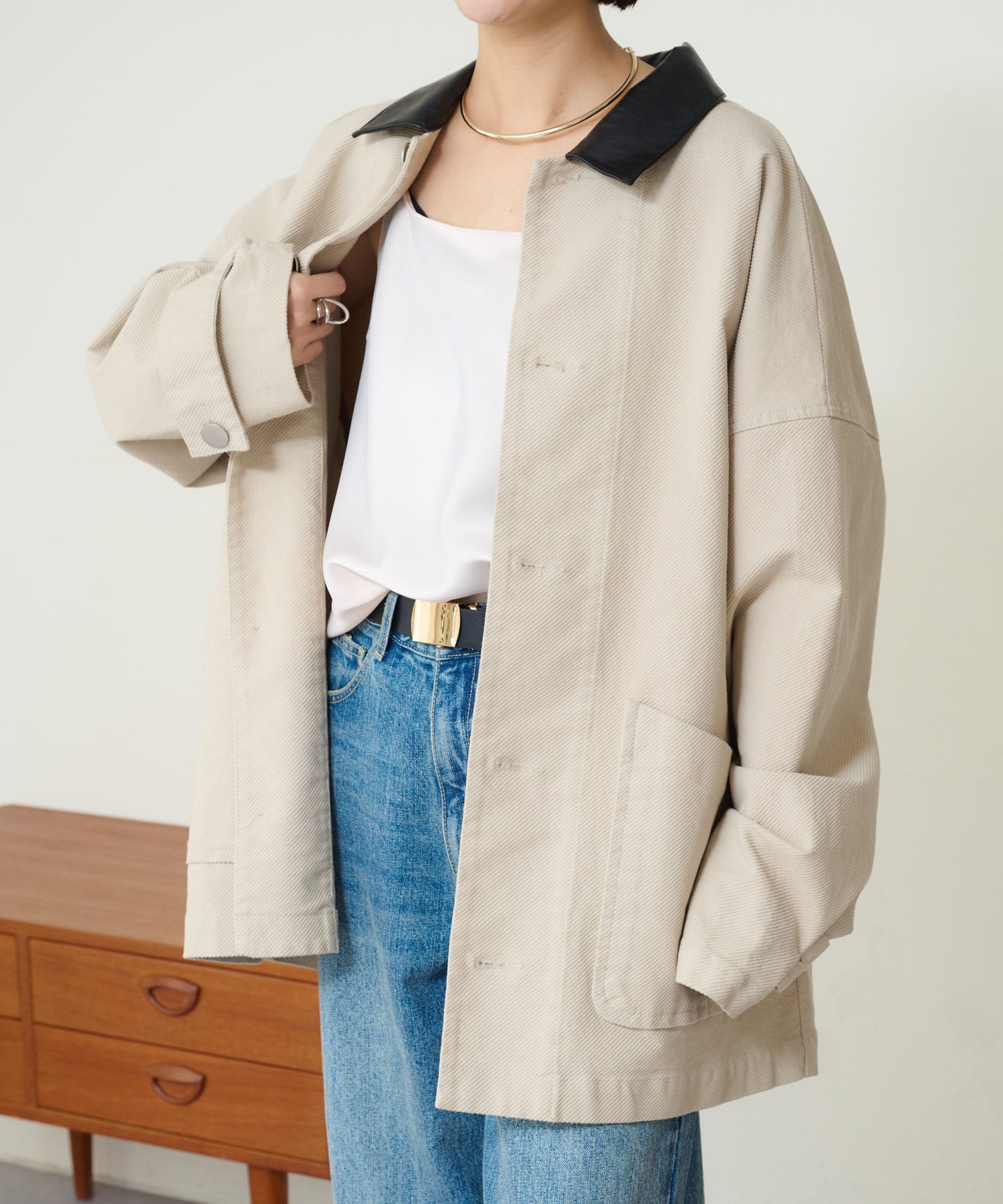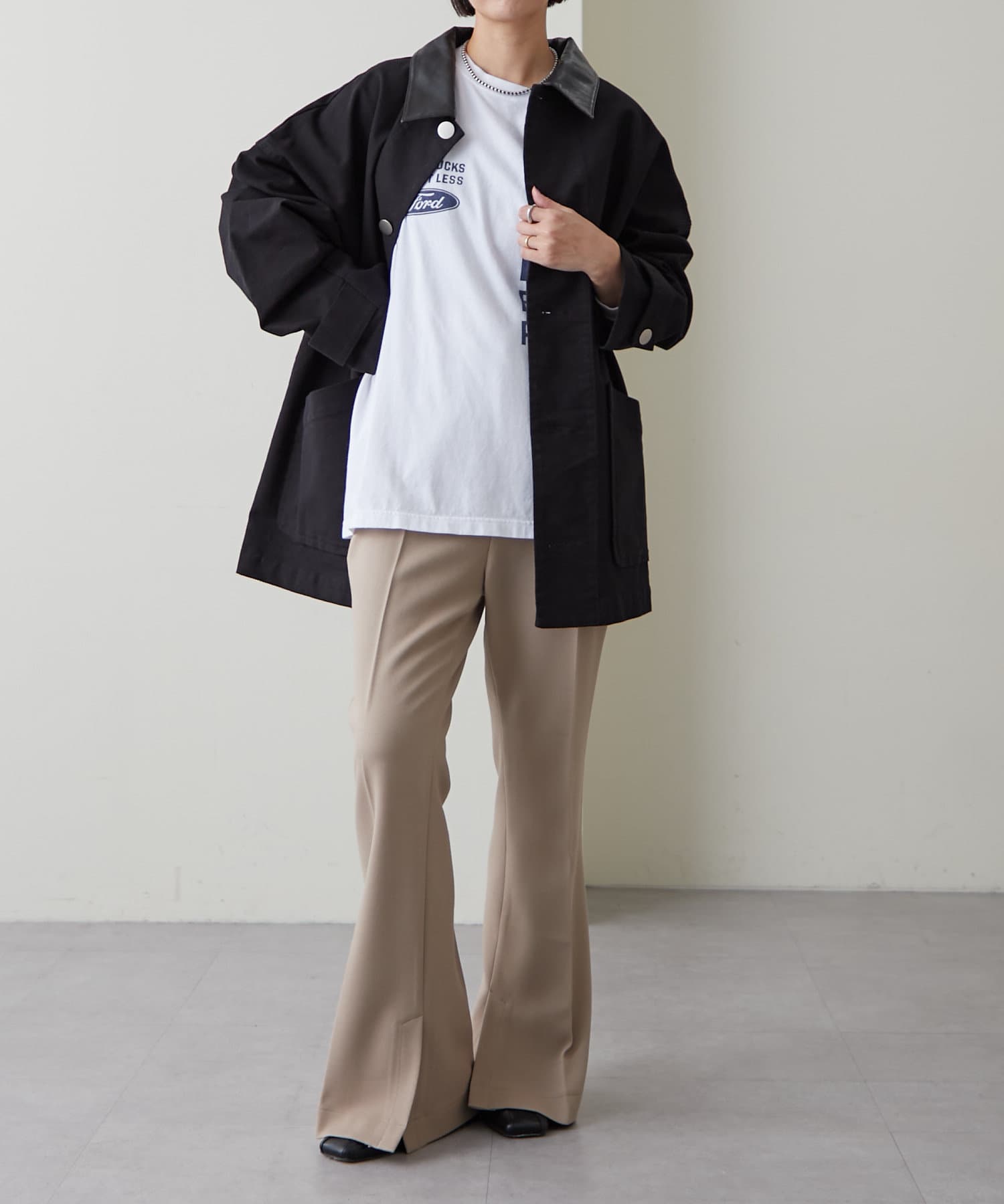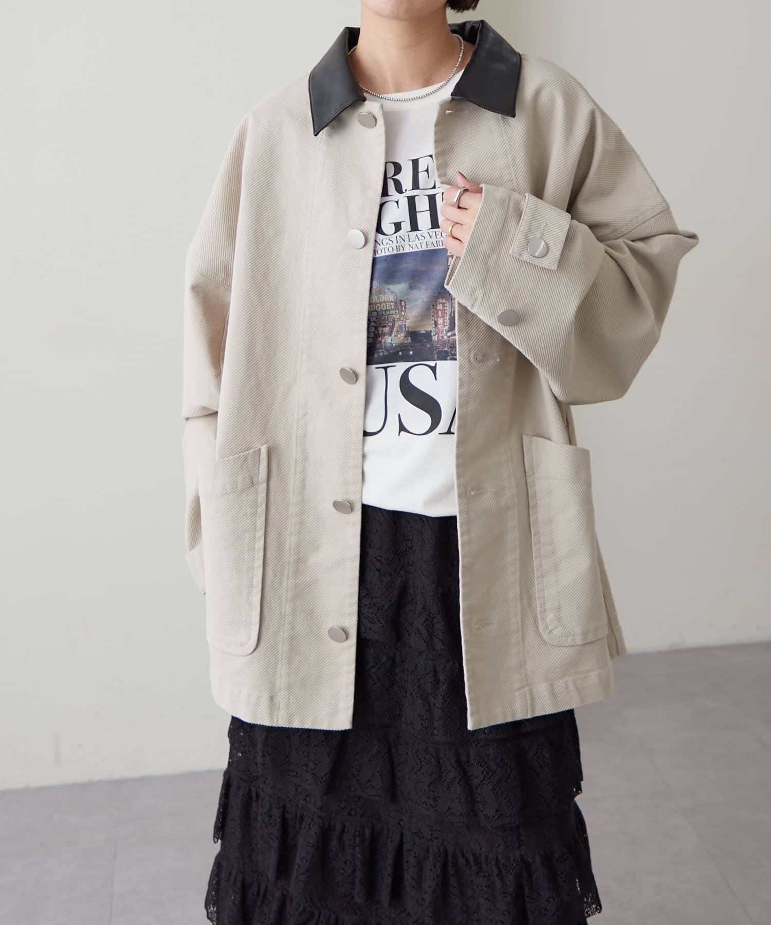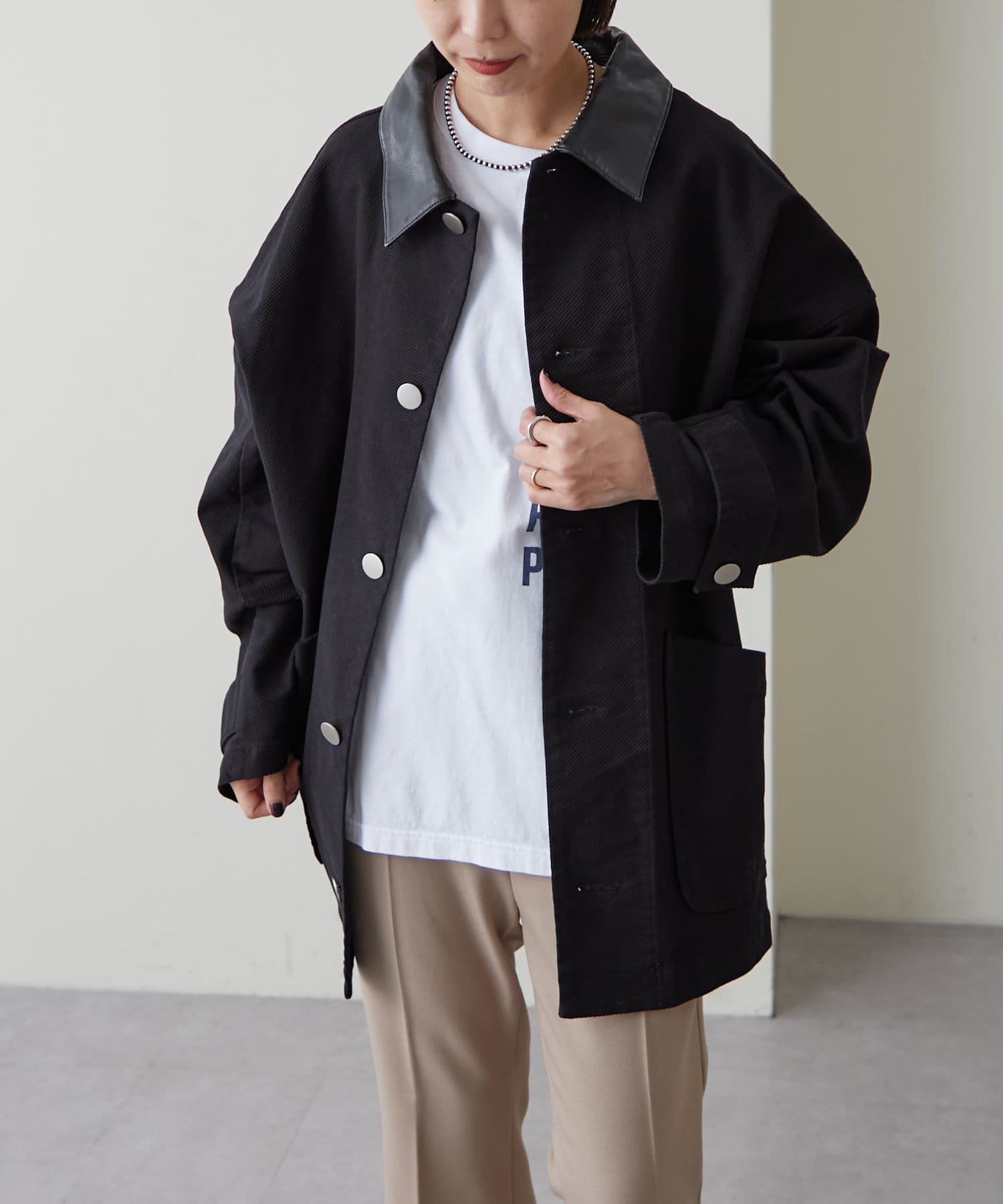 ・やや張りのある素材感とビッグシルエットが大人カジュアルな1枚。