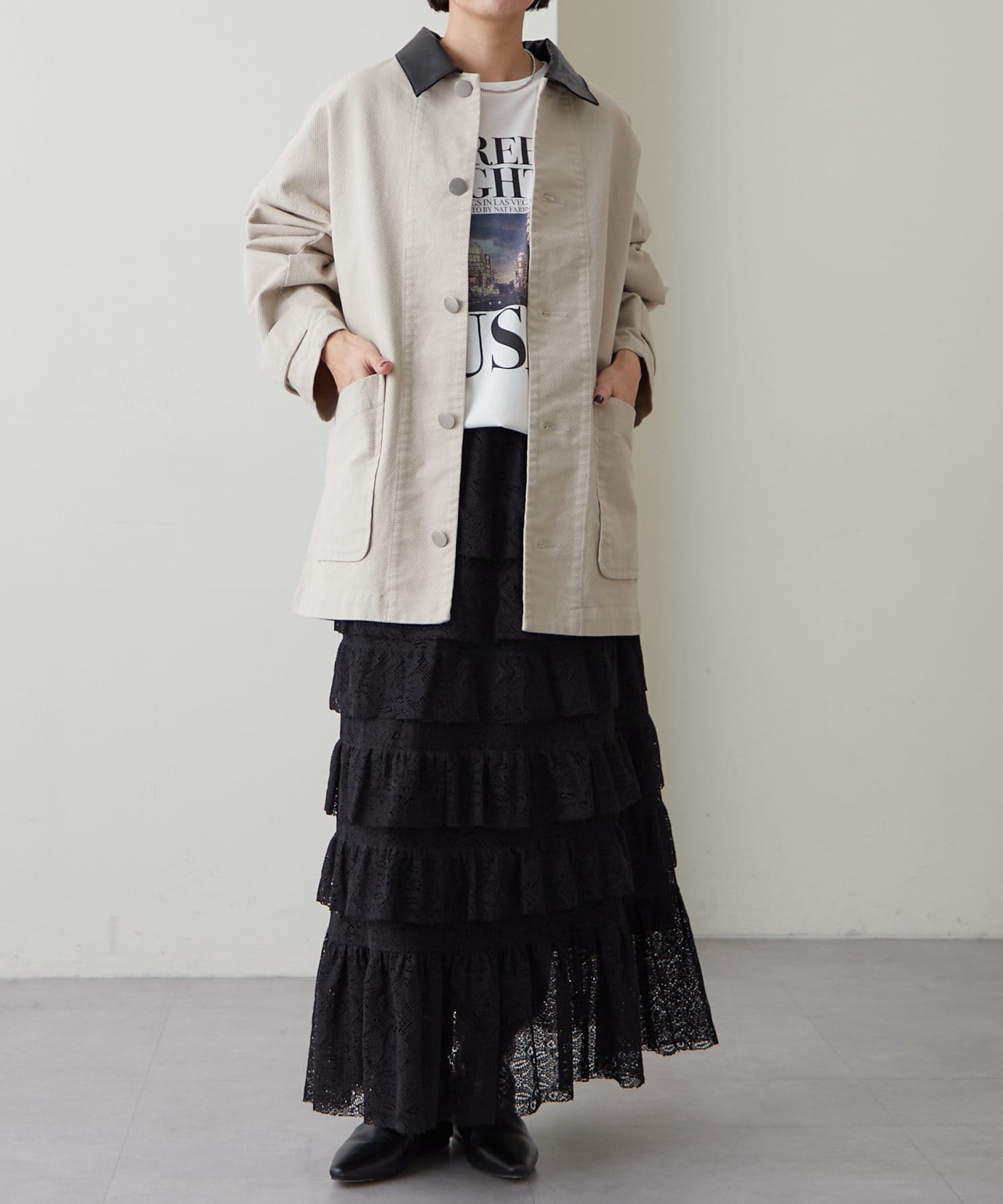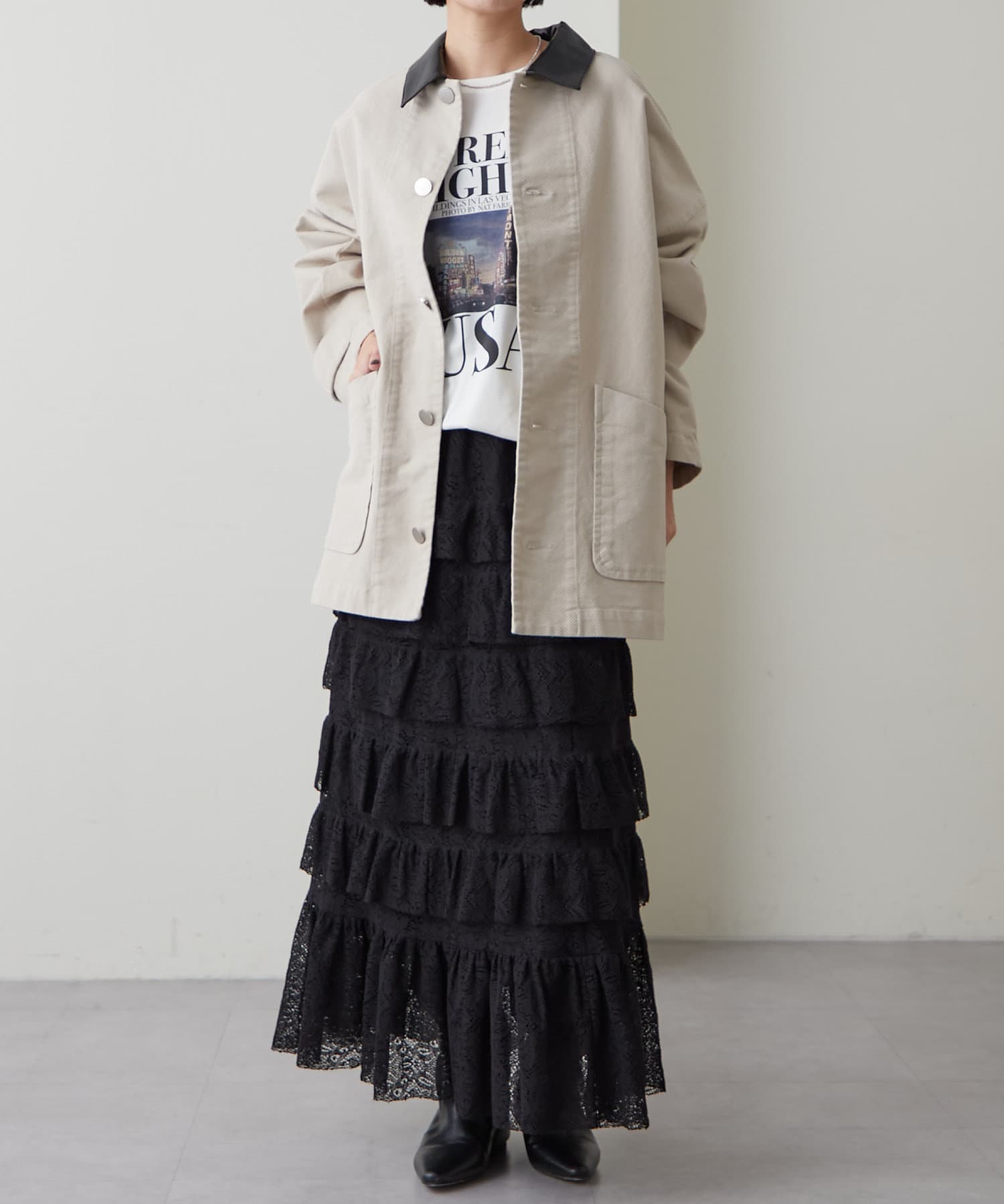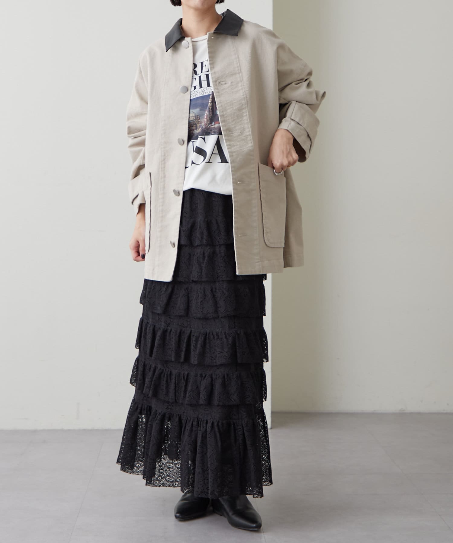・レーススカートなどの甘めなアイテムと合わせたスタイリングもおすすめ◎