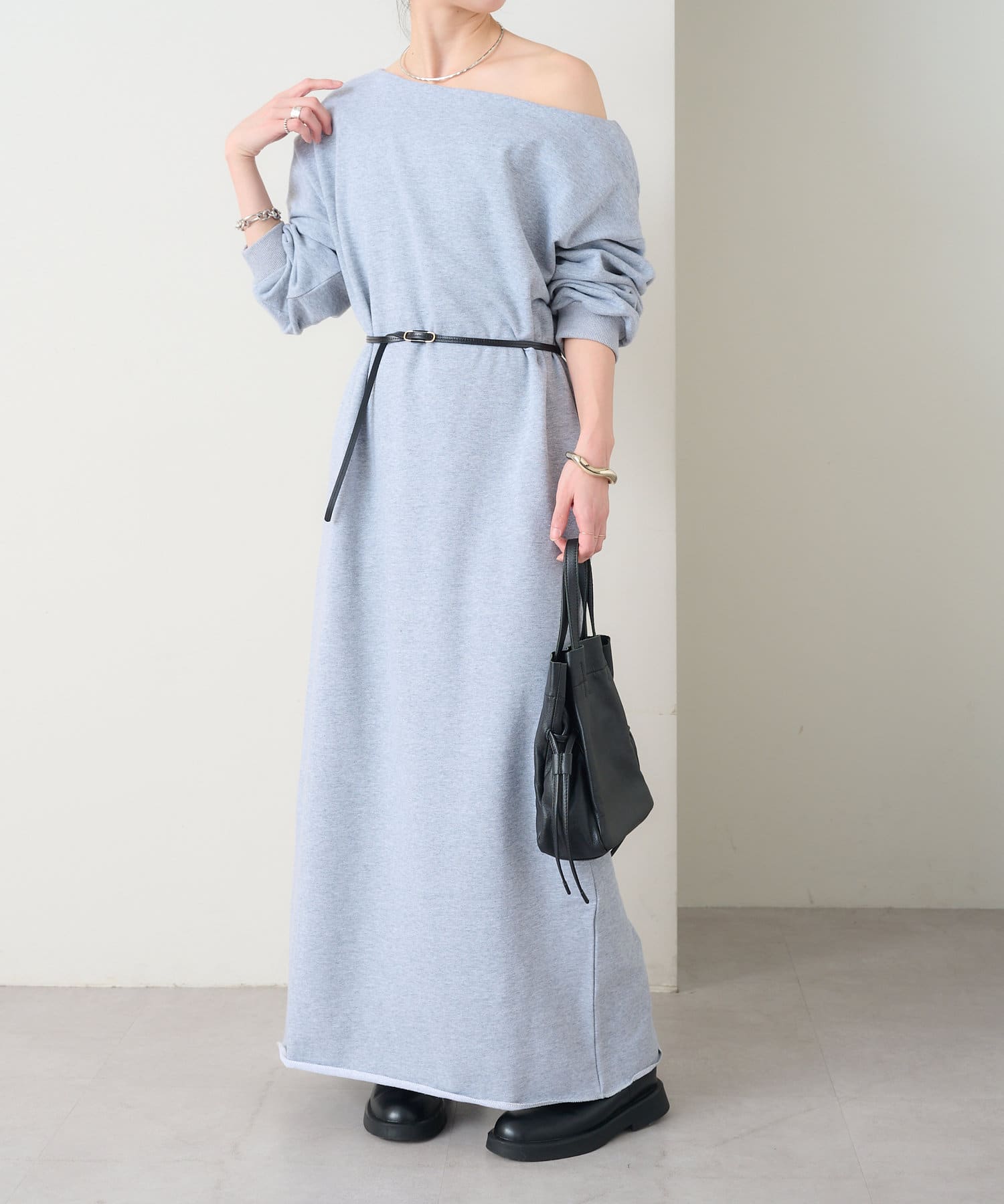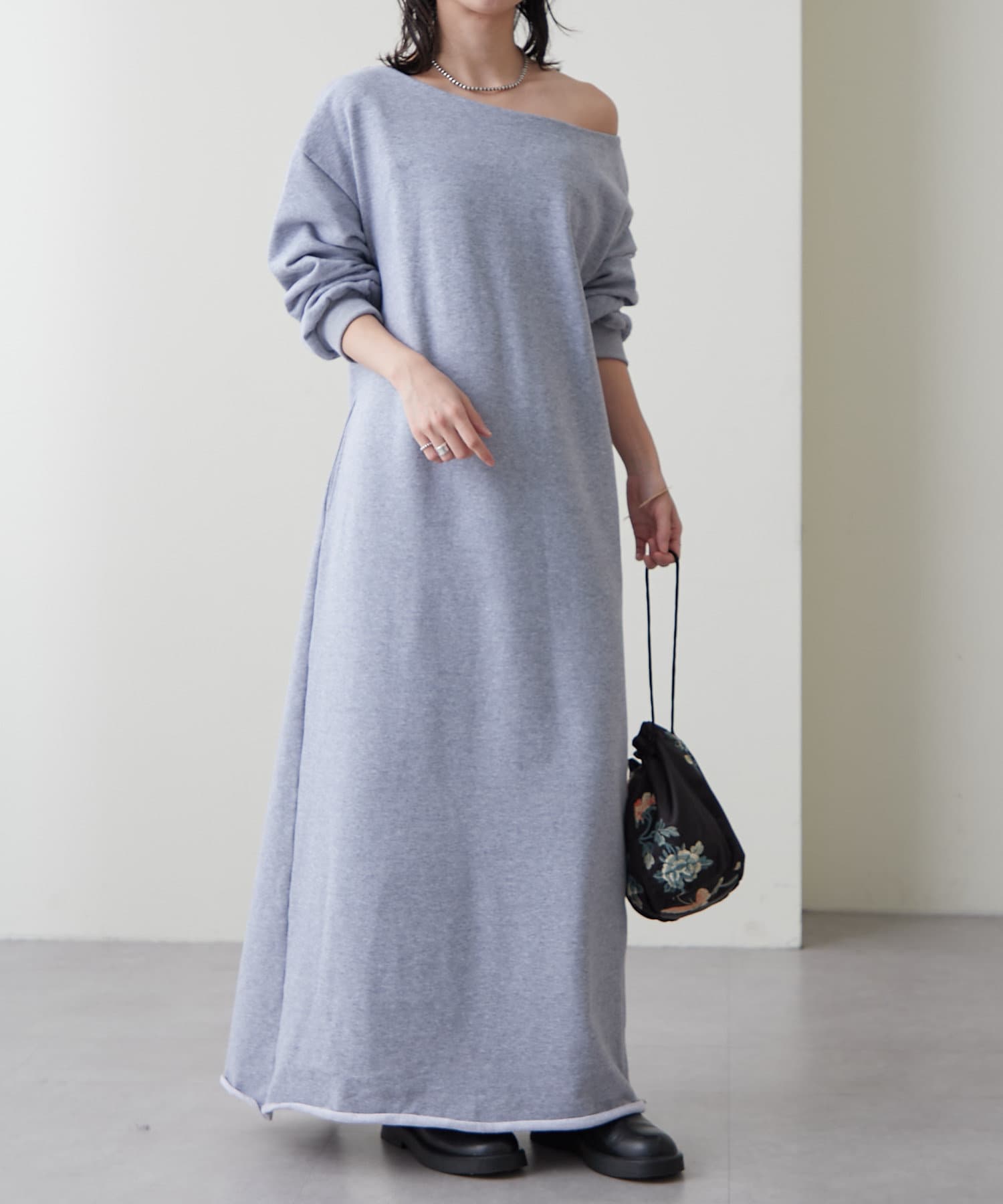 【人気デザインにワンピースが新登場!】オフショルスウェットワンピース