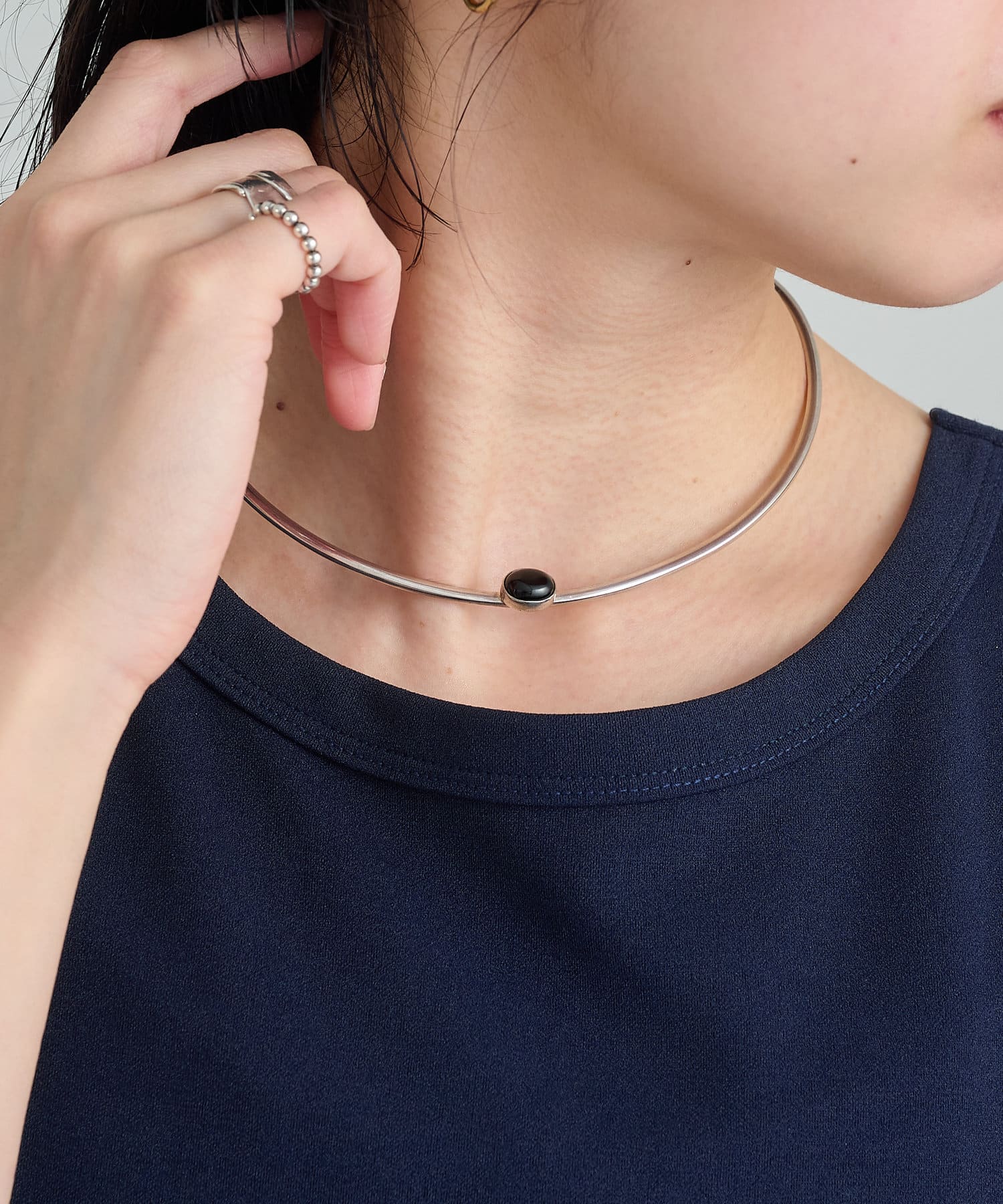 スタイルに凛とした表情を与えてくれるHALFMOONチョーカー。