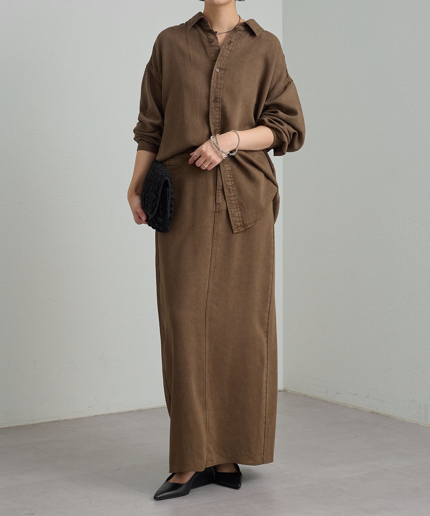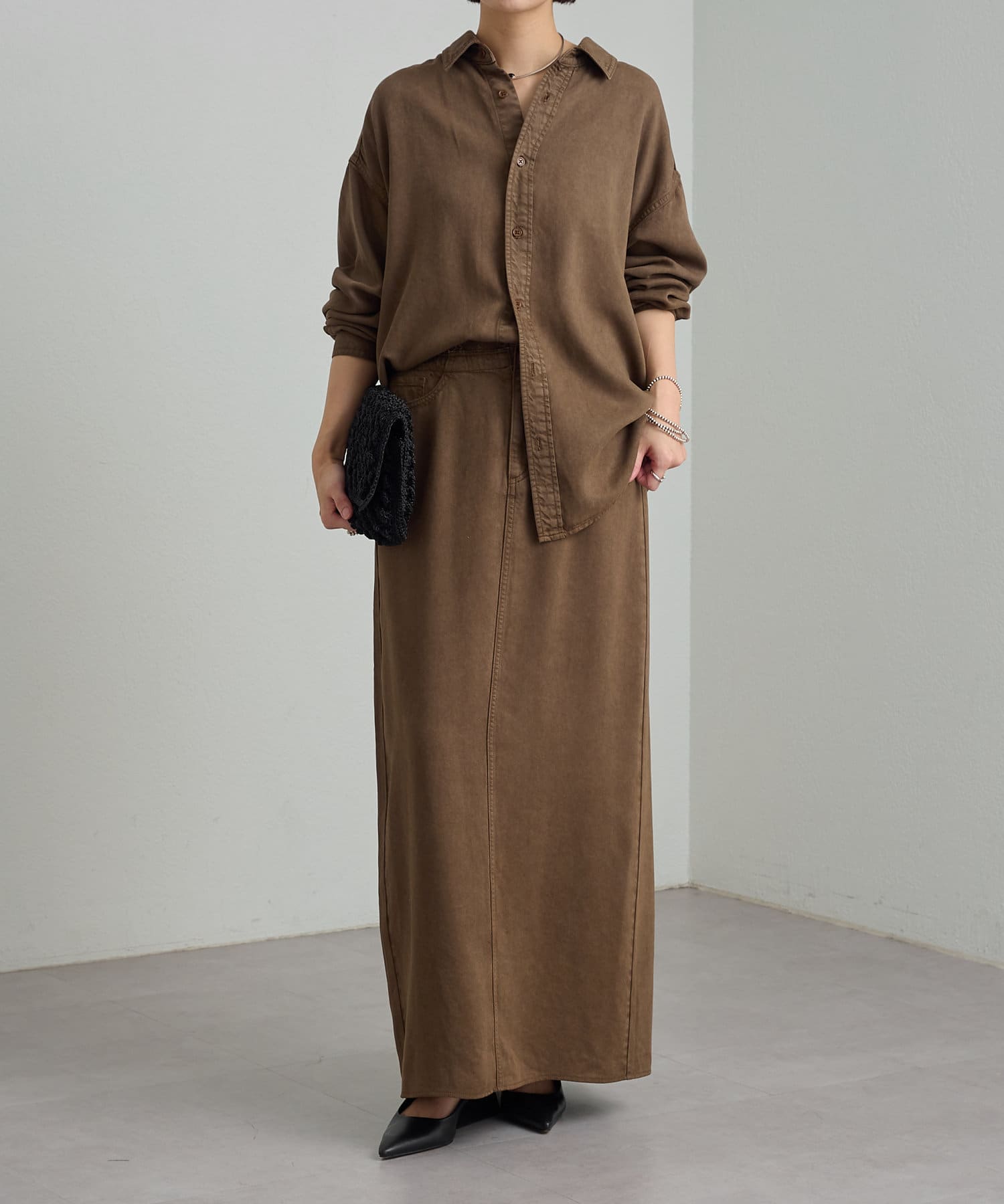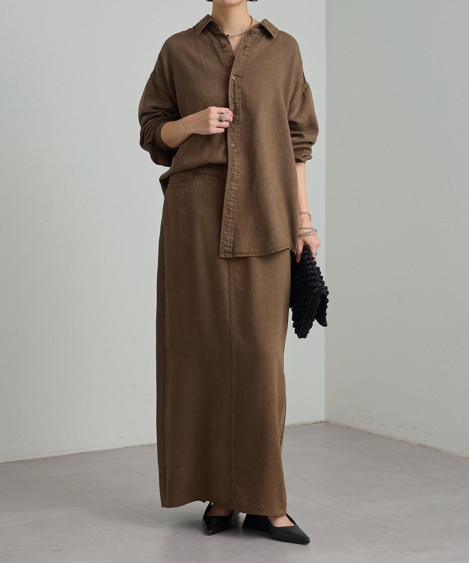 ・同素材のソフトオーバーシャツとセットアップでの着用もおすすめです。