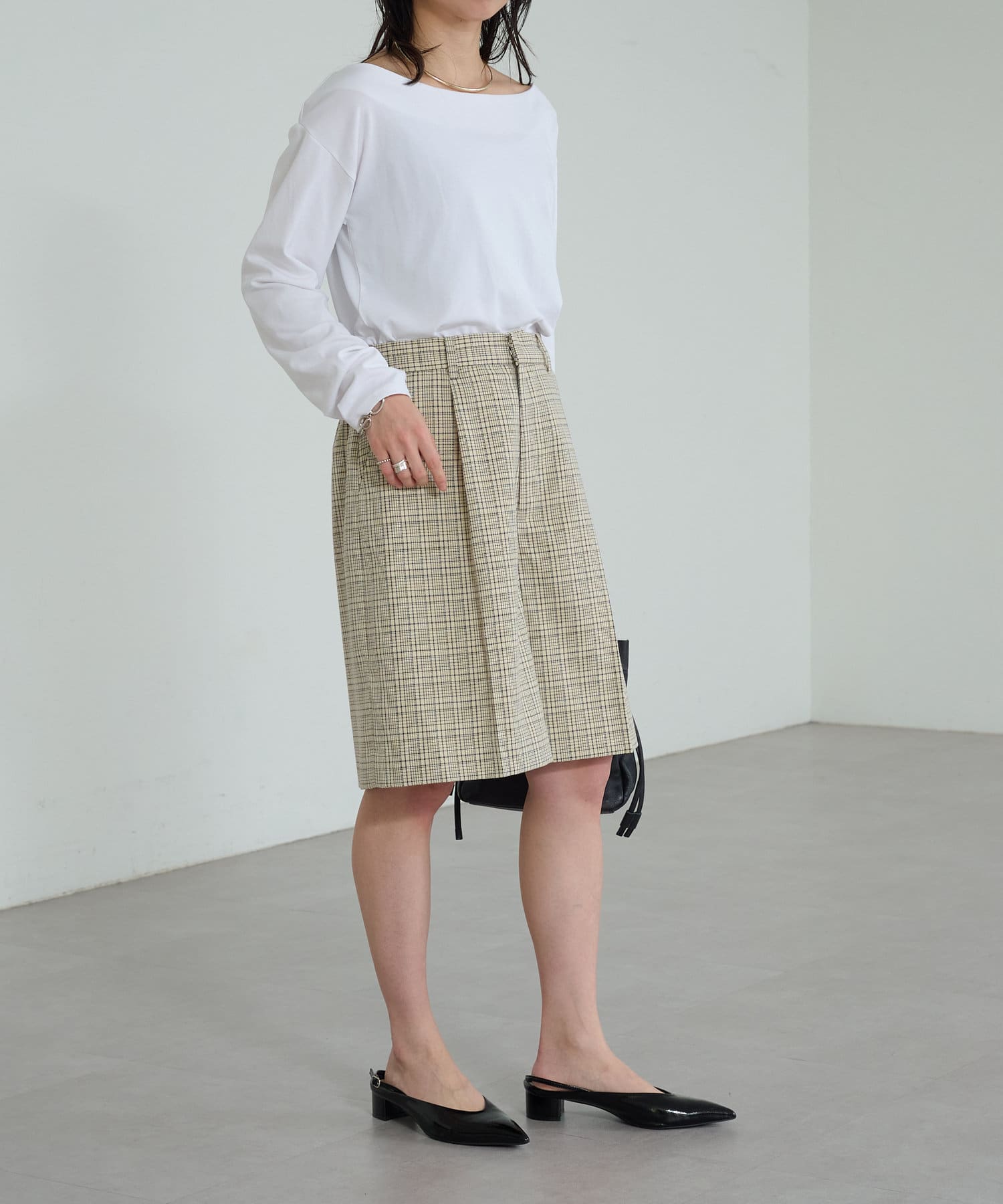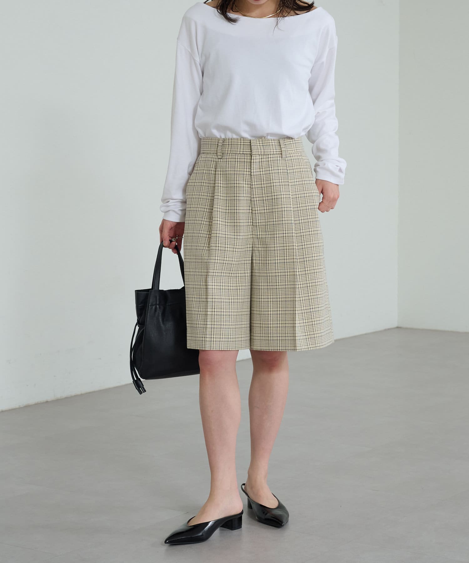 ・アイボリー(チェック柄)、ブラック(無地)のアソート展開です。