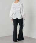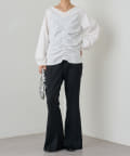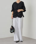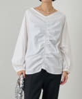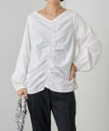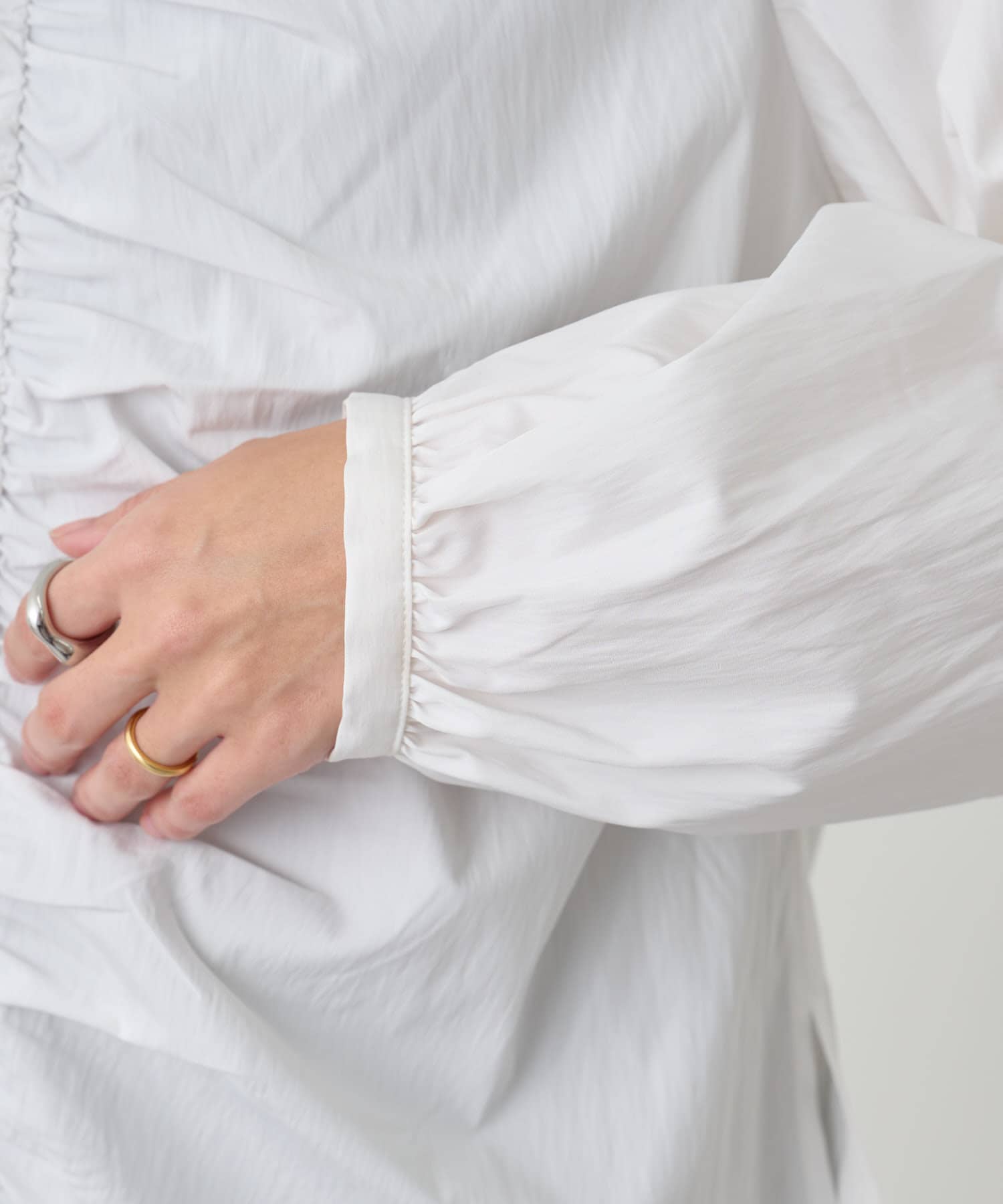 ・シンプルに一枚着で楽しむのはもちろん、ジャケットのインナーに合わせてギャザーを見せるレイヤードスタイルもおすすめ。
