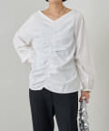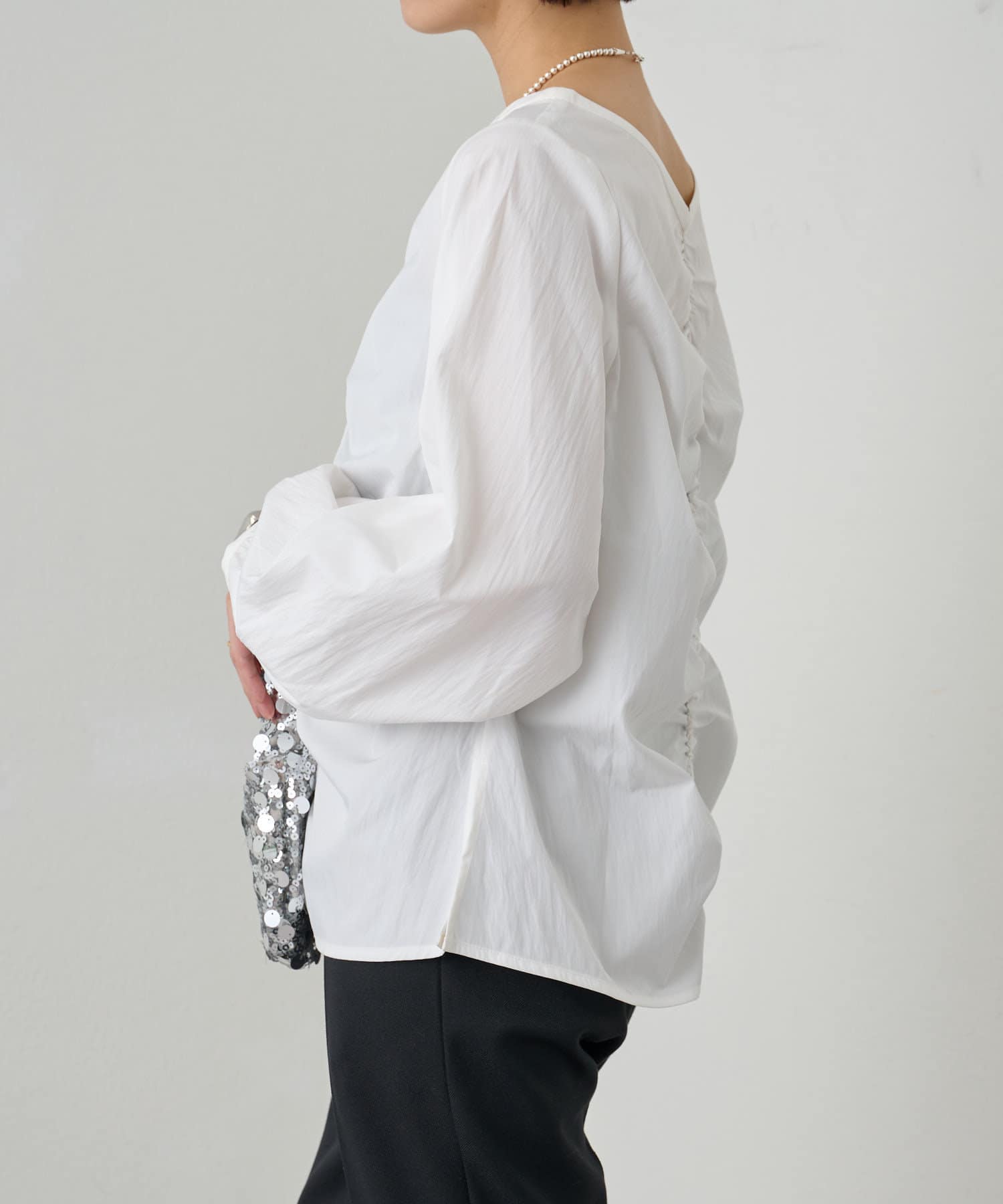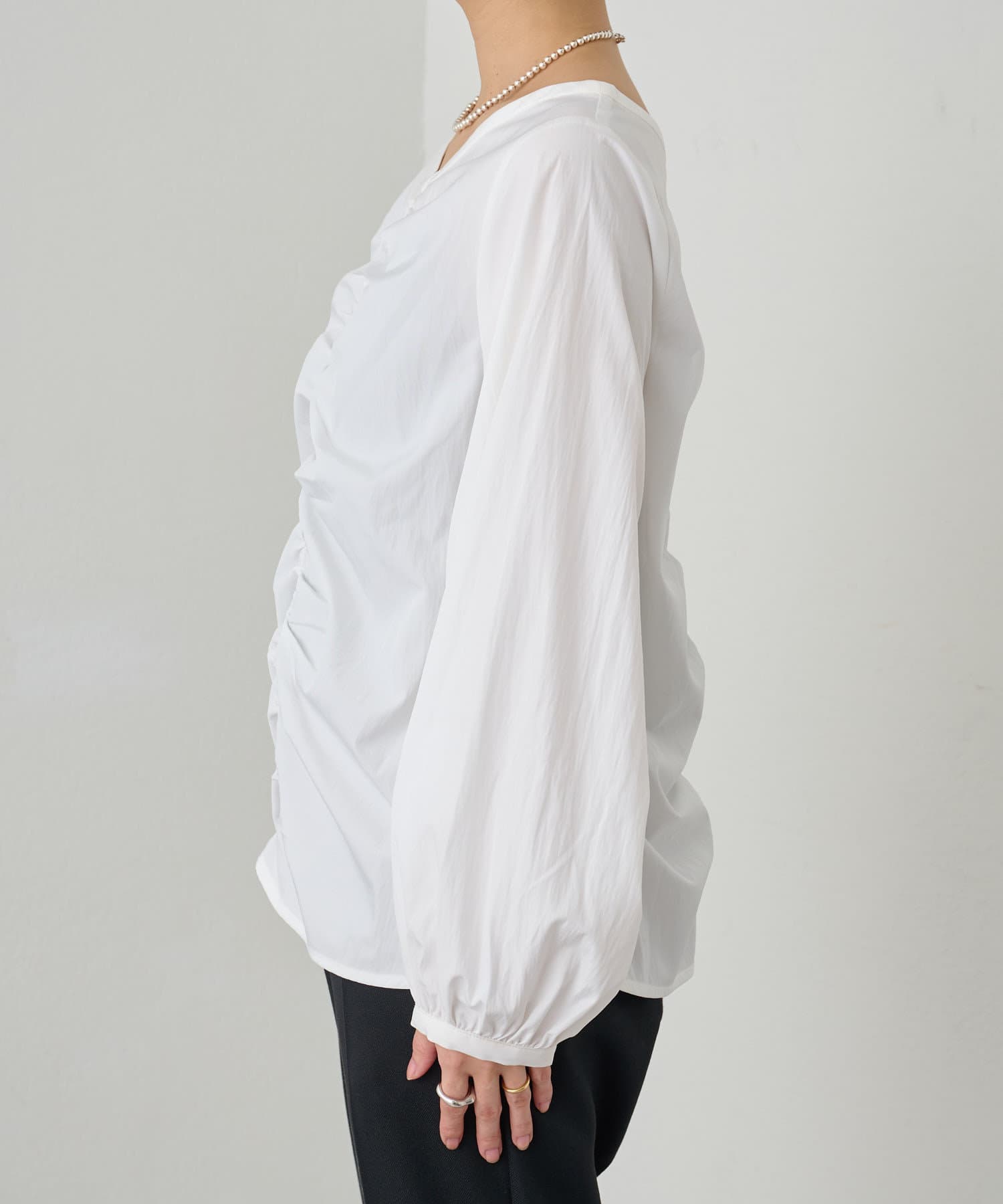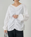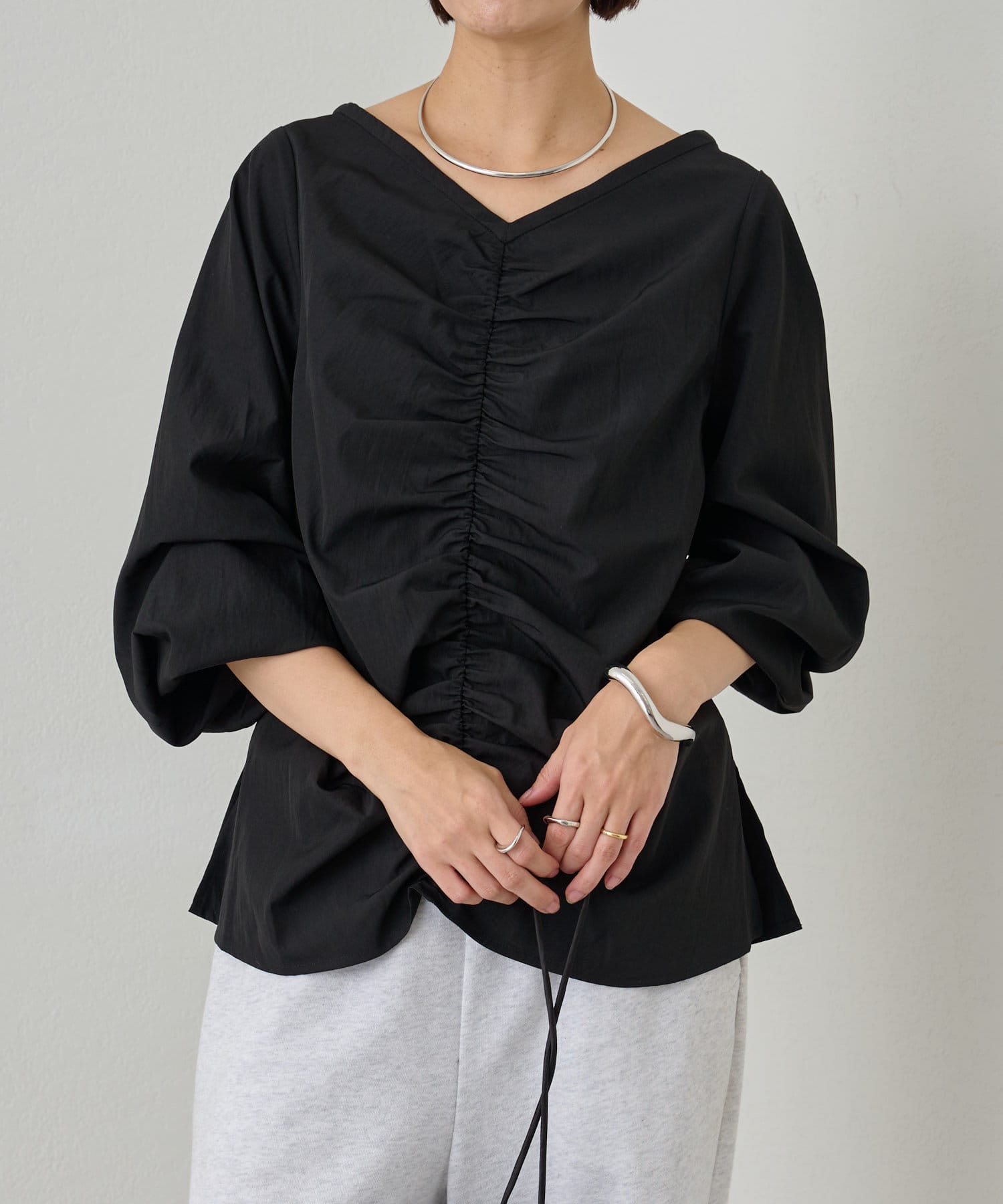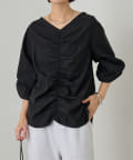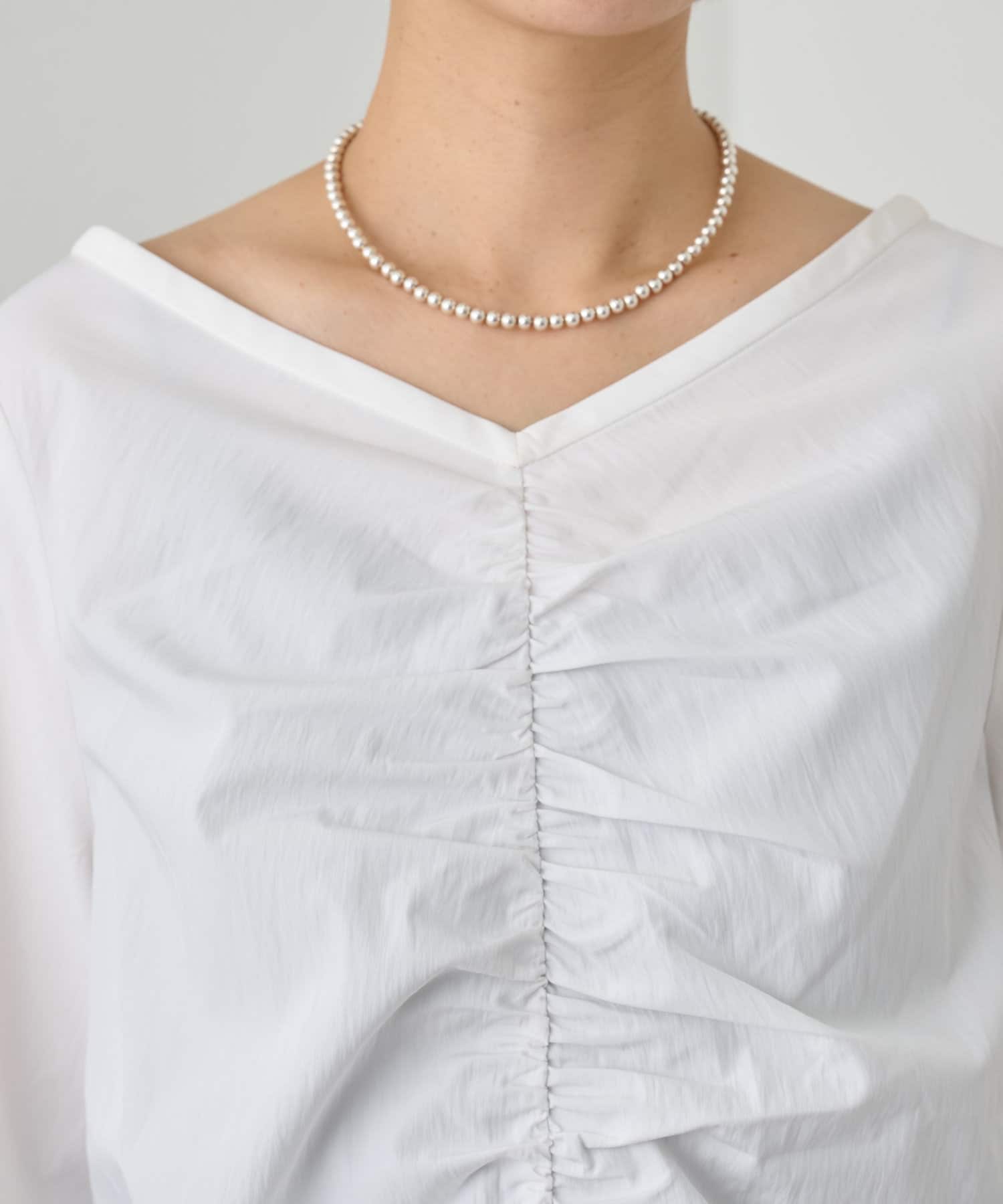 【セレモニースタイルにも活躍◎】Vギャザーブラウス