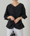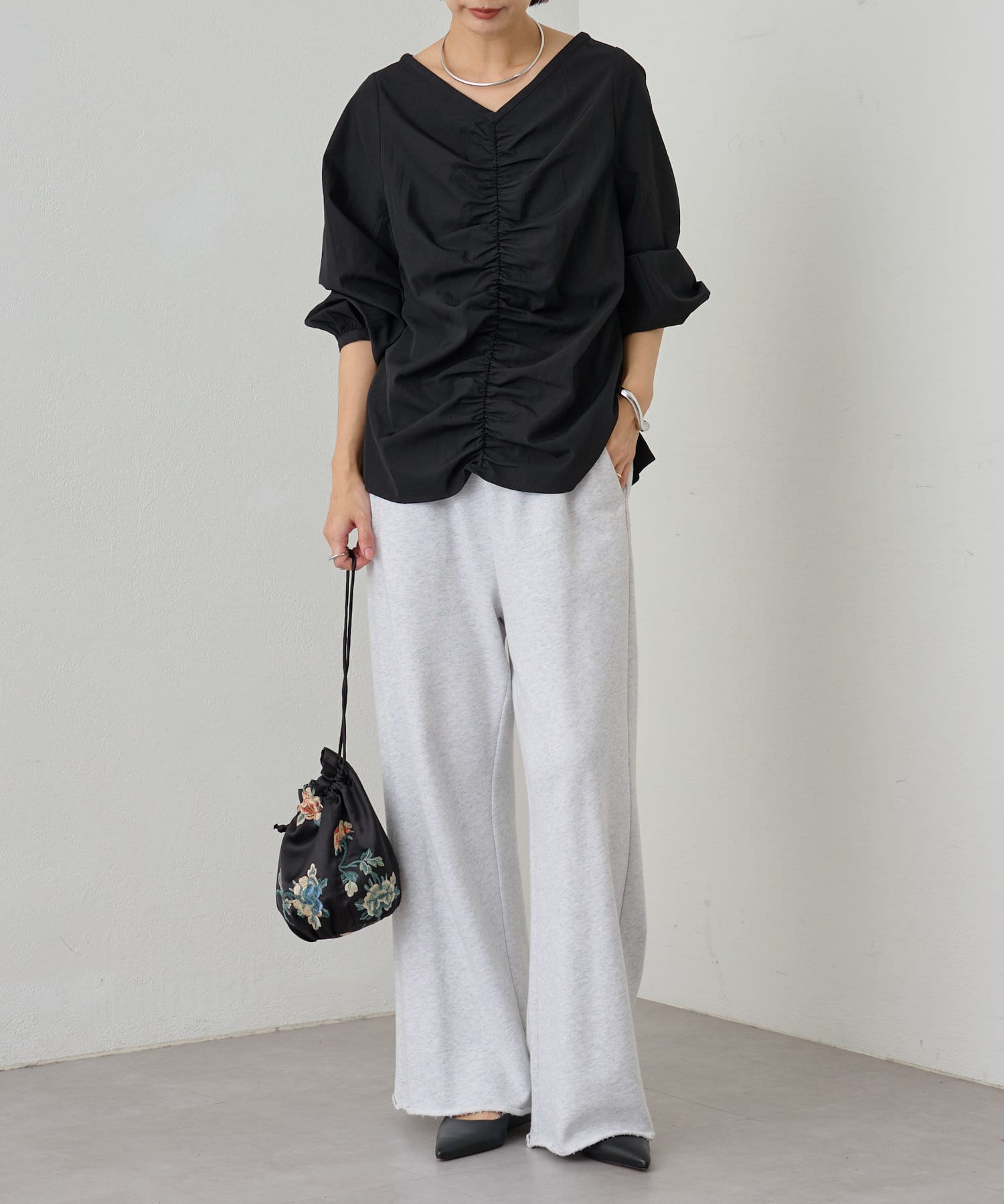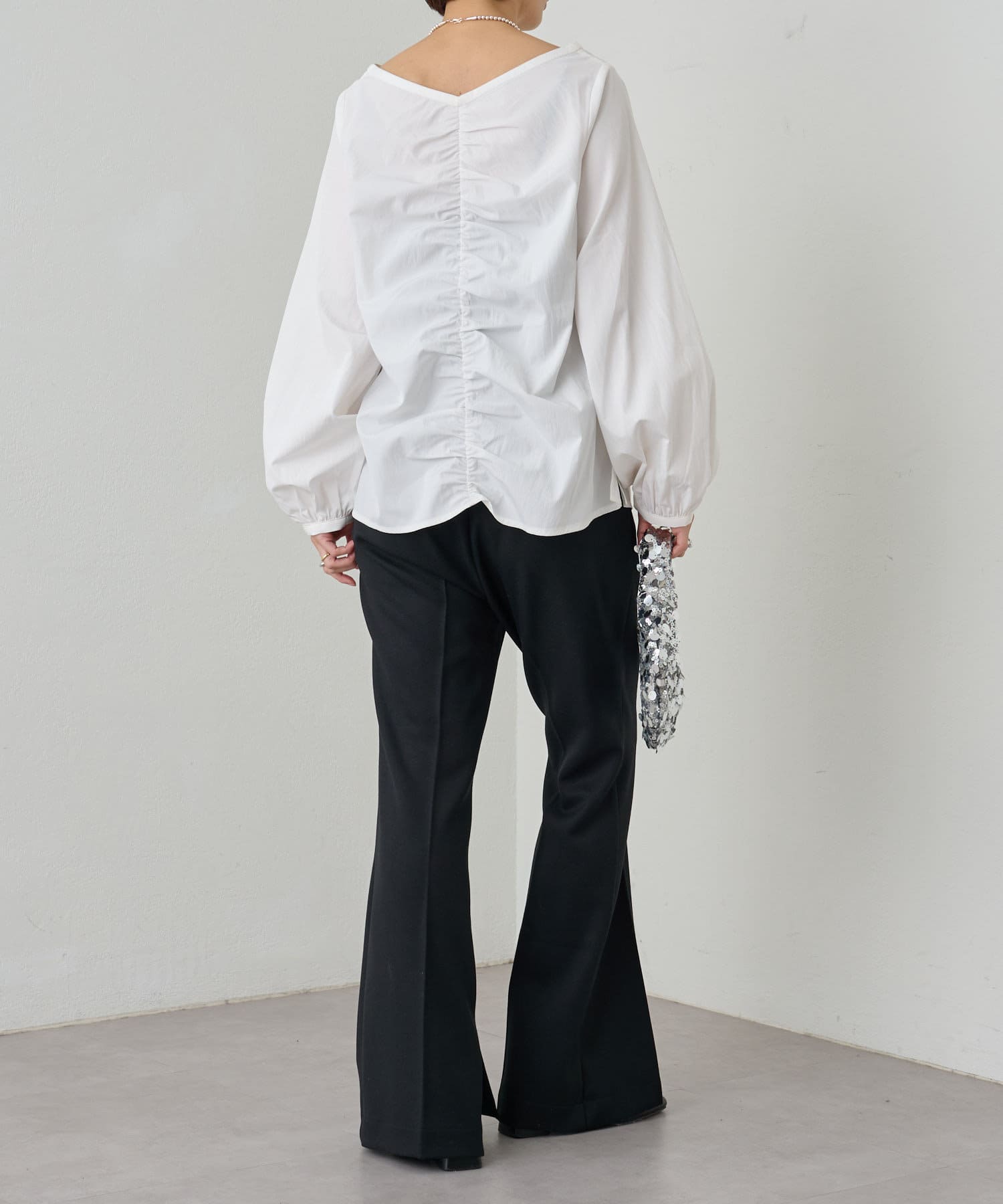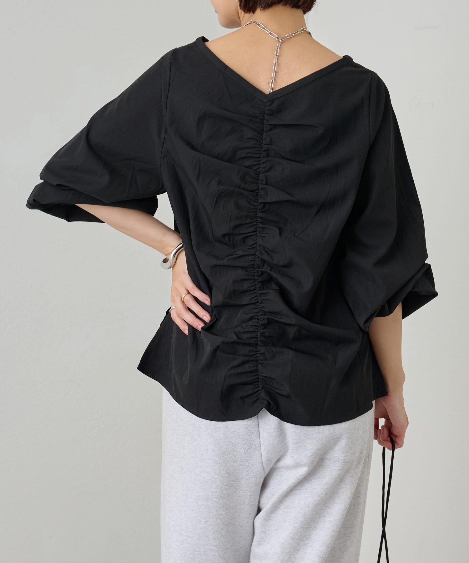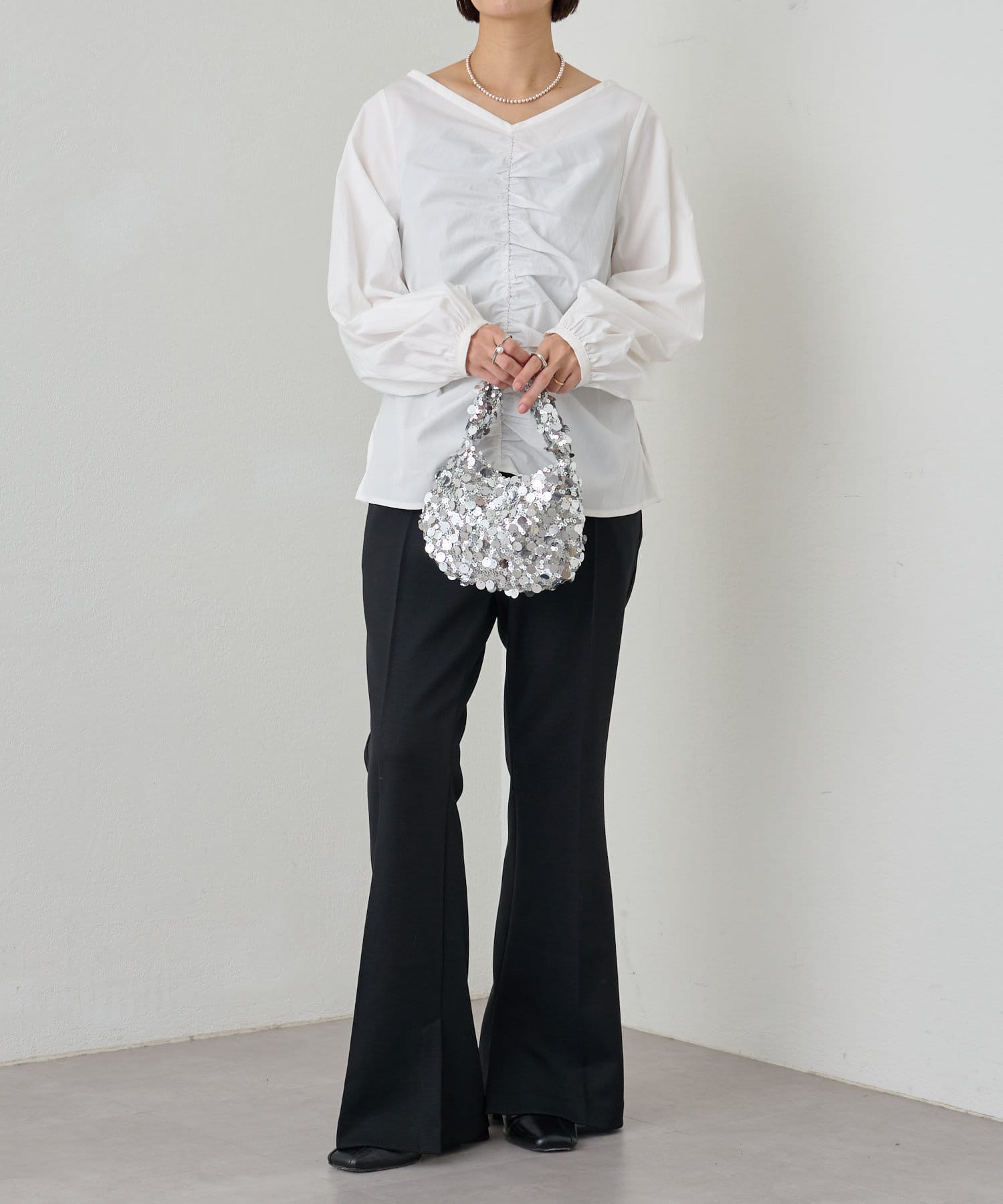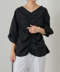 【セレモニースタイルにも活躍◎】Vギャザーブラウス