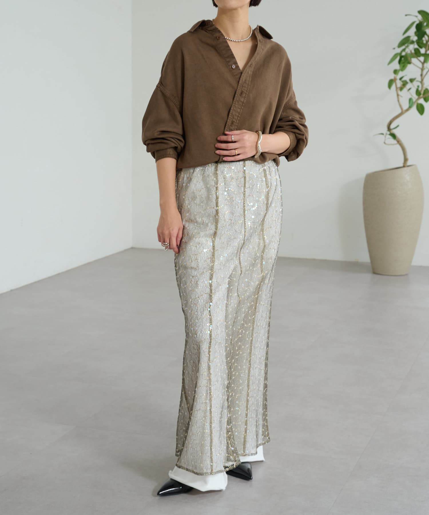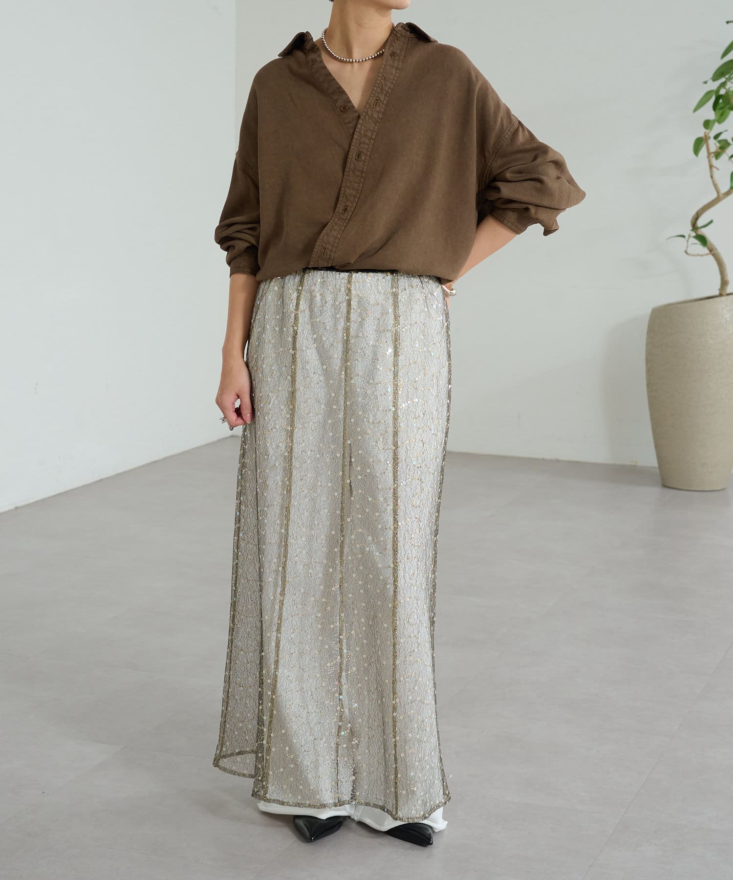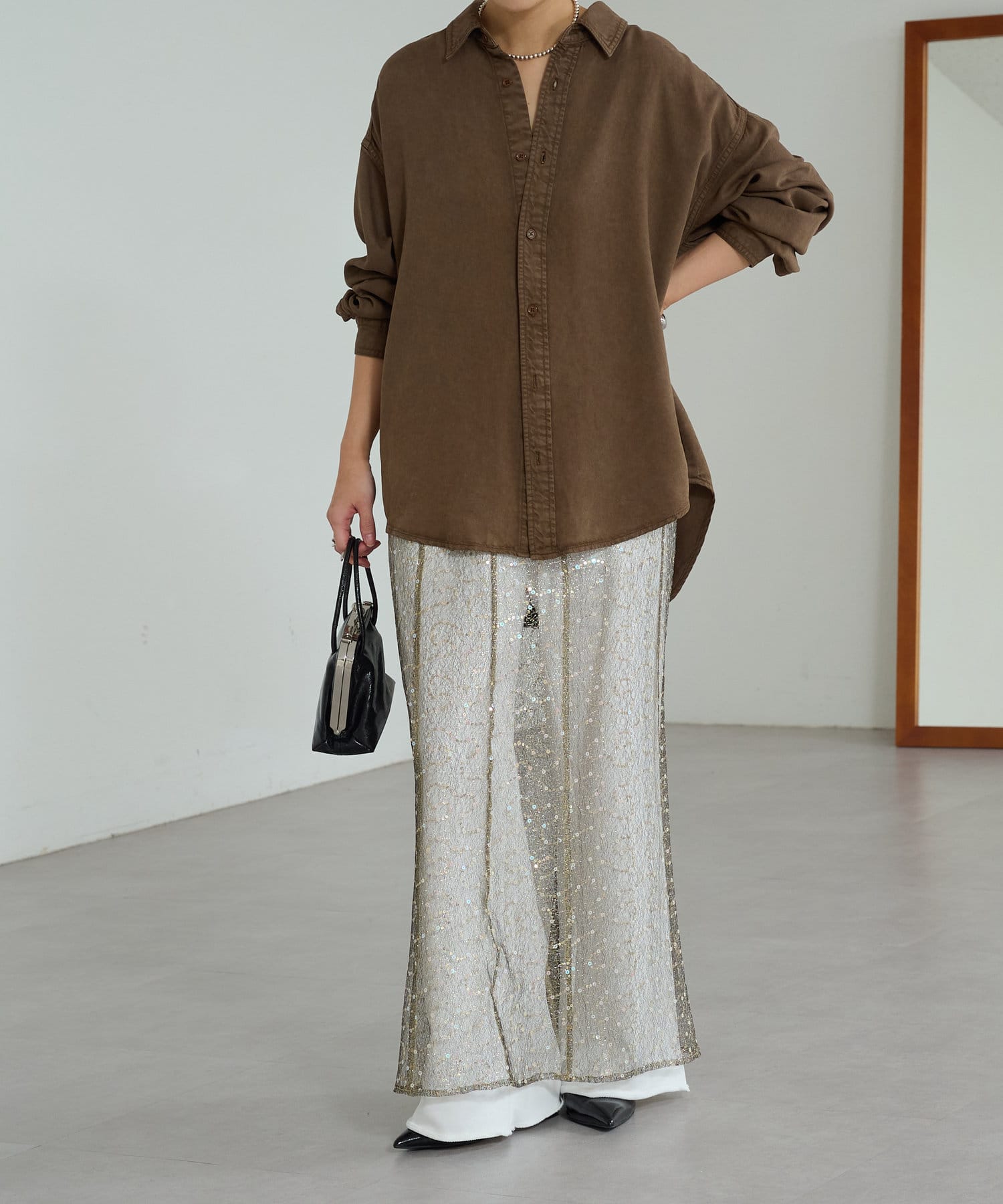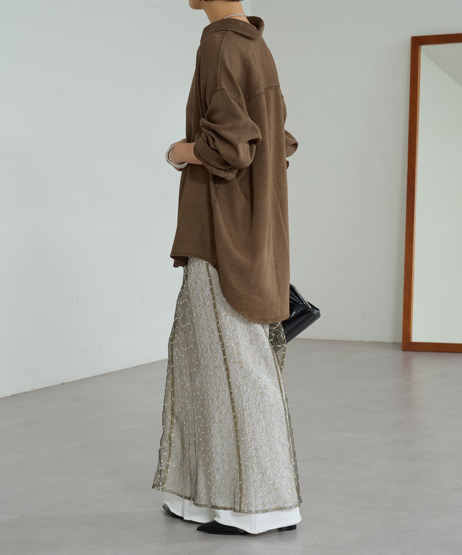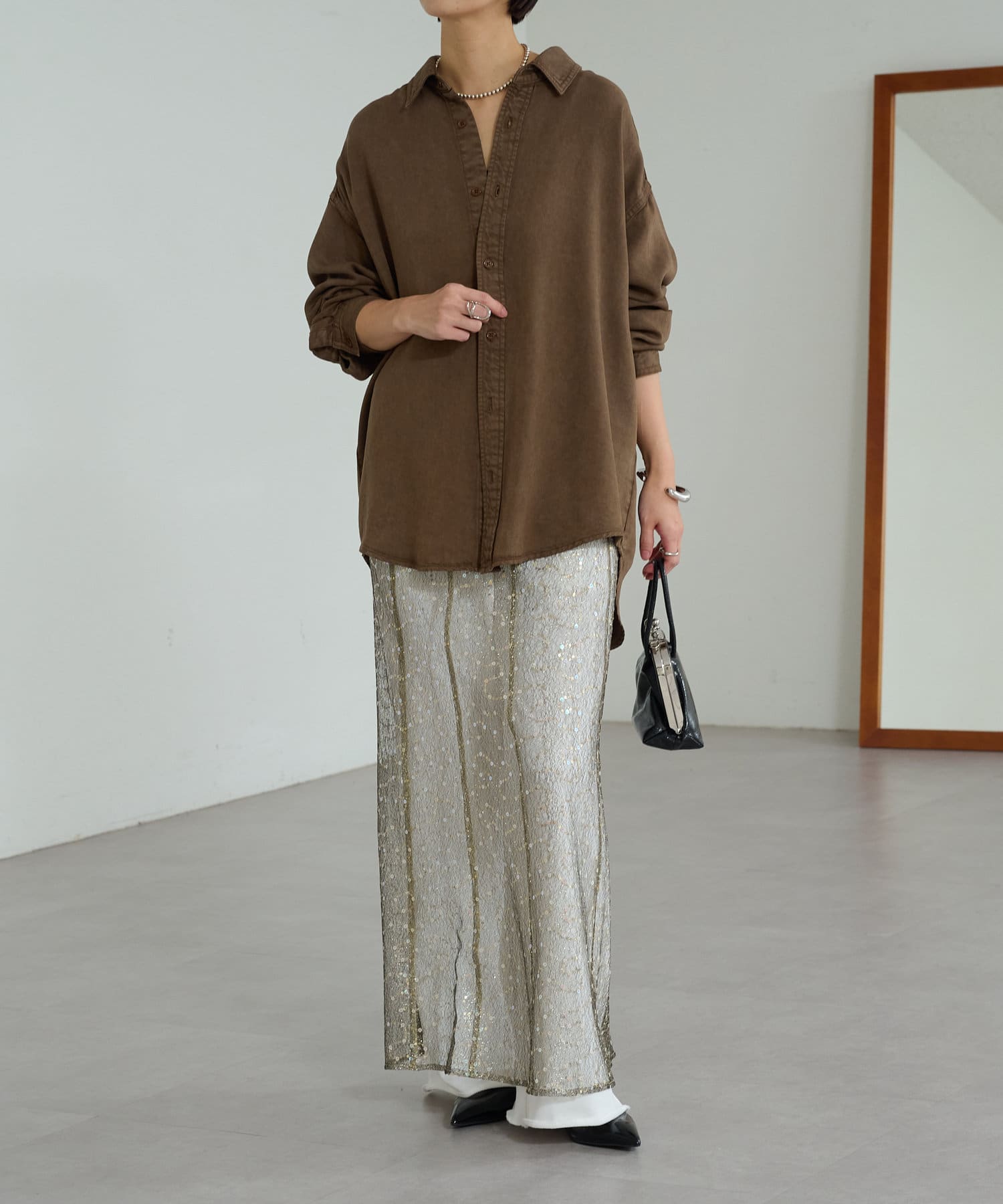 ・ヒップが隠れる長めの着丈で体型カバーの叶うオーバーシャツ。