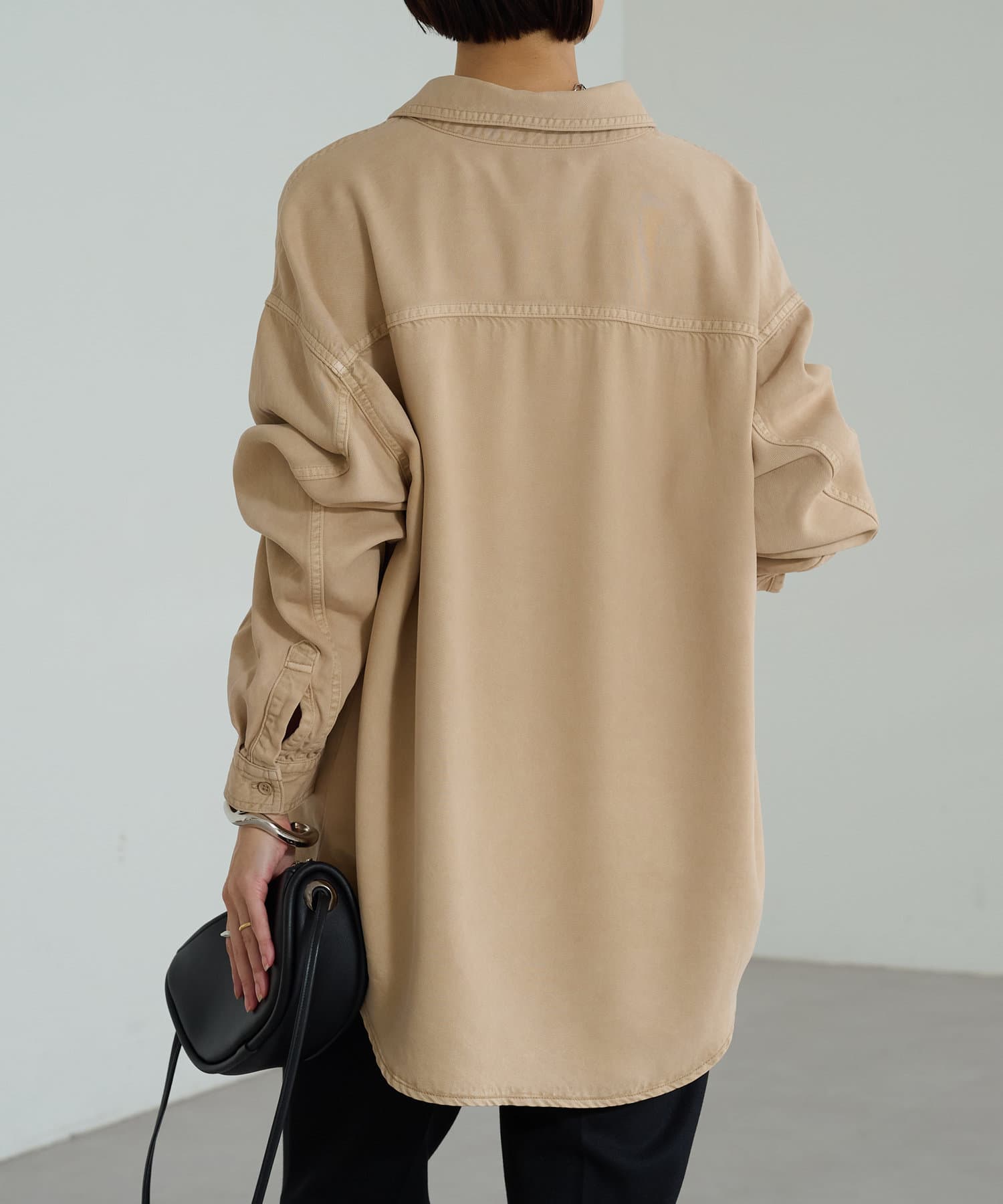 ・ヒップが隠れる長めの着丈で体型カバーの叶うオーバーシャツ。