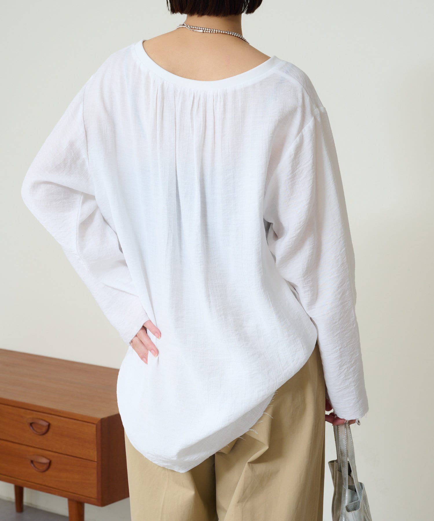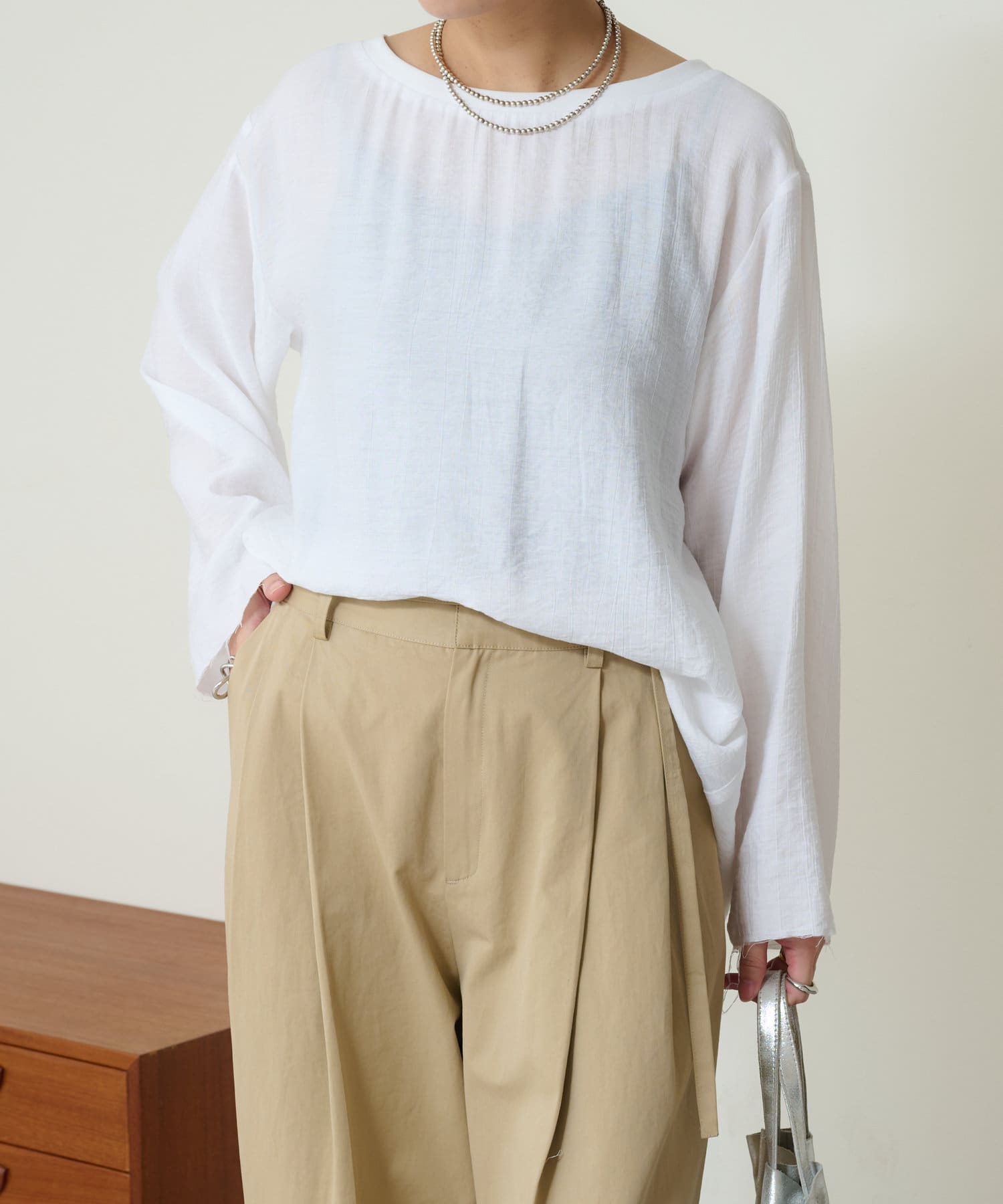 ・カットソー感覚で着られる軽い着心地ながら、ツヤがあることでラフに見え過ぎないのが魅力。