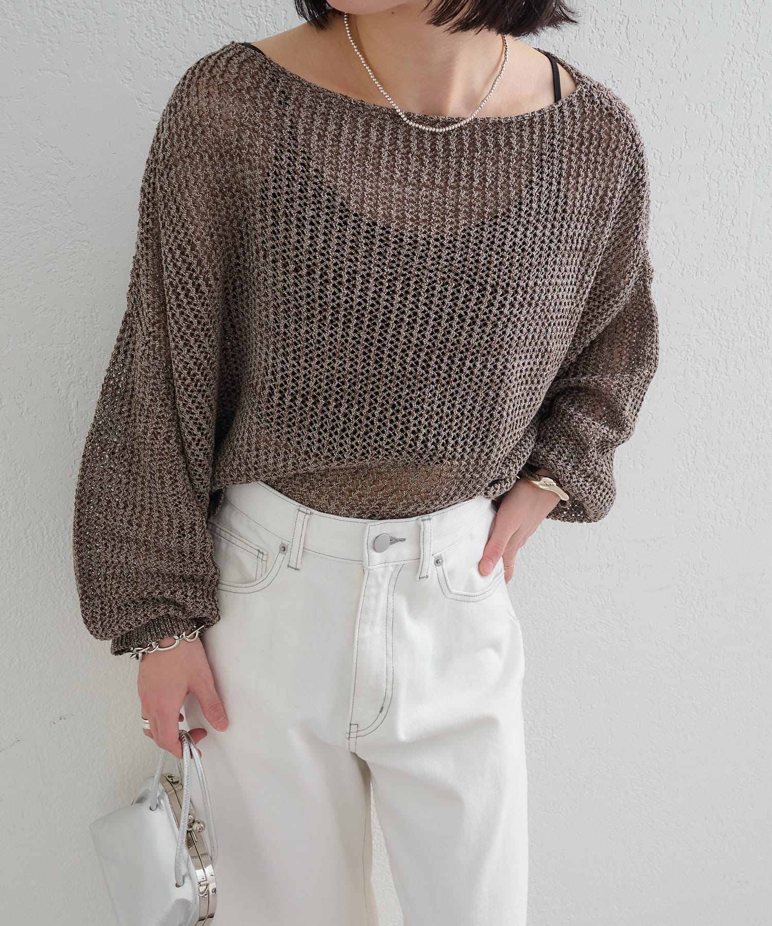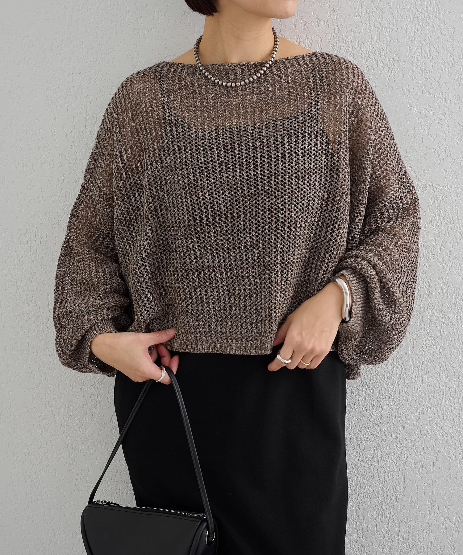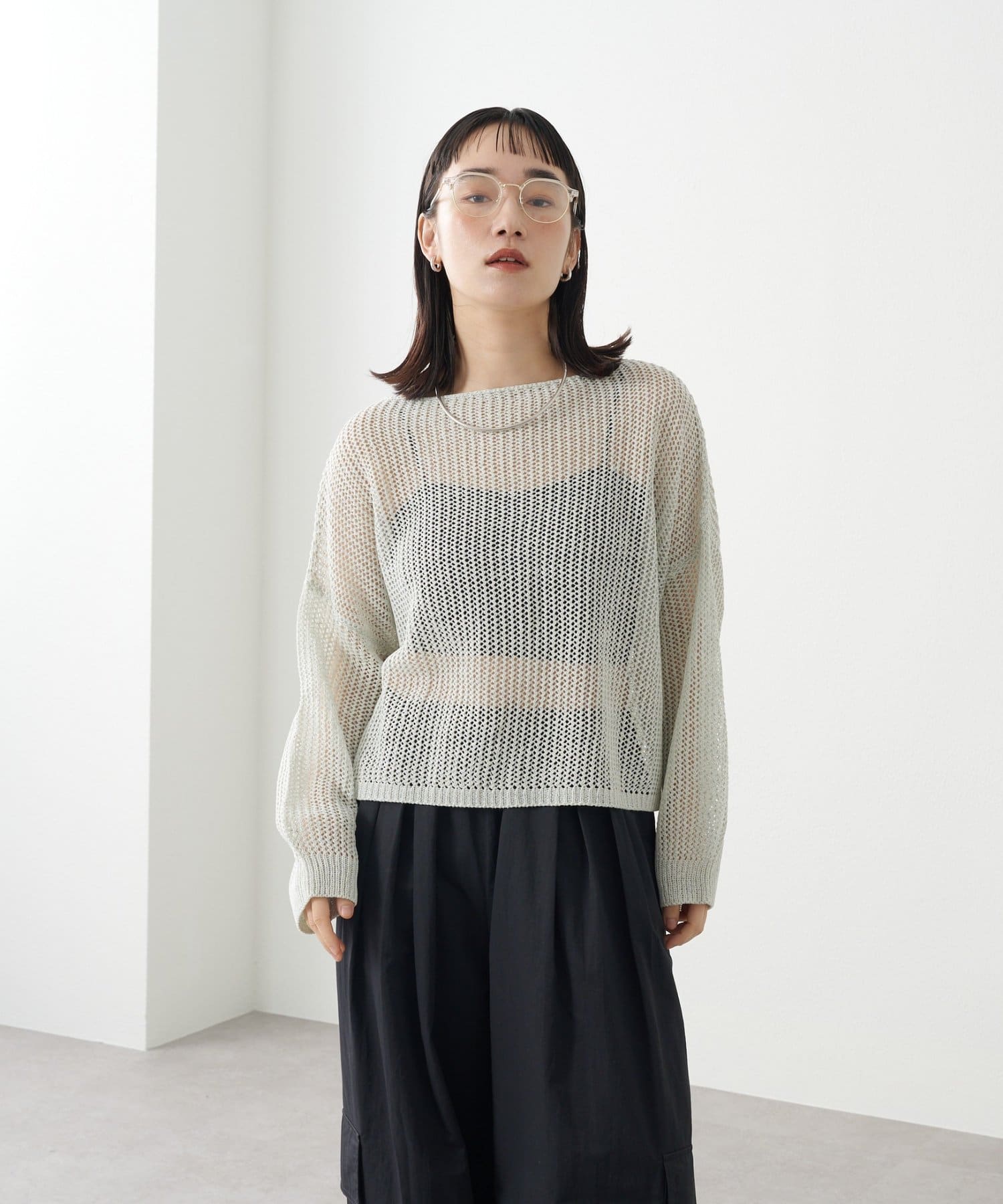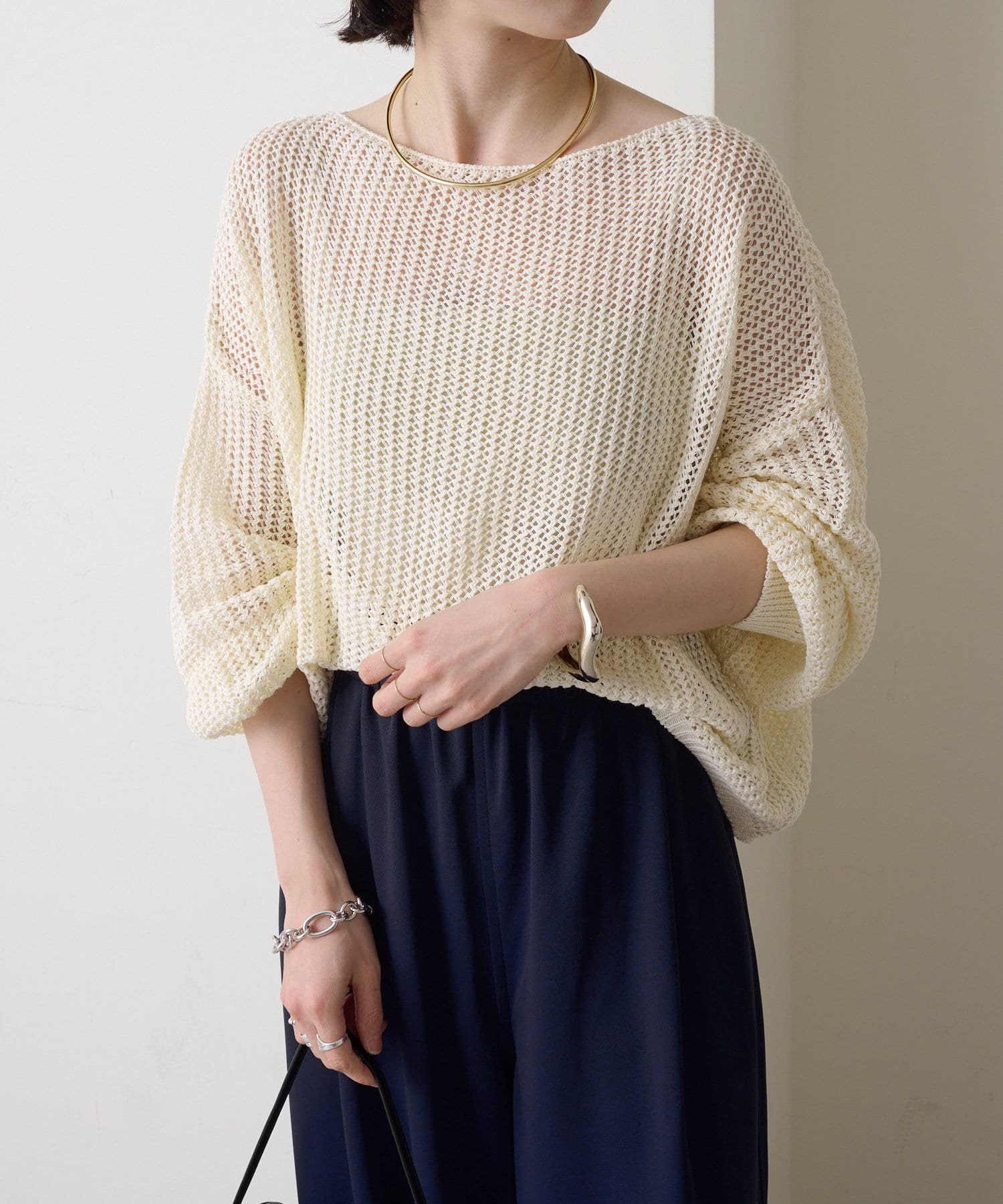 ・程よいシアー感で女性らしい雰囲気のニットプルオーバー。