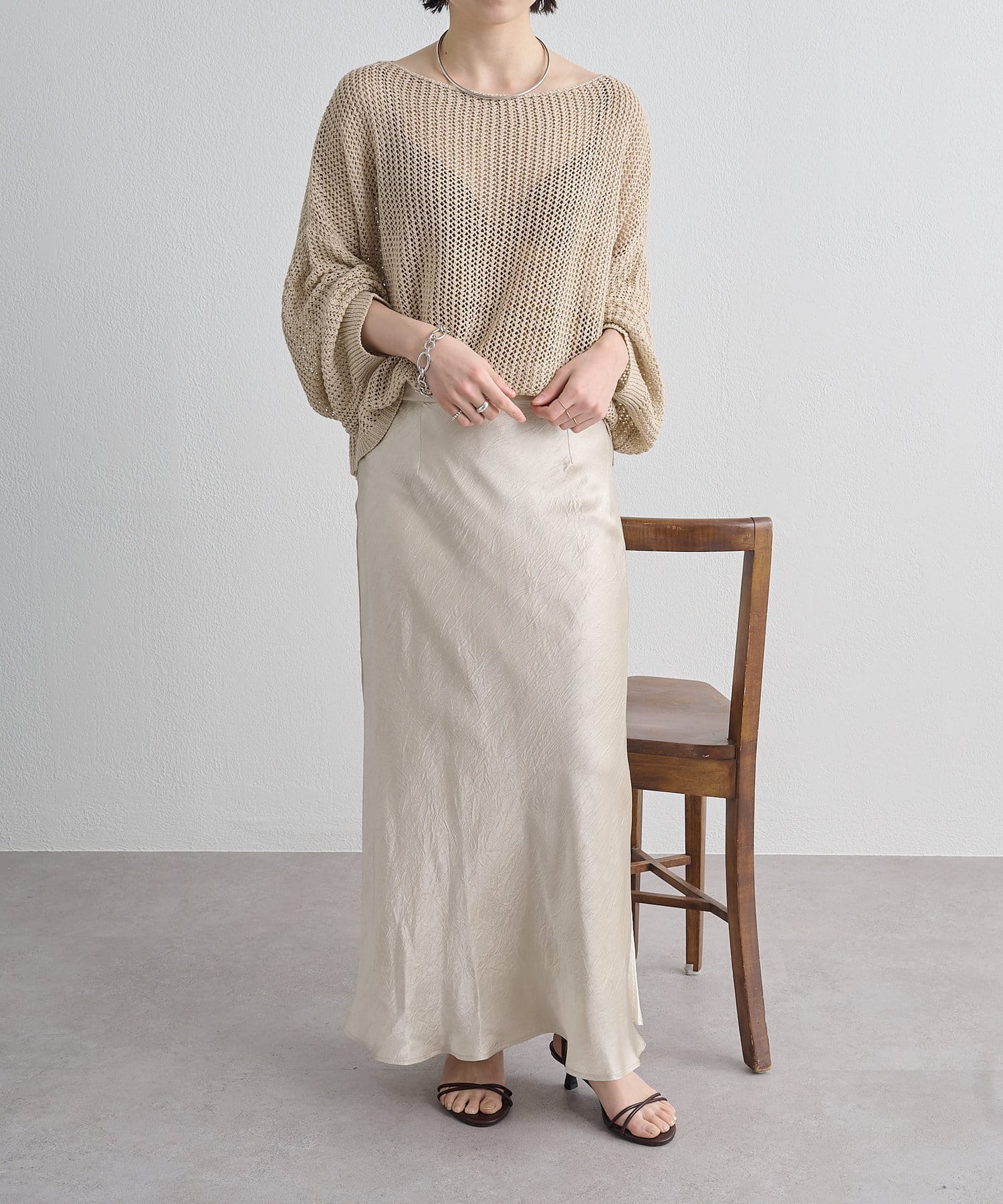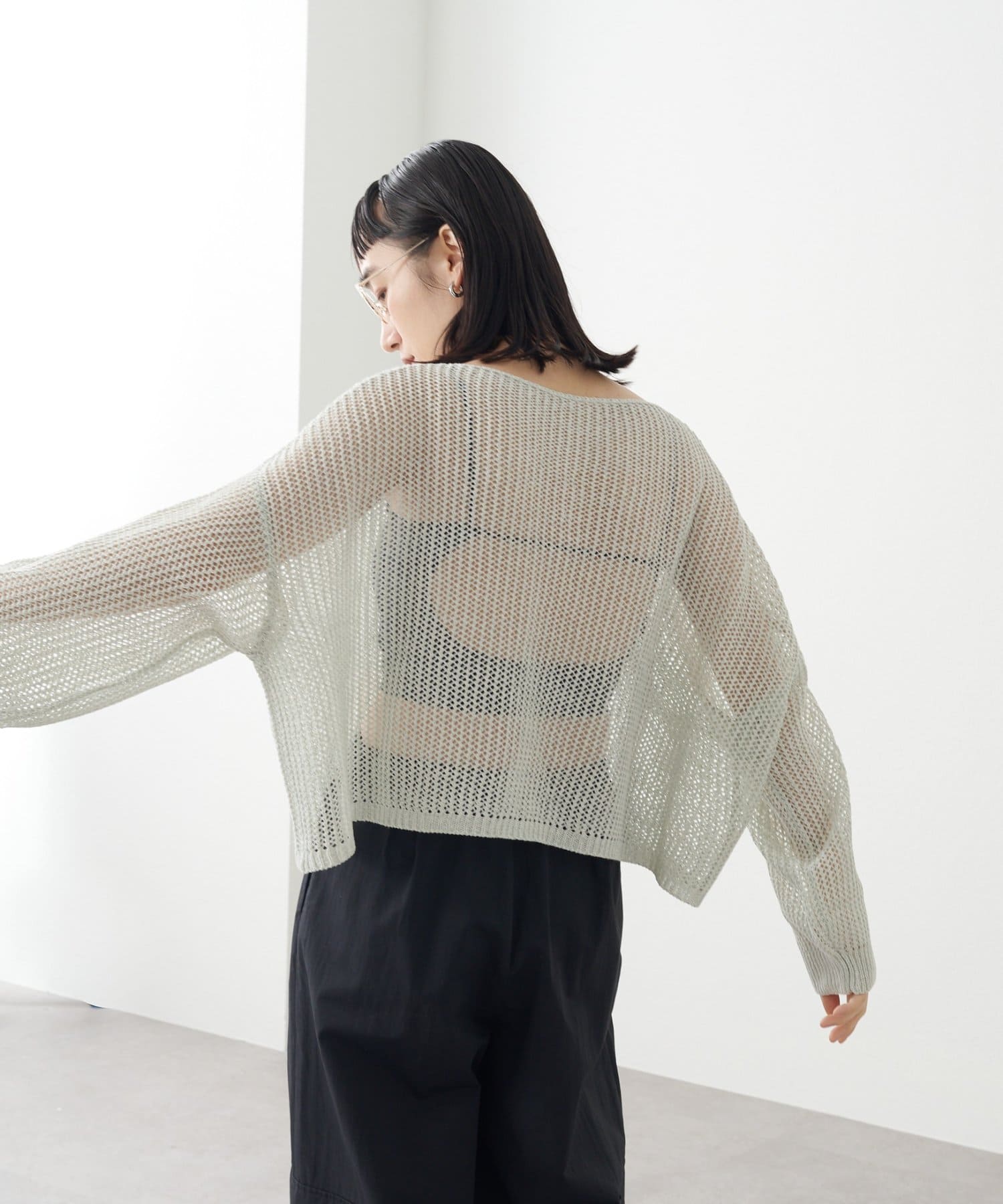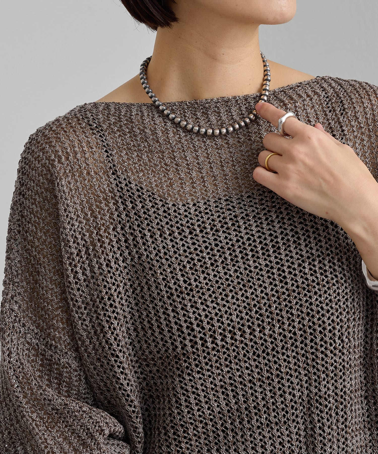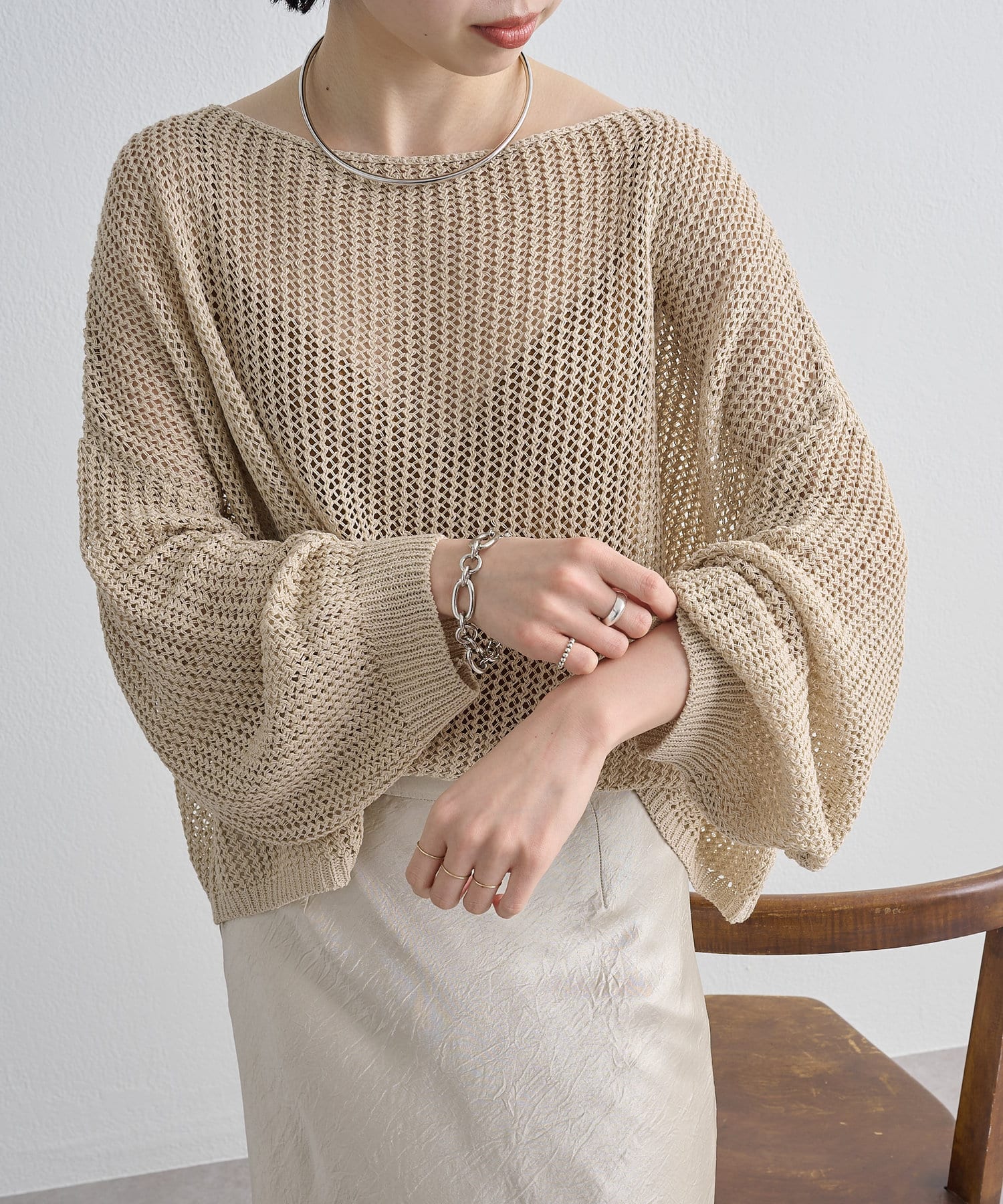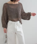・程よいシアー感で女性らしい雰囲気のニットプルオーバー。