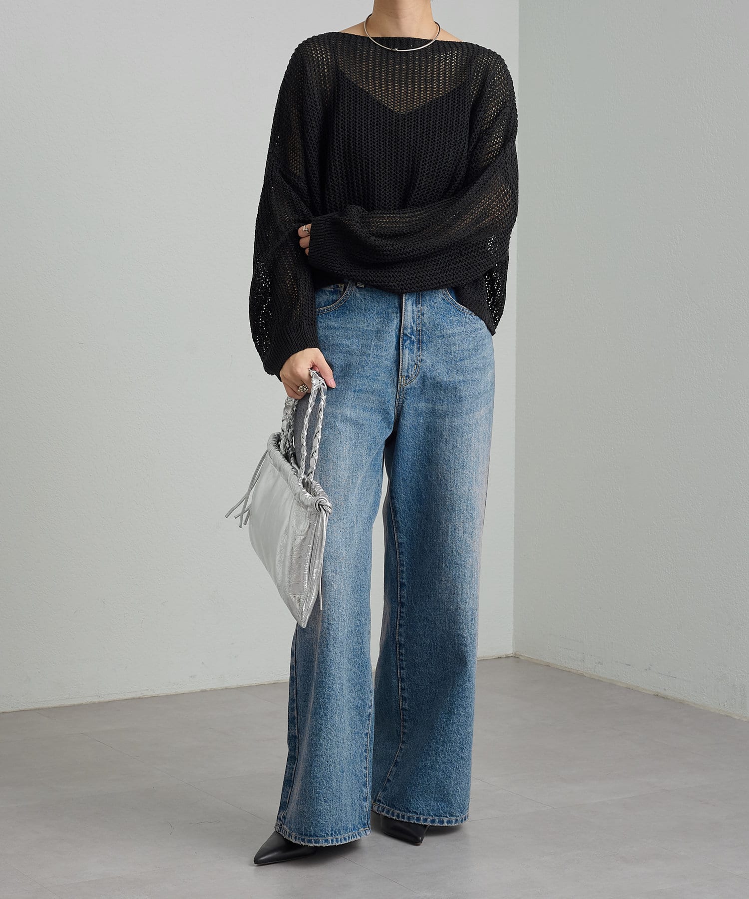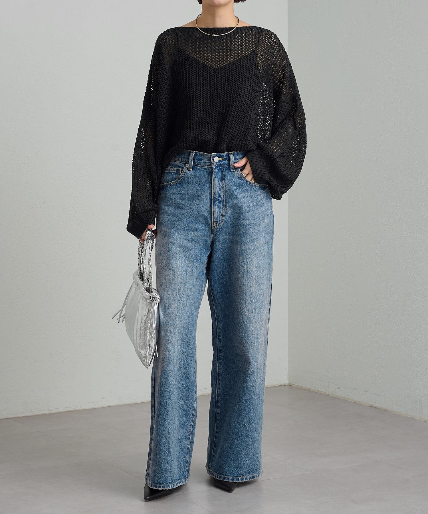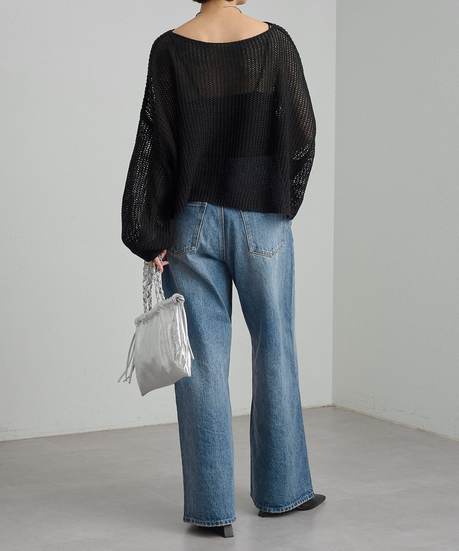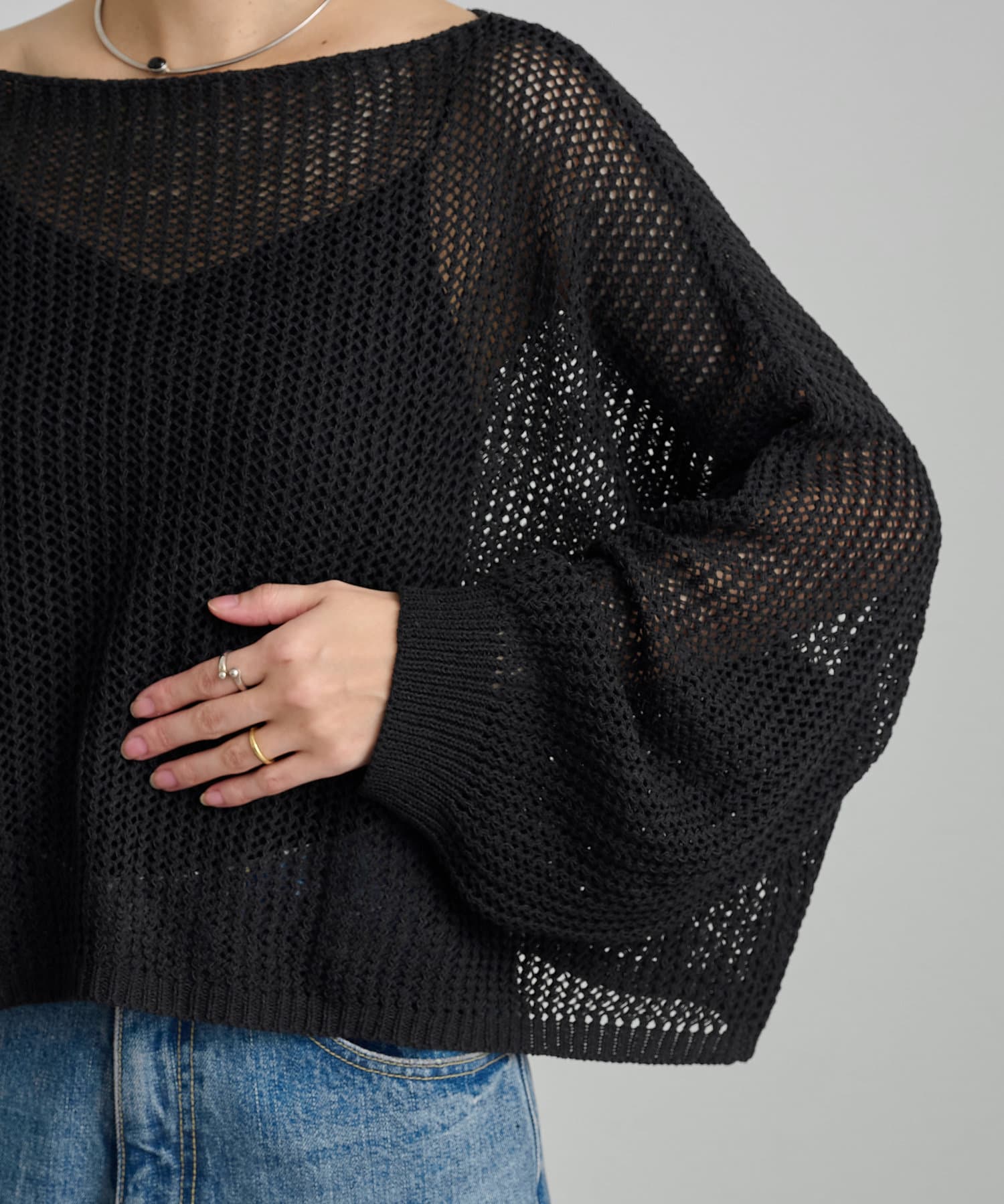 【マイナス5キロ見え】メッシュワイドニットプルオーバー