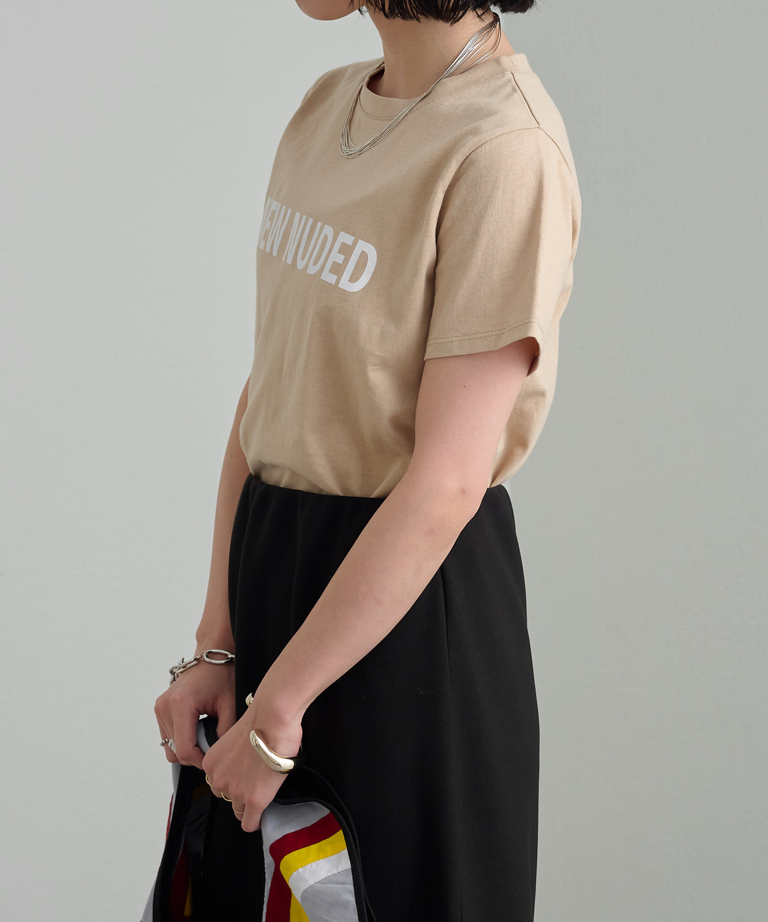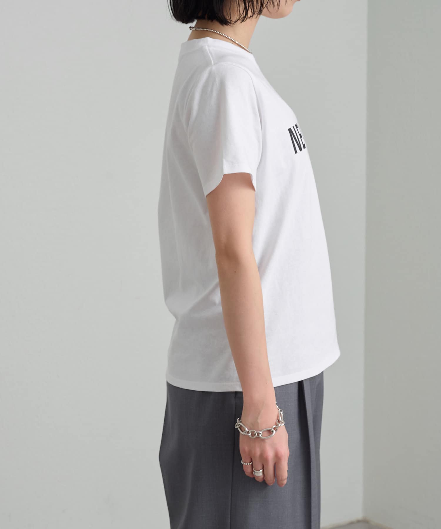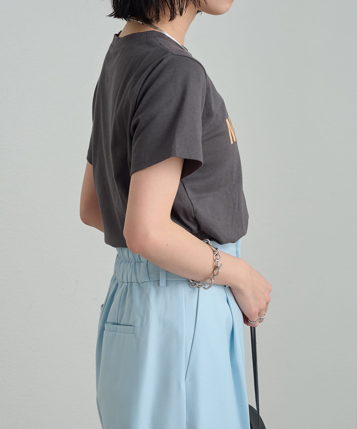 ・シンプルなデザインとロゴでカーディガンやジャケットなどのインナーとしても程よいアクセントをプラス。