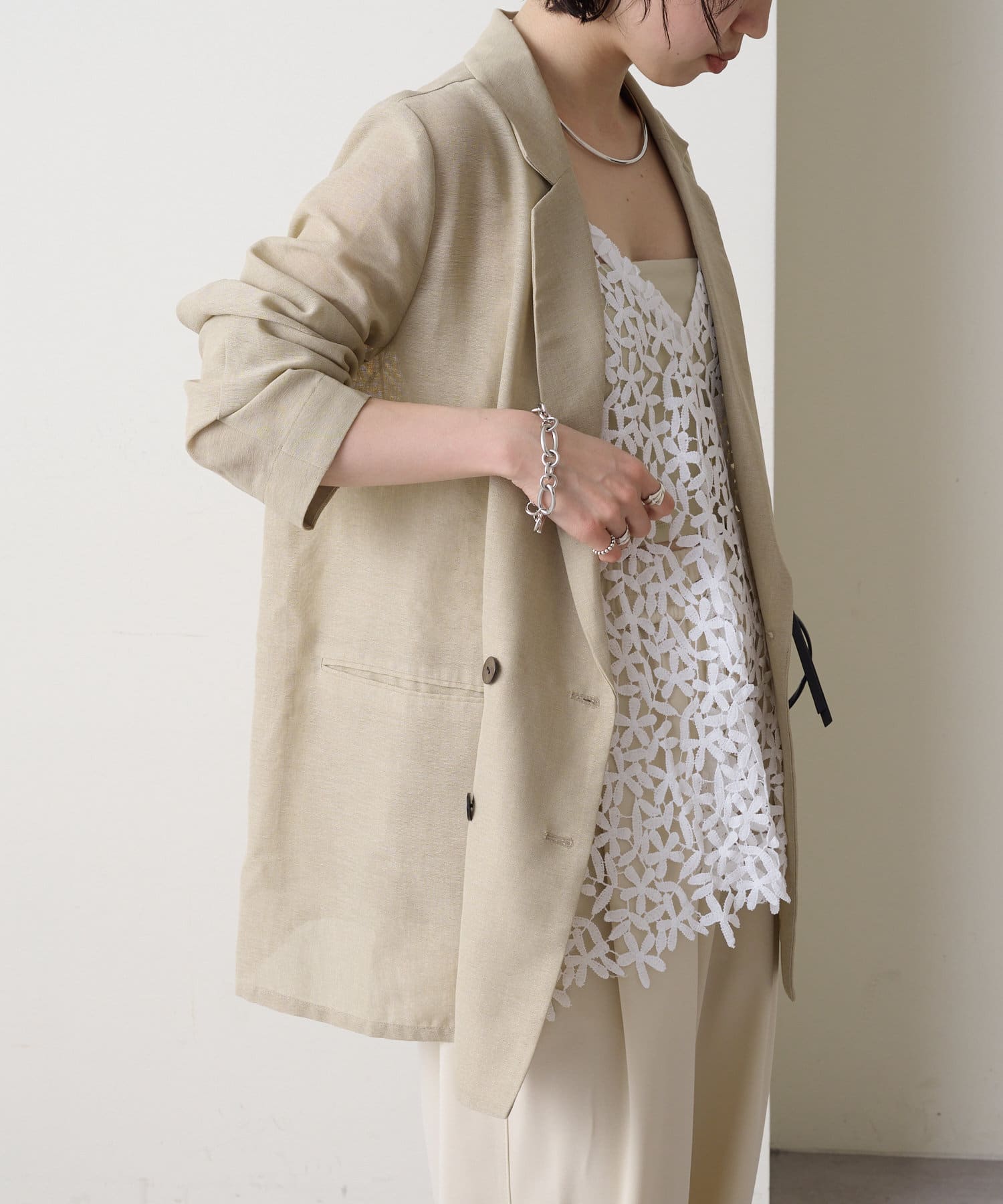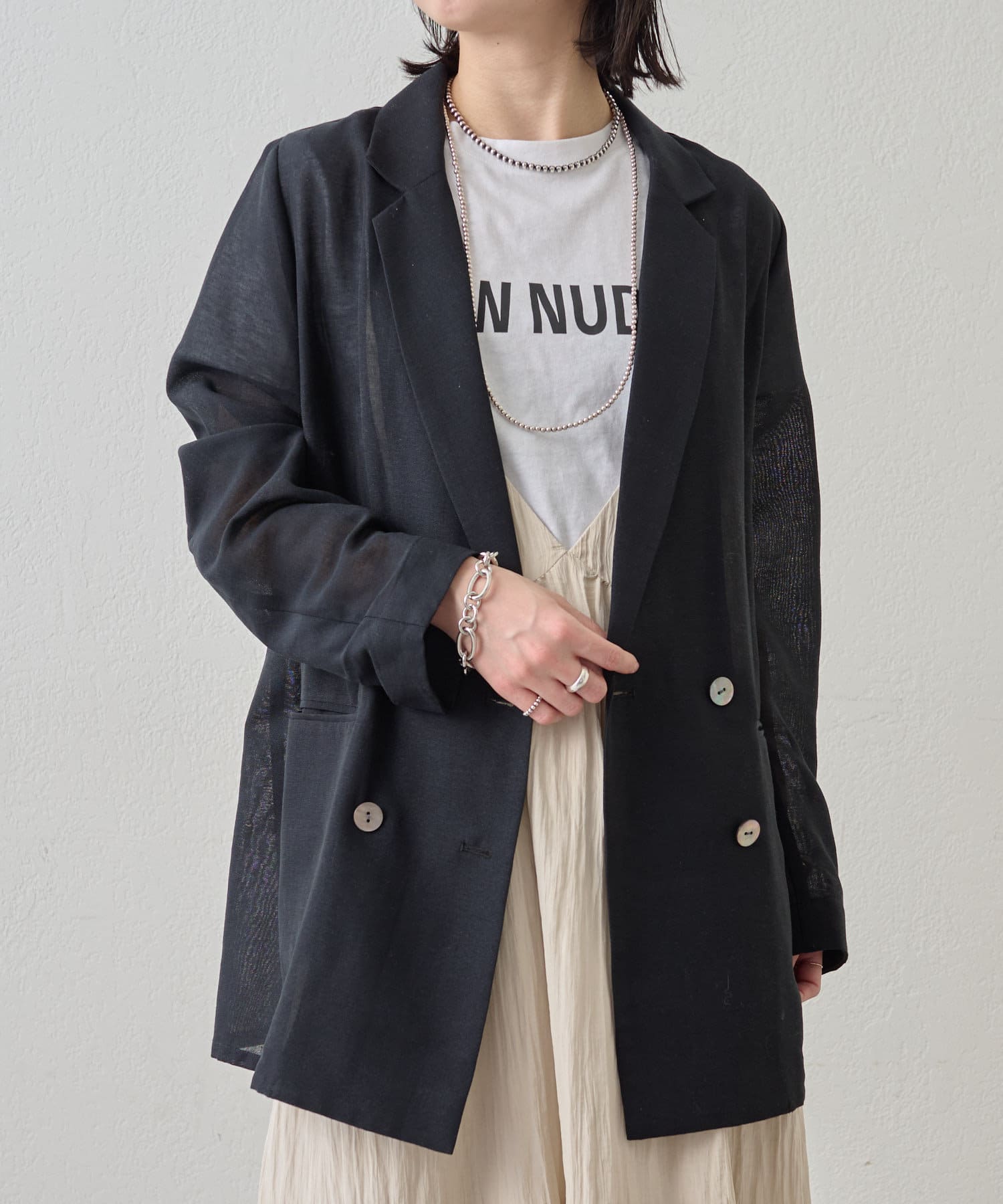・涼し気なシアー素材で仕立てたメッシュジャケット。